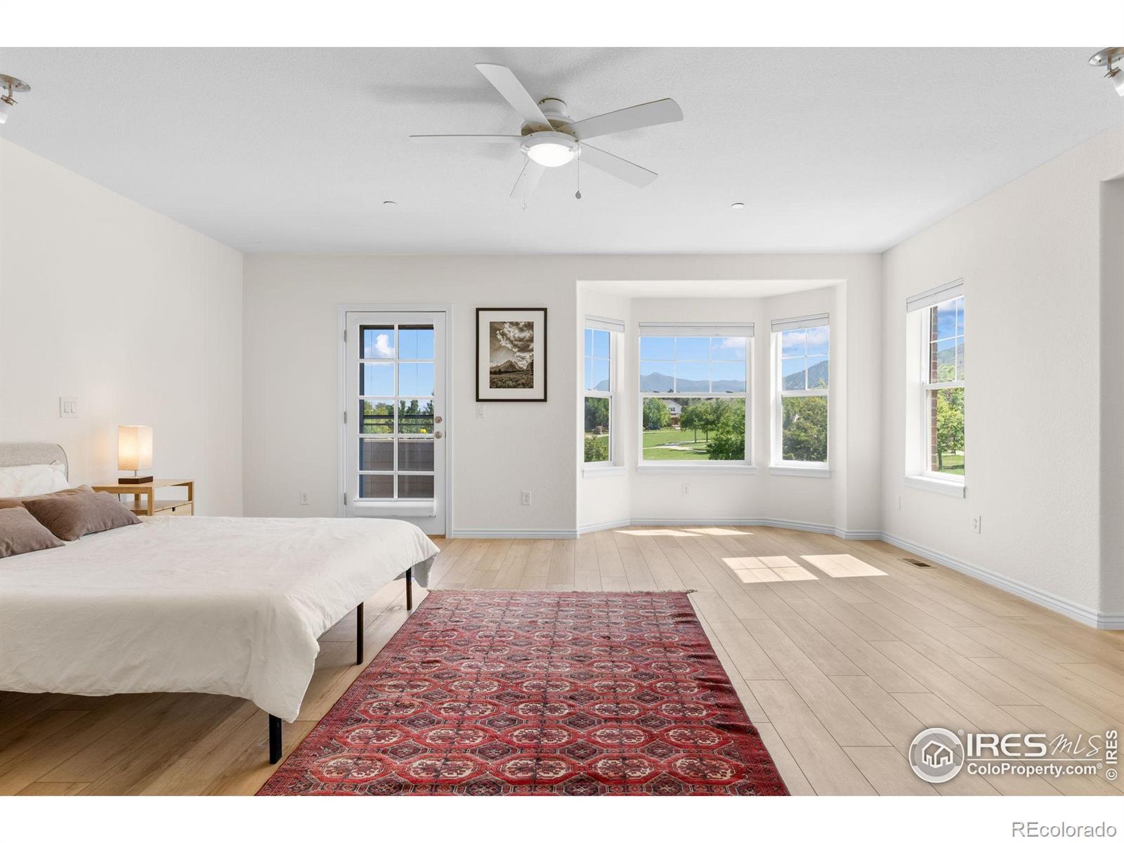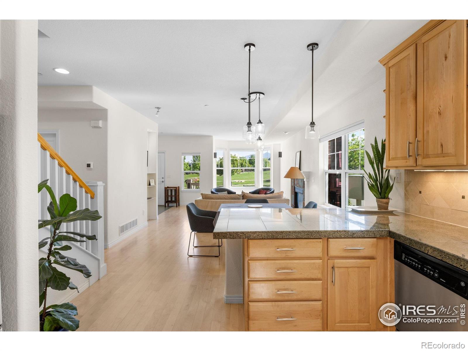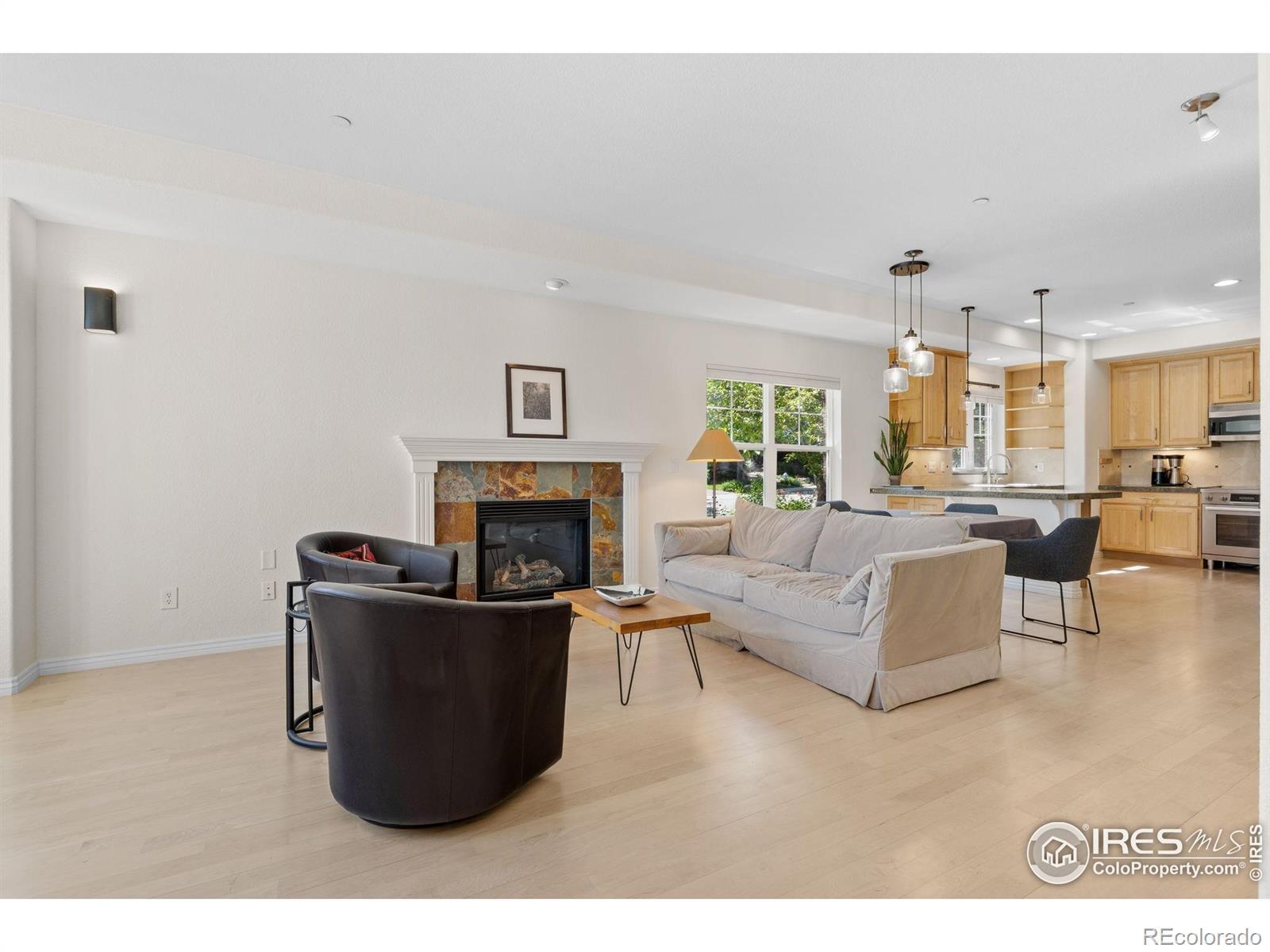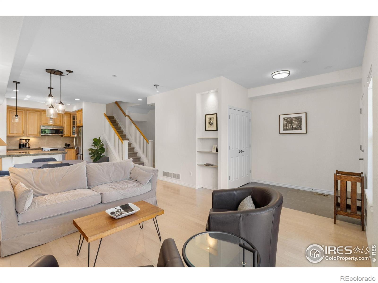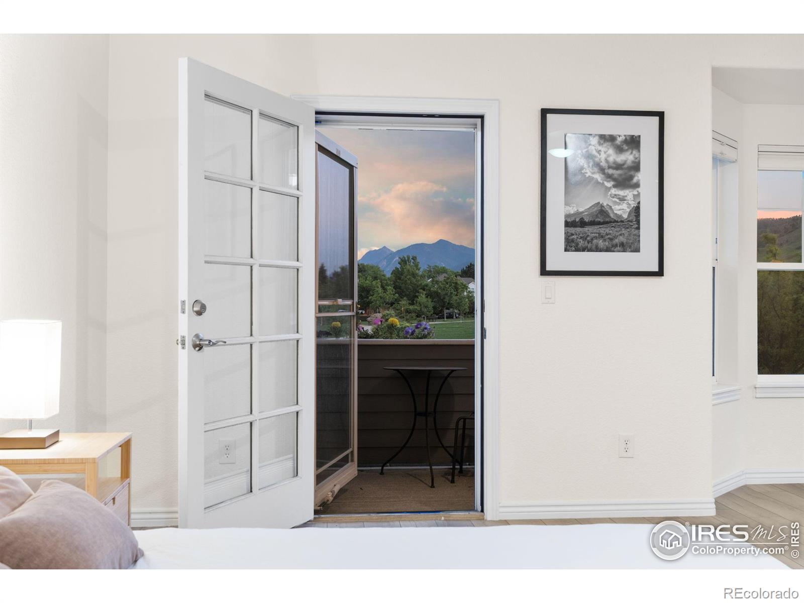 Discover an exceptional opportunity at 555 Laramie Blvd, a rare south-facing end-unit townhouse in Boulder's desirable Dakota Ridge. This home offers spectacular, unobstructed Flatirons views and overlooks a serene park and lush open space, providing an immediate sense of tranquility. It truly stands out with generous square footage compared to interior units and an abundance of natural light. The thoughtfully remodeled entryway immediately opens up the main floor, creating a unique and welcoming feel. The open floor plan is designed for comfortable and elegant living, featuring three private bedrooms, each with its own en-suite bath and private balcony - perfect for unwinding and soaking in the views. The airy, sunlit living room, complete with a cozy fireplace, captures breathtaking mountain views, while the kitchen boasts premium appliances, including a Bosch induction stove, and convenient bar seating. The finished basement, with its impressive 9-foot ceilings and full bath, offers versatile space that can serve as a dynamic recreation/theater room, a dedicated home office, or even a potential fourth bedroom. This home is built for modern comfort and sustainable efficiency, featuring new Mitsubishi heat pumps for effective heating and cooling year-round. Practical amenities include a spacious laundry room and ample storage throughout. The attached two-car garage is equipped with a 40-amp, level-2 EV charger, providing convenient at-home charging and plenty of room for bikes and outdoor gear. Fronting a vibrant community park and miles of scenic trails and popular bike routes, this home offers unparalleled access to Boulder's outdoor lifestyle. With charming shops and exquisite dining options just minutes away, 555 Laramie Blvd is more than just a house; it's a perfect blend of privacy, luxury, and outdoor adventure for living, working, and playing.
