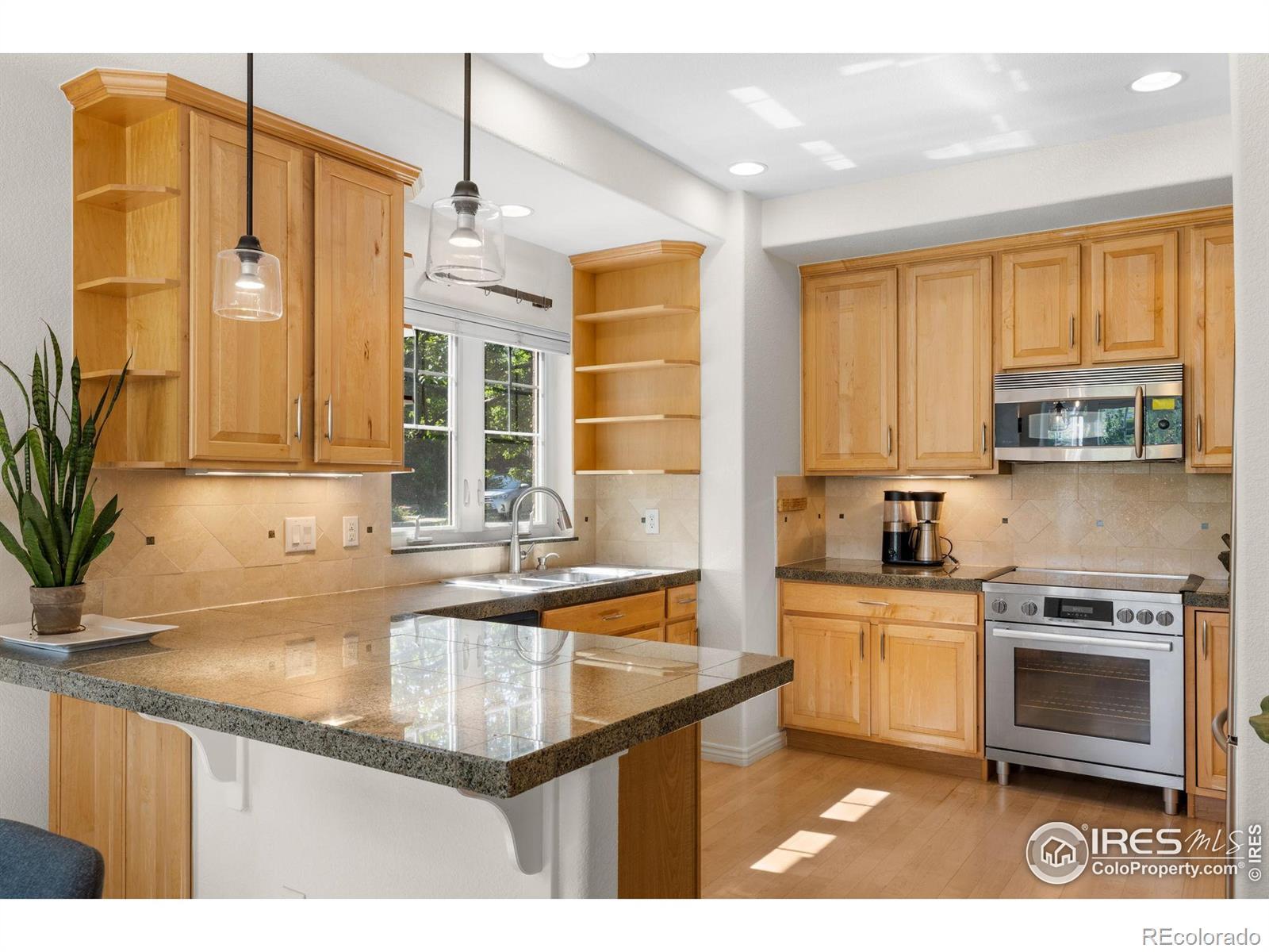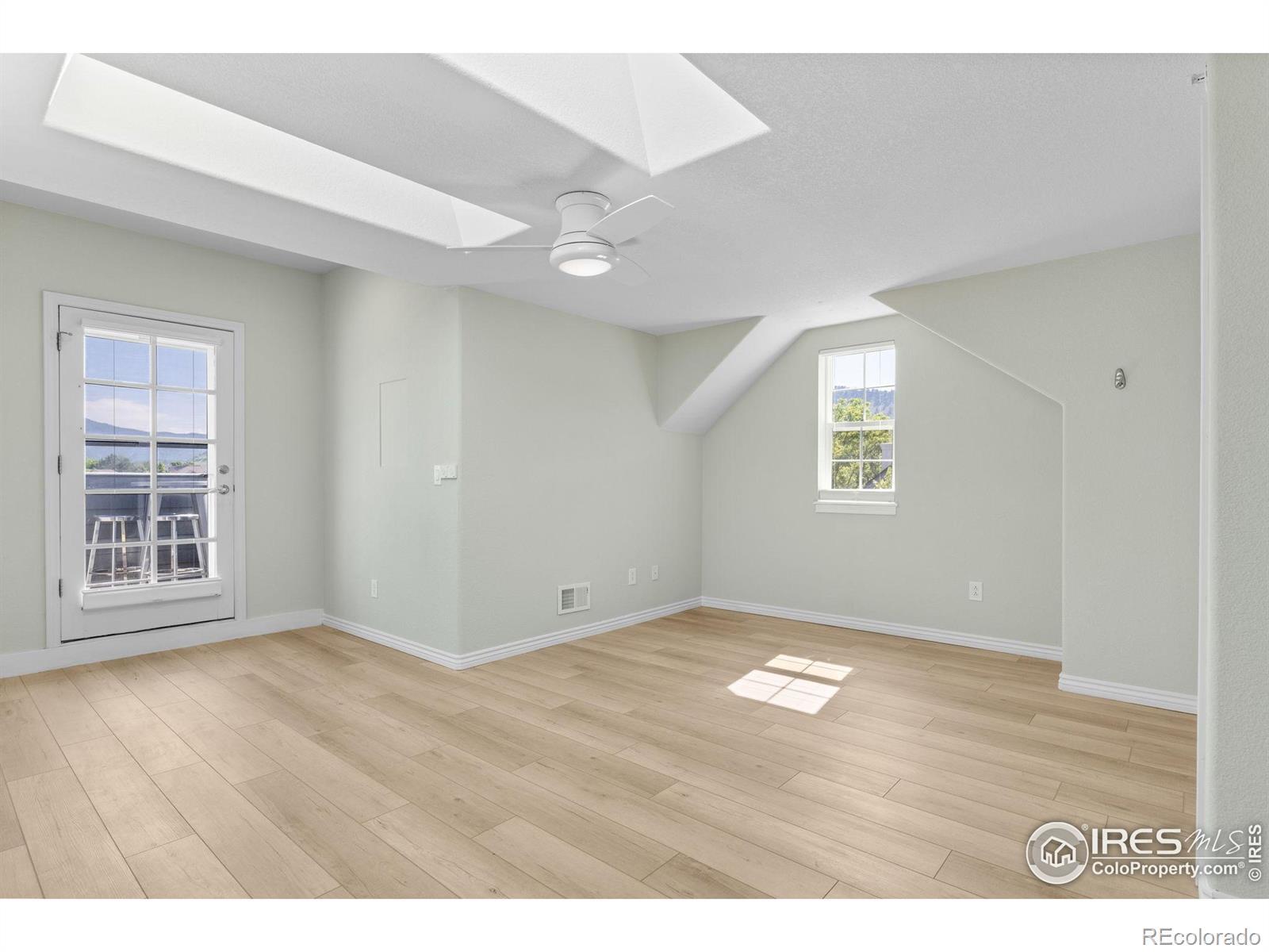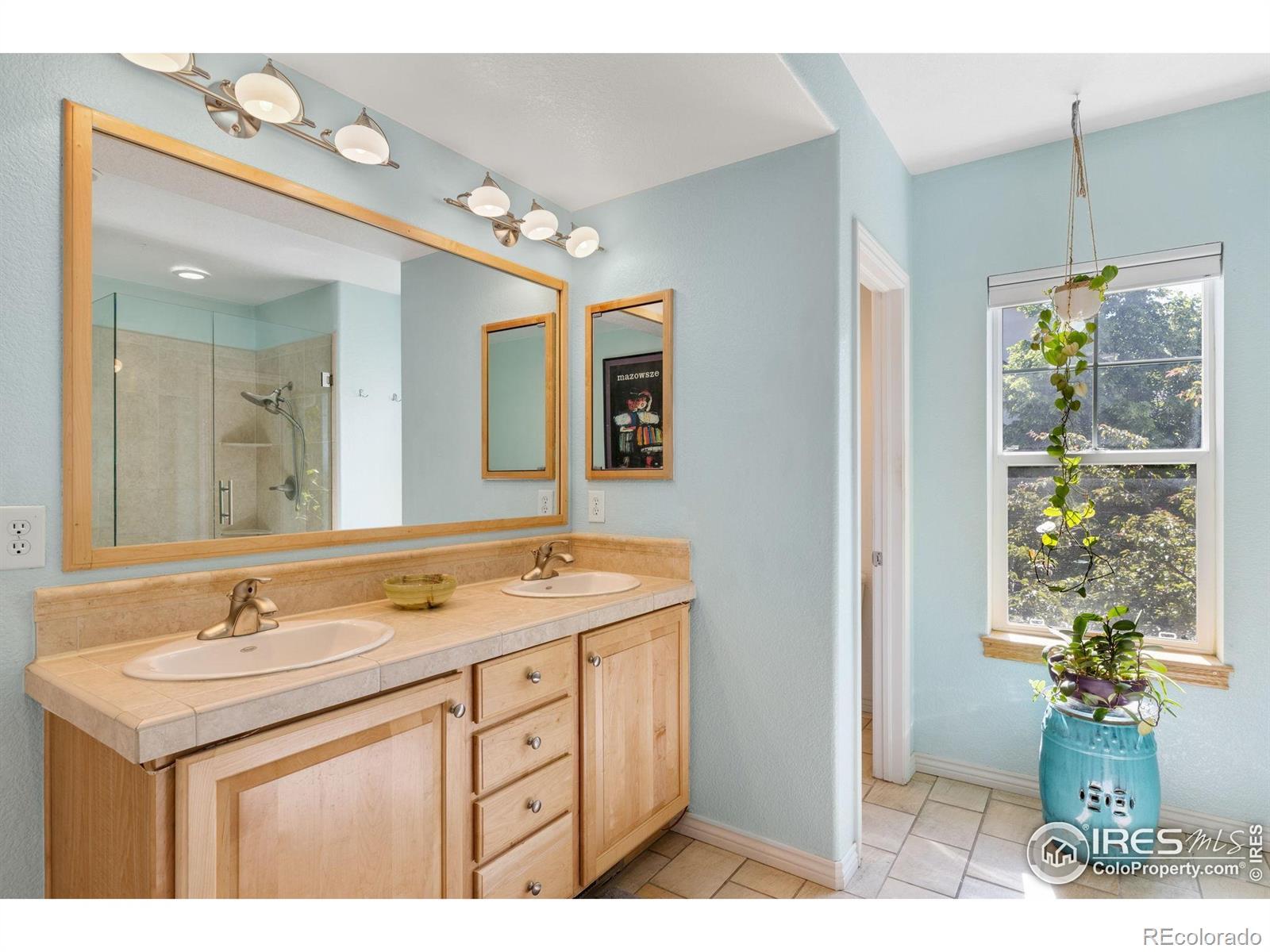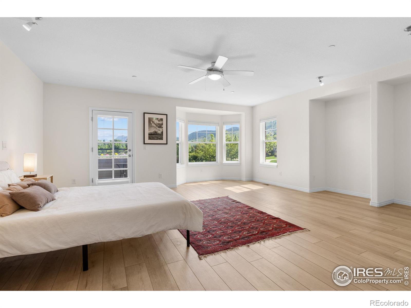 Discover an exceptional opportunity at 555 Laramie Blvd, a rare south-facing end-unit townhouse in Boulder's desirable Dakota Ridge. This home offers spectacular, unobstructed Flatirons views and overlooks a serene park and lush open space, providing an immediate sense of tranquility. It truly stands out with generous square footage compared to interior units and an abundance of natural light. The thoughtfully remodeled entryway immediately opens up the main floor, creating a unique and welcoming feel. The open floor plan is designed for comfortable and elegant living, featuring three private bedrooms, each with its own en-suite bath and private balcony - perfect for unwinding and soaking in the views. The airy, sunlit living room, complete with a cozy fireplace, captures breathtaking mountain views, while the kitchen boasts premium appliances, including a Bosch induction stove, and convenient bar seating. The finished basement, with its impressive 9-foot ceilings and full bath, offers versatile space that can serve as a dynamic recreation/theater room, a dedicated home office, or even a potential fourth bedroom. This home is built for modern comfort and sustainable efficiency, featuring new Mitsubishi heat pumps for effective heating and cooling year-round. Practical amenities include a spacious laundry room and ample storage throughout. The attached two-car garage is equipped with a 40-amp, level-2 EV charger, providing convenient at-home charging and plenty of room for bikes and outdoor gear. Fronting a vibrant community park and miles of scenic trails and popular bike routes, this home offers unparalleled access to Boulder's outdoor lifestyle. With charming shops and exquisite dining options just minutes away, 555 Laramie Blvd is more than just a house; it's a perfect blend of privacy, luxury, and outdoor adventure for living, working, and playing.