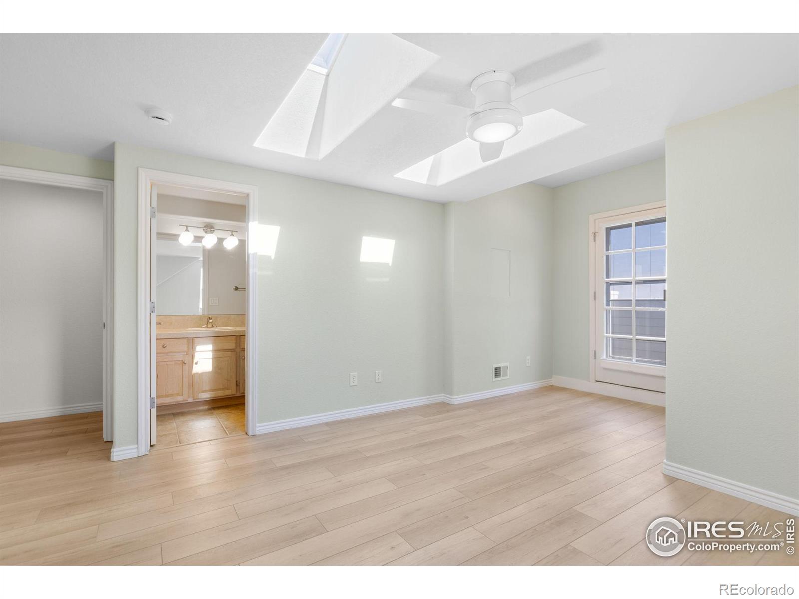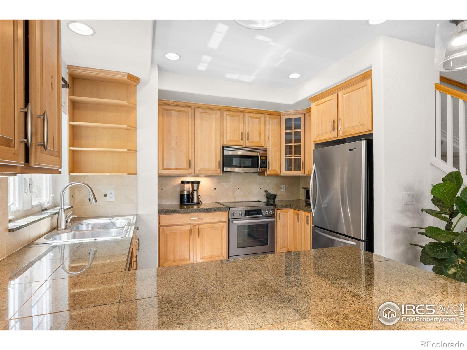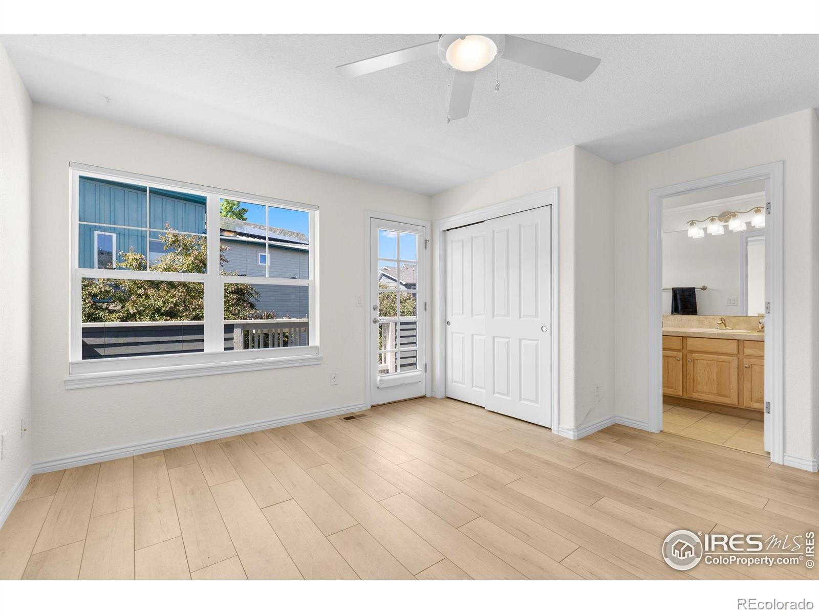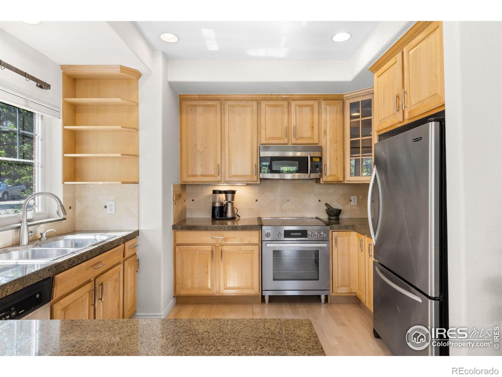 Discover an exceptional opportunity at 555 Laramie Blvd, a rare south-facing end-unit townhouse in Boulder's desirable Dakota Ridge. This home offers spectacular, unobstructed Flatirons views and overlooks a serene park and lush open space, providing an immediate sense of tranquility. It truly stands out with generous square footage compared to interior units and an abundance of natural light. The thoughtfully remodeled entryway immediately opens up the main floor, creating a unique and welcoming feel. The open floor plan is designed for comfortable and elegant living, featuring three private bedrooms, each with its own en-suite bath and private balcony - perfect for unwinding and soaking in the views. The airy, sunlit living room, complete with a cozy fireplace, captures breathtaking mountain views, while the kitchen boasts premium appliances, including a Bosch induction stove, and convenient bar seating. The finished basement, with its impressive 9-foot ceilings and full bath, offers versatile space that can serve as a dynamic recreation/theater room, a dedicated home office, or even a potential fourth bedroom. This home is built for modern comfort and sustainable efficiency, featuring new Mitsubishi heat pumps for effective heating and cooling year-round. Practical amenities include a spacious laundry room and ample storage throughout. The attached two-car garage is equipped with a 40-amp, level-2 EV charger, providing convenient at-home charging and plenty of room for bikes and outdoor gear. Fronting a vibrant community park and miles of scenic trails and popular bike routes, this home offers unparalleled access to Boulder's outdoor lifestyle. With charming shops and exquisite dining options just minutes away, 555 Laramie Blvd is more than just a house; it's a perfect blend of privacy, luxury, and outdoor adventure for living, working, and playing.