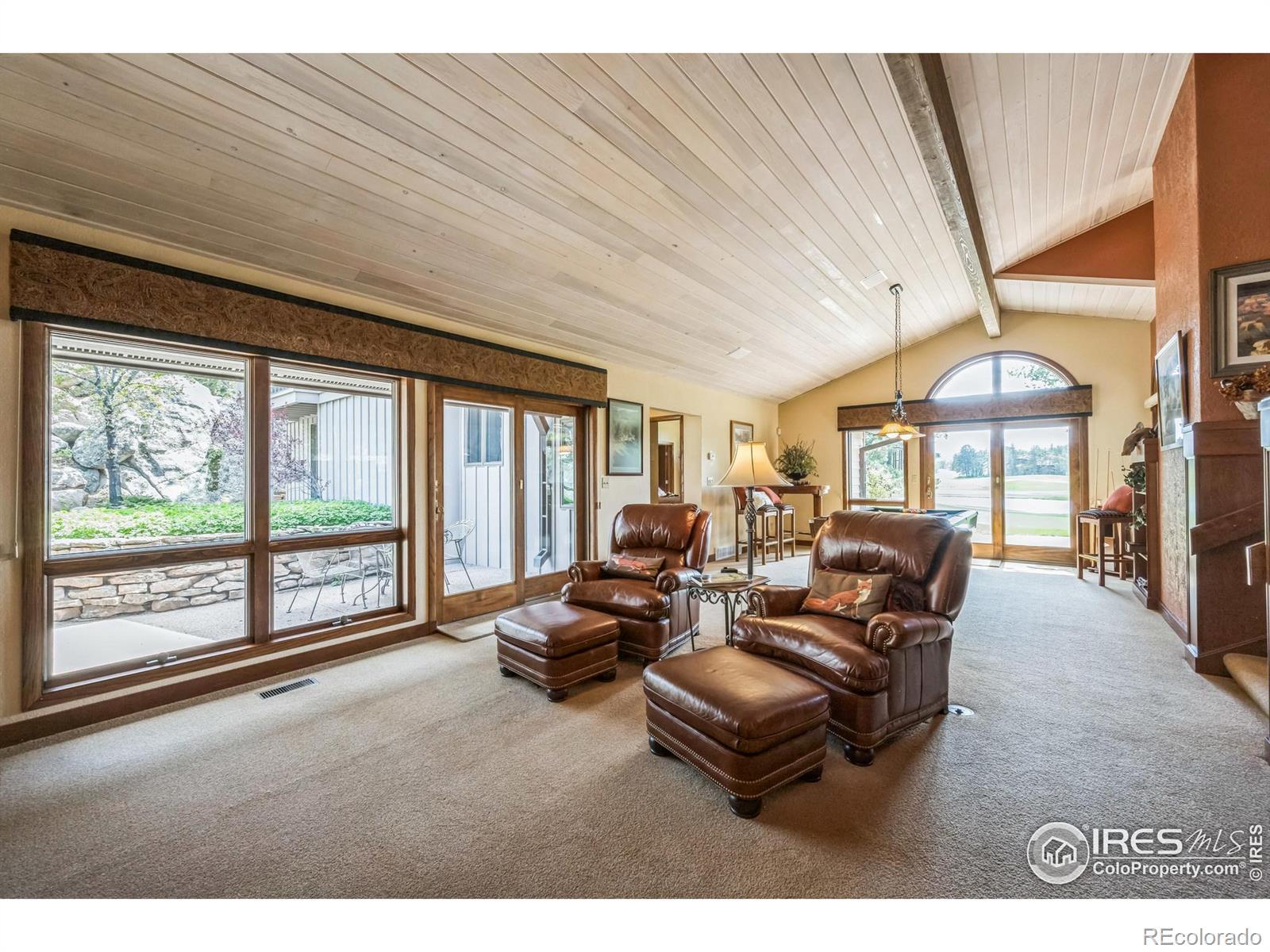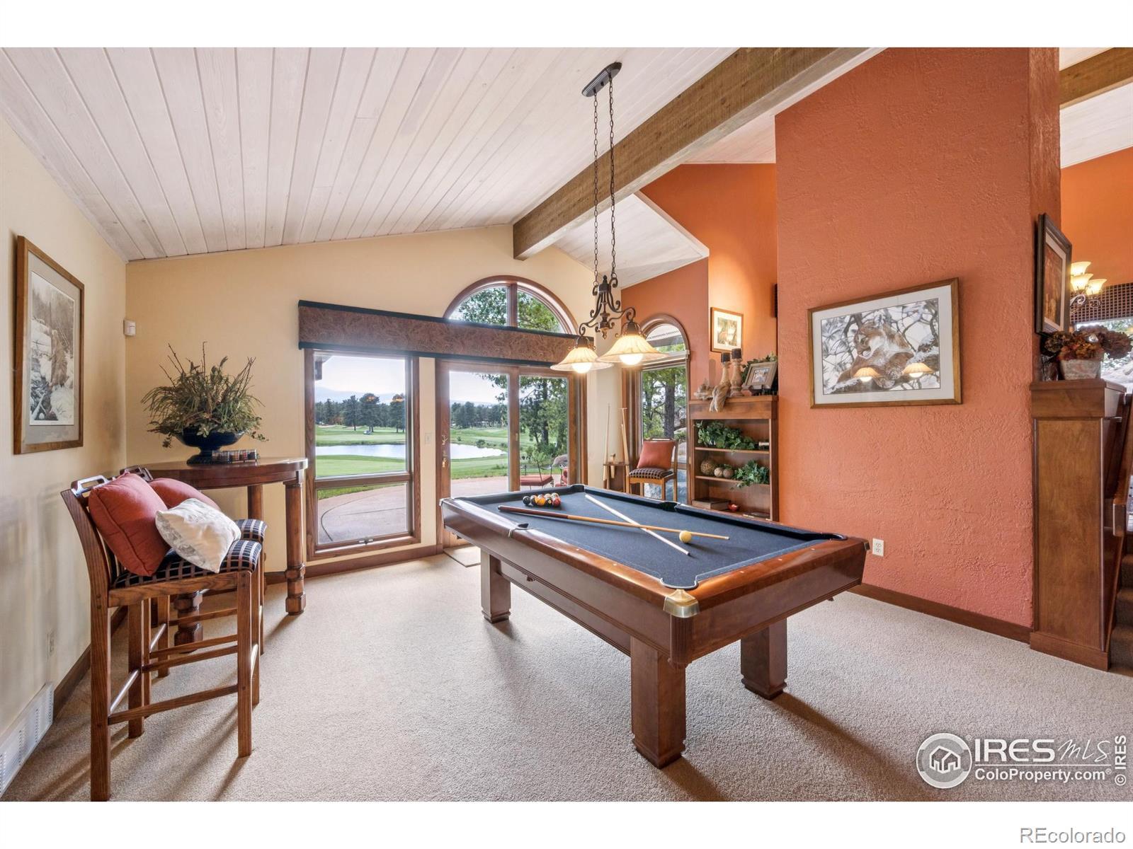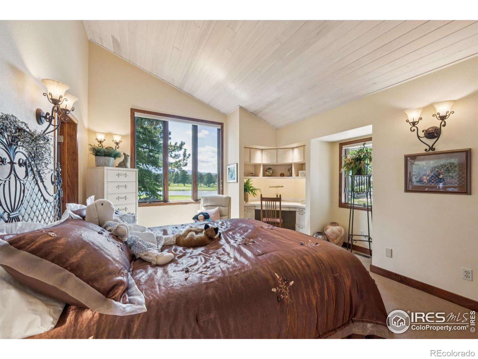 Elegant & Refined Ranch Style Home overlooking the 14th Fairway & Lake Shoshone from the largest backyard inside the Fox. 4300 Sq Feet of Impressive High End quality finish & appointments throughout this magnificent home. Fox Acres is a Semi Private Championship Golf Course, truly one of the most Unique & breathtaking Mountain Golf Courses that Northern Colorado has to offer. This spacious & inviting Open Floor Plan is perfect for entertaining family & friends. 2 Living areas, a formal Lv Rm & a Family Rm. The rooms are large with huge vaulted ceilings & lots of windows with fantastic views of the Golf Course, Lake Shoshone & the Bald Mountains. Custom Wood Trim, doors, & paneling, White Washed T&G Aspen ceilings, Solid wood beams, Flagstone entry way, Wet Bar off the Living Rm with a Gas Log Fireplace. All of the Furniture is included along withl Custom Built ins; Desks, Cabinets, Bureaus, & Chest of Drawers. Fantastic Kitchen, with Custom Cabinetry & Breakfast Bar. All 3 bedrooms have private in suite baths with their own water heaters. The primary bath has a large steam shower, plus there is a hot tub just out the bedroom door on a private patio. This is a well built solid home with 2x6 walls & a lifetime steel roof and too many other features to list. Located inside a secured-gated community that provides Snow Removal to your door, Paved Roads, Road Maintenance, District Water & Sewer, Trash, Tennis/Pickleball, Horseshoe Pits, Children's Playground & Sport Court, & the use of the Fox House for Social Gatherings. You will find all the basic amenities you'll need in the RFL Village. Tons of recreational opportunities abound; Fishing, Hiking, Biking, Canoeing, Kayaking, w/thousands of acres in the Roosevelt National Forest to explore and play on. 6 Public Lakes in the immediate area stocked with Trout; this area is widely known as the best fishing opportunity in Northern Colorado along the Front Range. Golf & Club Membership is separate of property ownership.