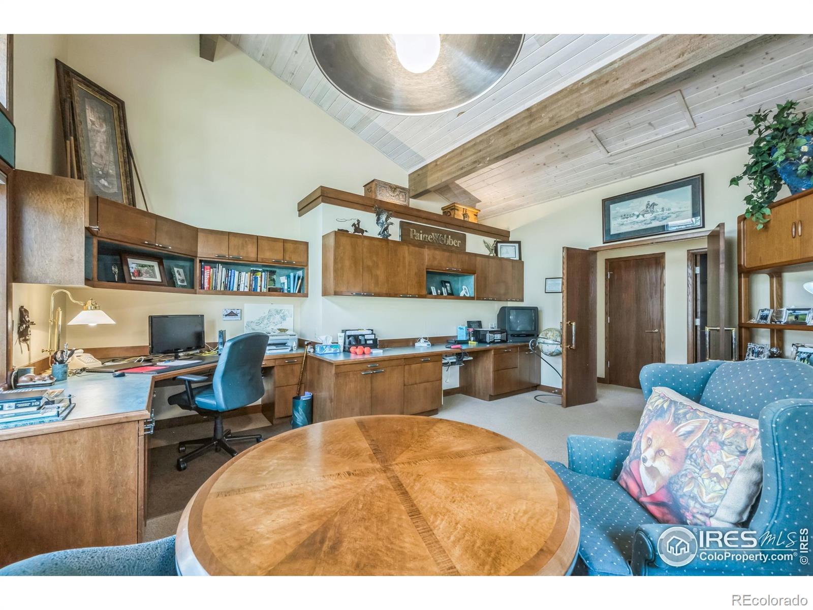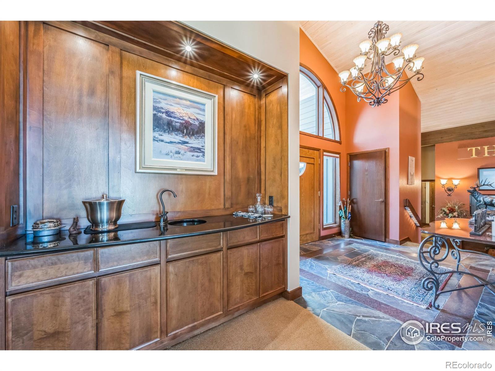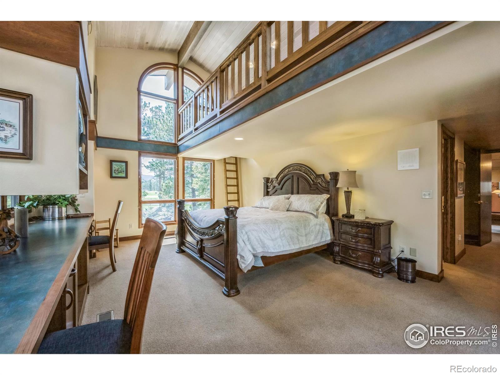 Elegant & Refined Ranch Style Home overlooking the 14th Fairway & Lake Shoshone from the largest backyard inside the Fox. 4300 Sq Feet of Impressive High End quality finish & appointments throughout this magnificent home. Fox Acres is a Semi Private Championship Golf Course, truly one of the most Unique & breathtaking Mountain Golf Courses that Northern Colorado has to offer. This spacious & inviting Open Floor Plan is perfect for entertaining family & friends. 2 Living areas, a formal Lv Rm & a Family Rm. The rooms are large with huge vaulted ceilings & lots of windows with fantastic views of the Golf Course, Lake Shoshone & the Bald Mountains. Custom Wood Trim, doors, & paneling, White Washed T&G Aspen ceilings, Solid wood beams, Flagstone entry way, Wet Bar off the Living Rm with a Gas Log Fireplace. All of the Furniture is included along withl Custom Built ins; Desks, Cabinets, Bureaus, & Chest of Drawers. Fantastic Kitchen, with Custom Cabinetry & Breakfast Bar. All 3 bedrooms have private in suite baths with their own water heaters. The primary bath has a large steam shower, plus there is a hot tub just out the bedroom door on a private patio. This is a well built solid home with 2x6 walls & a lifetime steel roof and too many other features to list. Located inside a secured-gated community that provides Snow Removal to your door, Paved Roads, Road Maintenance, District Water & Sewer, Trash, Tennis/Pickleball, Horseshoe Pits, Children's Playground & Sport Court, & the use of the Fox House for Social Gatherings. You will find all the basic amenities you'll need in the RFL Village. Tons of recreational opportunities abound; Fishing, Hiking, Biking, Canoeing, Kayaking, w/thousands of acres in the Roosevelt National Forest to explore and play on. 6 Public Lakes in the immediate area stocked with Trout; this area is widely known as the best fishing opportunity in Northern Colorado along the Front Range. Golf & Club Membership is separate of property ownership.