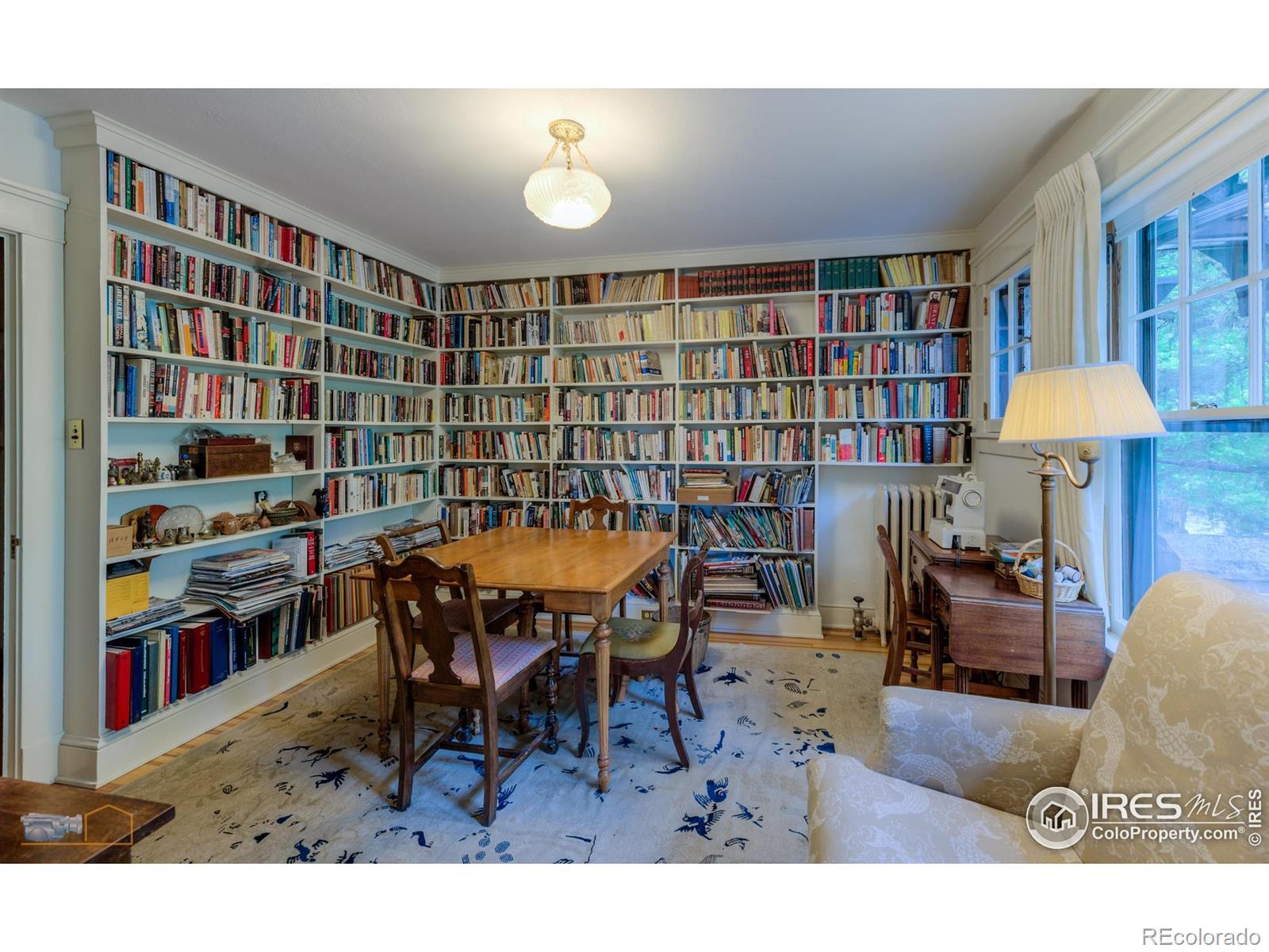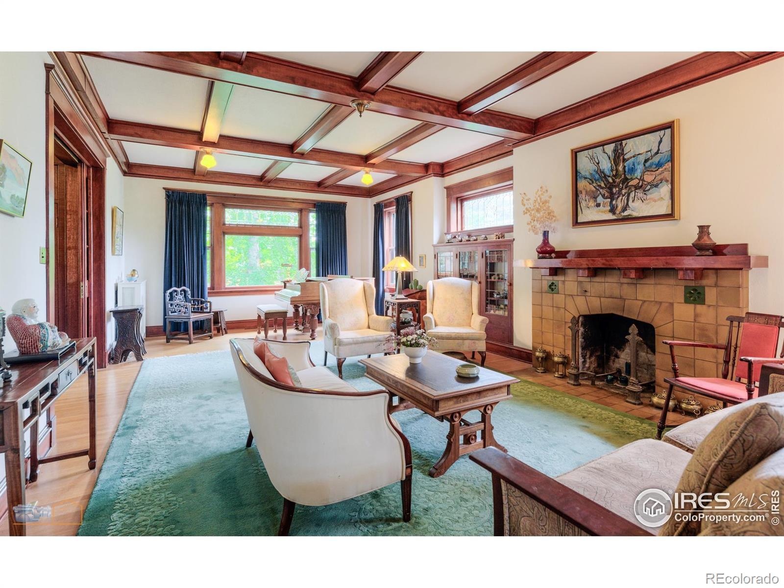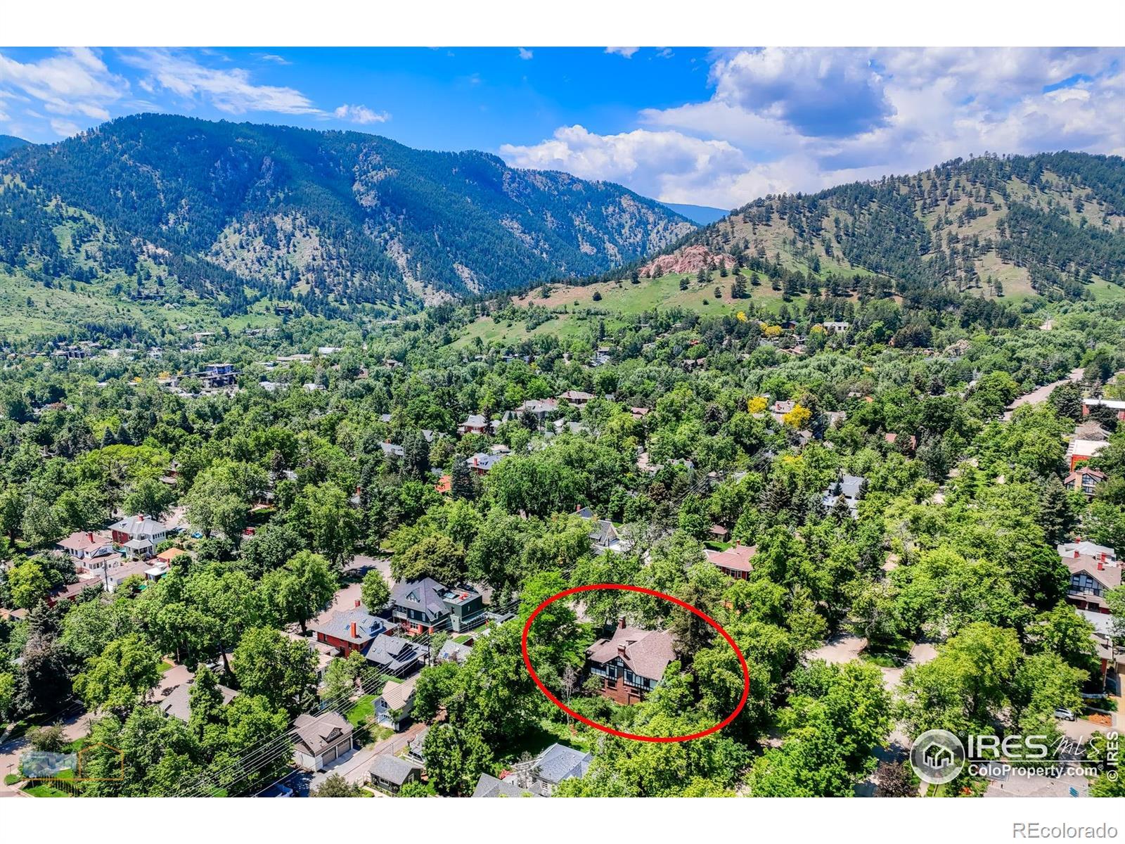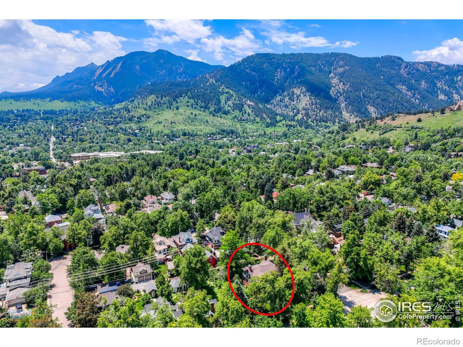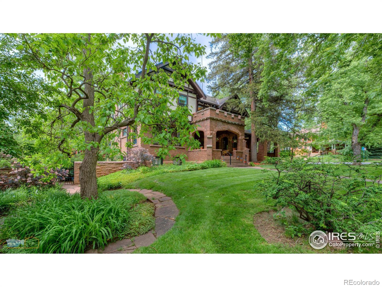 One of the most Iconic Homes on Mapleton Hill, the Eastman Reid Collins Home is an historic treasure on a rare 13,802 square foot corner lot. The stunning Tudor Revival style residence has been meticulously maintained by the same owners for 50 years. Now, this classic style home is ready for its next chapter. The appeal of the property is dramatic from the street, highlighted by the timeless brick, stone and stucco exterior details. A spacious covered front entry and porch welcome you to the home and connect to the porte cochere, perfect for arriving guests. Enter into the foyer and you'll immediately feel the warmth and charm of the perfectly designed and preserved woodworking. Both the spacious living and dining rooms have beautiful beamed ceilings, beveled glass, classic original lighting and built-in cabinetry. The living room opens to a delightful sunroom overlooking the back patio and yard. The dining room, with vintage tapestries and sideboard/serving area flows into the kitchen which has been remodeled with custom cherry cabinetry. A breakfast room is next to the kitchen. Upstairs, the central hallway accesses the 5 bedrooms and an upper level sunroom. The layout of the generous size bedrooms allows flexibility for new owner to use as they wish. The primary bedroom opens through french doors to a library/study with built in bookcases and many windows. The hallway connects to a back deck which can easily be enhanced to enjoy the views of the Flatirons. The large attic could be finished if additional space is needed. The lower level of the home is filled with light and includes a cozy family room with fireplace, 587 bottle capacity wine cellar, 3/4 bath and laundry. Outside, the expansive yard and gardens wrap around the home, encircled by a sandstone and brick wall making the entire area secluded and peaceful. In the spring, the many flowering plants and fruit trees come alive and make the yard and private patio a special place to enjoy this unique setting.