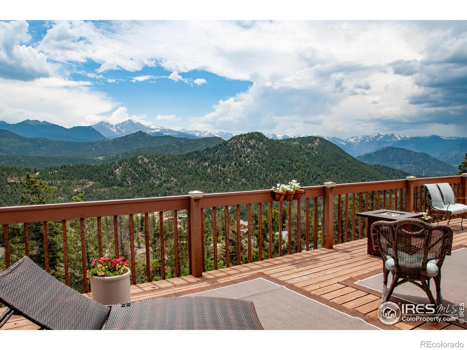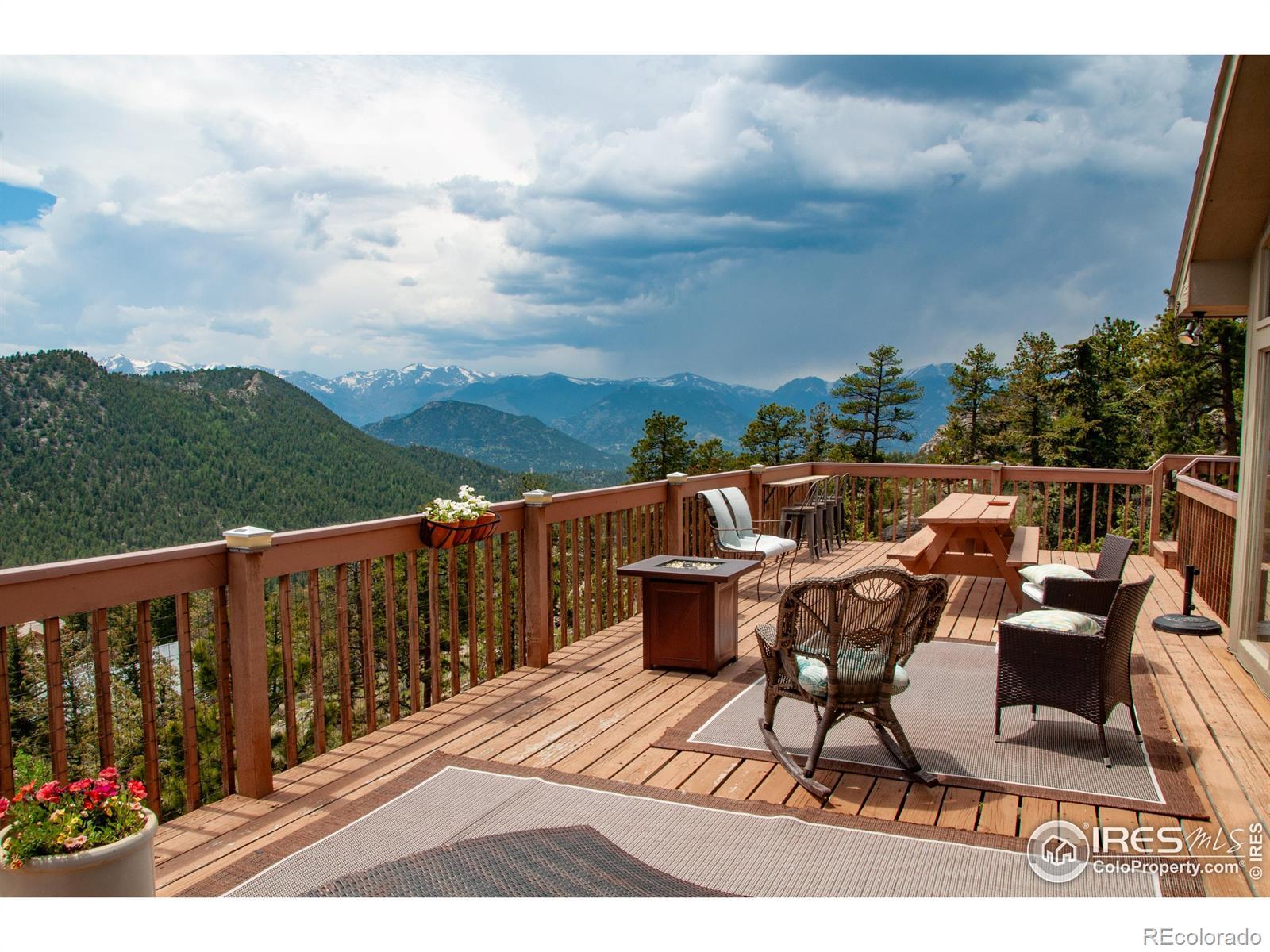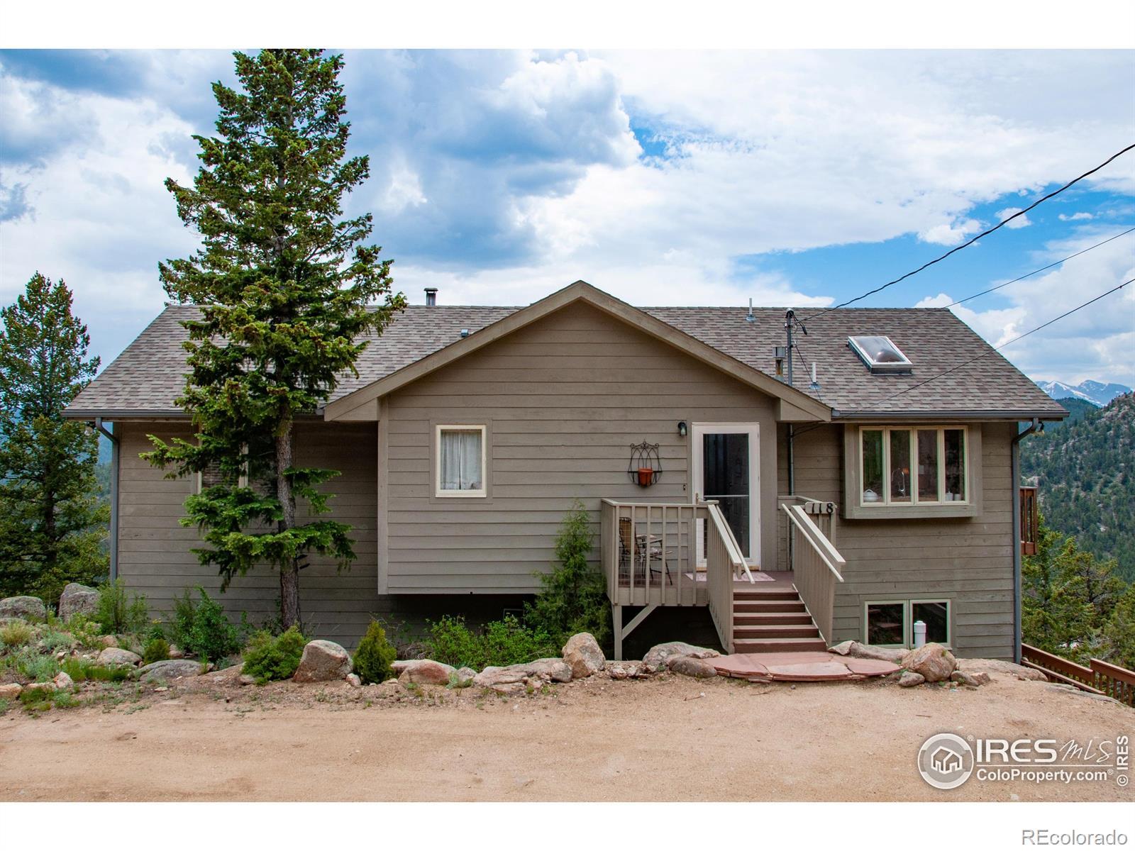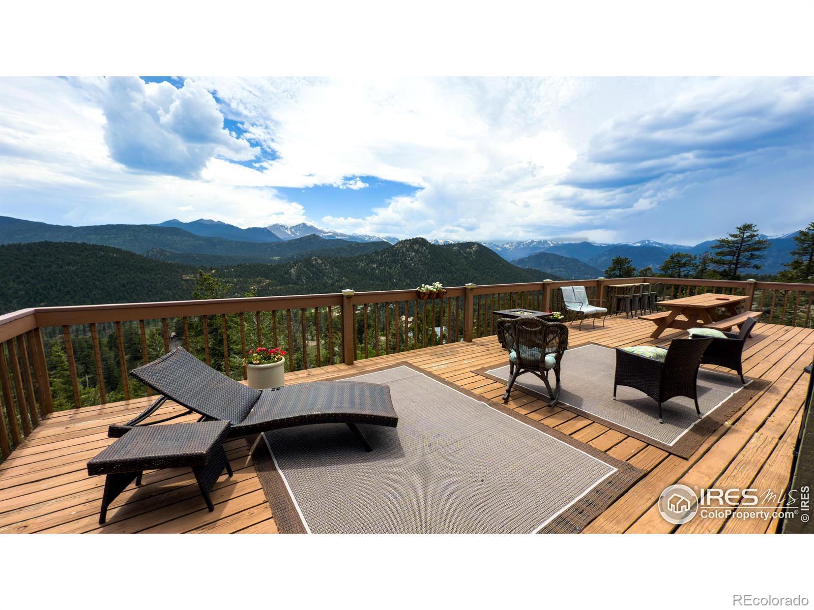 Discover mountain living at its finest in this beautifully designed 3-bedroom, 3-bathroom home, offering 2,640 finished square feet of versatile space on 1.2 acres of scenic land. Just minutes from downtown Estes Park and the gateway to Rocky Mountain National Park, this tranquil retreat boasts stunning, unobstructed views of Longs Peak and effortless access to the great outdoors.Ideal for multi-generational living, entertaining, or potential rental income, the home features full kitchens on both levels and two expansive decks that provide front-row seats to daily wildlife sightings-including elk, deer, turkeys, and marmots.The main level welcomes you with a light-filled open floor plan, vaulted ceilings, and large picture windows that frame the surrounding natural beauty. A cozy fireplace anchors the living space, while the adjacent kitchen and dining area offer ample cabinetry and direct access to a spacious 45' x 12' deck which is perfect for outdoor dining, entertaining, or simply soaking in the mountain views. The primary bedroom and full bath are also conveniently located on this level. Downstairs, the fully finished lower level includes two additional bedrooms, a full bathroom, a large family or recreation room, and a second well-equipped kitchen. Step outside to a second deck with peaceful forest views, adding even more space to relax and enjoy the serenity of the setting.This is a rare opportunity to own a private, well-maintained mountain home that truly embodies the Colorado lifestyle. Don't miss your chance to make this peaceful retreat your own.