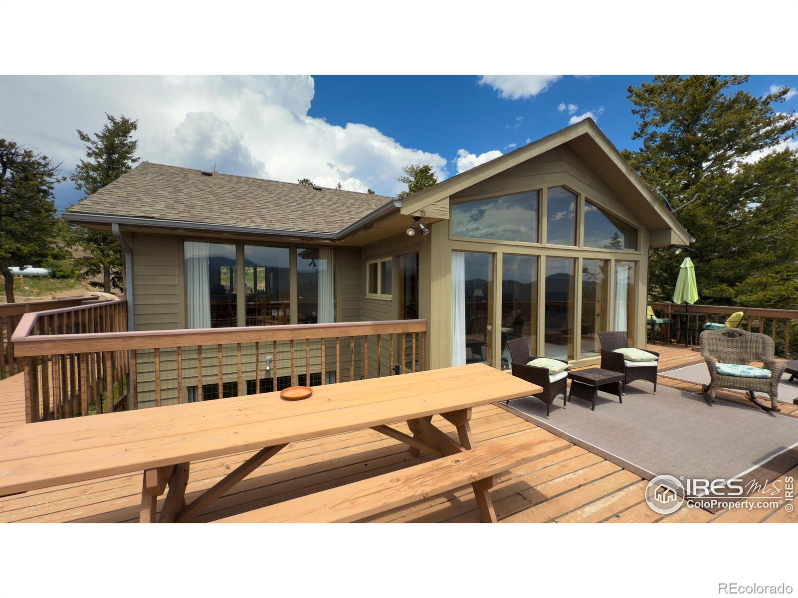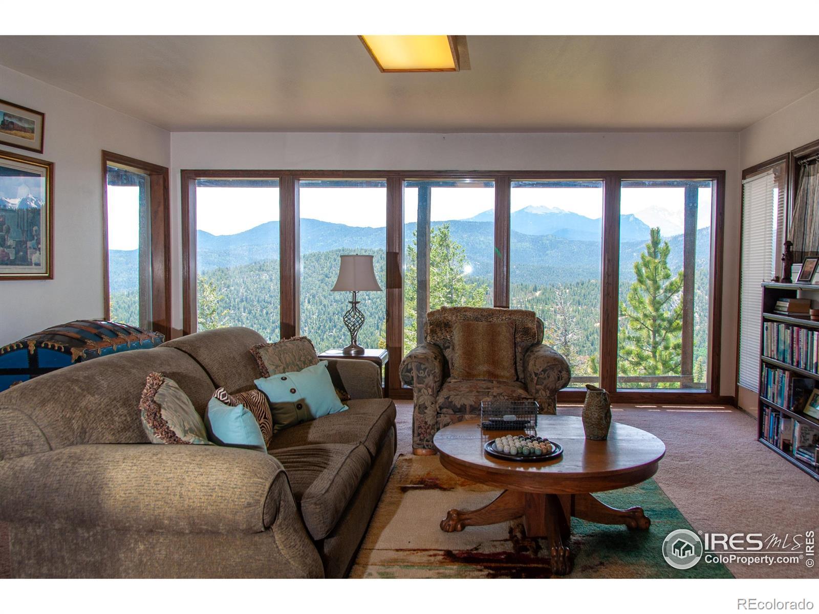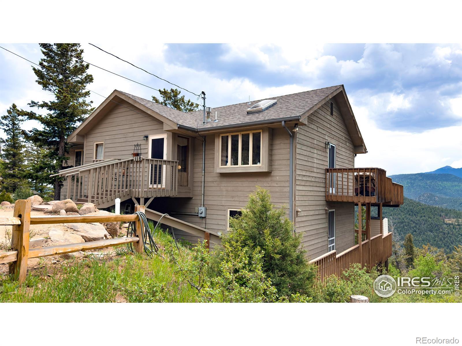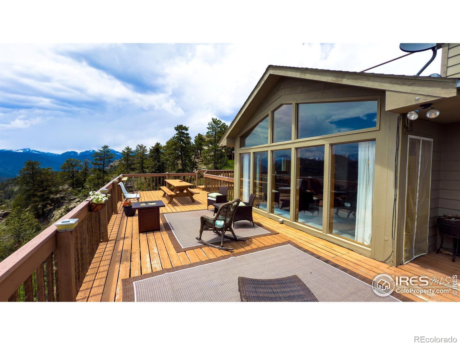 Discover mountain living at its finest in this beautifully designed 3-bedroom, 3-bathroom home, offering 2,640 finished square feet of versatile space on 1.2 acres of scenic land. Just minutes from downtown Estes Park and the gateway to Rocky Mountain National Park, this tranquil retreat boasts stunning, unobstructed views of Longs Peak and effortless access to the great outdoors.Ideal for multi-generational living, entertaining, or potential rental income, the home features full kitchens on both levels and two expansive decks that provide front-row seats to daily wildlife sightings-including elk, deer, turkeys, and marmots.The main level welcomes you with a light-filled open floor plan, vaulted ceilings, and large picture windows that frame the surrounding natural beauty. A cozy fireplace anchors the living space, while the adjacent kitchen and dining area offer ample cabinetry and direct access to a spacious 45' x 12' deck which is perfect for outdoor dining, entertaining, or simply soaking in the mountain views. The primary bedroom and full bath are also conveniently located on this level. Downstairs, the fully finished lower level includes two additional bedrooms, a full bathroom, a large family or recreation room, and a second well-equipped kitchen. Step outside to a second deck with peaceful forest views, adding even more space to relax and enjoy the serenity of the setting.This is a rare opportunity to own a private, well-maintained mountain home that truly embodies the Colorado lifestyle. Don't miss your chance to make this peaceful retreat your own.