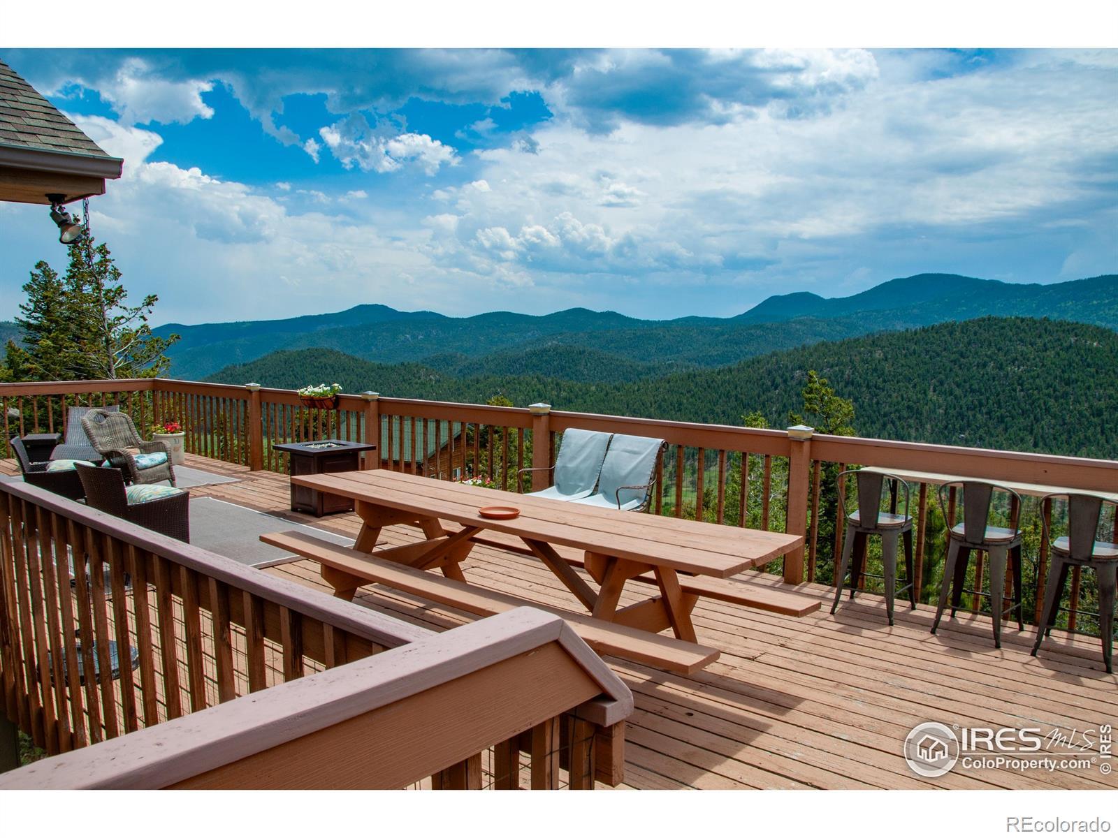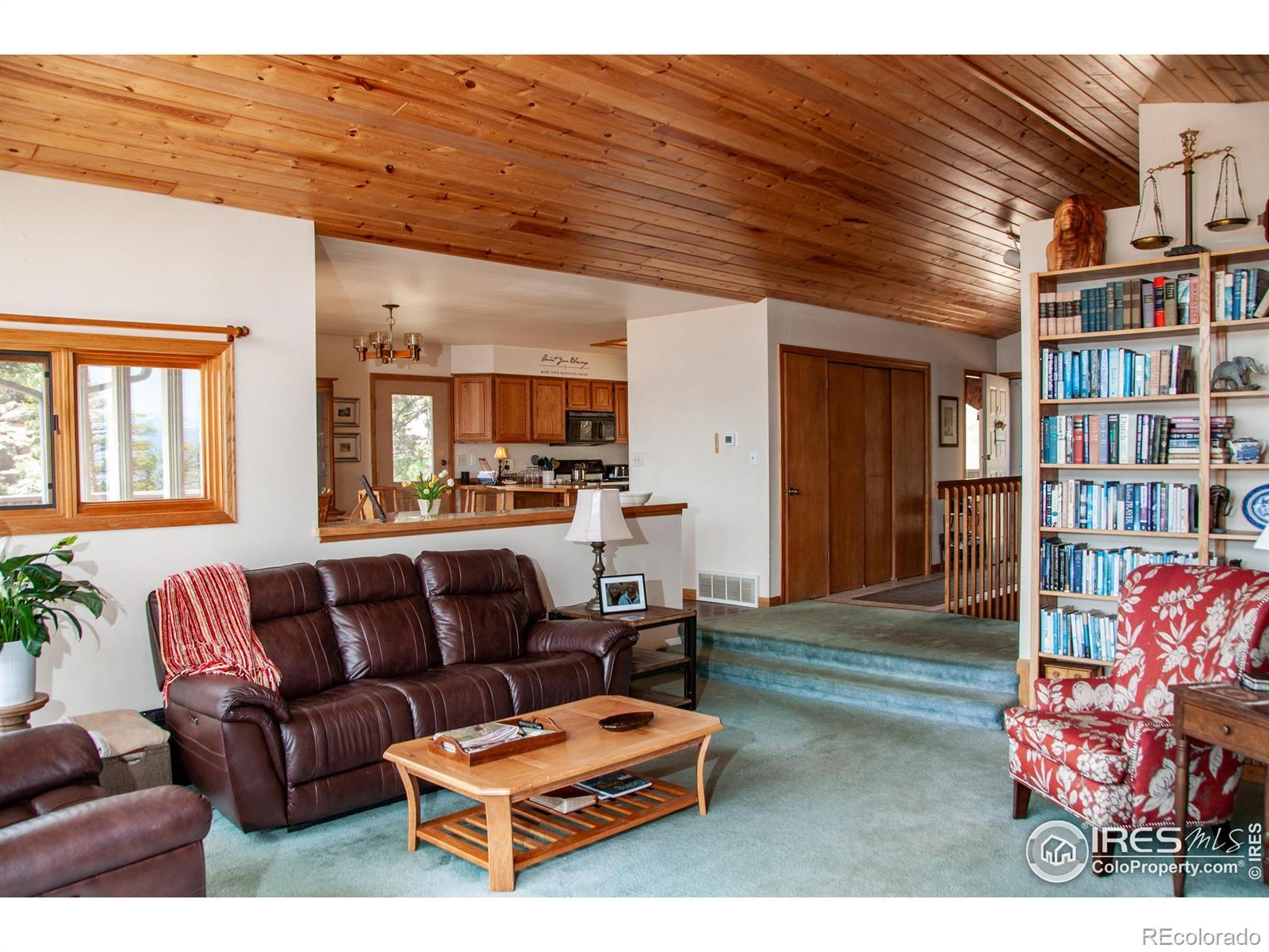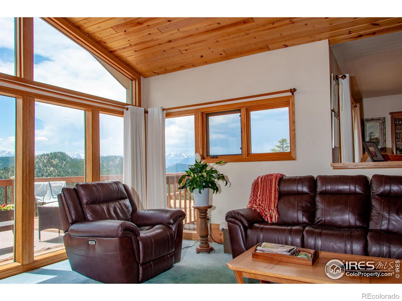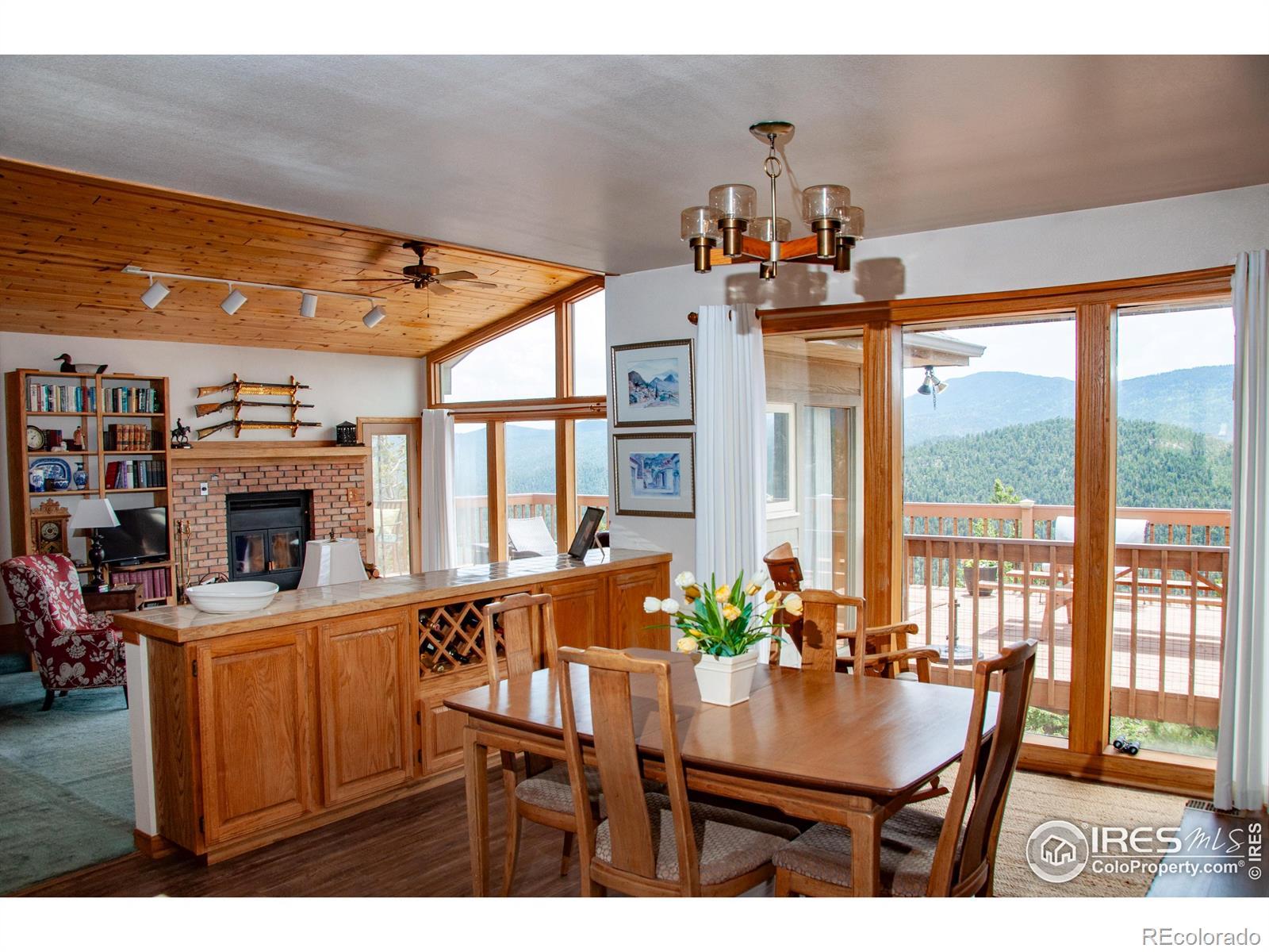 Discover mountain living at its finest in this beautifully designed 3-bedroom, 3-bathroom home, offering 2,640 finished square feet of versatile space on 1.2 acres of scenic land. Just minutes from downtown Estes Park and the gateway to Rocky Mountain National Park, this tranquil retreat boasts stunning, unobstructed views of Longs Peak and effortless access to the great outdoors.Ideal for multi-generational living, entertaining, or potential rental income, the home features full kitchens on both levels and two expansive decks that provide front-row seats to daily wildlife sightings-including elk, deer, turkeys, and marmots.The main level welcomes you with a light-filled open floor plan, vaulted ceilings, and large picture windows that frame the surrounding natural beauty. A cozy fireplace anchors the living space, while the adjacent kitchen and dining area offer ample cabinetry and direct access to a spacious 45' x 12' deck which is perfect for outdoor dining, entertaining, or simply soaking in the mountain views. The primary bedroom and full bath are also conveniently located on this level. Downstairs, the fully finished lower level includes two additional bedrooms, a full bathroom, a large family or recreation room, and a second well-equipped kitchen. Step outside to a second deck with peaceful forest views, adding even more space to relax and enjoy the serenity of the setting.This is a rare opportunity to own a private, well-maintained mountain home that truly embodies the Colorado lifestyle. Don't miss your chance to make this peaceful retreat your own.