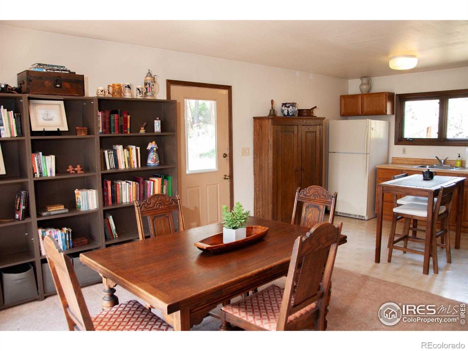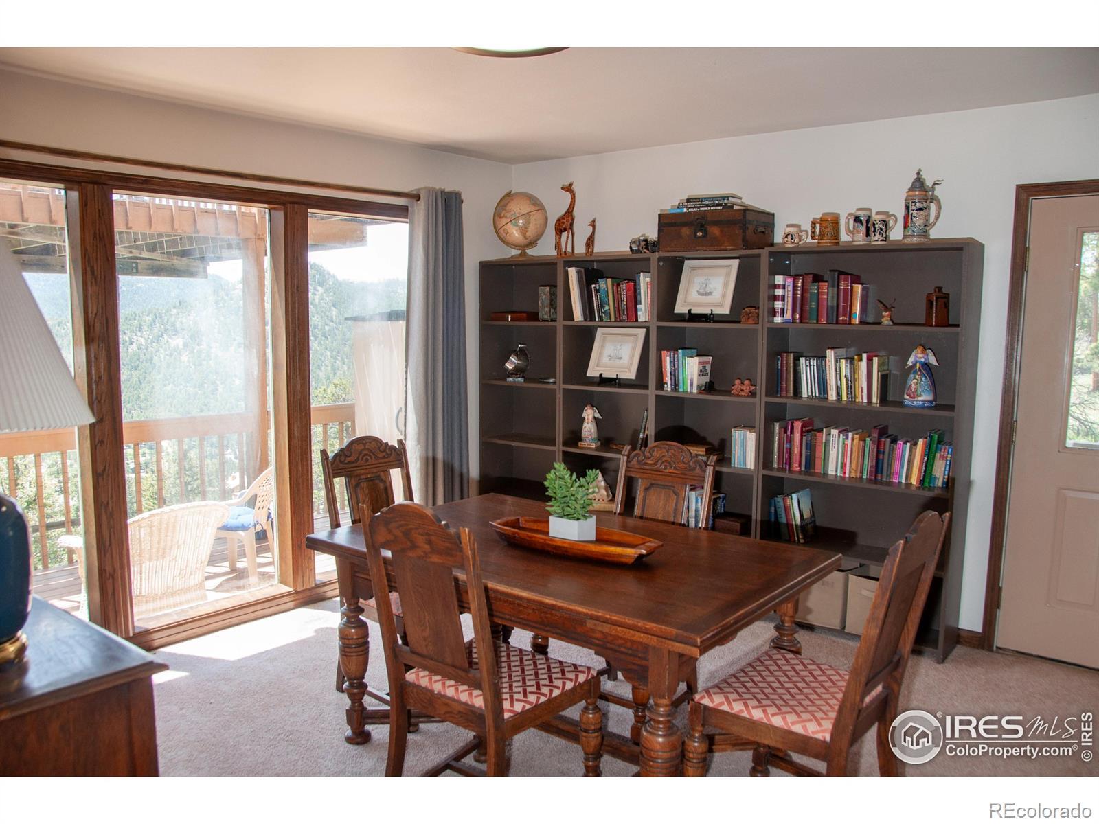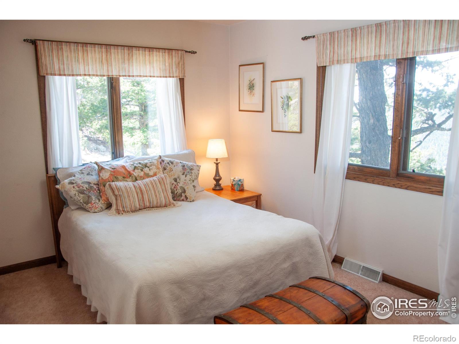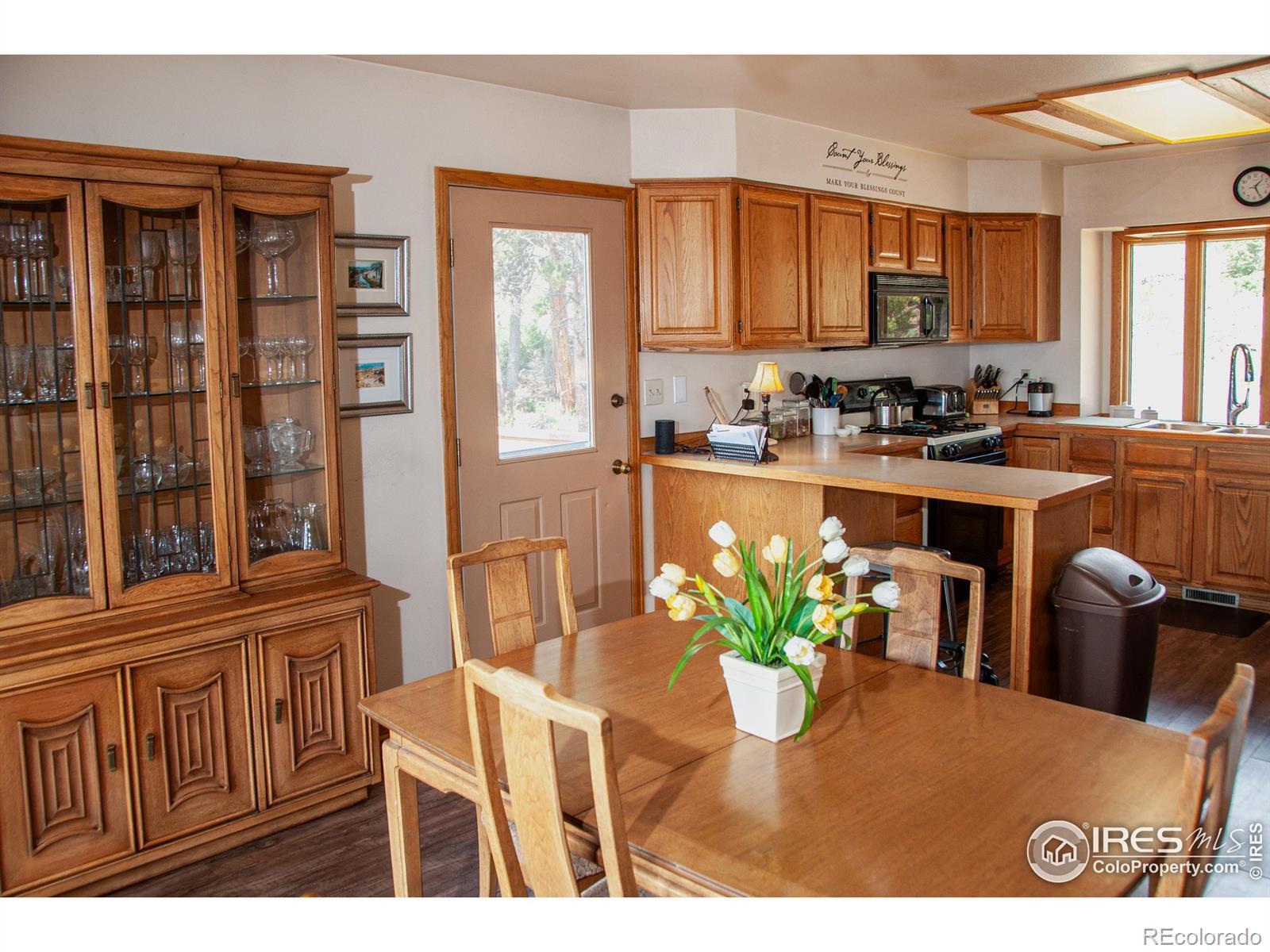 Discover mountain living at its finest in this beautifully designed 3-bedroom, 3-bathroom home, offering 2,640 finished square feet of versatile space on 1.2 acres of scenic land. Just minutes from downtown Estes Park and the gateway to Rocky Mountain National Park, this tranquil retreat boasts stunning, unobstructed views of Longs Peak and effortless access to the great outdoors.Ideal for multi-generational living, entertaining, or potential rental income, the home features full kitchens on both levels and two expansive decks that provide front-row seats to daily wildlife sightings-including elk, deer, turkeys, and marmots.The main level welcomes you with a light-filled open floor plan, vaulted ceilings, and large picture windows that frame the surrounding natural beauty. A cozy fireplace anchors the living space, while the adjacent kitchen and dining area offer ample cabinetry and direct access to a spacious 45' x 12' deck which is perfect for outdoor dining, entertaining, or simply soaking in the mountain views. The primary bedroom and full bath are also conveniently located on this level. Downstairs, the fully finished lower level includes two additional bedrooms, a full bathroom, a large family or recreation room, and a second well-equipped kitchen. Step outside to a second deck with peaceful forest views, adding even more space to relax and enjoy the serenity of the setting.This is a rare opportunity to own a private, well-maintained mountain home that truly embodies the Colorado lifestyle. Don't miss your chance to make this peaceful retreat your own.