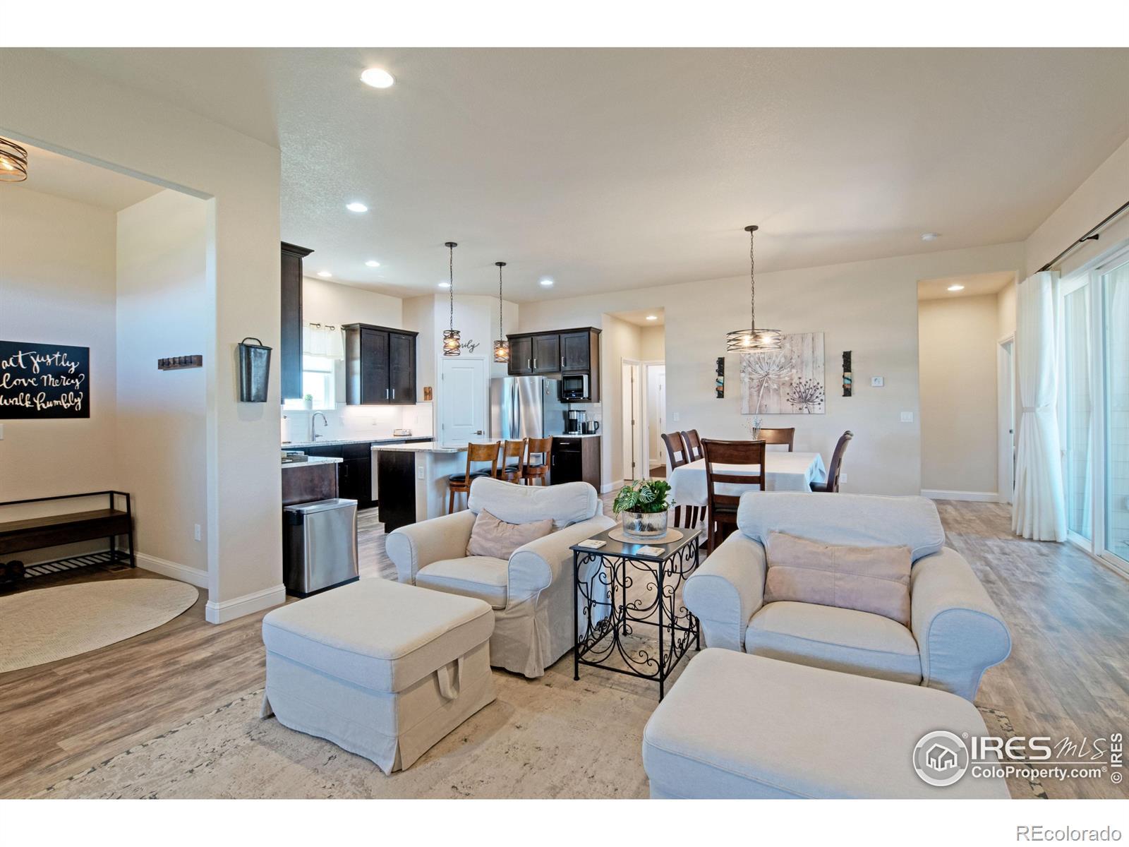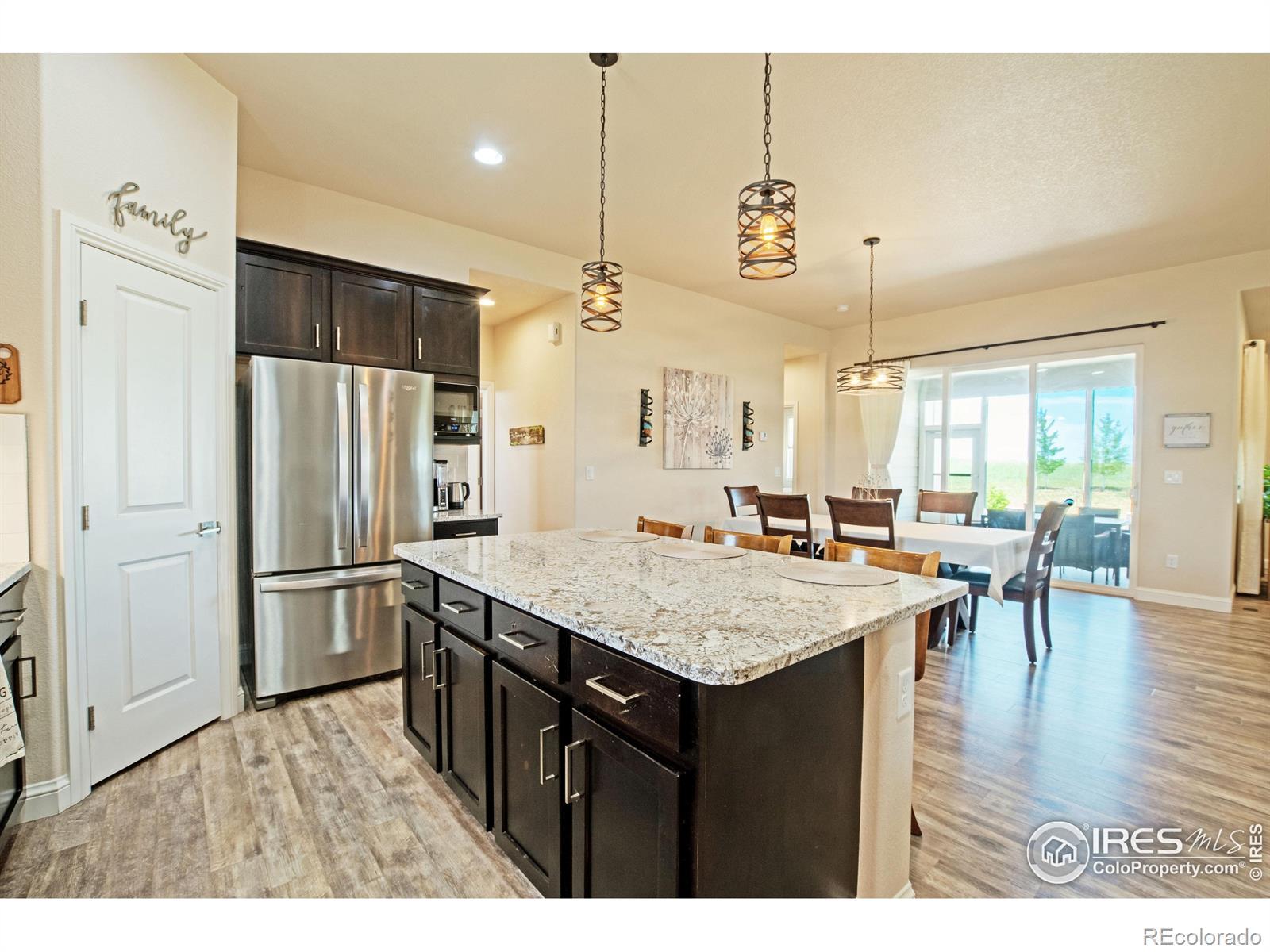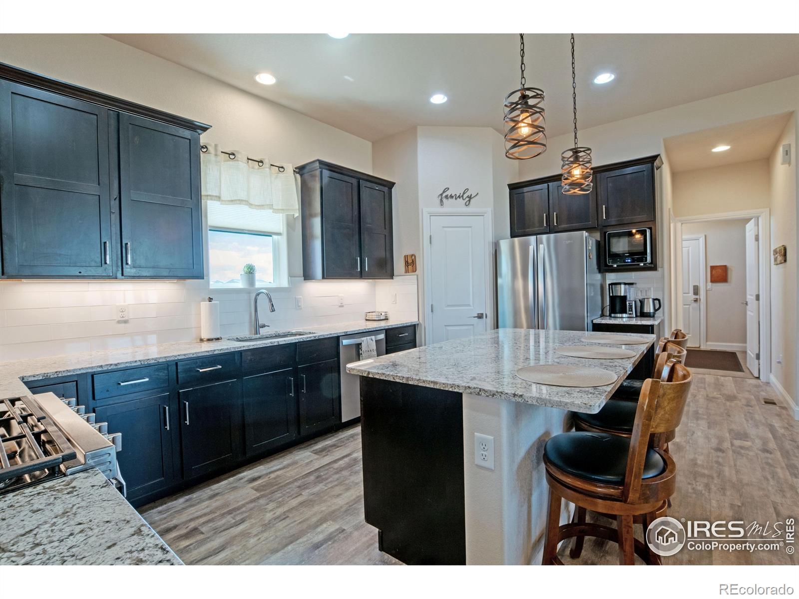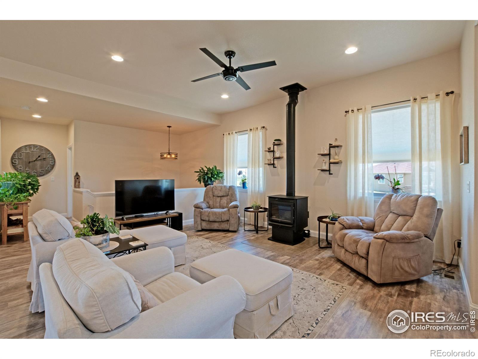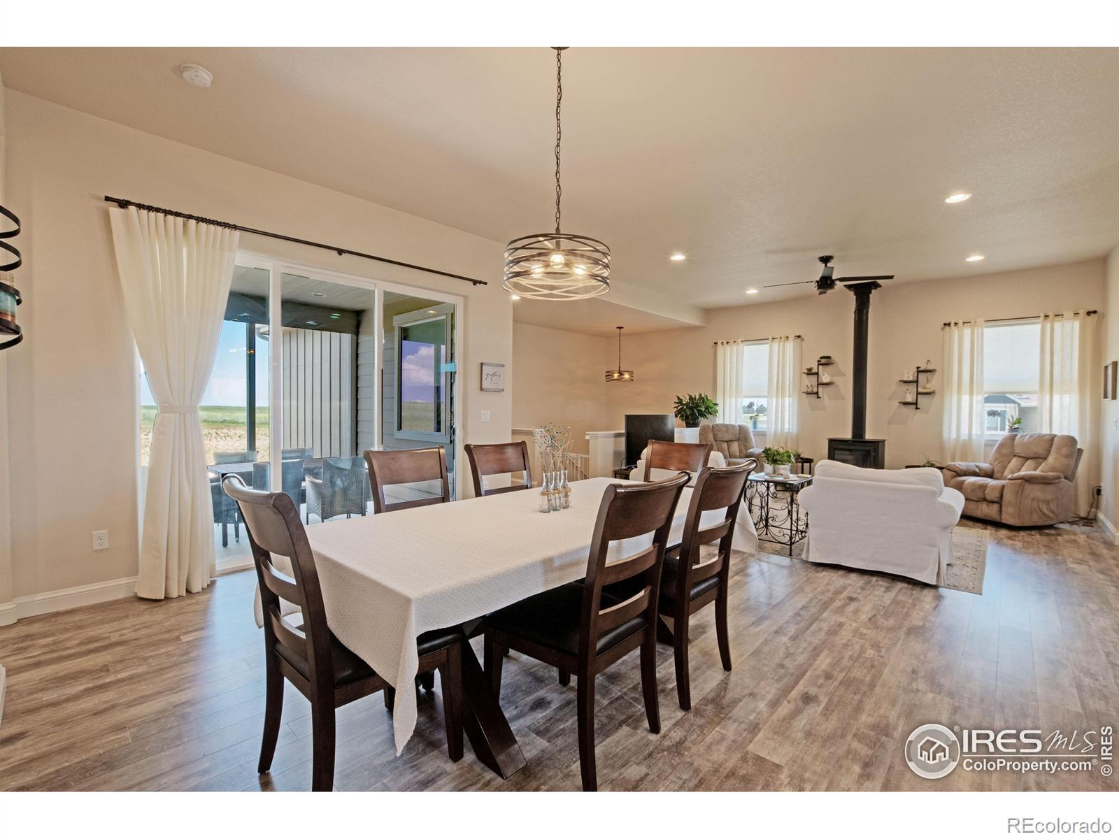 Incredible acreage property with a custom-built home and room for all your passions! Immaculate 4-bd, 4-bath home featuring spacious, open-concept living with high ceilings, 2 main floor masters w/ ensuites on opposite ends of the home, a fully finished basement w/ 2 generous sized bedrooms, bath, a great room, full office, dedicated exercise room with workout mat flooring, & wet bar. 10' ceilings on the main floor and 9' in basement. Oversized, well insulated 3-car garage, roof certified w/high impact shingles. Offering country living at its finest sitting on over 1 1/2 acres of land, a luxurious interior layout perfect for easy daily living and entertaining. Enjoy peaceful evenings in ultra private backyard and magnificent sunrises from the enclosed patio. Exceptional construction with auto-igniting energy saving wood-burning stove. The full water tap ensures low water bills, and superior insulation provides energy efficiency and low utility costs. The amenity-rich community includes sport courts, pool, fishing lake, camping areas, miles of scenic horse & hiking trails, cabanas, putting green, arena & round pen. This property is ready to accommodate your horses, vehicles, hobbies, and more! Approved for a 2,500 sq ft outbuilding, 1,100 sq ft barn, 720 sq ft garden shed, or even a pool! Don't miss this rare opportunity to own a property that offers privacy, flexibility, and a true peaceful countryside lifestyle under the starry skies! Potential to assume a VA loan 2.375 %. Weld County has approved Accessory Dwelling Units (ADU) also known as Casitas or Mother-in-law suites! Reach out to planning for details!