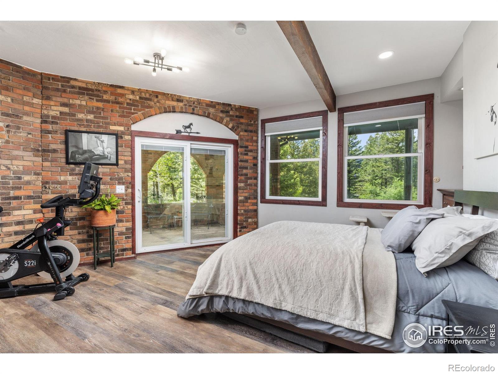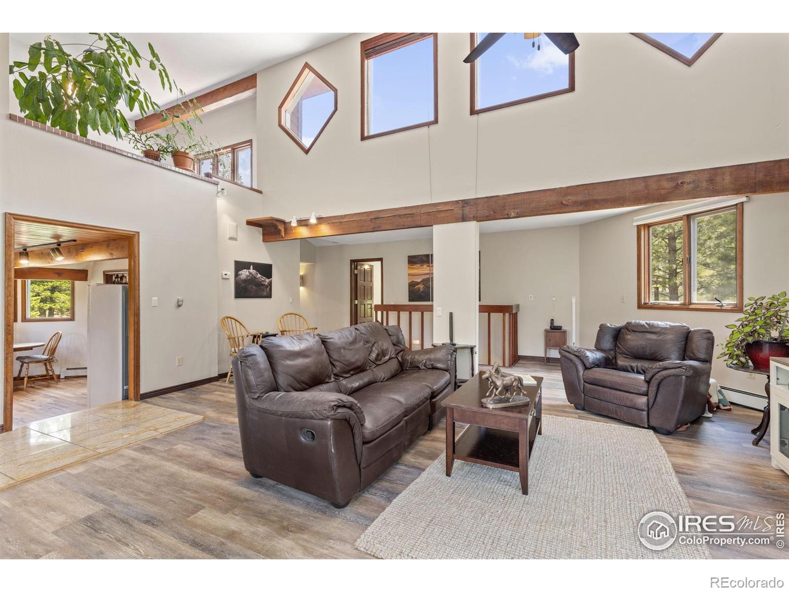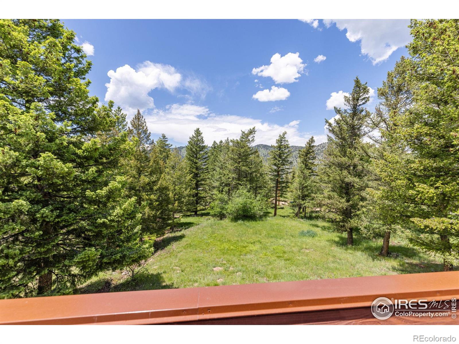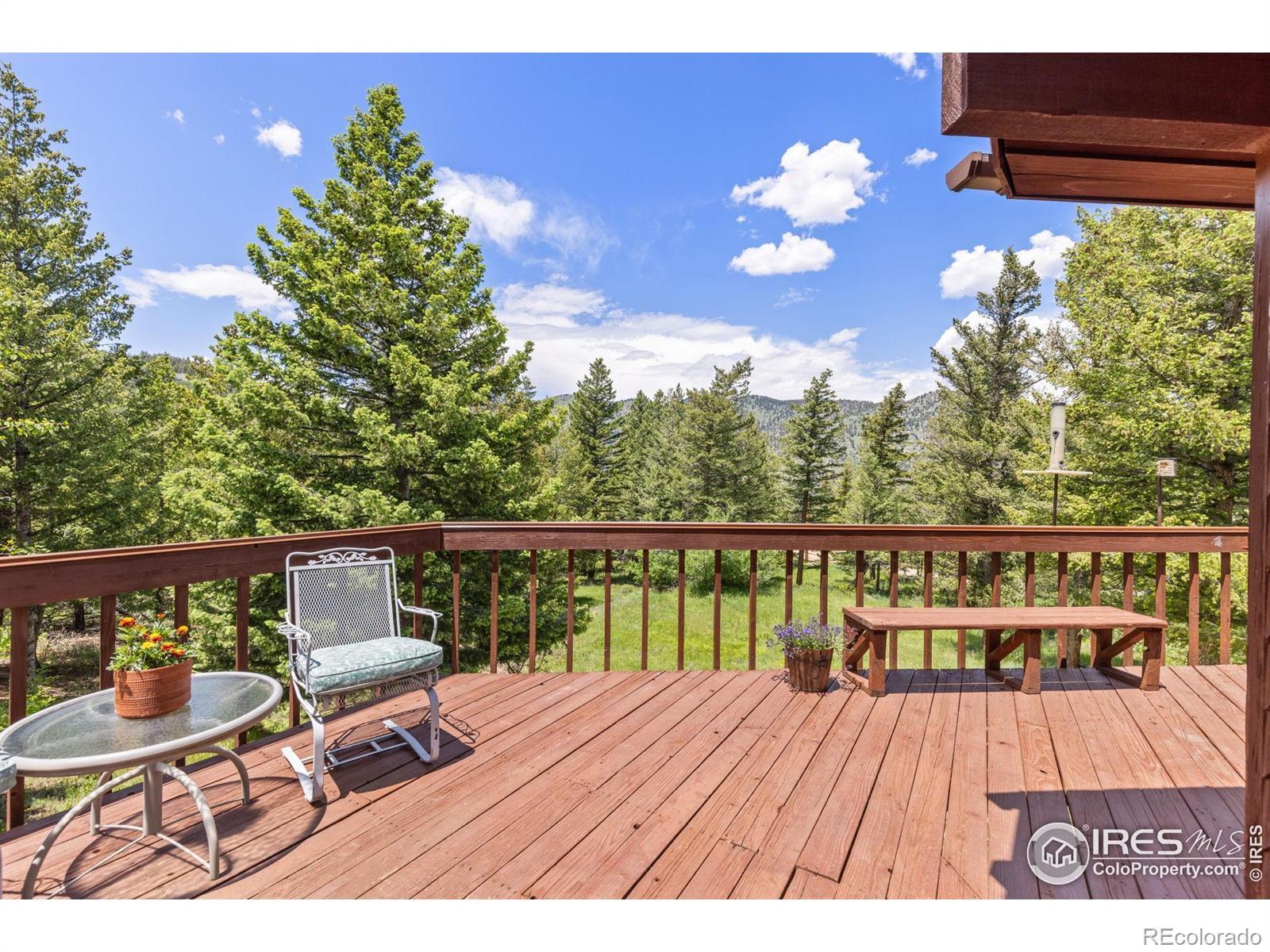 Private mountain escape in Boulder Heights! This secluded wooded lot has over 2 acres, foothills views, a meadow, rock outcroppings, and wildlife throughout. The bright open floorplan features a spectacular great room with walls of windows, vaulted ceilings, wood beams, updated flooring, and French doors leading to a beautiful area with an extended deck. The owner of 40 years has made many updates and the home has been lovingly maintained. The large eat-in kitchen is bright with a bay window, walk-in pantry and secondary storage closet. Each room in the house is open and filled with ample natural light. The Primary bedroom features a bay window and glass doors leading out to a private patio and hot tub space. The lofted bedroom could be used as an office or studio and has a mini split to maintain the perfect temperature. The walkout Lower Level is a flexible space that could be used as a second primary bedroom, an additional living area or an office with a private entrance. The room opens to a beautiful arched covered brick patio. Every aspect of the house was thoughtfully planned. There is another entrance from the front of the house leading to the mudroom/workshop/laundry room. Other features of the property include an enclosed fenced yard for pets to enjoy, a 220 square foot separate storage room at the back of the house, it is Wildfire Partners certified, and it has a large blacktop driveway that is flat, allowing easy access to the house year-round. Experience peace and tranquility in a stunning natural setting. The 3 outdoor living areas are perfect for entertaining or relaxing. Hike and bike in the 240-acre camp with private neighborhood member access. The house is a leisurely 10-minute drive on Boulder County maintained roads (Boulder Valley School Bus Route) to restaurants, coffee, and shopping. All information deemed reliable, but Buyer or Buyer agent to verify.
