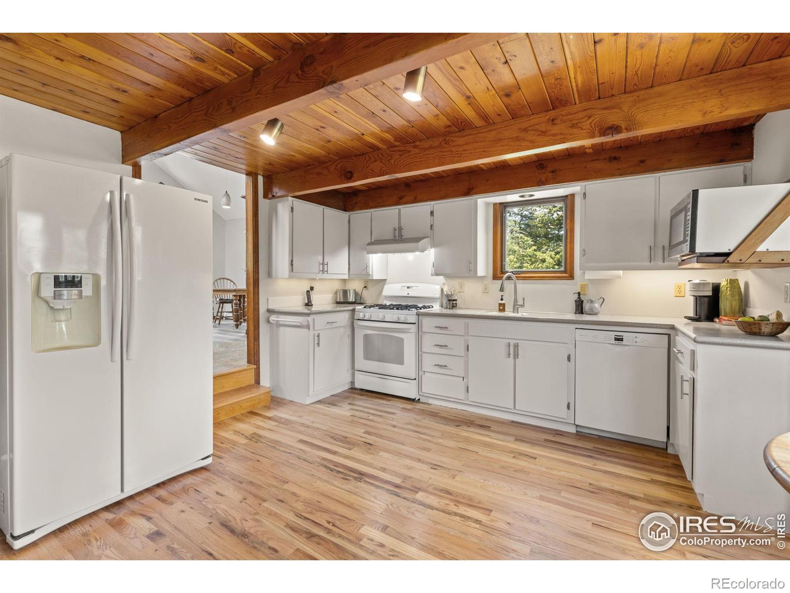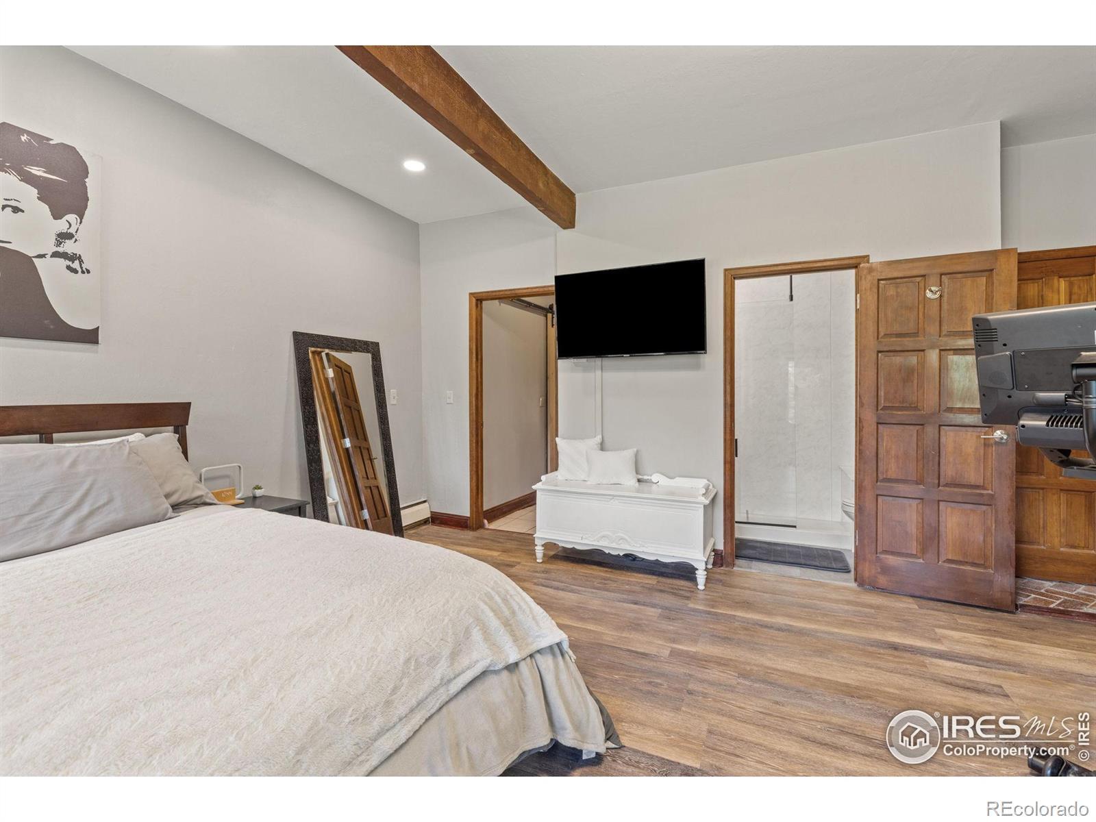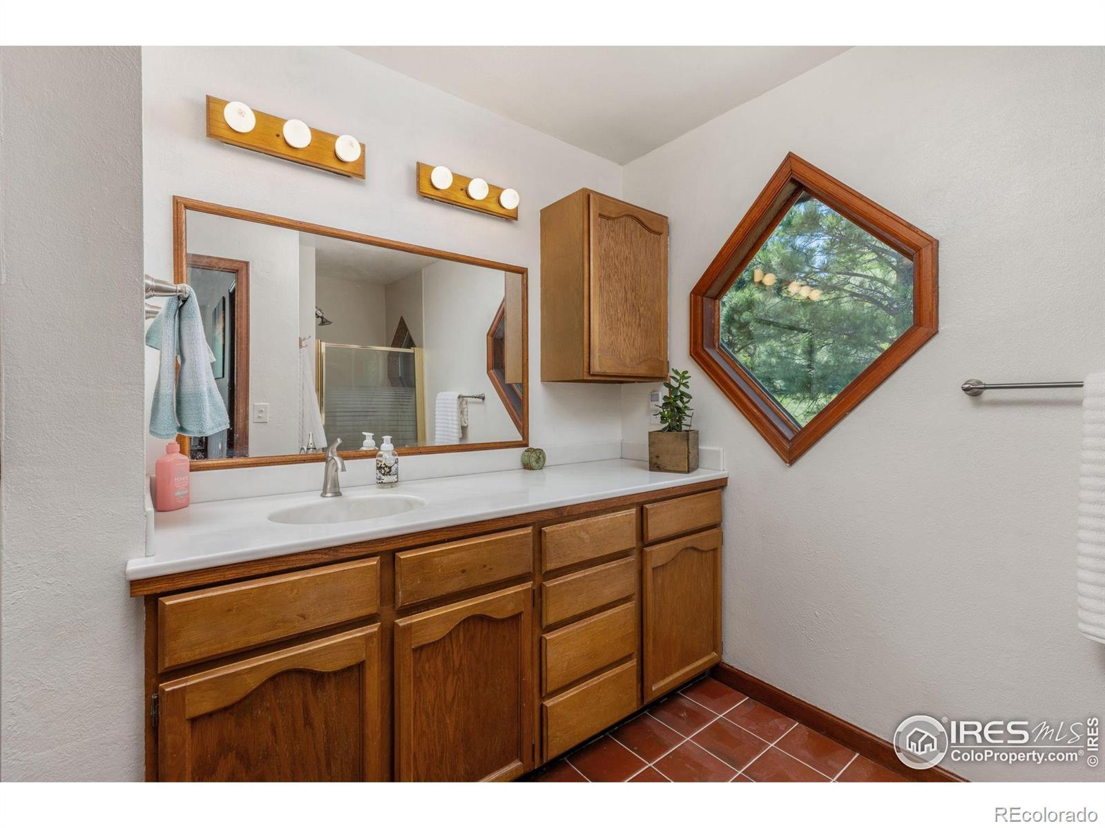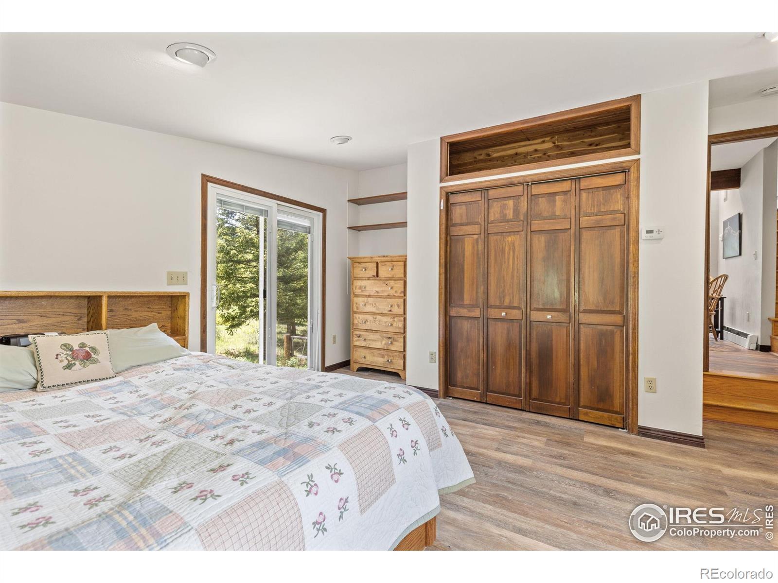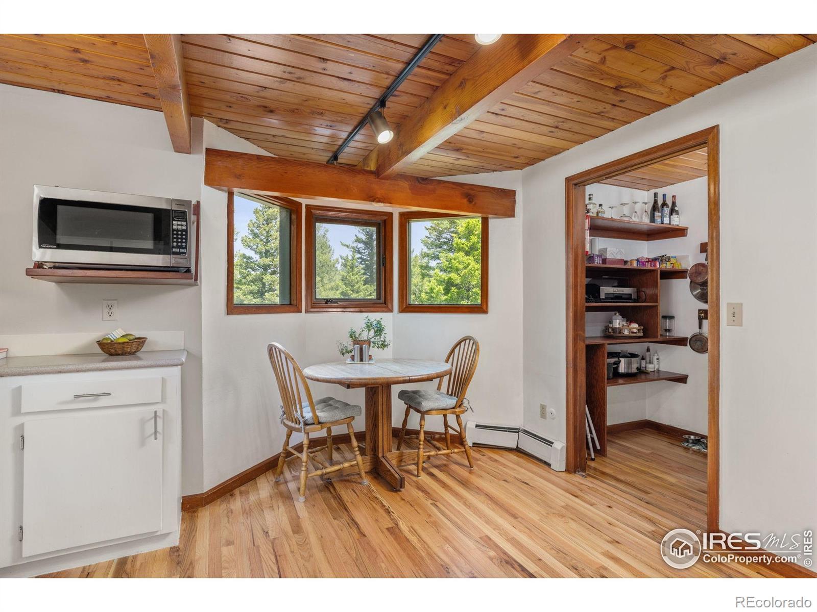 Private mountain escape in Boulder Heights! This secluded wooded lot has over 2 acres, foothills views, a meadow, rock outcroppings, and wildlife throughout. The bright open floorplan features a spectacular great room with walls of windows, vaulted ceilings, wood beams, updated flooring, and French doors leading to a beautiful area with an extended deck. The owner of 40 years has made many updates and the home has been lovingly maintained. The large eat-in kitchen is bright with a bay window, walk-in pantry and secondary storage closet. Each room in the house is open and filled with ample natural light. The Primary bedroom features a bay window and glass doors leading out to a private patio and hot tub space. The lofted bedroom could be used as an office or studio and has a mini split to maintain the perfect temperature. The walkout Lower Level is a flexible space that could be used as a second primary bedroom, an additional living area or an office with a private entrance. The room opens to a beautiful arched covered brick patio. Every aspect of the house was thoughtfully planned. There is another entrance from the front of the house leading to the mudroom/workshop/laundry room. Other features of the property include an enclosed fenced yard for pets to enjoy, a 220 square foot separate storage room at the back of the house, it is Wildfire Partners certified, and it has a large blacktop driveway that is flat, allowing easy access to the house year-round. Experience peace and tranquility in a stunning natural setting. The 3 outdoor living areas are perfect for entertaining or relaxing. Hike and bike in the 240-acre camp with private neighborhood member access. The house is a leisurely 10-minute drive on Boulder County maintained roads (Boulder Valley School Bus Route) to restaurants, coffee, and shopping. All information deemed reliable, but Buyer or Buyer agent to verify.