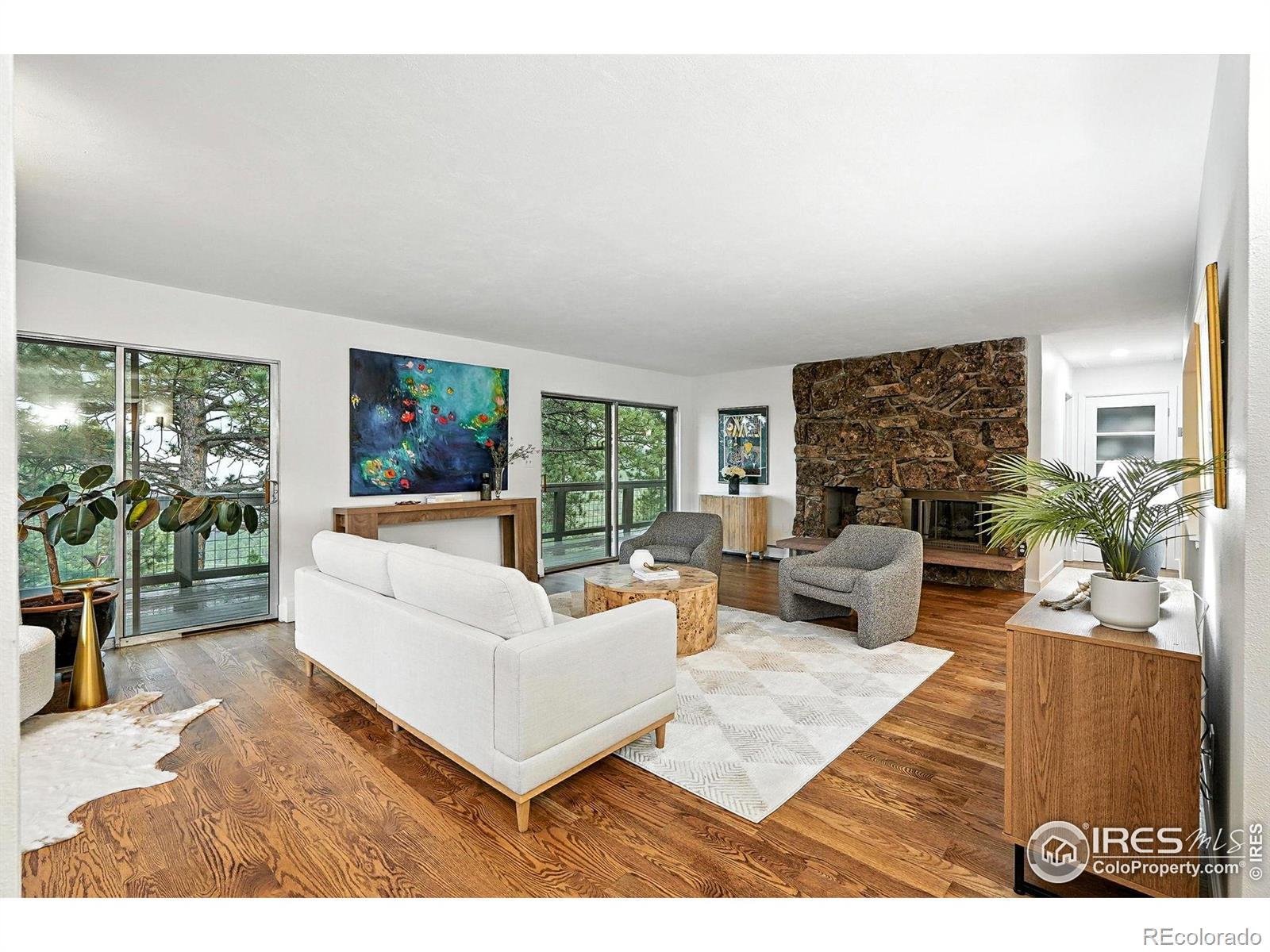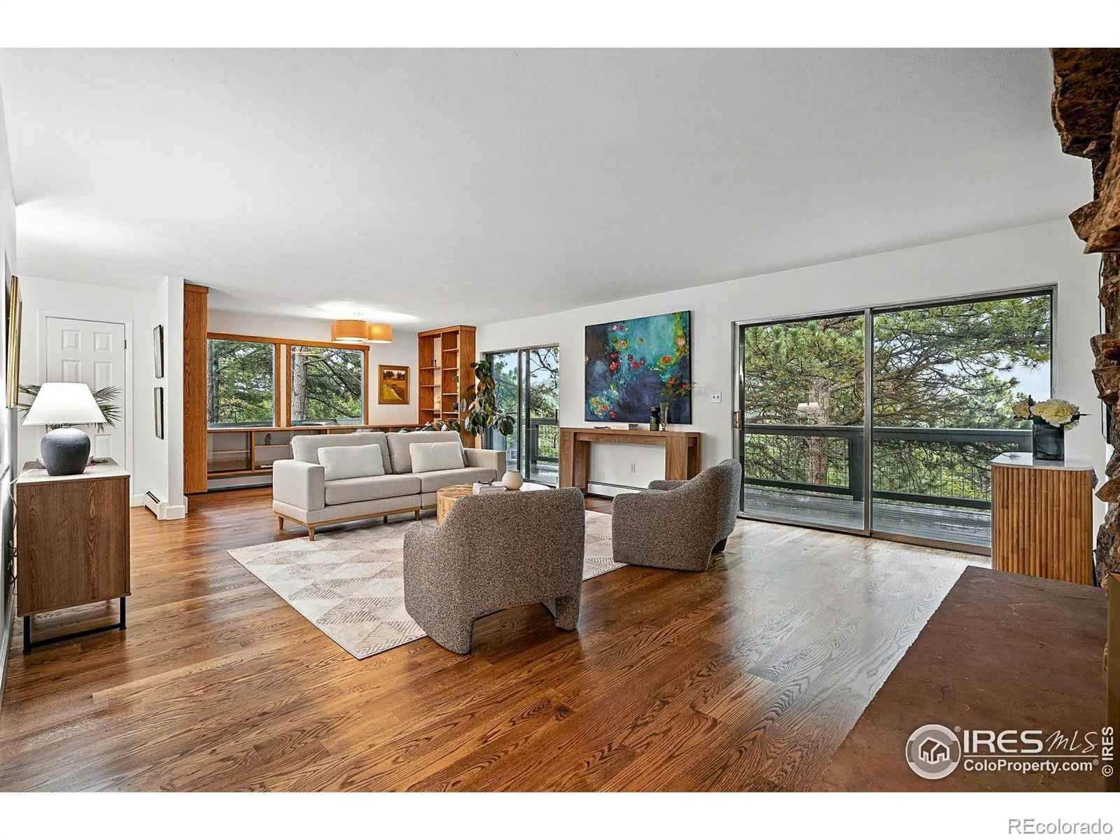 Welcome to best value and location available in Pine Brook Hills! Escape where mountain serenity meets unmatched convenience! Just a 4-minute drive from Broadway and 10 minutes to Pearl St! This ranch-style home offers a walk-out basement with the perfect blend of peaceful retreat and city access.Enjoy easy main floor living with a primary suite and laundry all on one level. The primary bedroom offers 2 closets, a spa like bathroom, and a secluded office! Freshly refinished hardwood floors, brand new paint inside and out, and fully renovated bathrooms and basement add modern comfort and style while also providing flexible living and entertaining spaces.Cozy up by one of two fireplaces (gas upstairs and wood burning lower level) or soak in the twinkling city lights of downtown Boulder from your deck. The kitchen is ready for your personal touch and creativity. Bonus features include a 4 car garage (2 bay tandem) with two additional workshop areas that are perfect for hobbies, gear, or projects. There is ample storage inside and out. The backyard pump track that just needs a quick refresh to be ready for fun.This is your chance to own a mountain-view home with city proximity! Wildfire partners was completed in 2021, the roof was replaced in 2020, and septic smart will be started once the home is under contract!