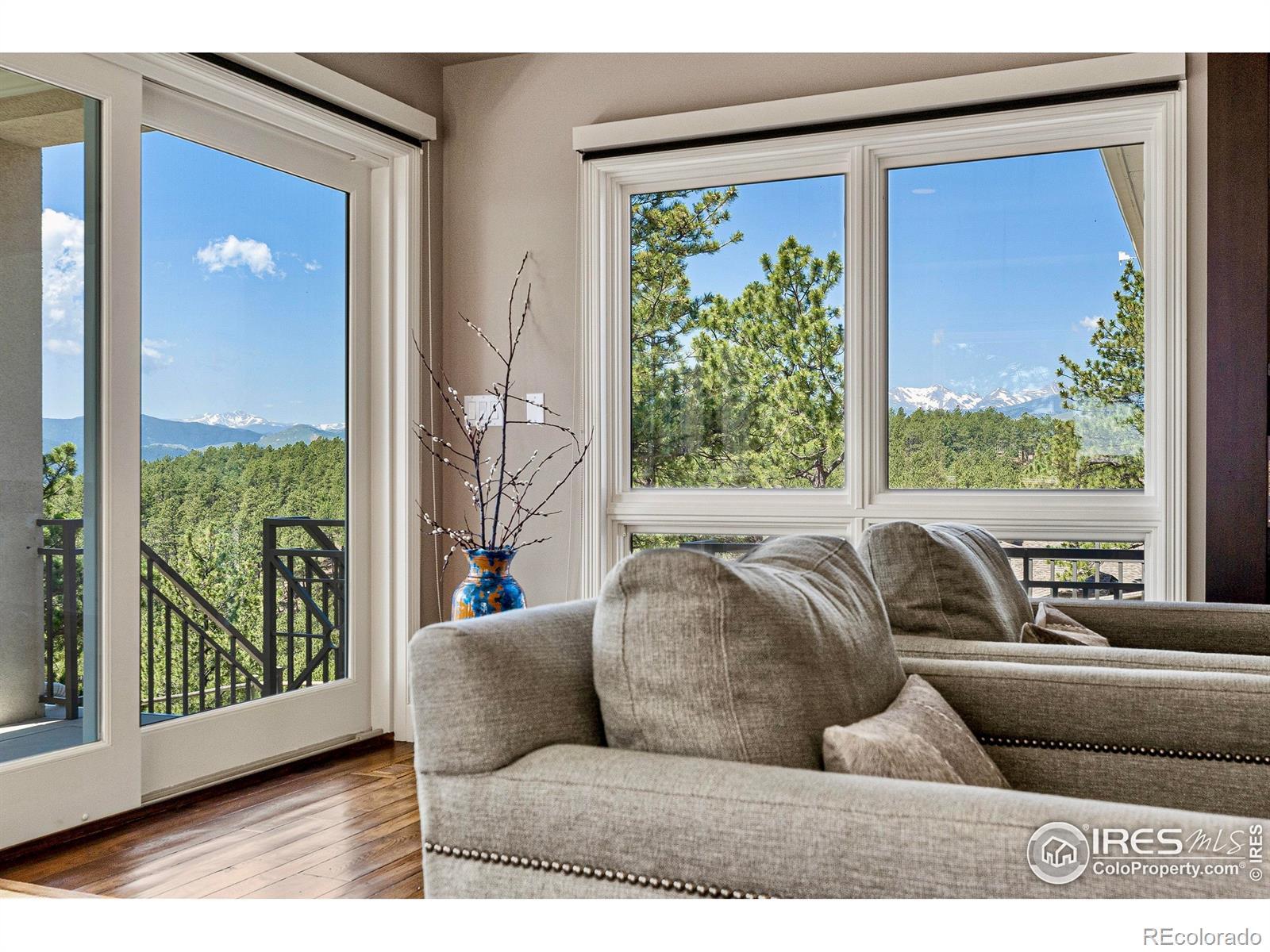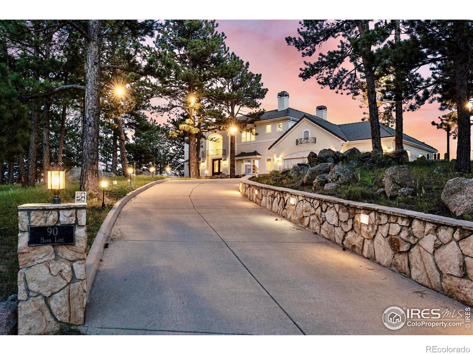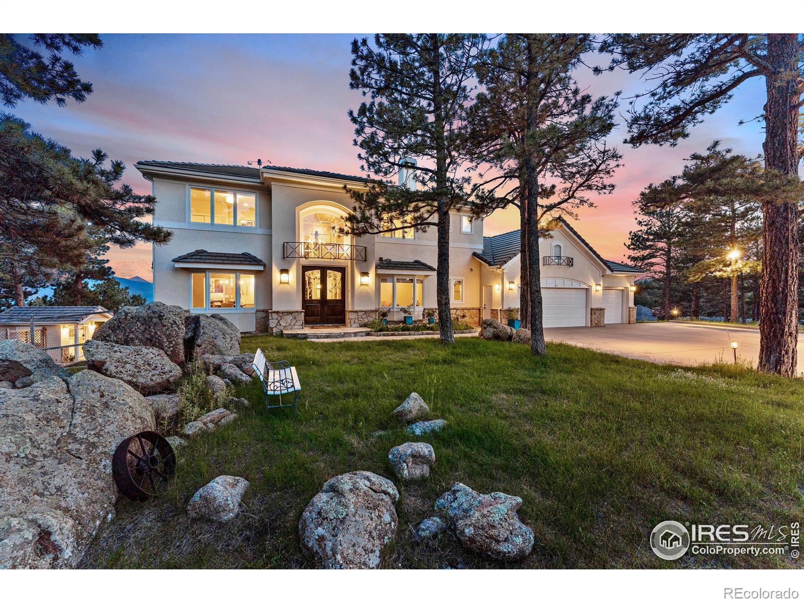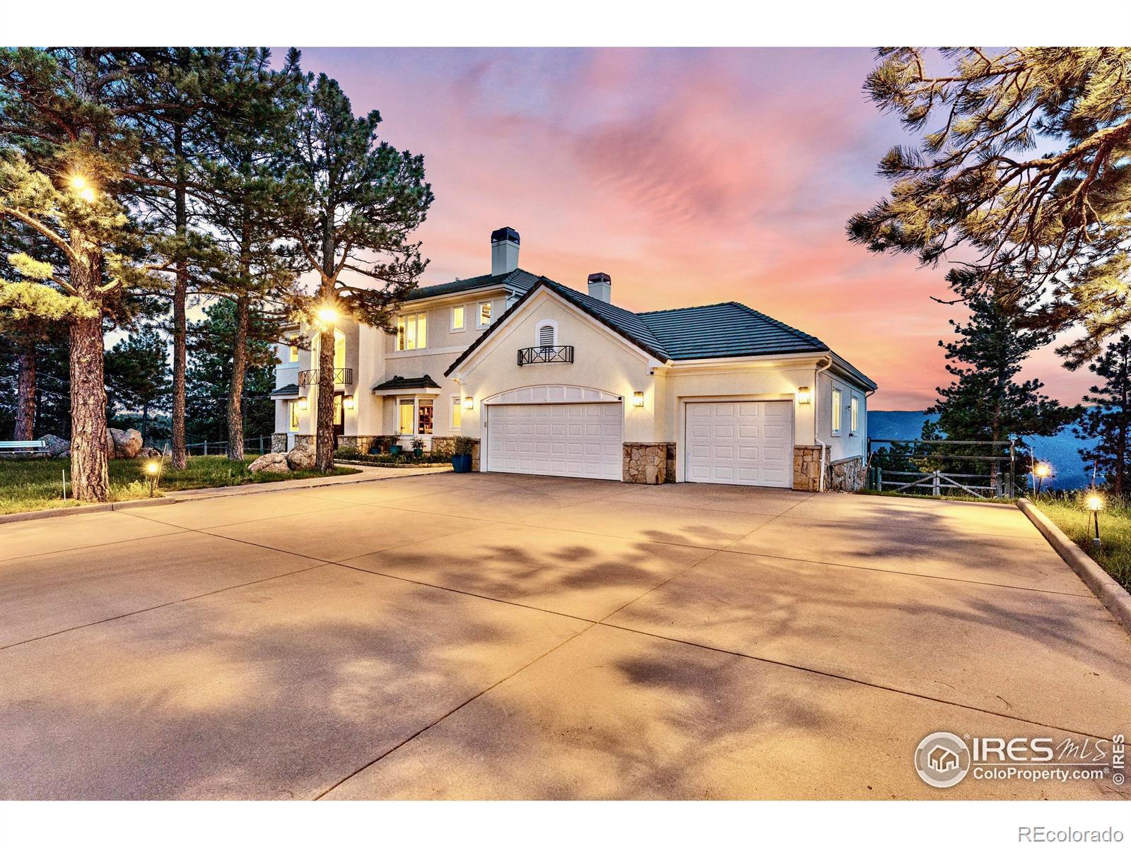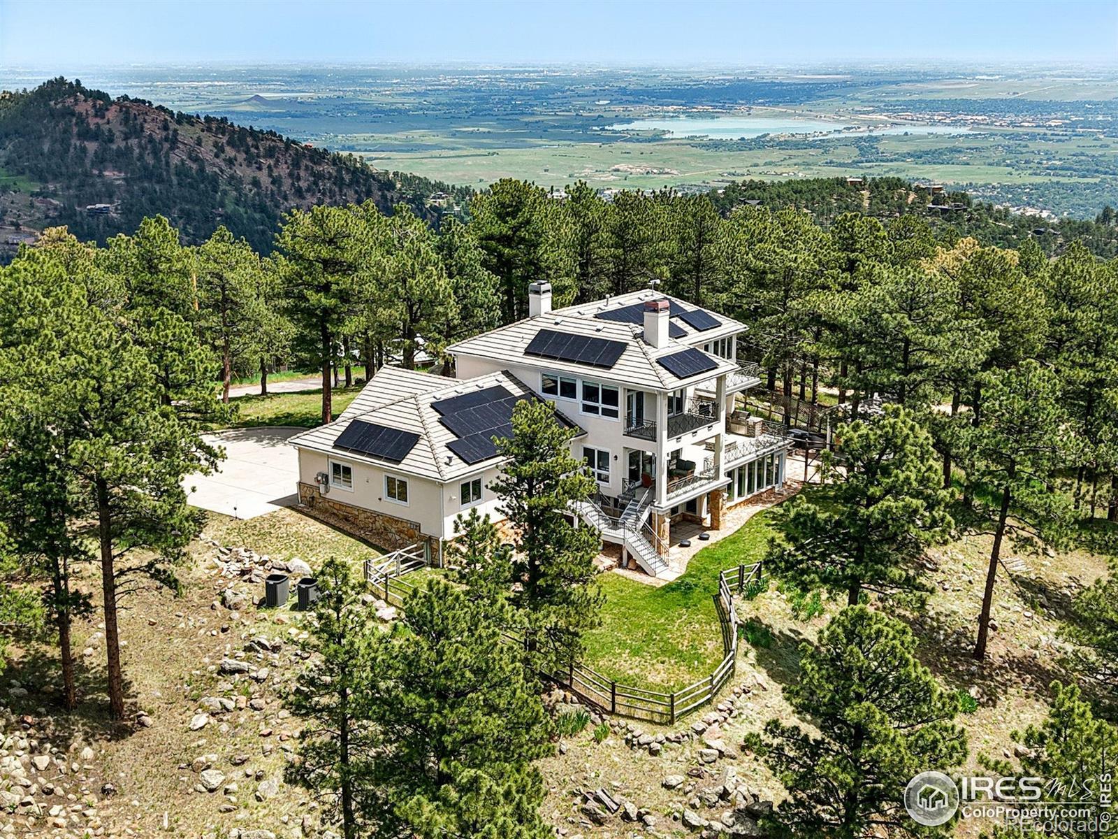 TOP OF THE WORLD! Elevate your lifestyle at this extraordinary 6-acre hilltop estate, where sweeping views of the Continental Divide, Boulder, and even the Denver skyline stretch before you. Privately perched with easy access at the pinnacle of prestigious Pine Brook Hills, this home is a sanctuary of seclusion, sophistication, and style. Step through custom double doors into soaring ceilings and sunlit spaces wrapped in rich hickory flooring. Every detail speaks of quality-from the custom millwork to the hand-selected finishes that define each elegant room. The heart of the home is a chef's dream: a designer kitchen outfitted with Wolf and Sub-Zero appliances, custom cabinetry, Cambria Inverness Frost Quartz and seamless indoor-outdoor flow for effortless entertaining. In the living room, a dramatic wall of windows frames breathtaking, front-row views of the Rockies. Upstairs, the luxurious primary suite is a world of its own, surrounded by sublime 270-degree views the video tour only begins to capture, and complete with a private terrace, wet bar, and spa-worthy 5-piece bath with radiant heated floors. The walkout lower level is an entertainer's paradise featuring a rec room, sunroom, wine cellar, and a second primary suite-ideal for guests. Two laundry rooms, a private office with its own terrace, wired speakers throughout, a 3-car oversized heated garage with built-in workshop and top-quality upgrades, including appliances and a 16.4kWh solar PV system with battery backup and transferable warranties, make this home as functional as it is stunning. Outside, breathtaking, easy-to-maintain grounds surround the property. A gas fire pit and multiple terraces create the perfect backdrop for unforgettable gatherings or peaceful solitude under the stars. All are just 15 minutes from downtown Boulder. As the video tour highlights, this is more than a home. It's a private hilltop retreat. A lifestyle. A legacy.