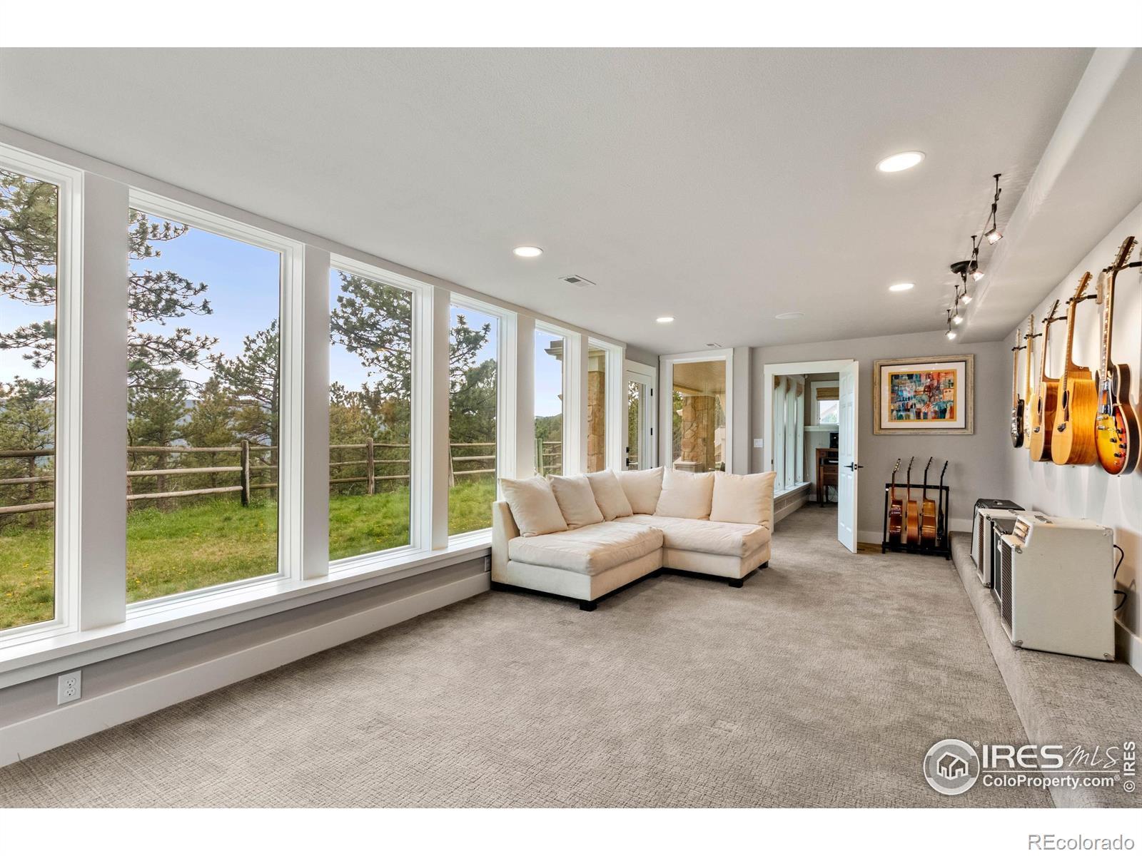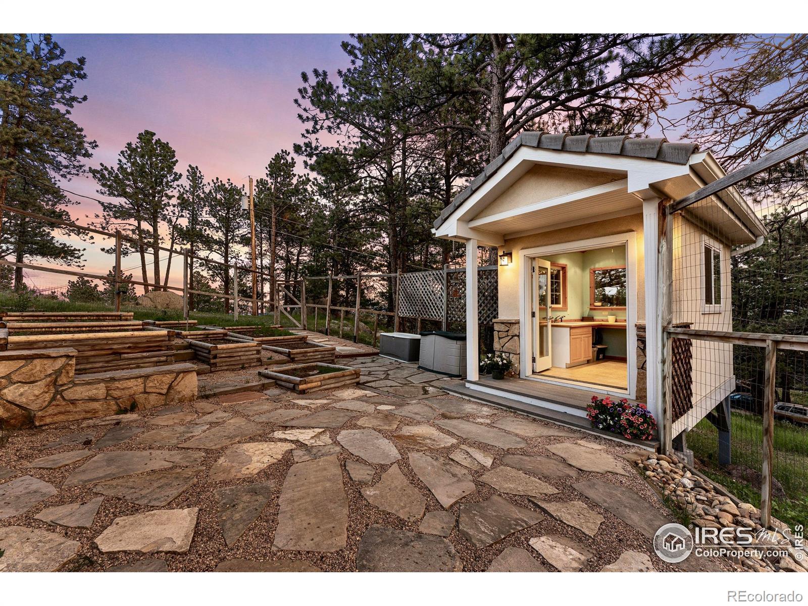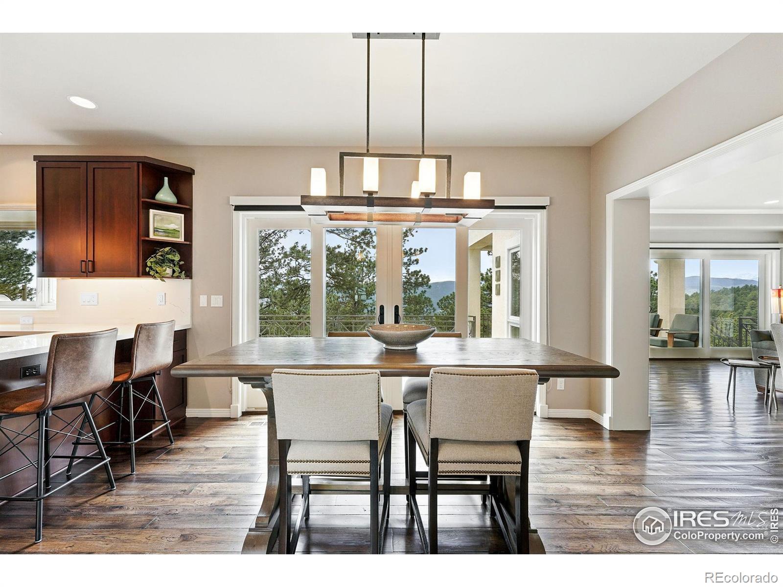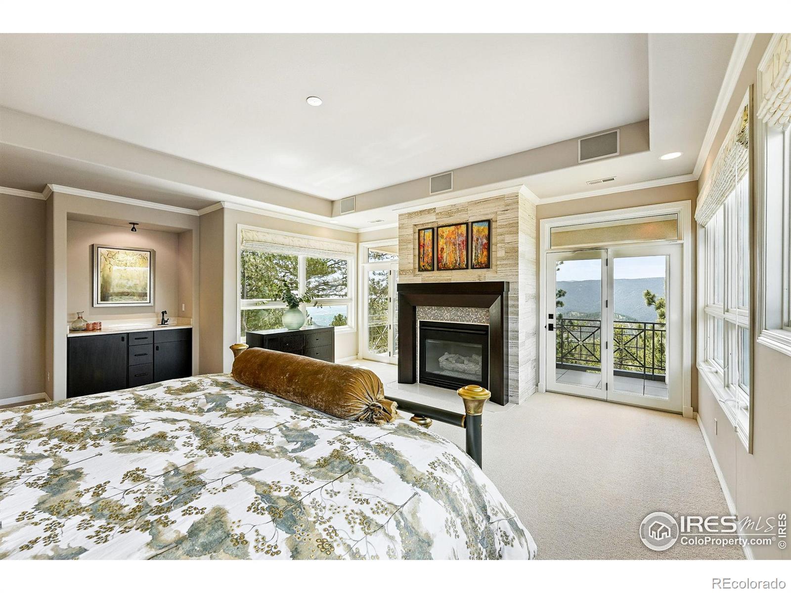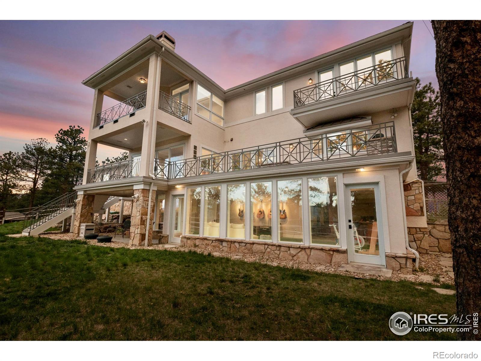 TOP OF THE WORLD! Elevate your lifestyle at this extraordinary 6-acre hilltop estate, where sweeping views of the Continental Divide, Boulder, and even the Denver skyline stretch before you. Privately perched with easy access at the pinnacle of prestigious Pine Brook Hills, this home is a sanctuary of seclusion, sophistication, and style. Step through custom double doors into soaring ceilings and sunlit spaces wrapped in rich hickory flooring. Every detail speaks of quality-from the custom millwork to the hand-selected finishes that define each elegant room. The heart of the home is a chef's dream: a designer kitchen outfitted with Wolf and Sub-Zero appliances, custom cabinetry, Cambria Inverness Frost Quartz and seamless indoor-outdoor flow for effortless entertaining. In the living room, a dramatic wall of windows frames breathtaking, front-row views of the Rockies. Upstairs, the luxurious primary suite is a world of its own, surrounded by sublime 270-degree views the video tour only begins to capture, and complete with a private terrace, wet bar, and spa-worthy 5-piece bath with radiant heated floors. The walkout lower level is an entertainer's paradise featuring a rec room, sunroom, wine cellar, and a second primary suite-ideal for guests. Two laundry rooms, a private office with its own terrace, wired speakers throughout, a 3-car oversized heated garage with built-in workshop and top-quality upgrades, including appliances and a 16.4kWh solar PV system with battery backup and transferable warranties, make this home as functional as it is stunning. Outside, breathtaking, easy-to-maintain grounds surround the property. A gas fire pit and multiple terraces create the perfect backdrop for unforgettable gatherings or peaceful solitude under the stars. All are just 15 minutes from downtown Boulder. As the video tour highlights, this is more than a home. It's a private hilltop retreat. A lifestyle. A legacy.
