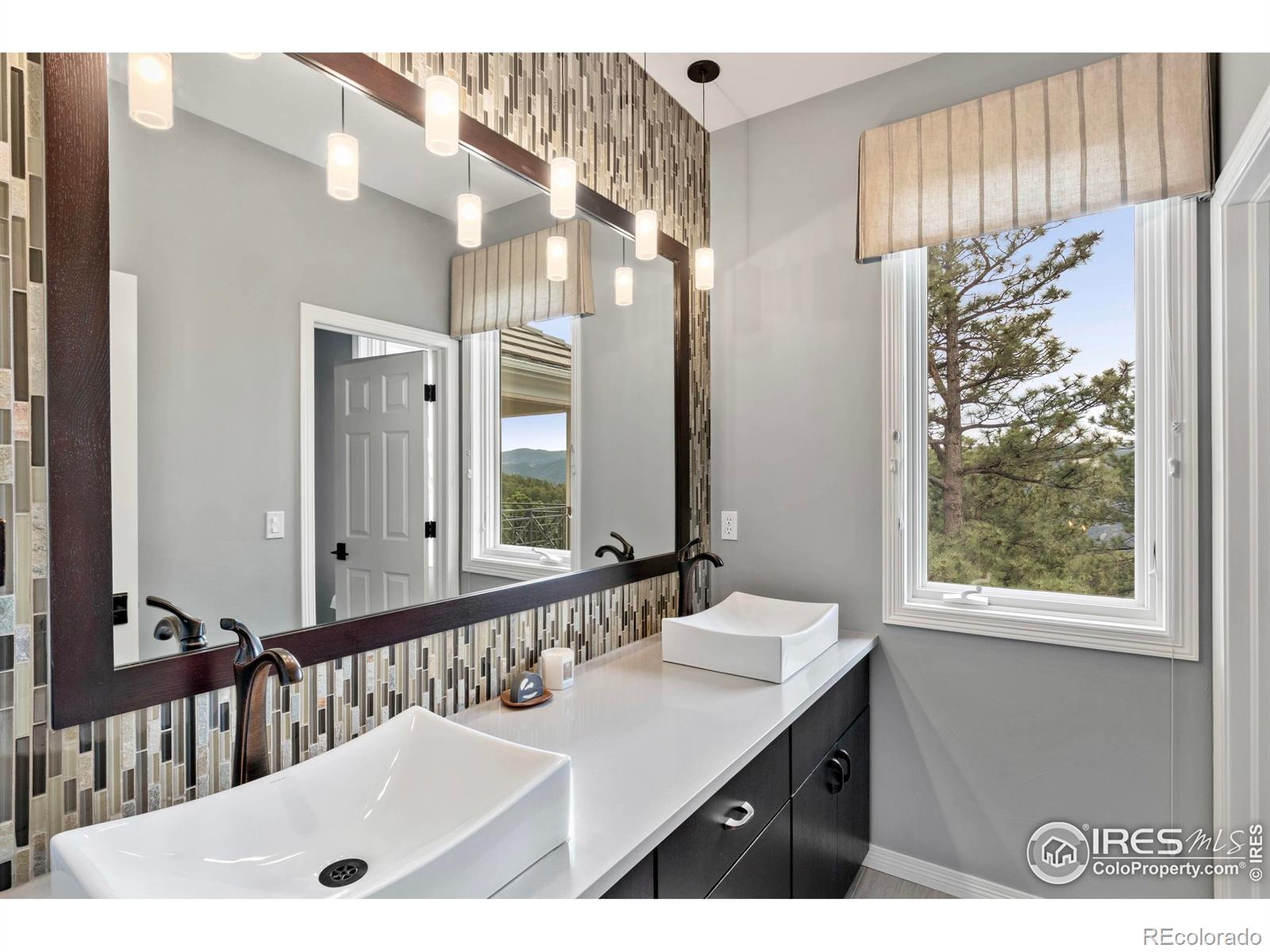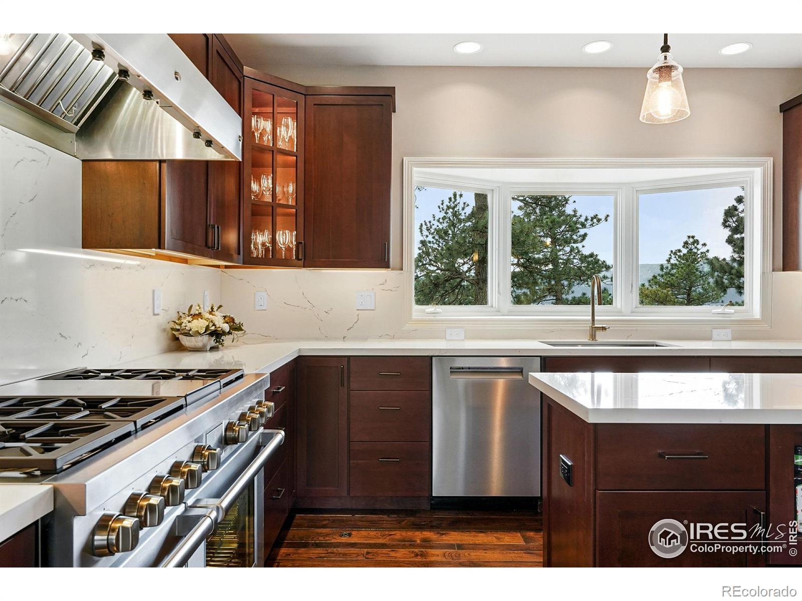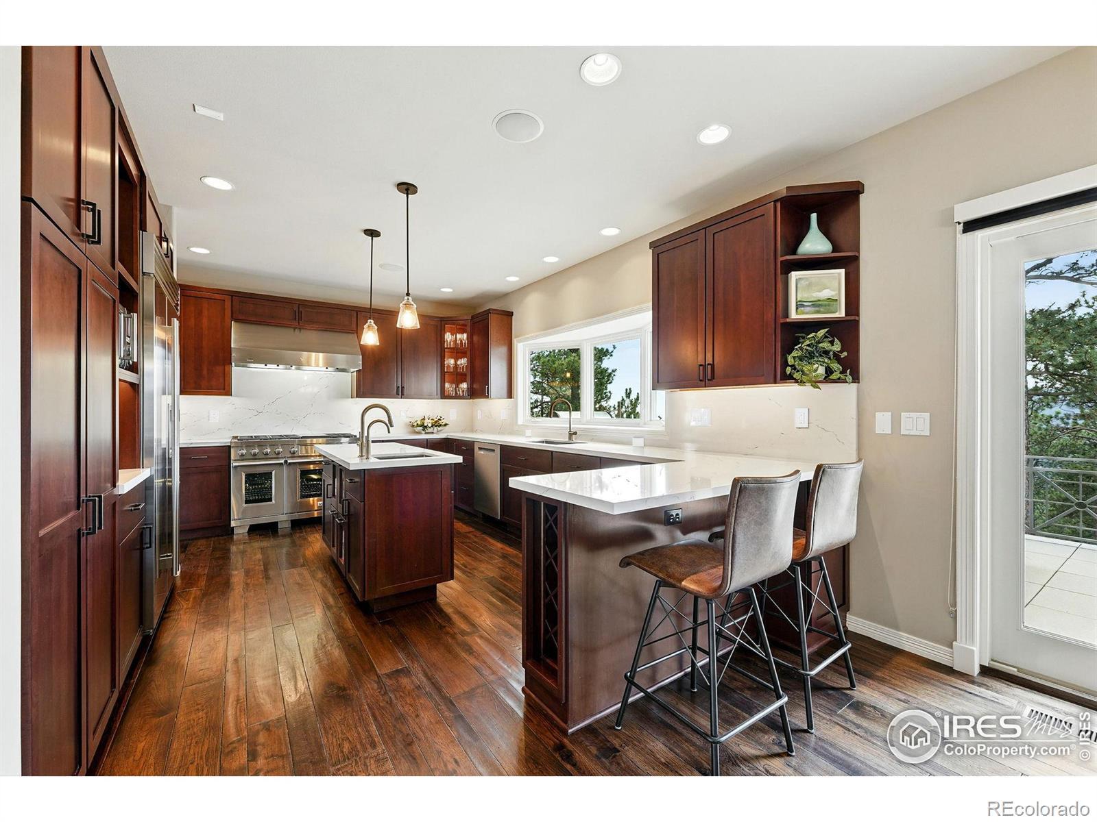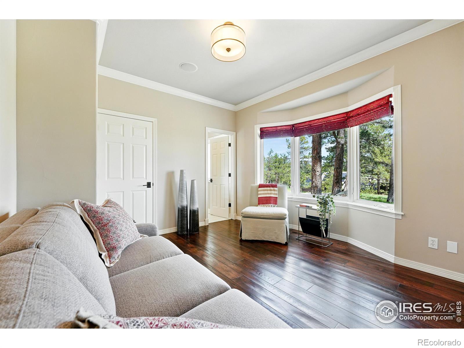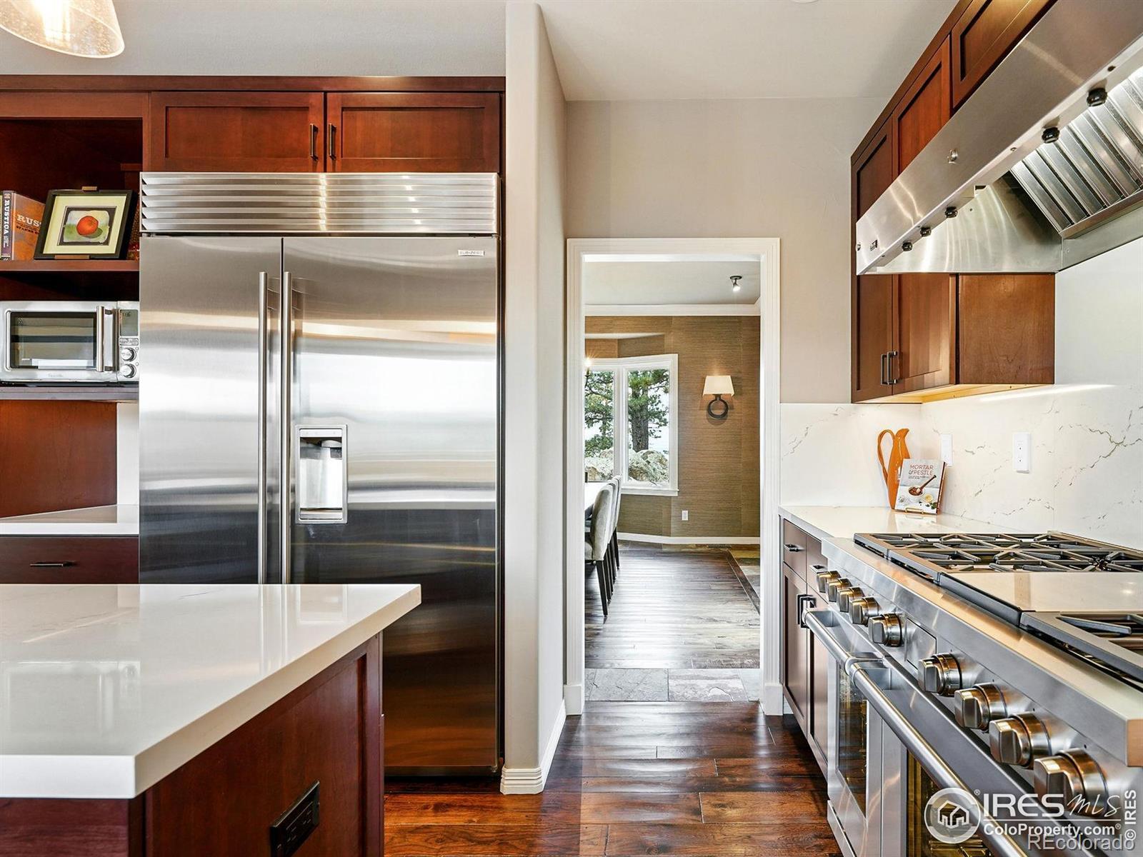TOP OF THE WORLD! Elevate your lifestyle at this extraordinary 6-acre hilltop estate, where sweeping views of the Continental Divide, Boulder, and even the Denver skyline stretch before you. Privately perched with easy access at the pinnacle of prestigious Pine Brook Hills, this home is a sanctuary of seclusion, sophistication, and style. Step through custom double doors into soaring ceilings and sunlit spaces wrapped in rich hickory flooring. Every detail speaks of quality-from the custom millwork to the hand-selected finishes that define each elegant room. The heart of the home is a chef's dream: a designer kitchen outfitted with Wolf and Sub-Zero appliances, custom cabinetry, Cambria Inverness Frost Quartz and seamless indoor-outdoor flow for effortless entertaining. In the living room, a dramatic wall of windows frames breathtaking, front-row views of the Rockies. Upstairs, the luxurious primary suite is a world of its own, surrounded by sublime 270-degree views the video tour only begins to capture, and complete with a private terrace, wet bar, and spa-worthy 5-piece bath with radiant heated floors. The walkout lower level is an entertainer's paradise featuring a rec room, sunroom, wine cellar, and a second primary suite-ideal for guests. Two laundry rooms, a private office with its own terrace, wired speakers throughout, a 3-car oversized heated garage with built-in workshop and top-quality upgrades, including appliances and a 16.4kWh solar PV system with battery backup and transferable warranties, make this home as functional as it is stunning. Outside, breathtaking, easy-to-maintain grounds surround the property. A gas fire pit and multiple terraces create the perfect backdrop for unforgettable gatherings or peaceful solitude under the stars. All are just 15 minutes from downtown Boulder. As the video tour highlights, this is more than a home. It's a private hilltop retreat. A lifestyle. A legacy.