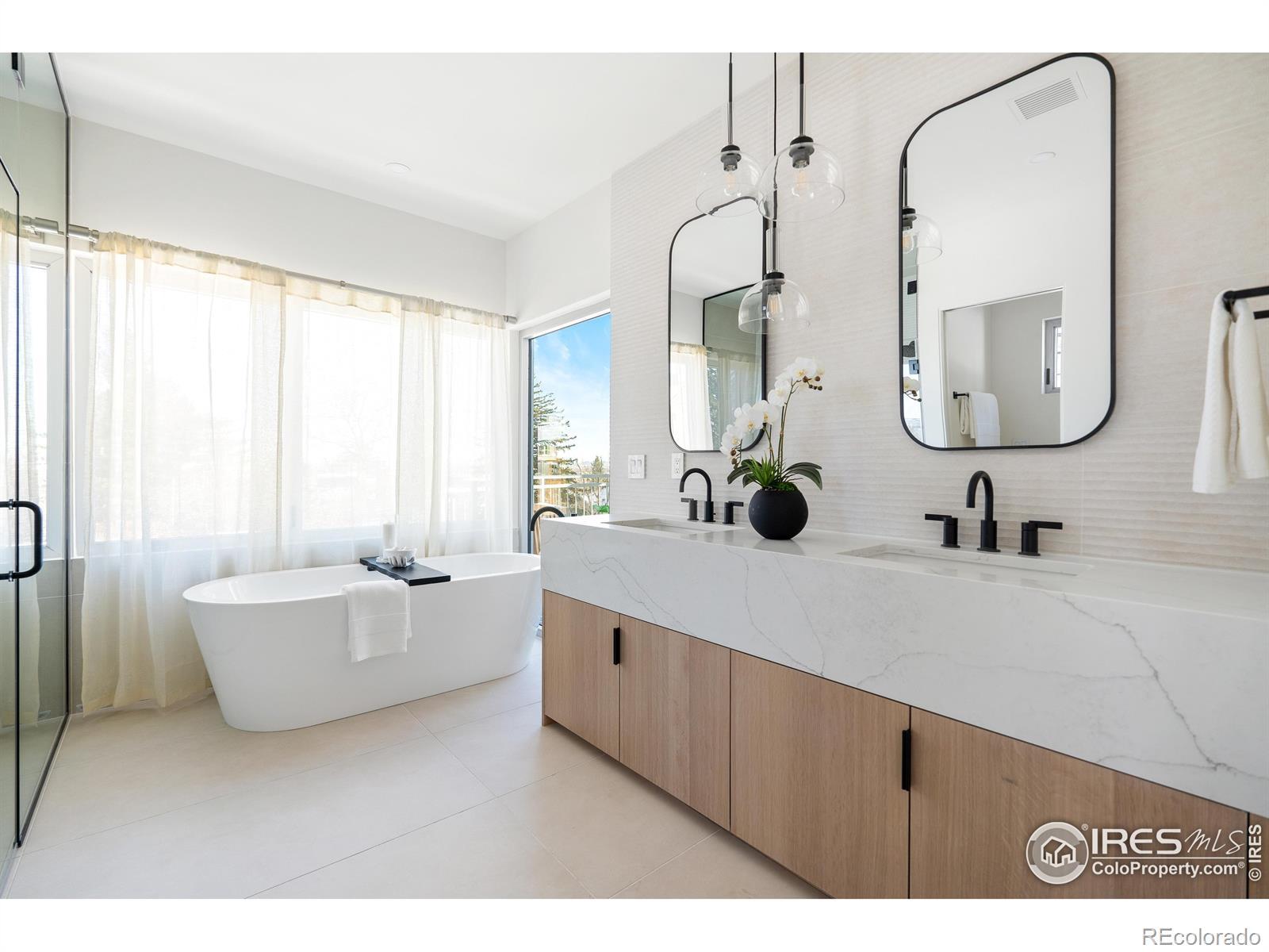 Last chance on this beauty, now at $815 PSF, you can't find anything in Boulder for this kind of pricing. This brand-new 4,288 SF architectural masterpiece in Boulders exclusive Hillcrest neighborhood offers five-bedroom suites, eight bathrooms, and seamless indoor-outdoor living. Designed for both elegance and comfort, the home features wide-plank white oak floors, custom hickory cabinetry, floor-to-ceiling Quaker windows, and a 60-inch gas limestone fireplace. The chefs kitchen boasts a Dacor appliance suite, solid stone countertops, and a spacious island,. Wetbars on multiple levels enhance entertaining. A Savaria elevator, home fitness room, and Control4 smart home system provide convenience and luxury throughout. The primary suite is a private retreat with a steam shower, coffee bar, and private deck, while additional en-suite bedrooms offer designer finishes. Outside, enjoy a resort-style heated pool, multiple decks, and AV-ready outdoor living spaces, all framed by limestone, stucco, and Corten steel accents. Net Zero ready, this home features closed-cell foam insulation, LED lighting, and a 19+kW solar panel system for unmatched energy efficiency. Expertly crafted by one of Boulders top developers, this exceptional residence is ready to be called home. Check the supplements for more info on the EXTENSIVE custom and unique features.