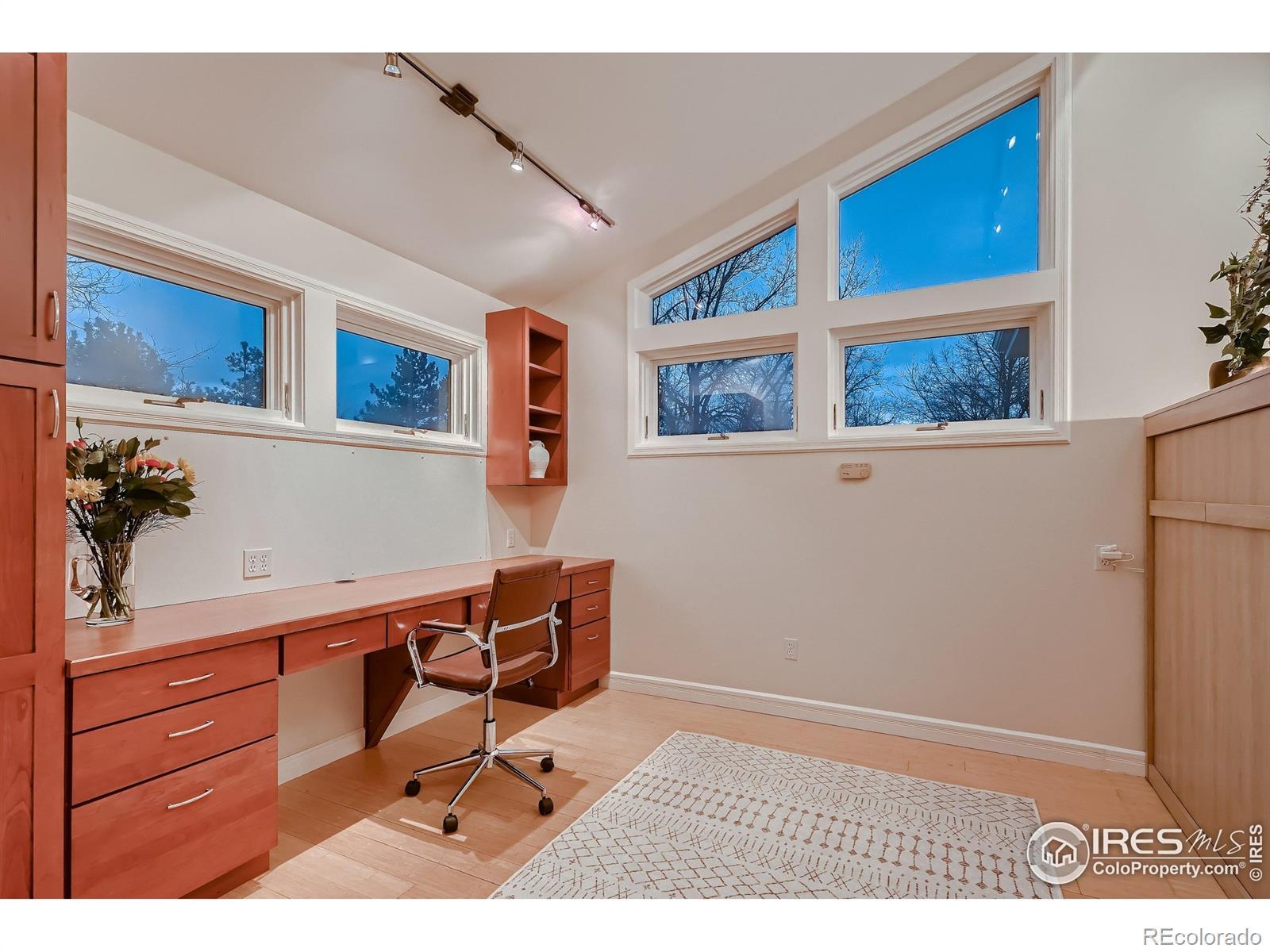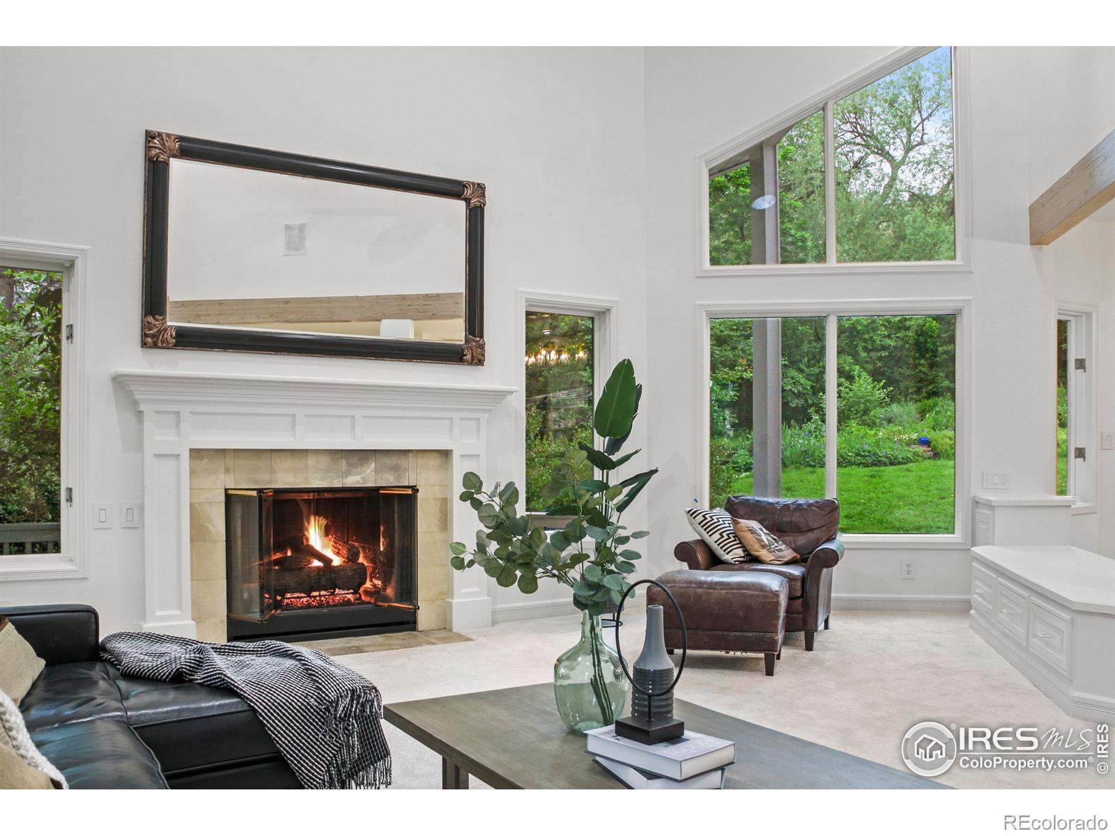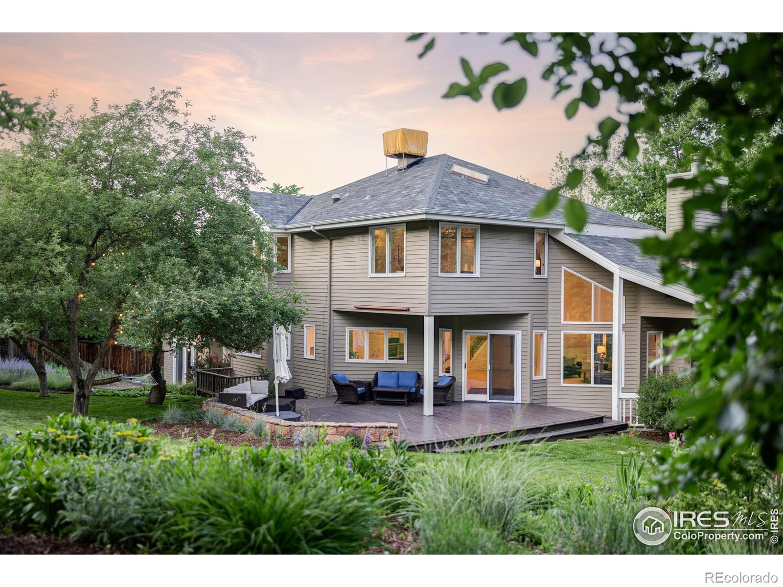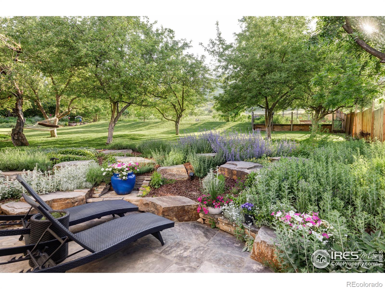 Once-in-a-generation chance to own a Newlands sanctuary backing directly to Mt. Sanitas. On open space - one of only eight homes on 4th St. with this privilege. Tucked up a private, tree-lined drive, the 5,200 sq ft residence sits on a rare 0.6-acre garden oasis framed by apple trees, lavender beds, and the historic Silver Lake Ditch. Inside, light pours through west-facing walls of glass and 20-ft ceilings, capturing ever-changing mountain panoramas. Oak floors run throughout the main level, complementing the warmth of two fireplaces - one in the dramatic living room, another in the cozy library. The flexible layout offers six bedrooms plus an office, highlighted by two king-sized primary suites (one on the top floor, one garden-level with 12.5-ft ceilings, private patio, and separate entrance) - ideal for multigenerational living, guests, or an au pair. Gather in the open kitchen that flows into living and dining areas, spill onto the wrap-around porch for morning coffee under a 60-ft maple, then follow your own gate straight to miles of trail. Evenings bring alpenglow views, cider-press parties with fruit from your orchard, and starlit conversations with a cricket chorus. Secluded yet minutes to Pearl St., Ideal Market, and Boulder's top-rated schools. Newlands is prized for its friendly vibe, where neighbors walk dogs and ride bikes along peaceful, tree-lined streets, gathering for block parties and bonding over a shared love of the outdoors. Homes that touch open space here rarely trade hands. If you've been waiting for privacy, views, and community in one package, this is the opportunity.