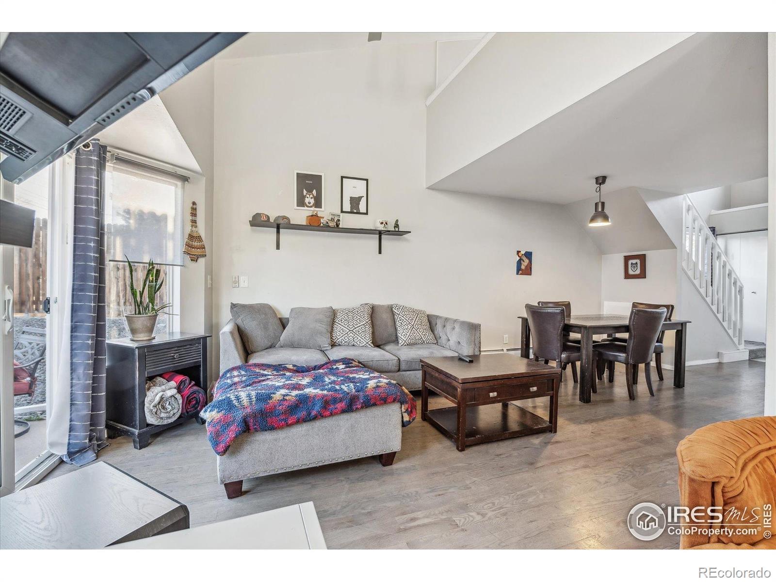 DONT MISS this beautiful end-unit townhome in the Edgewater neighborhood. Updated 2 story with HIGH vaulted ceilings offering an abundance of light & space. Open floor plan with designated dining and living room areas with wood burning fireplace. Bonus reading/office nook next to fireplace & sliding glass door. Upstairs the multi-purpose loft has custom mobile/WiFi, controlled LED lighting, primary bedroom, with large walk-in closet, updated full bathroom and space/use for an office, sitting area, or storage. View of the patio from the front door makes this home feel so much more spacious. Patio access to large back yard space with concrete patio and being an end-unit provides bonus outdoor space on side of the home. Kitchen has granite counter tops, modern cabinets, stainless steel appliances, under-cabinet lighting and pantry space. 1-car attached garage and driveway space. One block down to Sloan's Lake, multiple parks, as well as the Edgewater Marketplace, Breweries, Fitness Center, Target, King Sooper's, and easy access to I-70, I-76, and 6th Avenue. Ideal LOCATION you'll really appreciate from your new home. Units don't go up for sale very often so don't delay, this GEM won't last.