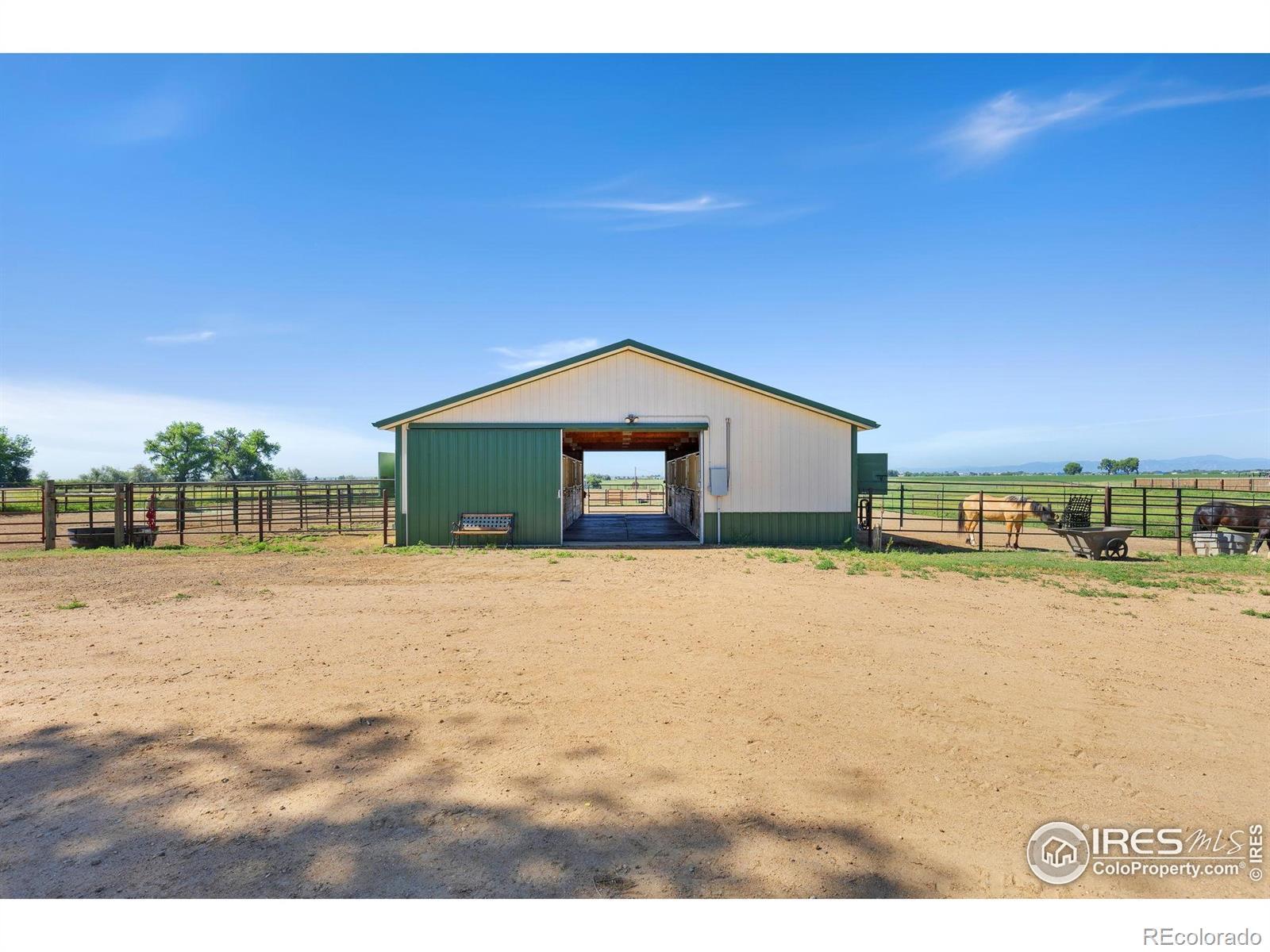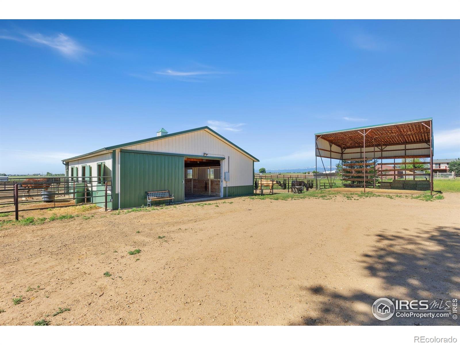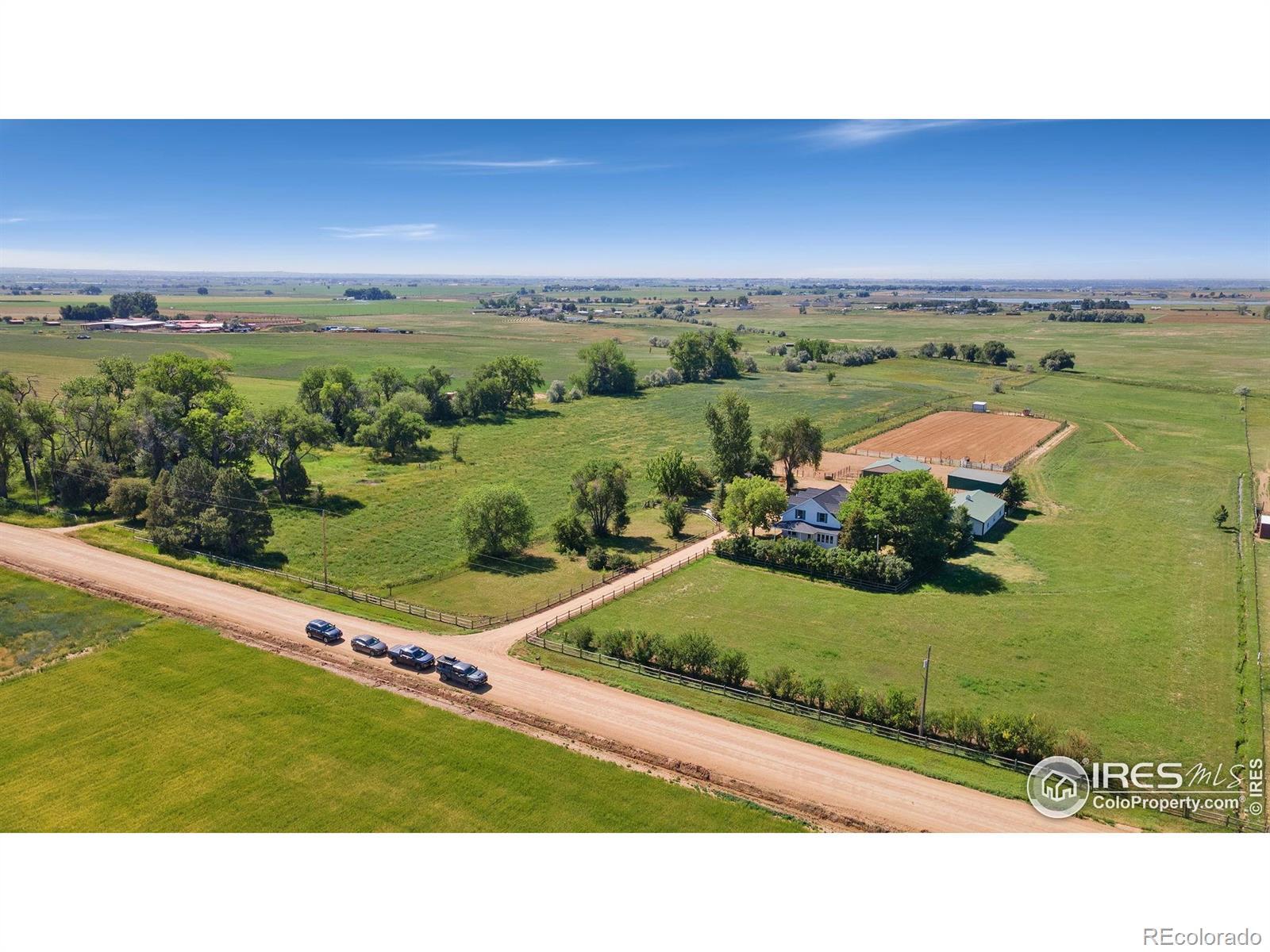 Set on 11+ acres with sweeping views, this 1934 Craftsman-style 5BD/3BA farmhouse offers equestrian amenities, hay production, modern upgrades. Features include a 6-stall barn, roping arena, custom hay shed designed for stack retriever delivery, finished basement, wraparound porch, and new wood-burning sauna. Eligible for Mead schools and with easy access to Denver, Boulder, and Fort Collins, this one-of-a-kind property blends historic charm with country functionality. Originally built in Denver's Highlands in the 1930s, the home was relocated to its current setting, where the lower level was finished and the upper level added around 2000. The home includes a formal dining room, study, breakfast nook, multiple porches, and a lilac privacy wall. A gravel driveway leads to a central square surrounded by the home's mudroom entry, barn, 3-bay shop with attached tack room and equipment storage, hay storage, lawns, and chicken coop. The barn has three stalls on each side; left-side stalls feature outdoor runs that open to a dry lot turnout, while the right side opens to another dry lot. These can be combined by opening a center gate behind the barn. The large roping arena includes a cattle chute & jump-friendly footing. Hay-producing smooth brome pastures total 8+ acres and yield 200-300 bales/year. Hay storage holds over 1,500 bales. Pastures are fully fenced and include a large pasture that extends from County Road 36 to the smaller pasture at the back of the property, a one-acre rear pasture, and a 1/4 acre paddock on the left side of the driveway. Relax on the wraparound porch or enjoy the brand new Canadian-imported Nootka wood-fired sauna, located near a water spigot ideal for a future outdoor shower. Recent 2025 upgrades include refinished wood floors, new carpet, remodeled upper bath, radon mitigation system, fresh interior/exterior paint, and added fencing. Close to shopping, nurseries, restaurants, and the new Bella Ridge Golf Club.