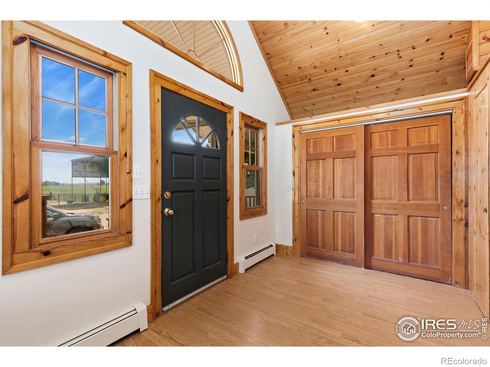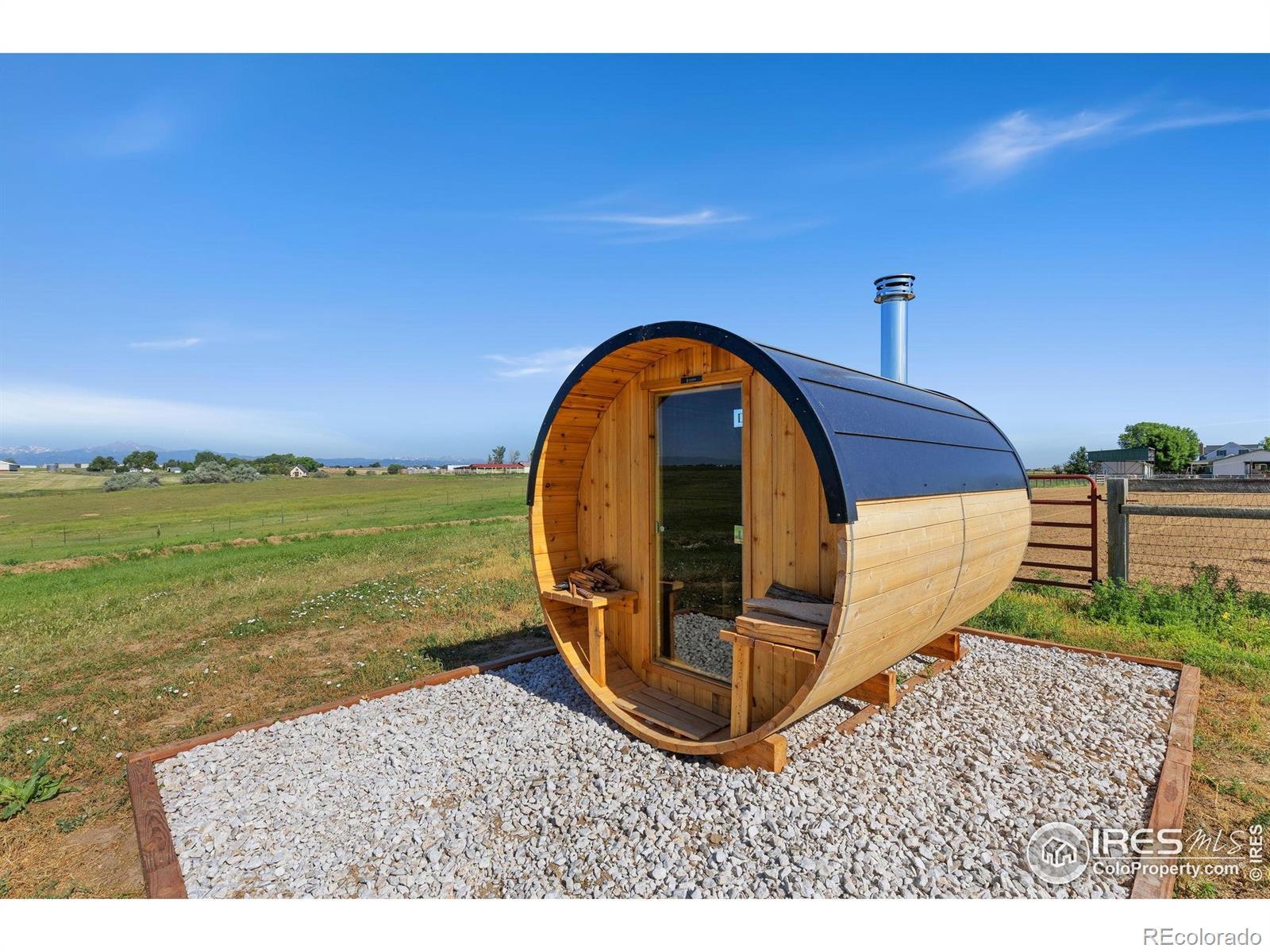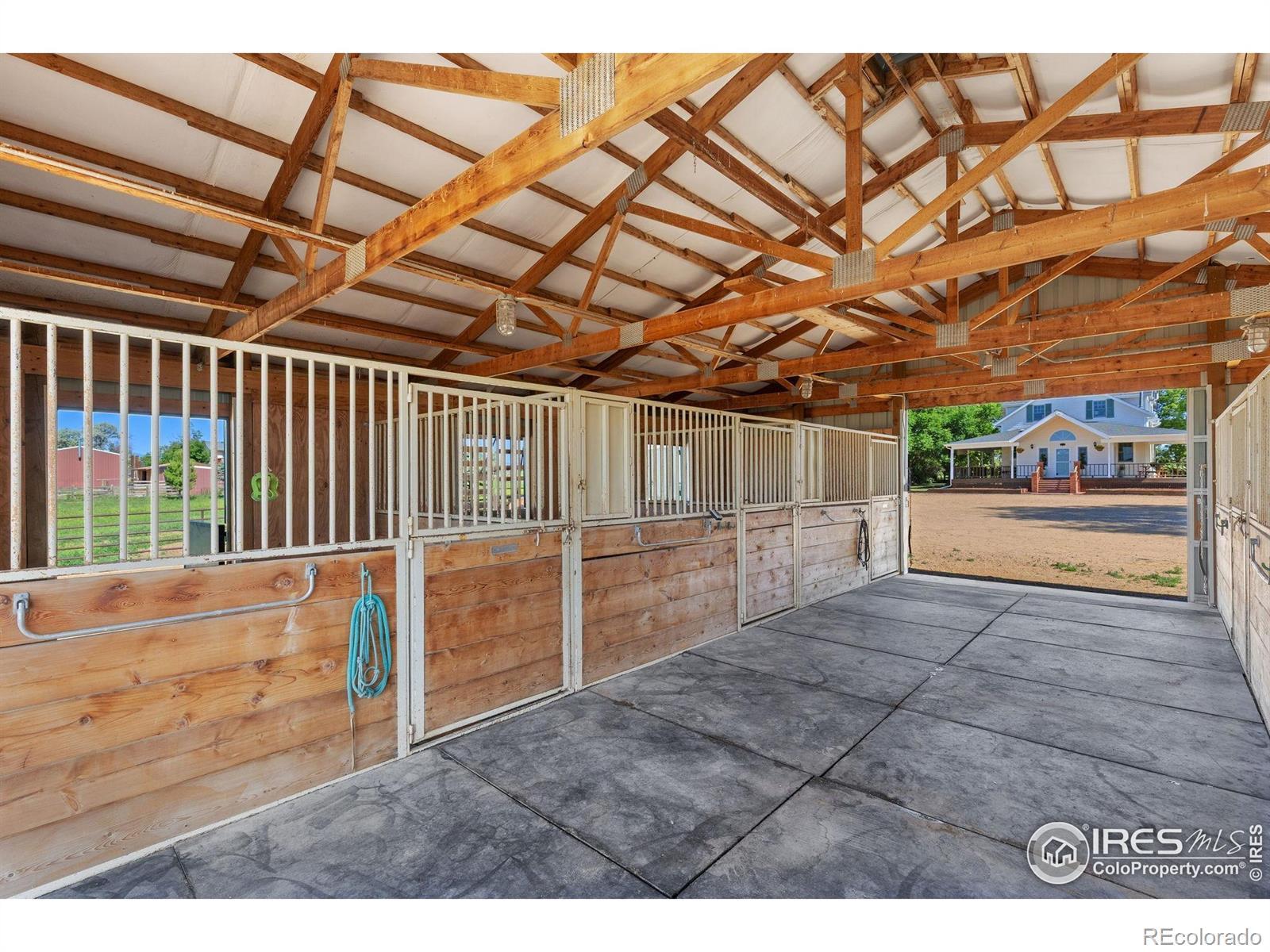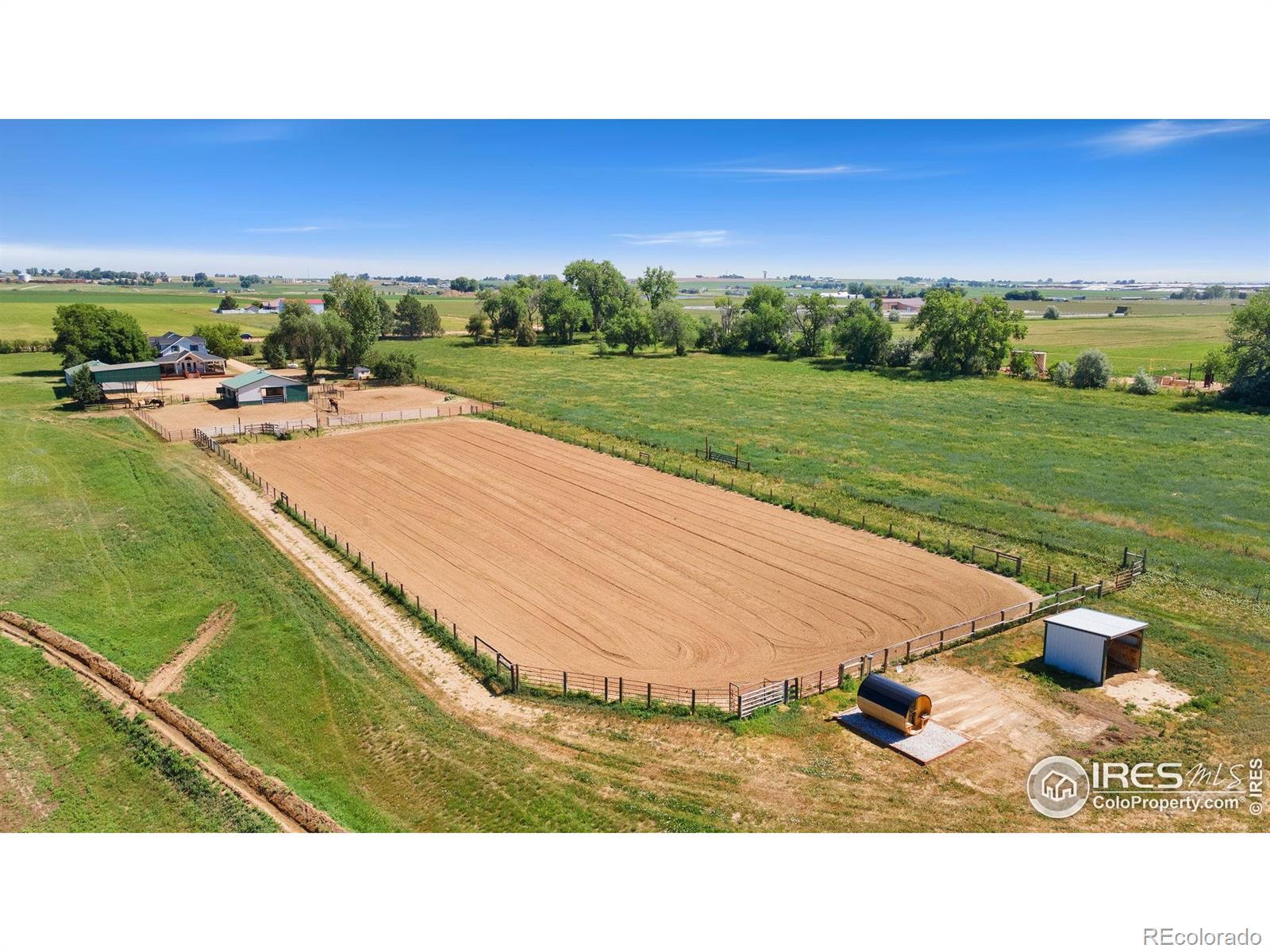 Set on 11+ acres with sweeping views, this 1934 Craftsman-style 5BD/3BA farmhouse offers equestrian amenities, hay production, modern upgrades. Features include a 6-stall barn, roping arena, custom hay shed designed for stack retriever delivery, finished basement, wraparound porch, and new wood-burning sauna. Eligible for Mead schools and with easy access to Denver, Boulder, and Fort Collins, this one-of-a-kind property blends historic charm with country functionality. Originally built in Denver's Highlands in the 1930s, the home was relocated to its current setting, where the lower level was finished and the upper level added around 2000. The home includes a formal dining room, study, breakfast nook, multiple porches, and a lilac privacy wall. A gravel driveway leads to a central square surrounded by the home's mudroom entry, barn, 3-bay shop with attached tack room and equipment storage, hay storage, lawns, and chicken coop. The barn has three stalls on each side; left-side stalls feature outdoor runs that open to a dry lot turnout, while the right side opens to another dry lot. These can be combined by opening a center gate behind the barn. The large roping arena includes a cattle chute & jump-friendly footing. Hay-producing smooth brome pastures total 8+ acres and yield 200-300 bales/year. Hay storage holds over 1,500 bales. Pastures are fully fenced and include a large pasture that extends from County Road 36 to the smaller pasture at the back of the property, a one-acre rear pasture, and a 1/4 acre paddock on the left side of the driveway. Relax on the wraparound porch or enjoy the brand new Canadian-imported Nootka wood-fired sauna, located near a water spigot ideal for a future outdoor shower. Recent 2025 upgrades include refinished wood floors, new carpet, remodeled upper bath, radon mitigation system, fresh interior/exterior paint, and added fencing. Close to shopping, nurseries, restaurants, and the new Bella Ridge Golf Club.