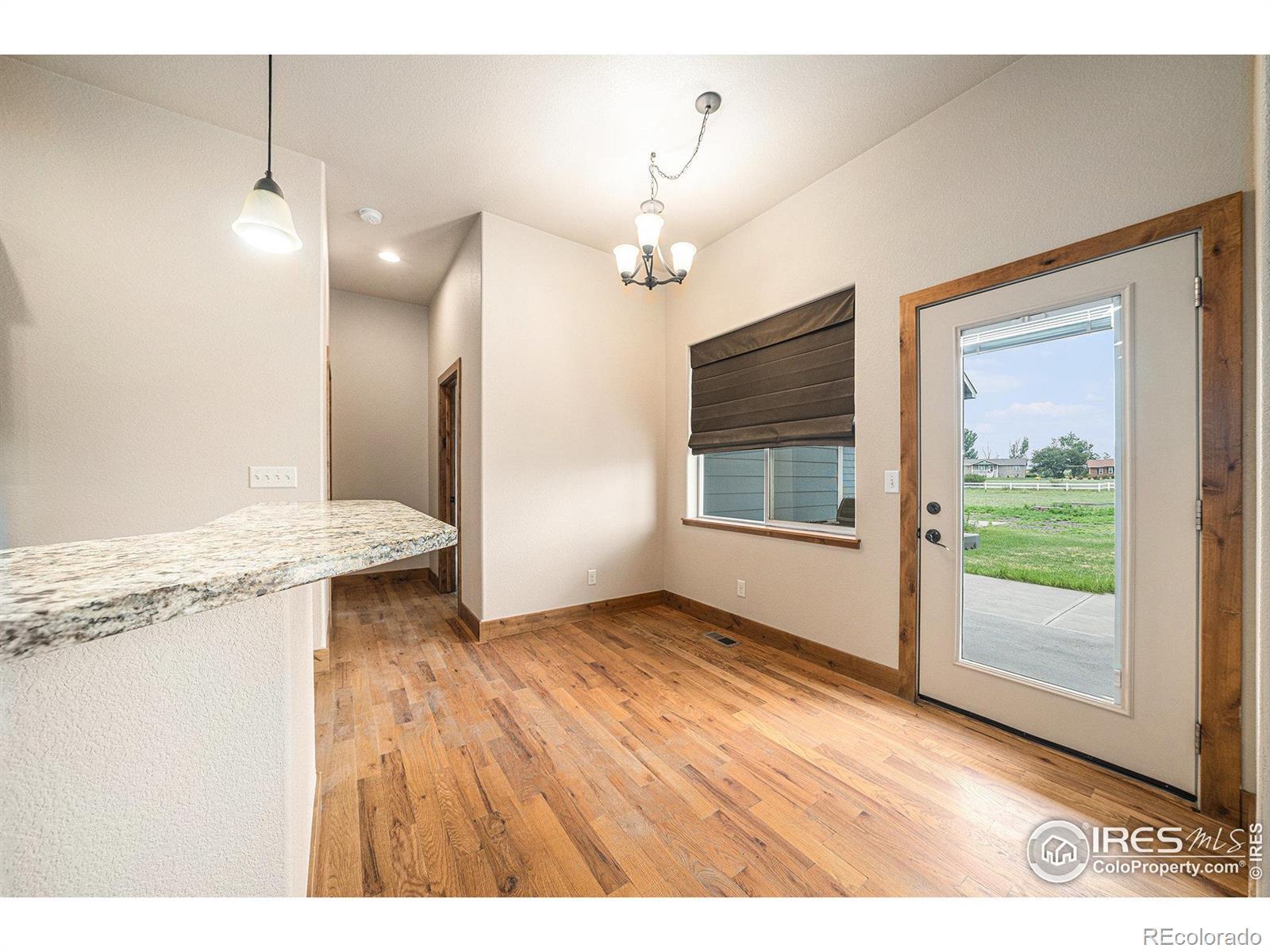 Welcome to this beautiful ranch-style home situated in the peaceful and family-friendly town of Eaton, just approximately 1 mile to the east side of town. This 3-bedroom bath ranch with over 3800 total square feet. Boasting Oak hardwood floors throughout, knotty alder trim, doors, and oak cabinetry along with granite counter tops, and stainless-steel appliances. The home has freshly painted walls and all new carpeting. Open floor plan into the living room with gas fireplace inviting for guests and entertaining. Separated primary bedroom for privacy with 5-piece bath and large w/I closet. Full unfinished basement to grow into along with an oversized side load 3 car garage. Newer HE Furnace, & C/A. Great covered patio with great size backyard and a fire pit. A newer detached shop approximately 40'x32' matching the residential exterior. The building has concrete floor with 2-16' doors with 1 opener and is stubbed in for electric, gas and water. Also has a 40" rv pad on the West side of the building.