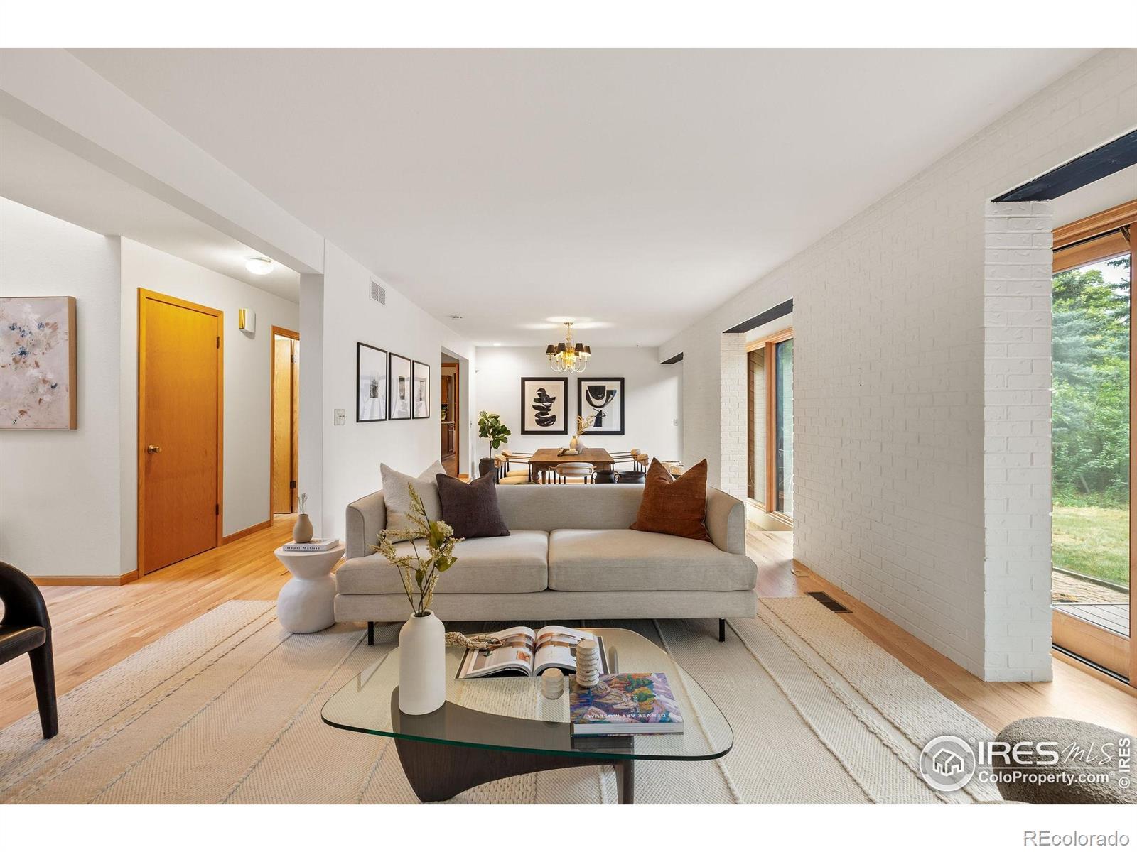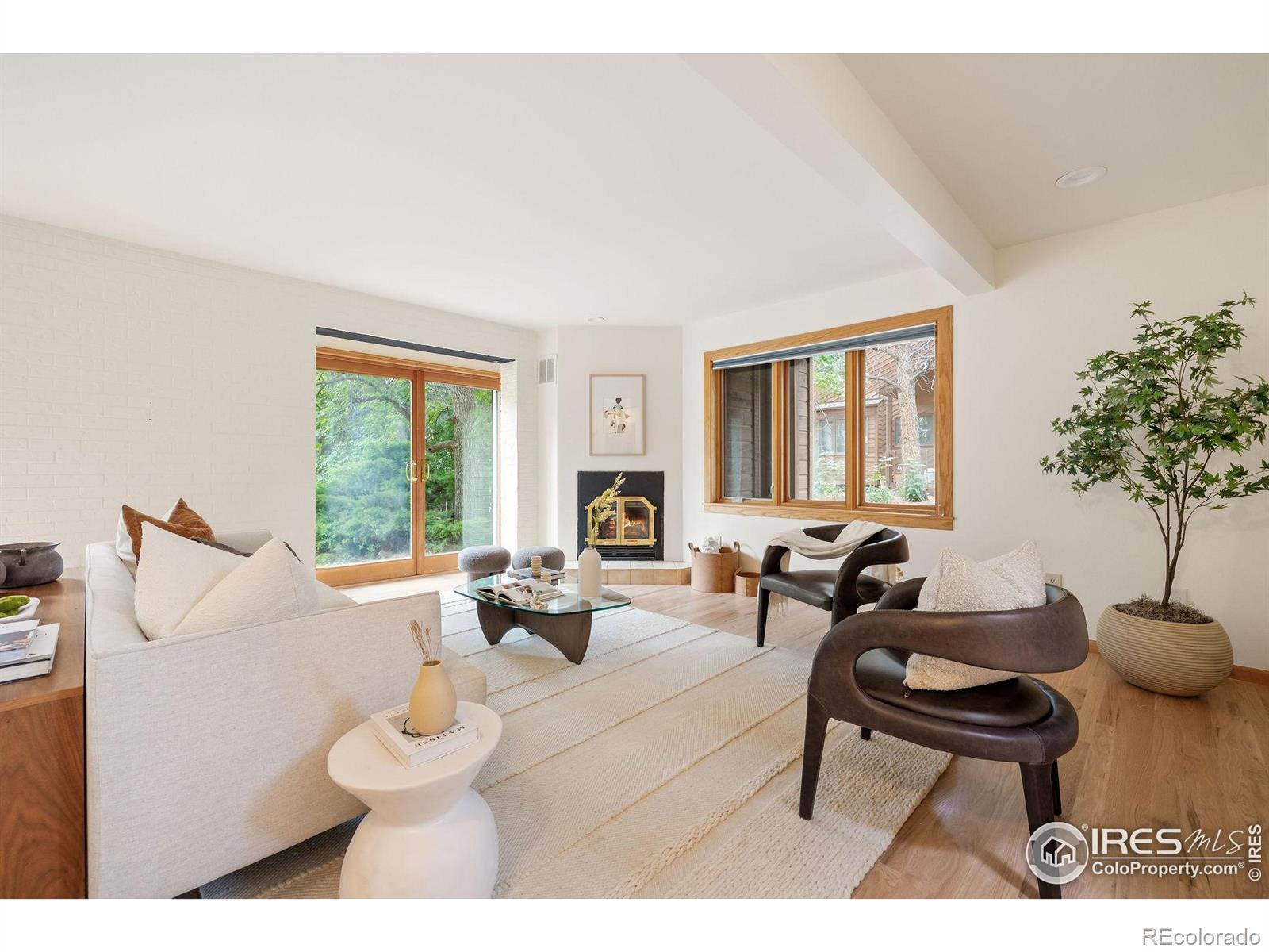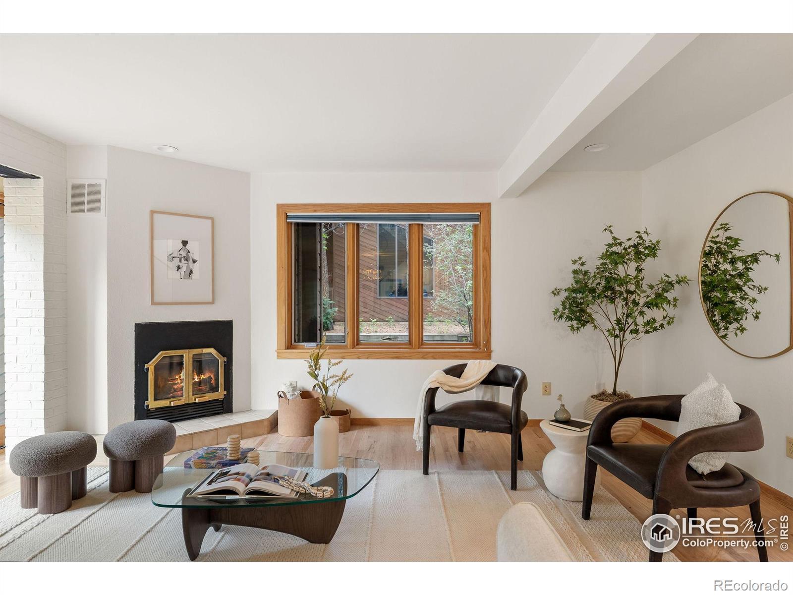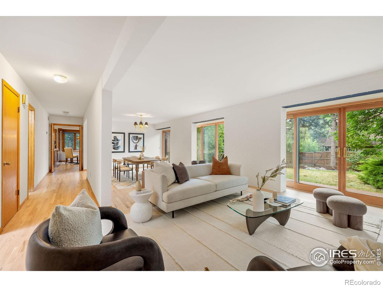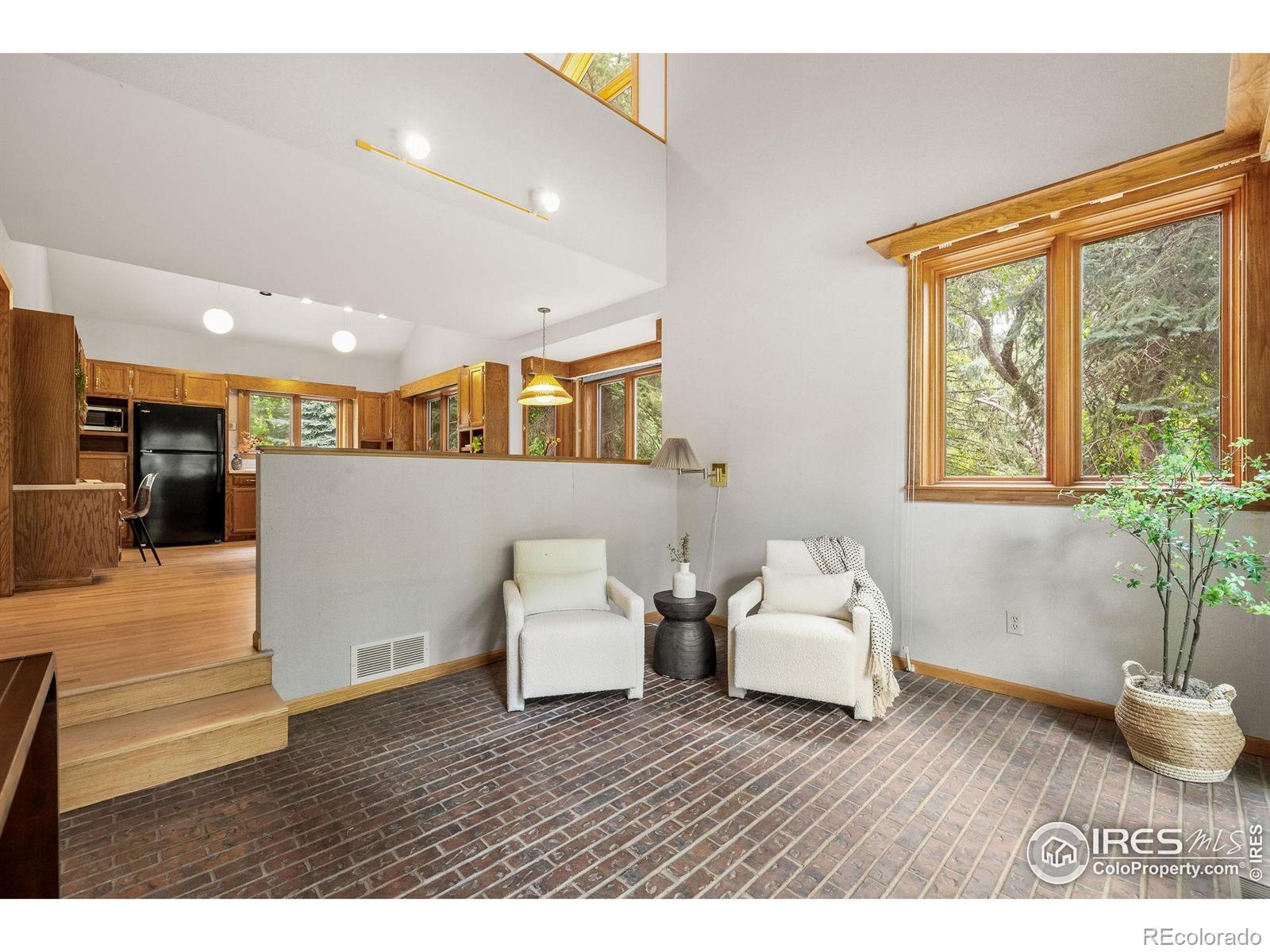 Rare opportunity in the desirable West Kalmia part of Newlands in Boulder. Nestled on a private 1/3 acre, peaceful setting on a quiet cul-de-sac, this home offers the amenities of downtown Boulder two miles away while living in a retreat like setting that's surrounded by the best trail systems in Boulder. Gorgeous as-is, but also has boundless potential for a remodel or addition up to 4700 sq ft and can include an ADU. Stunning architectural plans have been drawn up by the renowned Neal Evers from Boulder and show what a masterpiece the house has the potential to be. The property is enveloped by mature trees, upstairs mountain views and flat grassy play areas, offering a serene, park-like atmosphere that enhances seamless indoor-outdoor connectivity with its southern exposure. The bright open layout exudes elegance and comfort, featuring new solid wood floors, a cozy fireplace, white exposed brick, option of large great room or formal dining room and vast sliding glass doors off another living room that frame the lush landscape. With hiking/biking trails out your door, highly rated neighborhood schools and no HOA, adventure and education are within easy reach. The kitchen, equipped with a new stove and dishwasher, includes a spacious breakfast nook and flows into a third flexible living area that opens onto a sunlit deck, perfect for alfresco dining and relaxation. Upstairs, discover a spectacular primary suite with views of the Flatirons amongst the trees, alongside three additional bedrooms, a loft, and ample storage. Other recent updates include a new powder room, a freshly painted interior, and a new A/C unit, ensuring modern comfort and convenience. The expansive yard presents limitless possibilities for designing a grand Boulder retreat in a coveted location.
