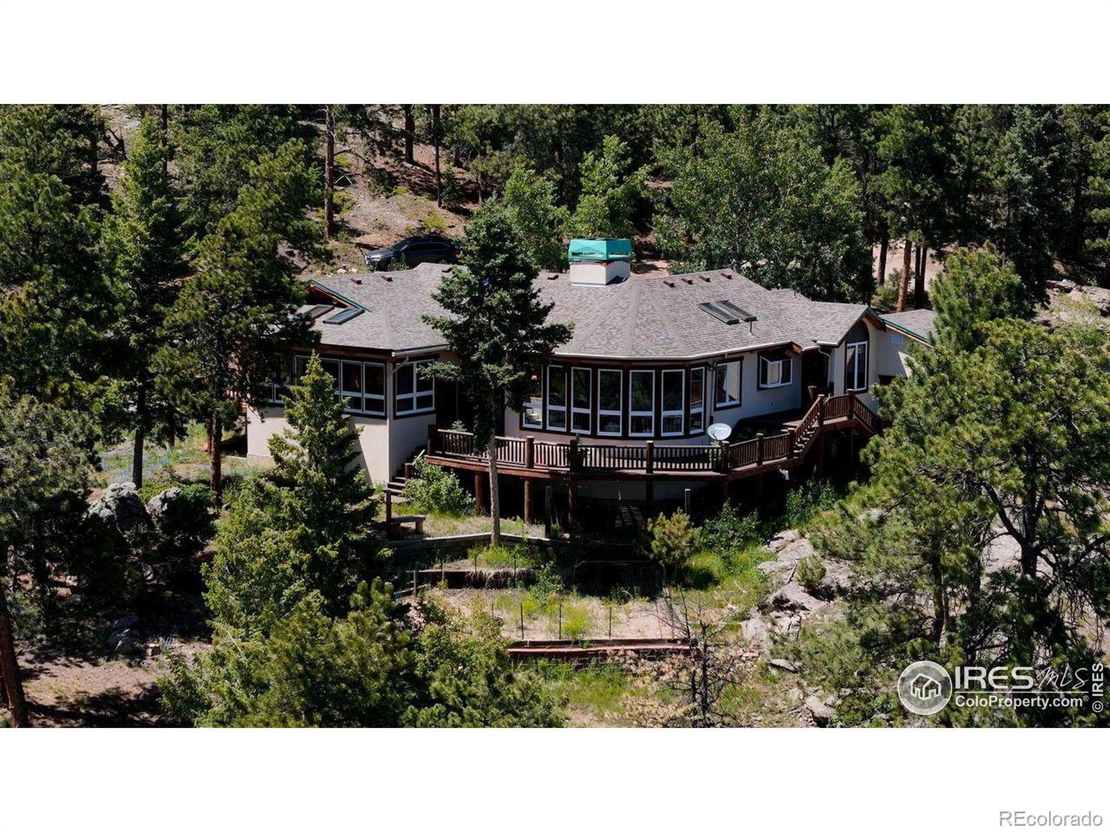 A rare blend of seclusion, craftsmanship and panoramic beauty, this custom British Columbian log home offers captivating views from every angle. On top of the mountain perched on 10.88 forested acres of pine, aspen and dramatic rock outcroppings, this residence showcases sweeping vistas of both the City and surrounding mountains. Designed for connection to nature and timeless comfort, the interior features cathedral ceilings, expansive south-facing windows and warm wood-look tile flooring. A spacious main-level primary suite boasts a remodeled bath, jetted tub, walk-in shower and direct access to a private sunroom and deck. The kitchen highlighted by a large pantry flows seamlessly into a cozy den with a river rock wall and a wood stove insert, ideal for entertaining. Additional highlights include two fireplaces, a versatile office, laundry room and a lower-level retreat. Bordered by Meyer Ranch and Denver Mountain Parks open space, this home sits just moments from Hwy 285 and the town of Conifer, Aspen Park + Morrison