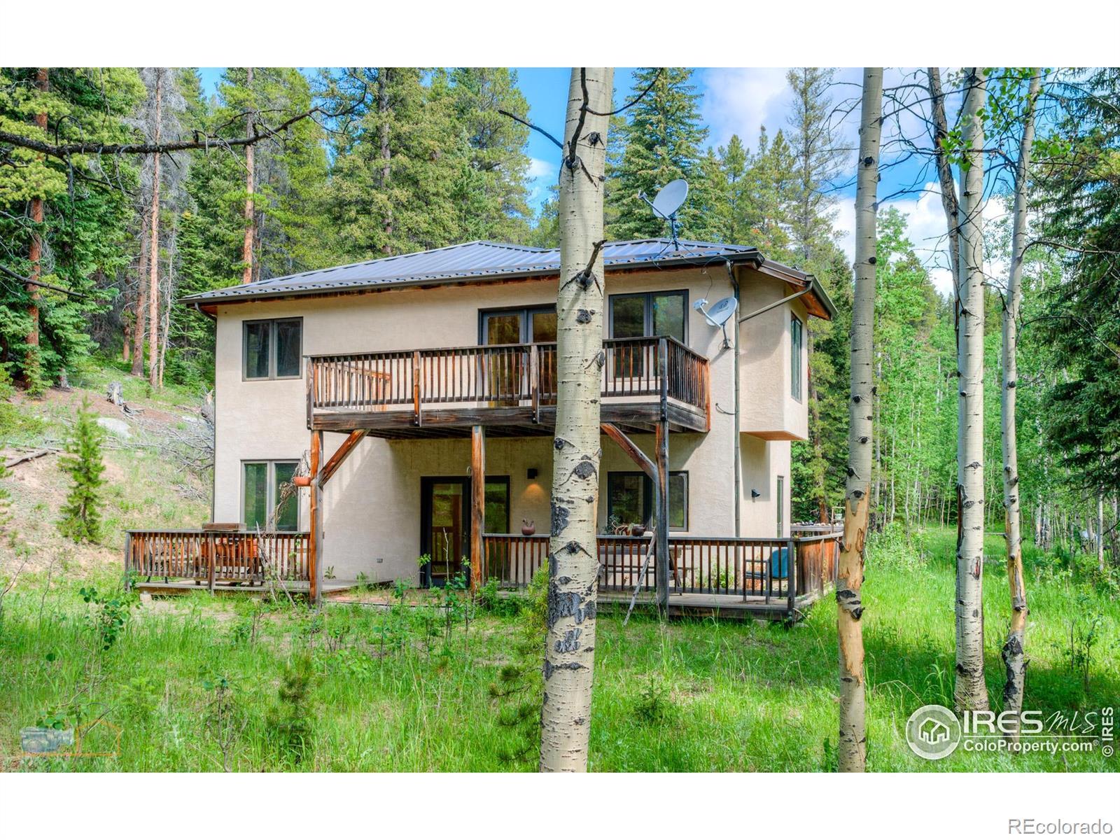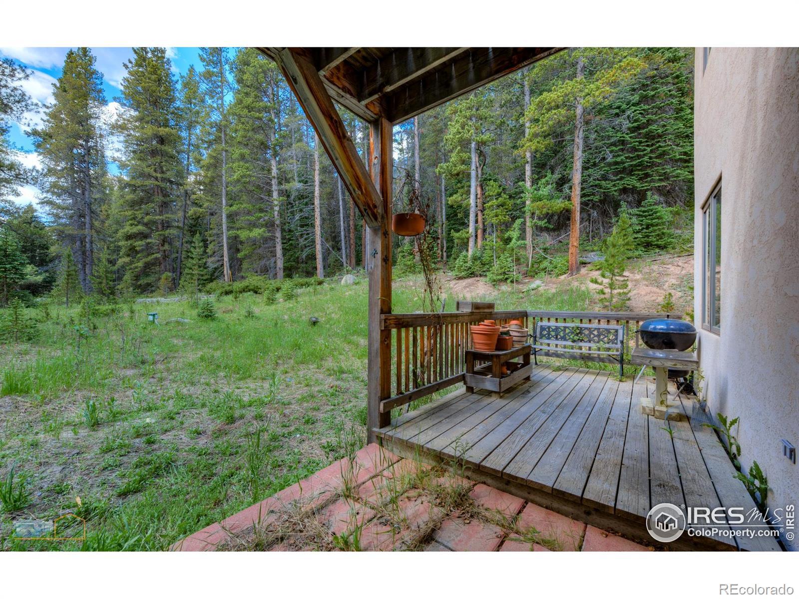 For those looking for a home on 10 acres bordering national forest and a detached workshop! 3 bed 2.5 bath home with a 2 car attached garage, plus a, 1750 square foot detached heated (both floors) work shop garage (2 plus cars). Metal roofs on both buildings. Custom beetle kill pine doors in home. Easy access off Peak to Peak Highway, with no neighbors in sight. Property abuts National Forest to the north and west. Seasonal stream in front of property, all the wildlife you could want to see. First time on the market, original owner. Easy to show.