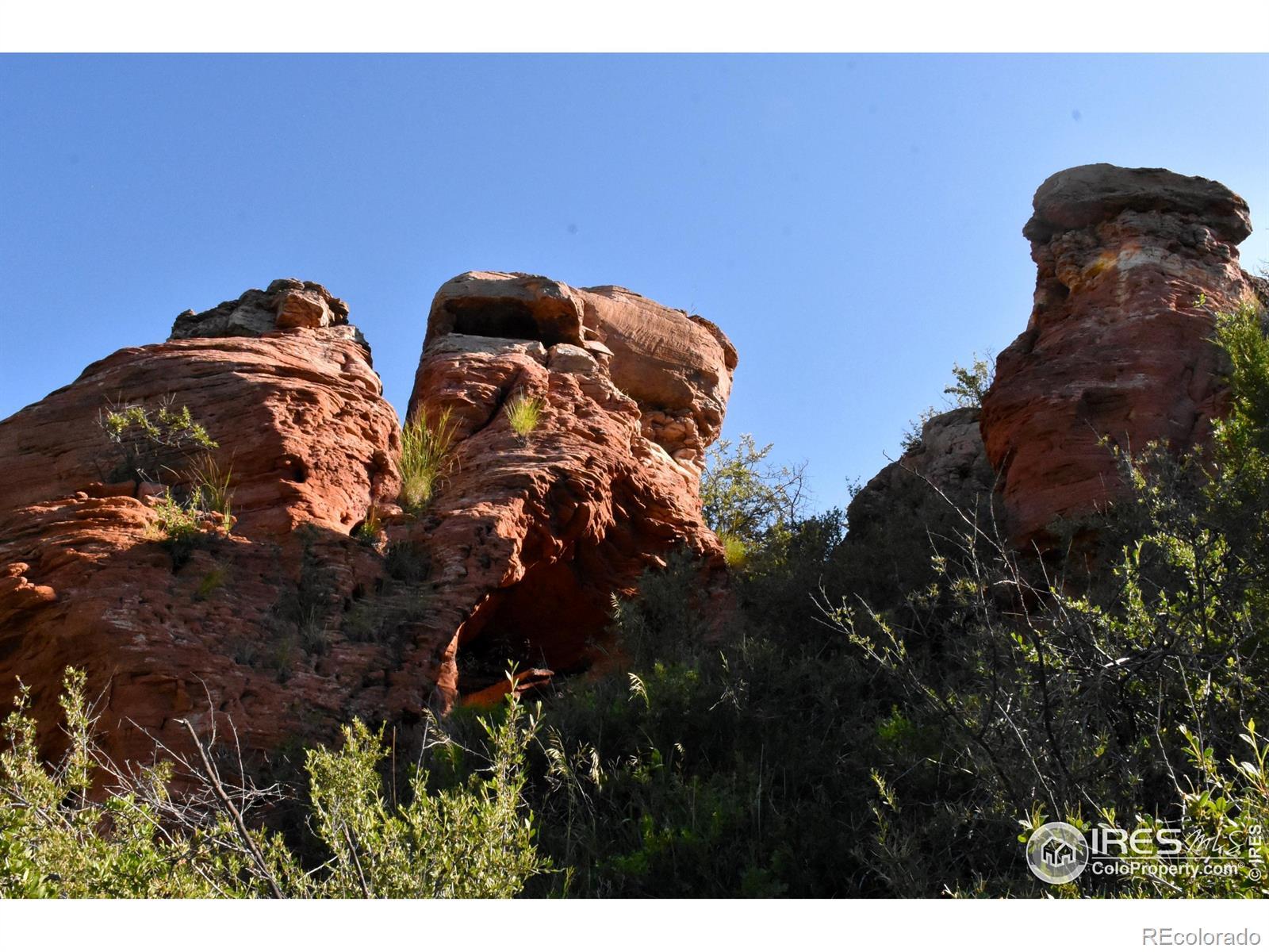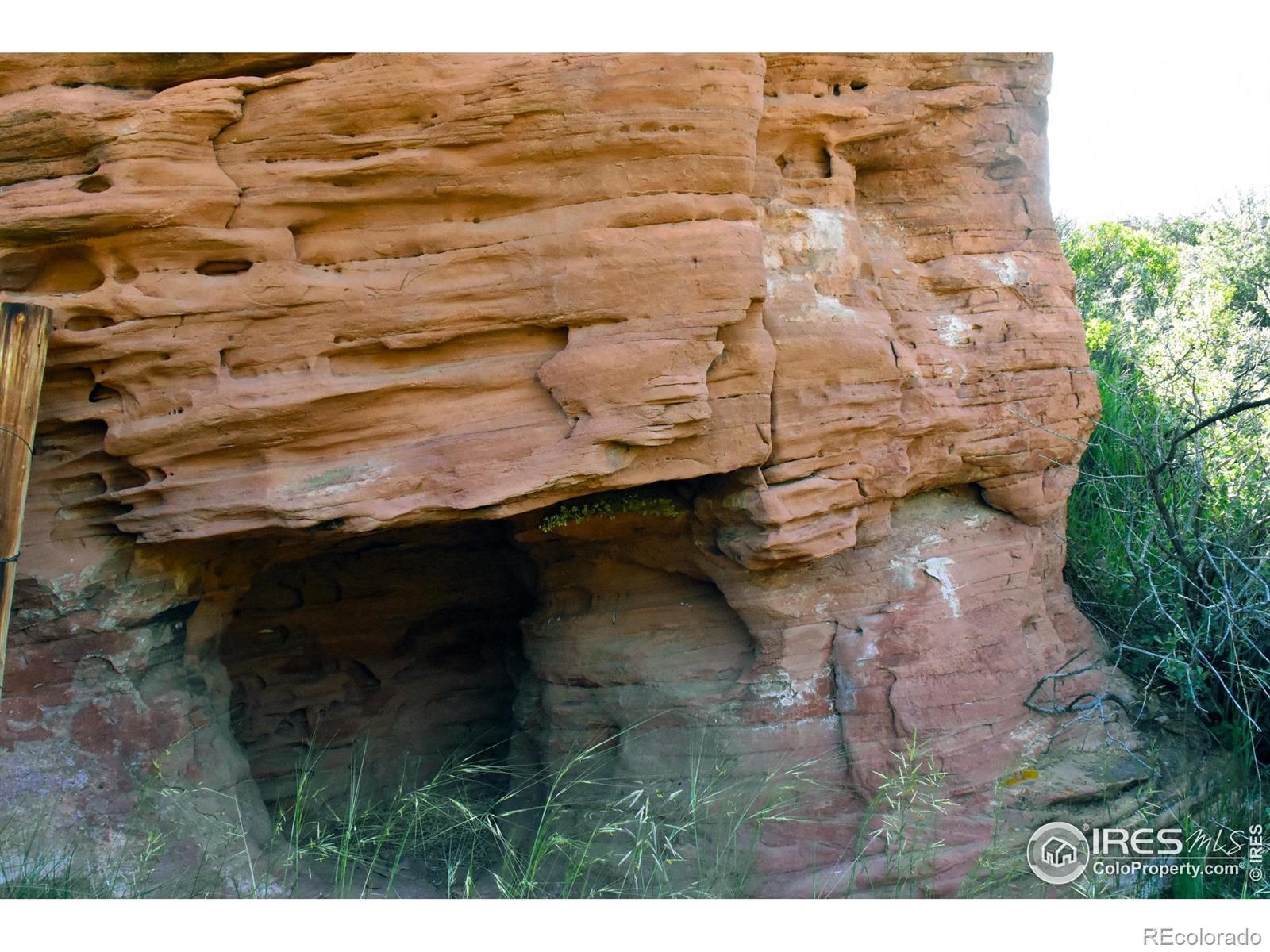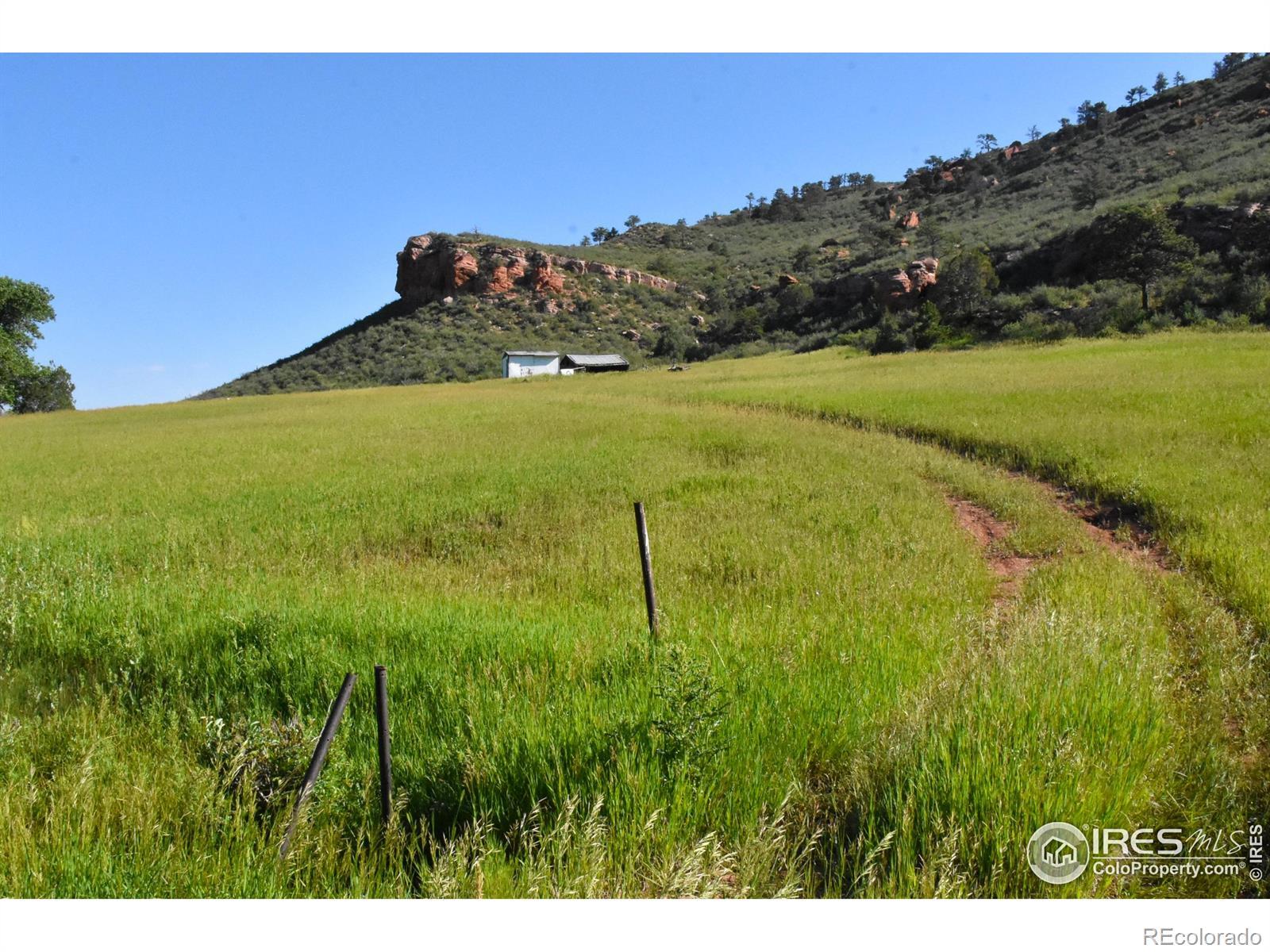 PRIVATE SHOWINGS ONLY. Secluded 40-Acre Retreat Bordering Red Mountain Open Space. Escape to nature at 1364 Red Bluff Road, a rare 40-acre parcel bordering Larimer County's Red Mountain Open Space on two sides. This exceptional property offers privacy, breathtaking views, and direct access to thousands of acres of preserved wilderness-perfect for hiking, wildlife watching, and outdoor recreation. Elk herds and other wildlife frequent this valley, adding to its charm. The seasonal 2-bedroom, 1-bath cabin is a charming off-grid getaway with rustic character. A gravity-fed water system is sourced from a natural spring on the property, while a 2-tank septic system with leach lines supports the bathroom. A wood-burning stove provides cozy heat, and propane appliances-including a range, oven, refrigerator, and lighting in the kitchen and living area-ensure functionality without electricity. Additional features include: 100-gallon leased propane tank, a fully fenced perimeter with barbed wire fencing, locked gate entry for added security, and a roof replaced 8 years ago. This property is ideal as a seasonal retreat, hunting base camp, or off-grid escape as you plan for your future home build. Multiple potential homesites are scattered across the diverse 40-acre landscape, which features a lush grassy valley, gently rolling hills, forested areas, striking red rock outcroppings, and seasonal red rock waterfalls that come to life during heavy rainstorms. Whether you're seeking solitude, adventure, or connection to nature, this unique property offers it all-just 45 minutes from Fort Collins. Showings must be accompanied by a licensed Agent - no drive by traffic as this is a private road.