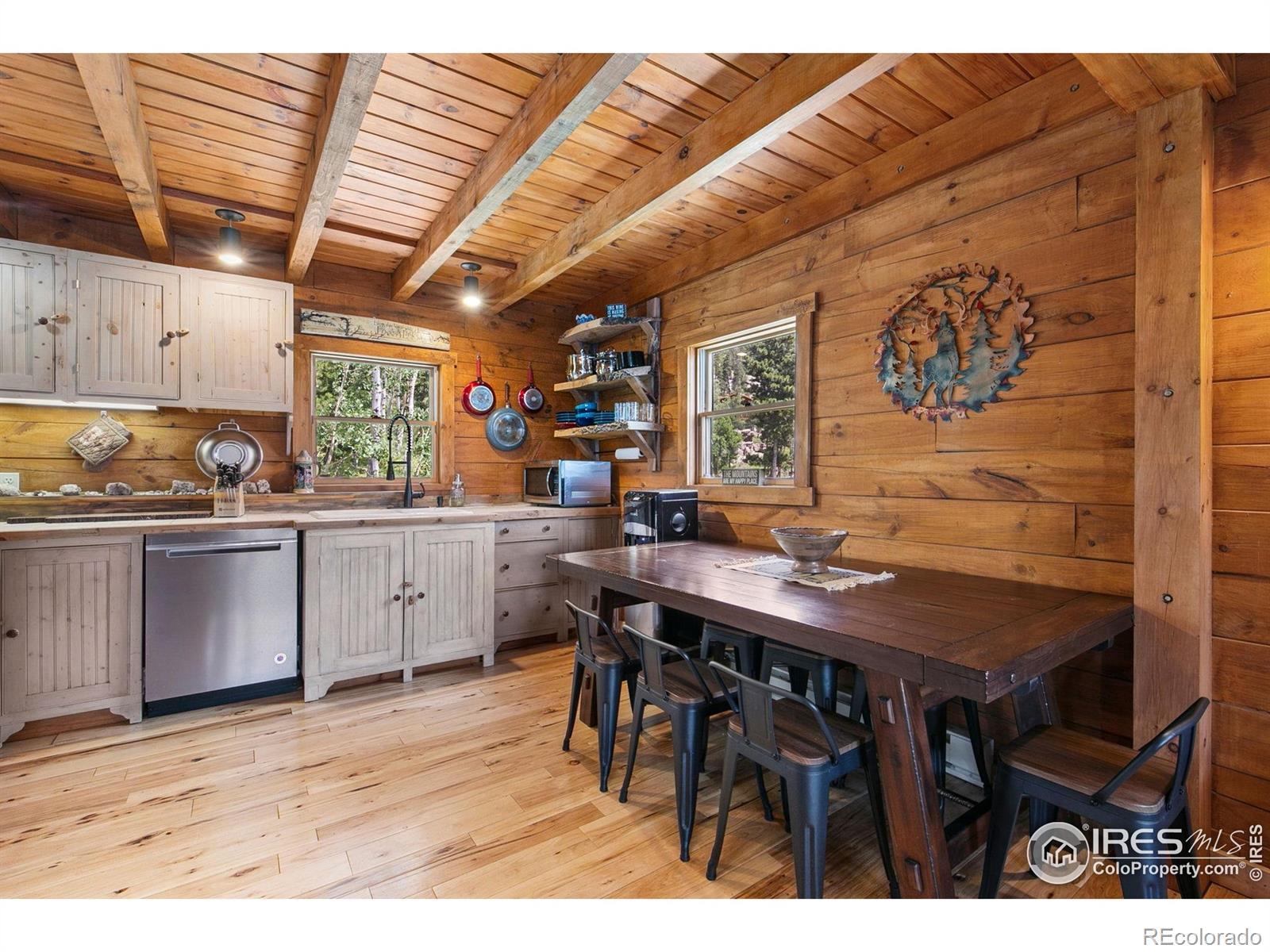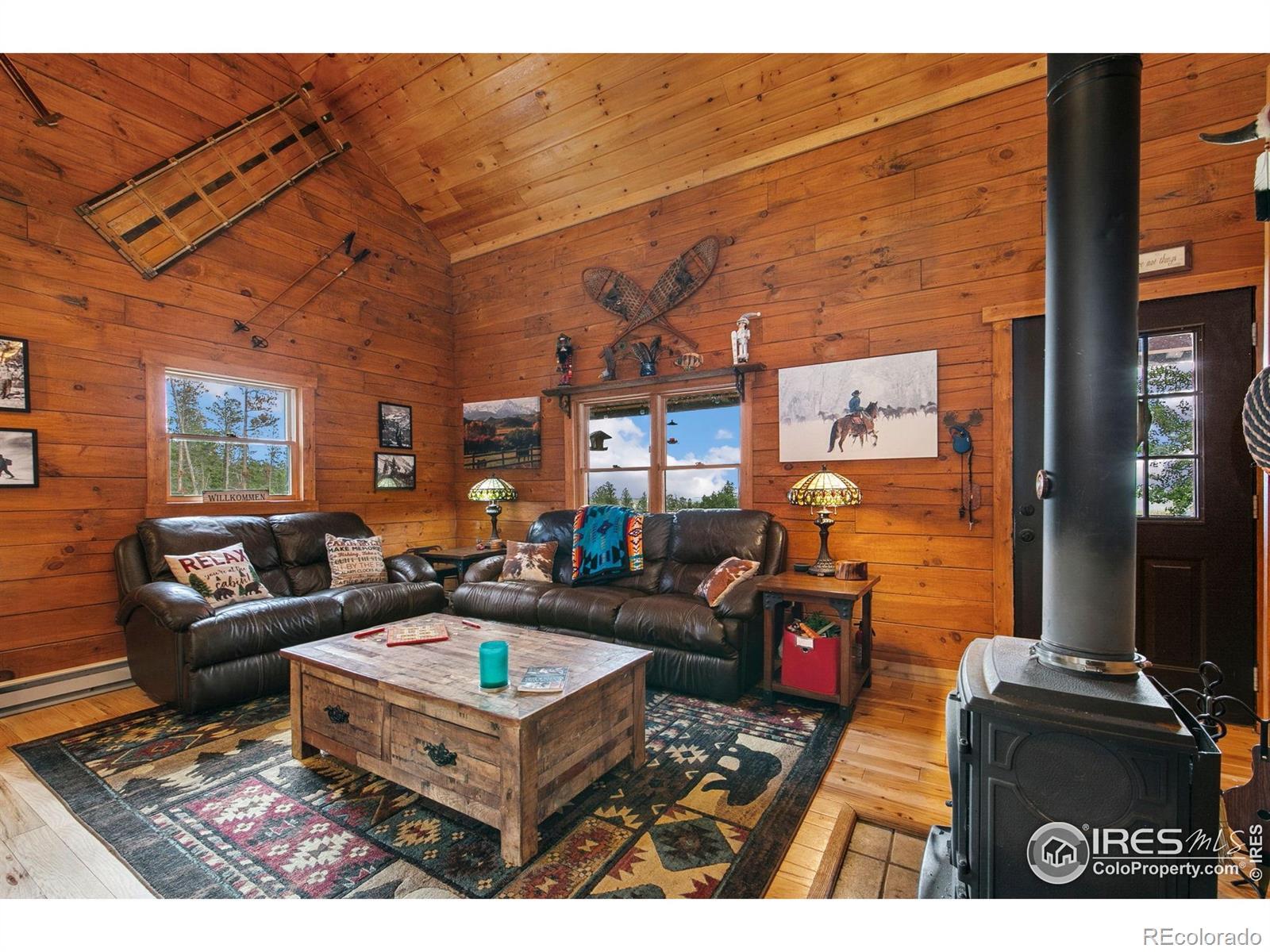 ***MOTIVATED SELLER! LET'S NEGOTIATE!*** This unique property is more than a home; it's your new sanctuary. Enjoy your morning coffee w/views of the Mummy Range on the south facing deck. Local wildlife often strolls thru the property. And you can view the fireworks in the 'Village' for the 4th of July celebration! Unwind while stargazing around the firepit in the evening. This custom home has primary bed, 3/4 bath , kitchen and living space on the main that's warmed by wood stove, warm hickory hardwoods, tongue & groove vaulted ceilings. The huge loft provides ample non conforming 3rd bedroom for all your family & friends. Built in desk/cabinets in loft allow you to work remotely! The lower level walk out has 2nd bedroom & huge walk-in shower, another family room, laundry w/washer & dryer included! Pella double hung windows thru out. Thoughtful finishes abound makes for coziness that soothes your soul. Radon System already in place! This home is serviced by a 1500 gallon cistern in the lower level + additional 300 gallon cistern in the garage. Water delivery available year round through your Crystal Lakes Water & Sewer Association. And there's a full septic system w/leach field! Oversized 2 car garage/shop is finished and heated for all your toys and tools! Some amenities of Crystal Lakes include fishing and kayaking pristine mountain lakes, scenic hiking/x-country ski + snowshoe trails, & community activities at the Base Camp! Nearby Beaver Meadows Resort has horseback riding in the summer & snow tube runs in the winter! Or head down to the Village of Red Feather for Golf @ Fox Acres, Bingo on Saturday night, fill your belly @ one of the local eateries or do some shopping at local gift shops and merchantiles. This home on the mountain is ready and waiting for you to come and enjoy all that Red Feather lakes has to offer!
