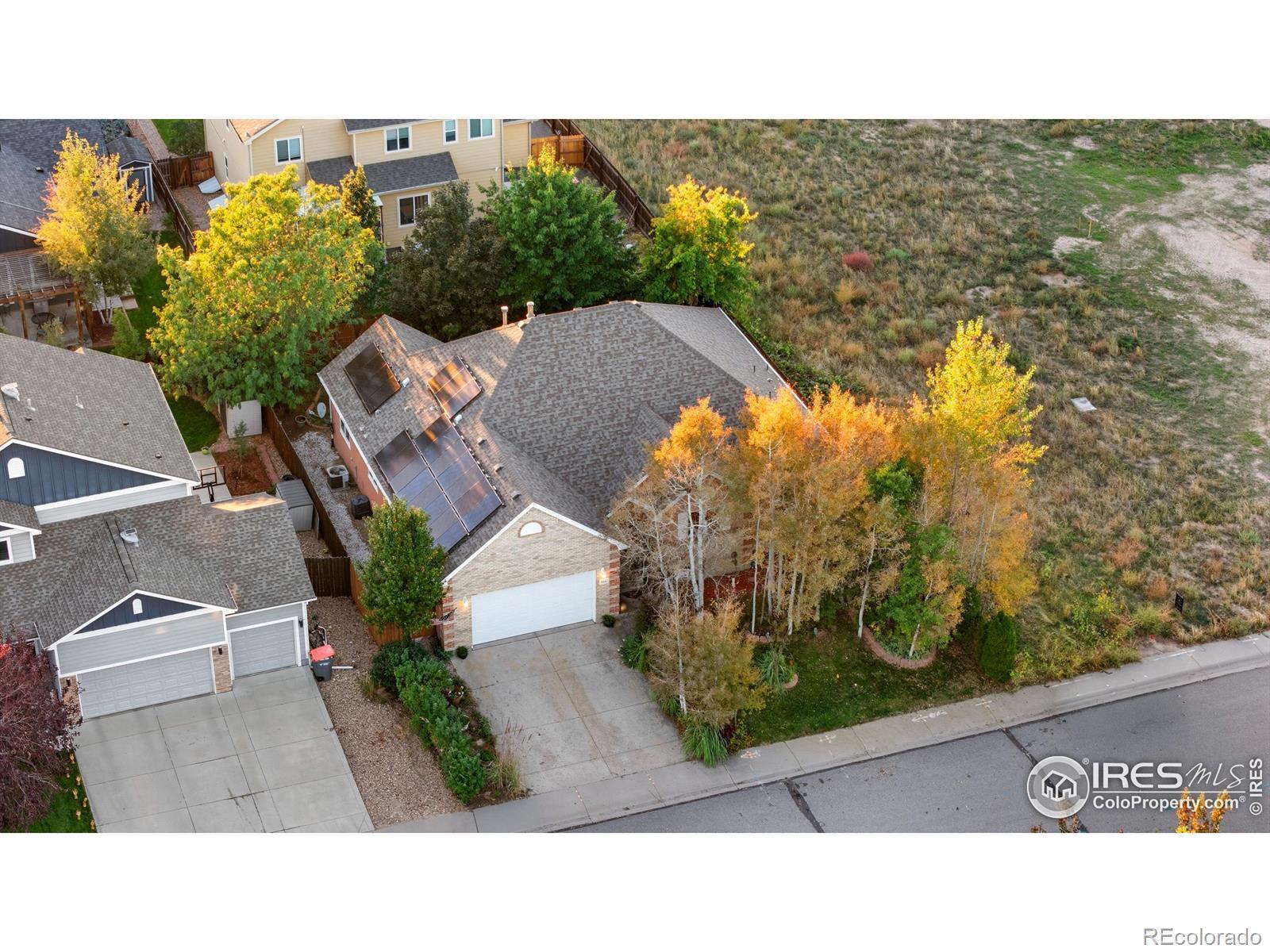 Peace & privacy welcome you upon entering this semi-custom 5 bed, 3 bath, ranch home. NO HOA or Metro District tax! Top percs: NEW A/C ($12k) 2025, all air ducts & carpets professionally cleaned. NEW Roof 2019 class 4 shingles. Water heater, washer & dryer NEW in 2017. Kitchen is functional & stylish w/stainless appliances, tile counters & backsplash, abundant cabinet/counter space, breakfast bar seating 4-6, & a separate dining room with entrance into the backyard/deck. Soaring vaulted ceilings adorn the open living room with oak floors, backyard views, gas fireplace, & lighted decorative niches. Primary en suite tucked away with private entry to backyard/deck & includes a gorgeous 5-piece bath w/ jetted tub, large tile shower, & walk-in closet. Solar panels installed 2019 & cost $199/month; xadd $23K to offer price for seller-paid solar panels. Fully-fenced backyard is your private oasis with pear, oak, maple, grapes, roses, & irises. Finished basement has large family/rec room, laundry, several storage areas, one lined with shelving. Two additional basement bedrooms, one that functions well as a second primary bedroom with full bath & radiant flooring heat. Oversized 2-car garage with shelving. Total electric, gas, & solar payment for July was only $276. Highly coveted neighborhood has Front Range views & is near great schools, coffee, dining, groceries, & Bella Rosa Golf Course.