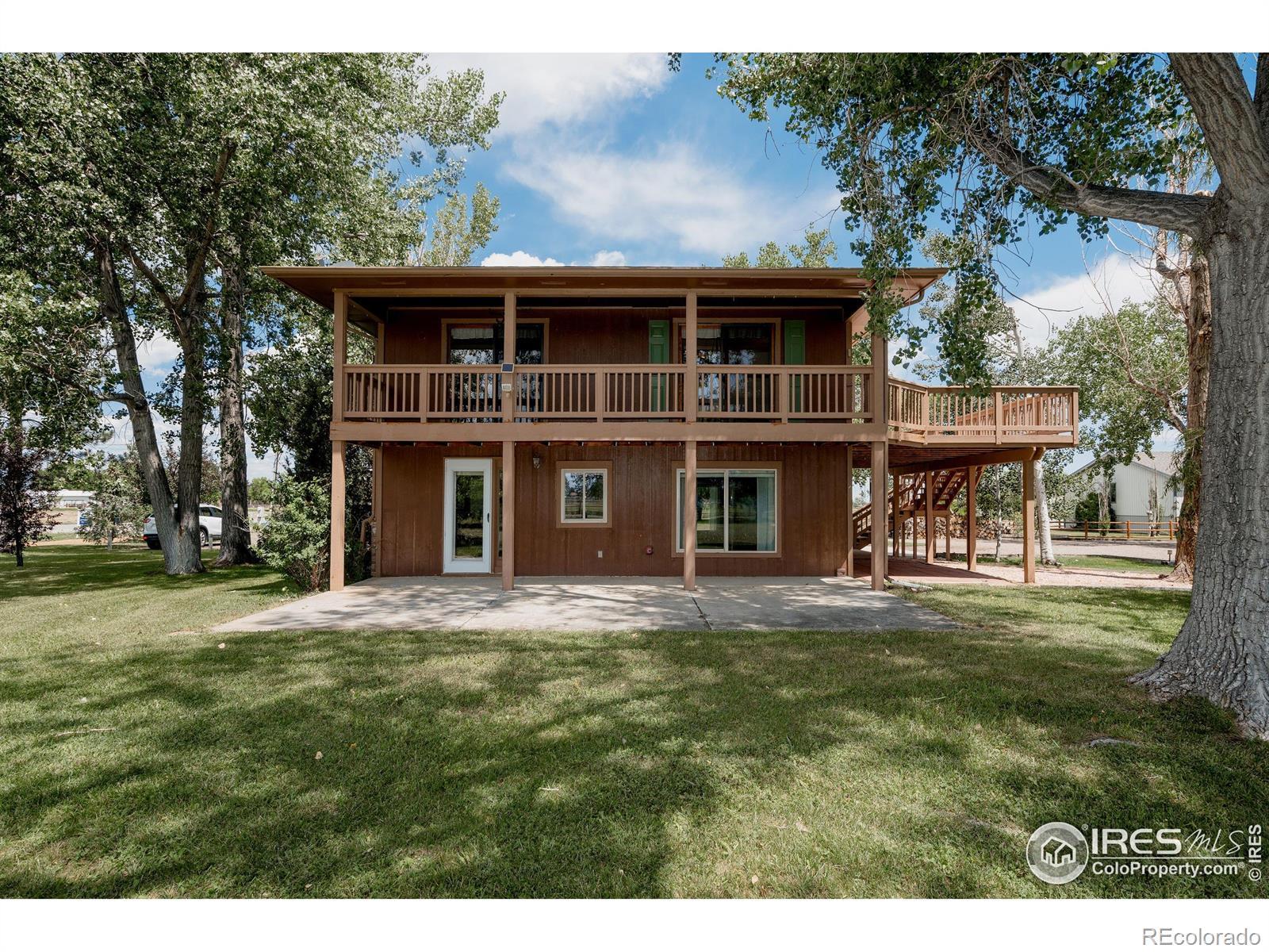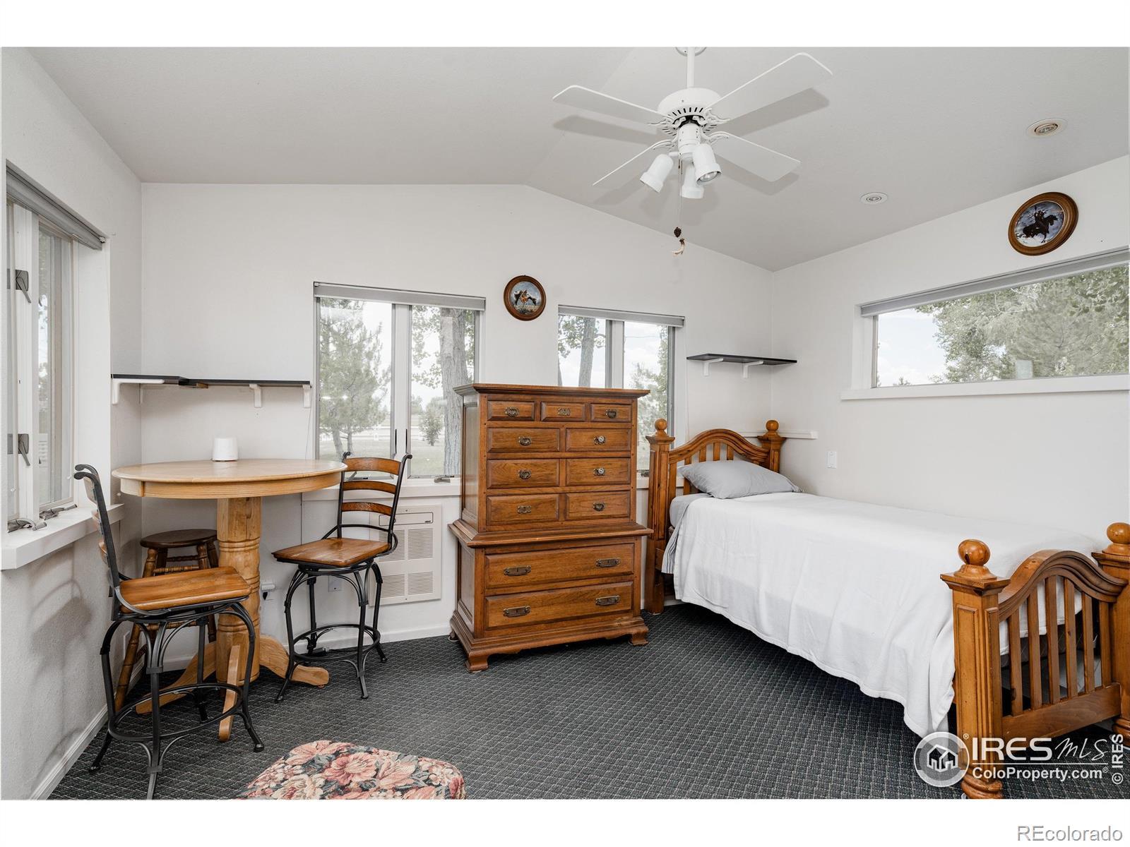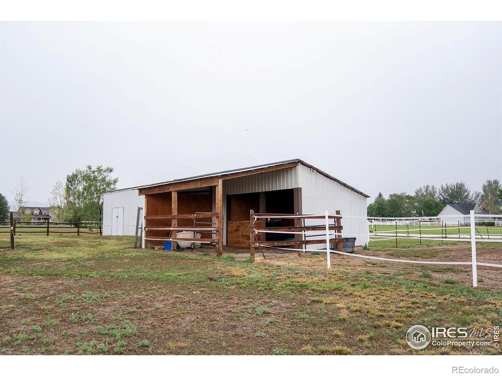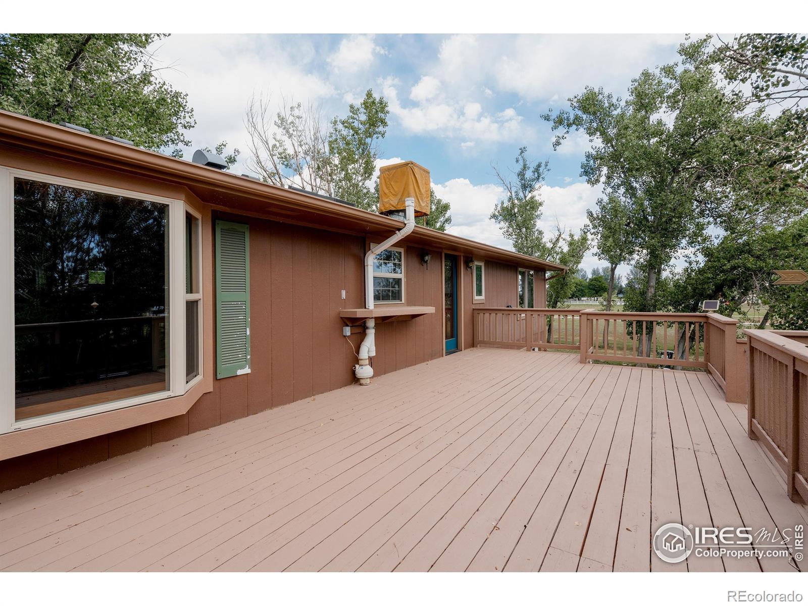Horse lover's dream! Endless possibilities on this 8.5 acre property backing to Lonetree Reservoir. Possibilities include, horse boarding, horse training, or just your own hobby farm. Beautiful setting, only minutes away from Loveland or Berthoud, yet with the feel of the country and open spaces. Bring the horses and chickens. Regulation sized riding arena. Round training corral. 4 safety fenced pastures. 4 stall heated barn. 3 paddocks with tall shed rows. Fantastic tack room with washing machine, 1/2 bath, and mini kitchenette. There is a separate barn workshop area to store all of your hay too. Giant chicken coop with heaters and fans for all the elements. House has been totally remodeled, with 3 beds 3 baths, hardwood floors throughout whole upper level. Detached caretaker's cottage, that is 1 bed, 1 bath, with full kitchen. 1/2 share of Handy Ditch. Best of all NO HOA! Come see it!