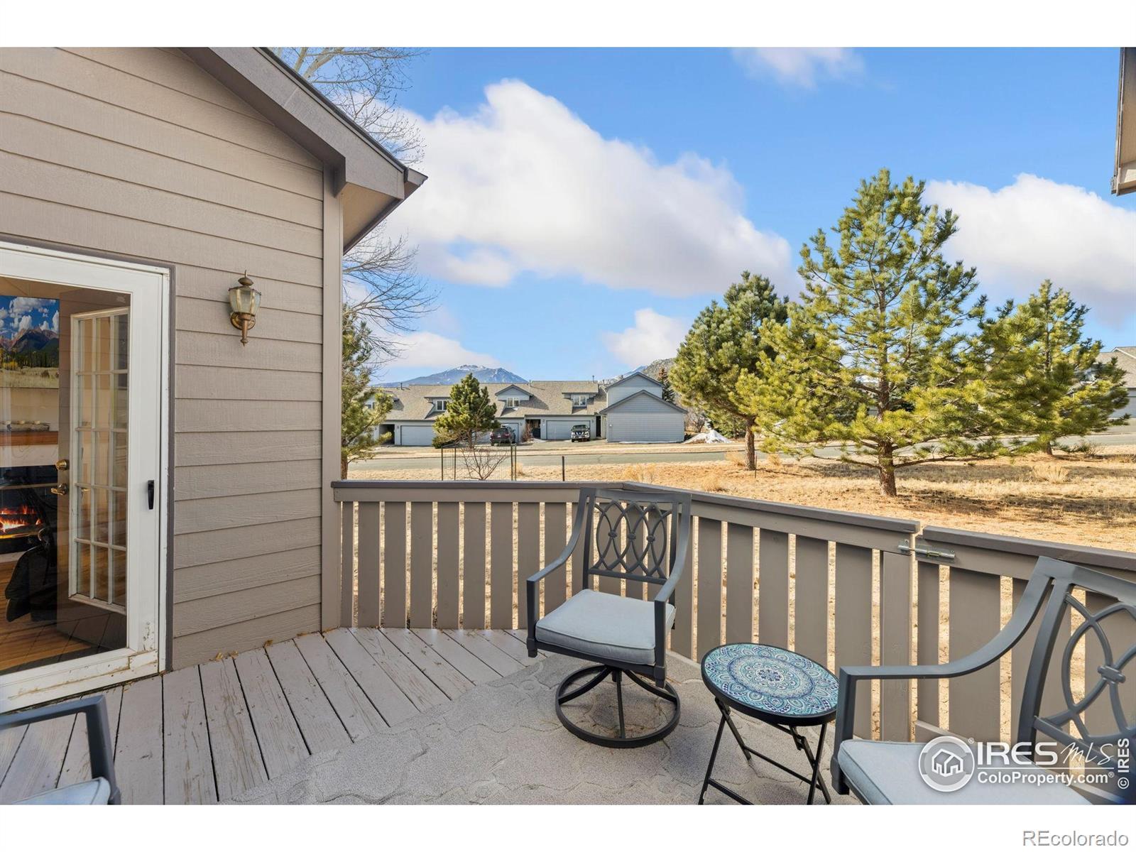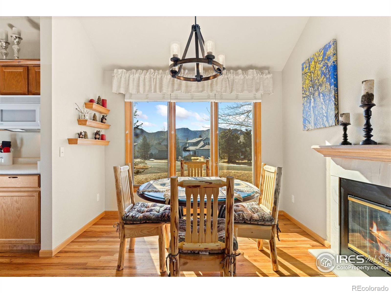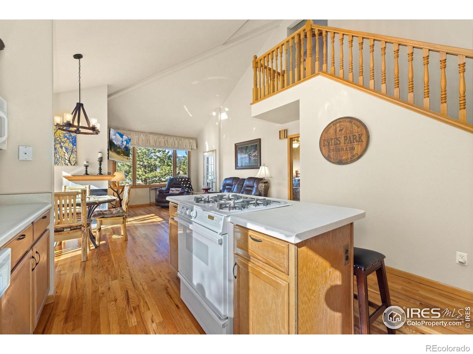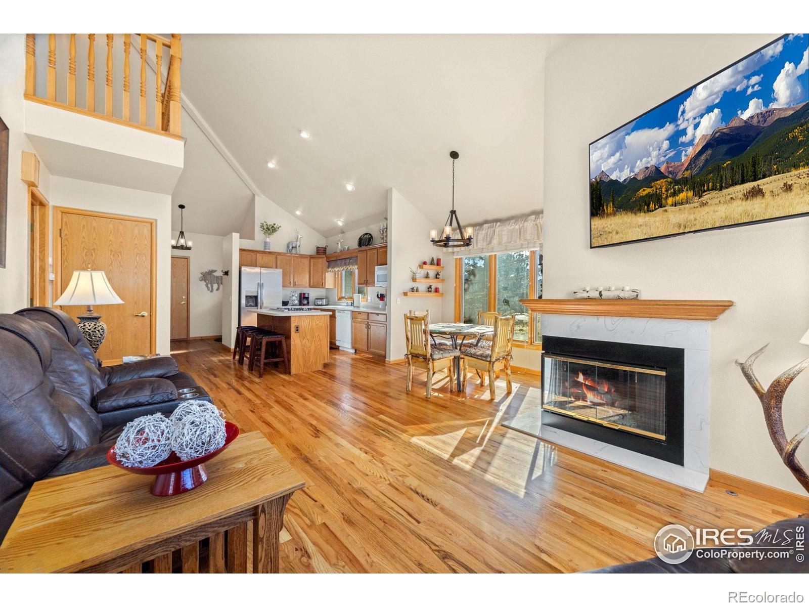 Mountain Views, Timeless Comfort - Welcome to Ranch Meadow. This beautifully cared-for 3-bedroom, 3-bath condo offers effortless mountain living with panoramic views and thoughtful design throughout. Whether you're seeking a full-time home or a turn-key mountain retreat, this is the Estes Park lifestyle at its best. Step into an open-concept living space where vaulted ceilings and natural light welcome you. The gas fireplace anchors the living room-perfect for cozy evenings after a day on the trails. The kitchen is both functional and inviting, featuring warm wood cabinetry, generous counter space, and a center island with a gas cooktop-ideal for casual meals or hosting friends. Enjoy dinner with a view in the dining area, where expansive windows frame the surrounding peaks. The main-level primary suite offers privacy and comfort, complete with an en-suite bath and large windows to take in the scenery. Upstairs, two spacious bedrooms offer flexibility for guests or work-from-home space. Step outside to a private deck and savor your morning coffee against a backdrop of towering peaks and Colorado blue skies. An attached 2-car garage provides ample room for your bikes, gear, and all the tools of mountain adventure. Tucked in the desirable Ranch Meadow community, this home offers low-maintenance living so you can focus on what matters most-hiking, wildlife watching, and enjoying the best of Estes Park.