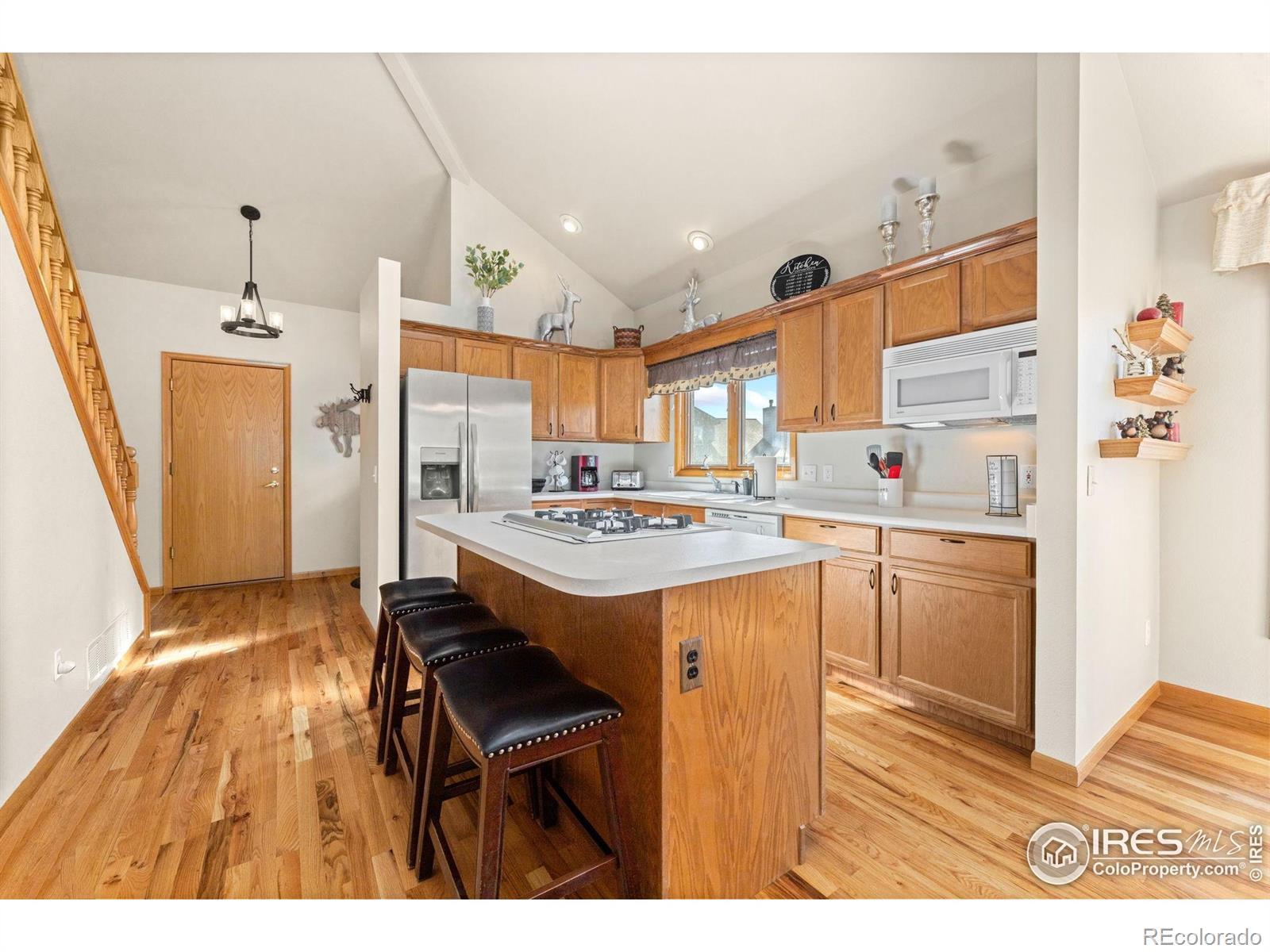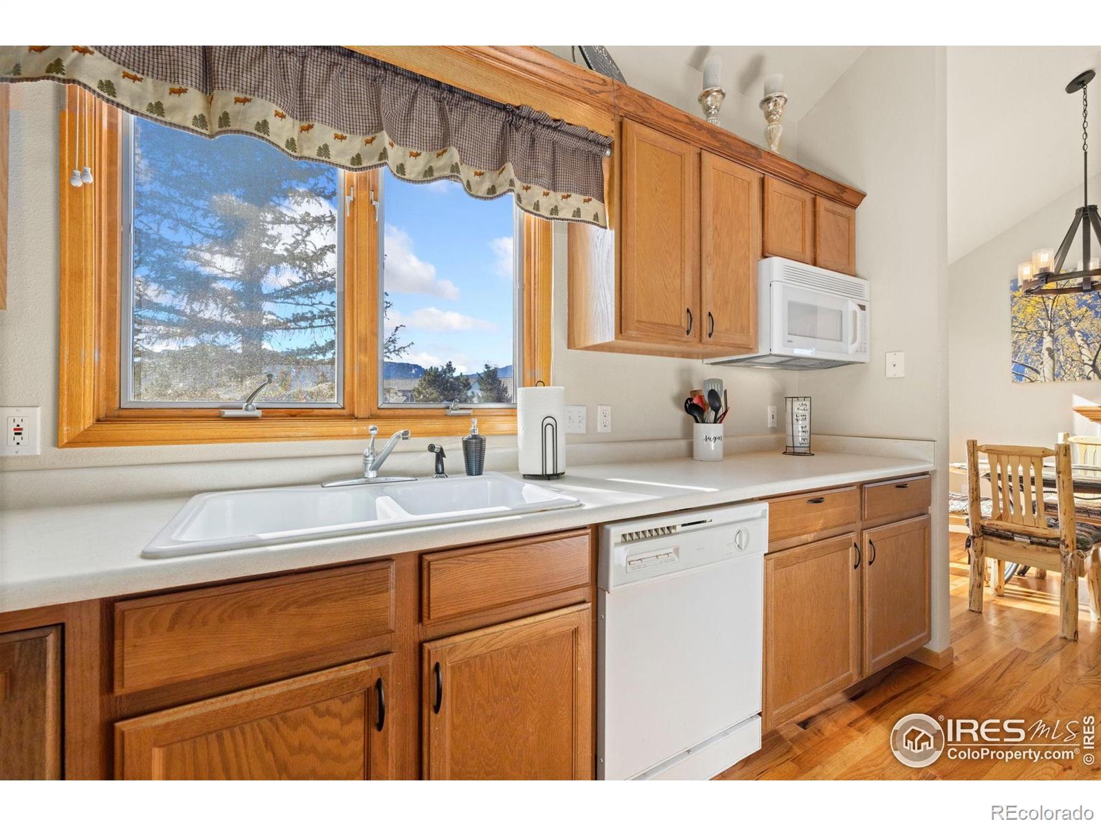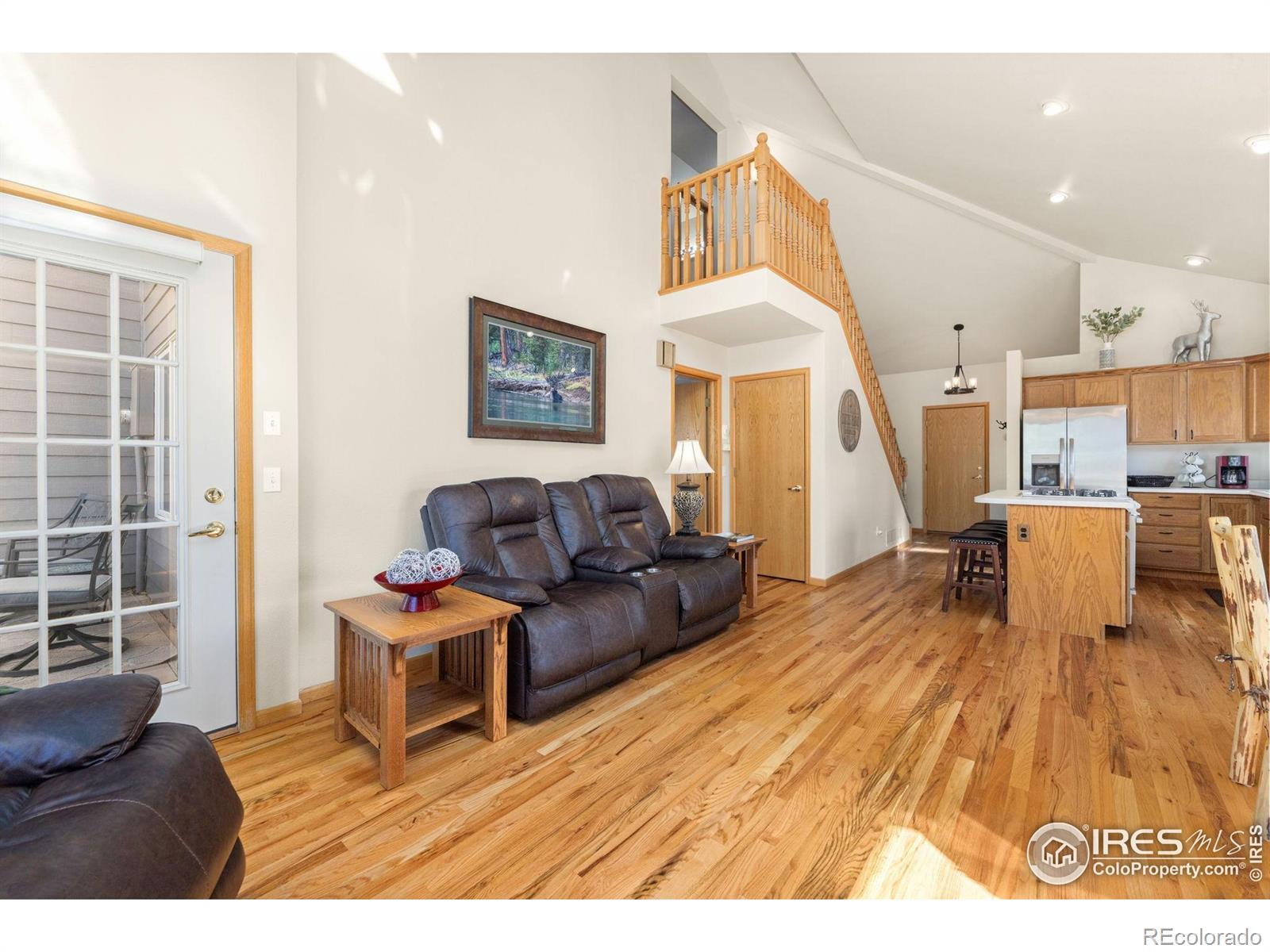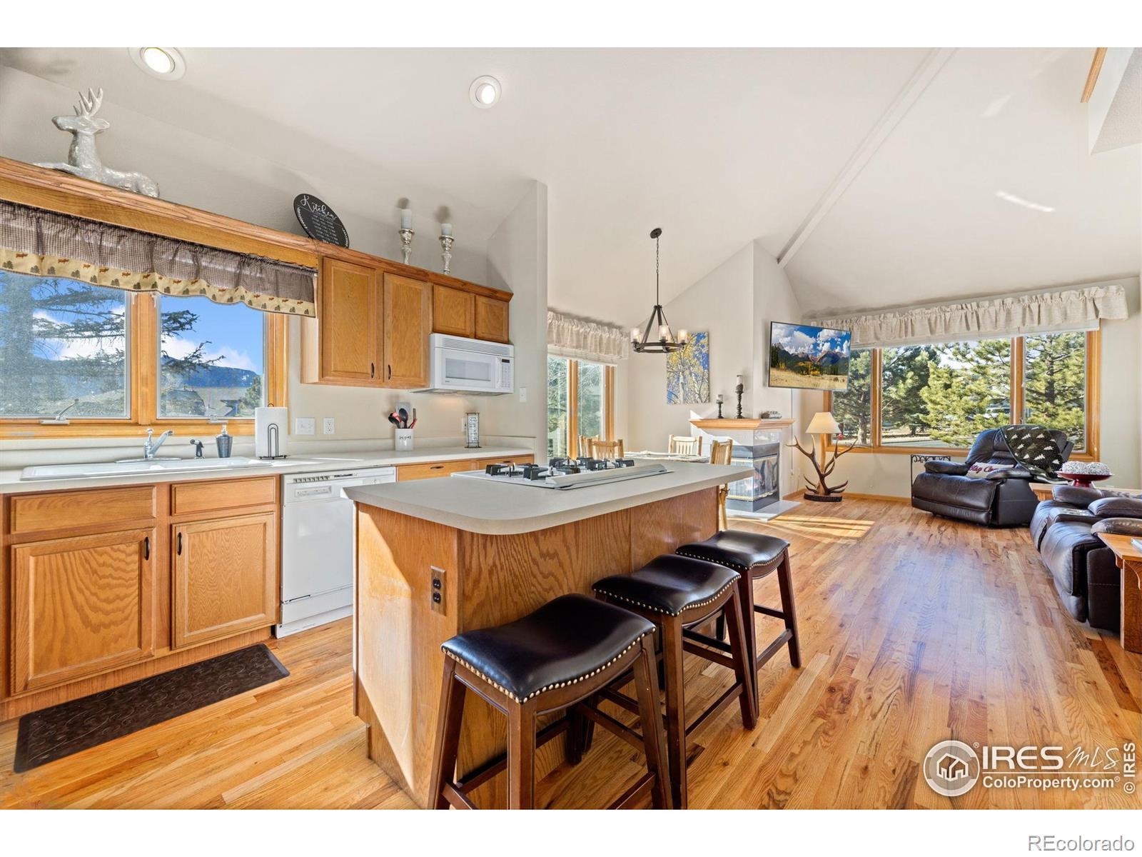Mountain Views, Timeless Comfort - Welcome to Ranch Meadow. This beautifully cared-for 3-bedroom, 3-bath condo offers effortless mountain living with panoramic views and thoughtful design throughout. Whether you're seeking a full-time home or a turn-key mountain retreat, this is the Estes Park lifestyle at its best. Step into an open-concept living space where vaulted ceilings and natural light welcome you. The gas fireplace anchors the living room-perfect for cozy evenings after a day on the trails. The kitchen is both functional and inviting, featuring warm wood cabinetry, generous counter space, and a center island with a gas cooktop-ideal for casual meals or hosting friends. Enjoy dinner with a view in the dining area, where expansive windows frame the surrounding peaks. The main-level primary suite offers privacy and comfort, complete with an en-suite bath and large windows to take in the scenery. Upstairs, two spacious bedrooms offer flexibility for guests or work-from-home space. Step outside to a private deck and savor your morning coffee against a backdrop of towering peaks and Colorado blue skies. An attached 2-car garage provides ample room for your bikes, gear, and all the tools of mountain adventure. Tucked in the desirable Ranch Meadow community, this home offers low-maintenance living so you can focus on what matters most-hiking, wildlife watching, and enjoying the best of Estes Park.