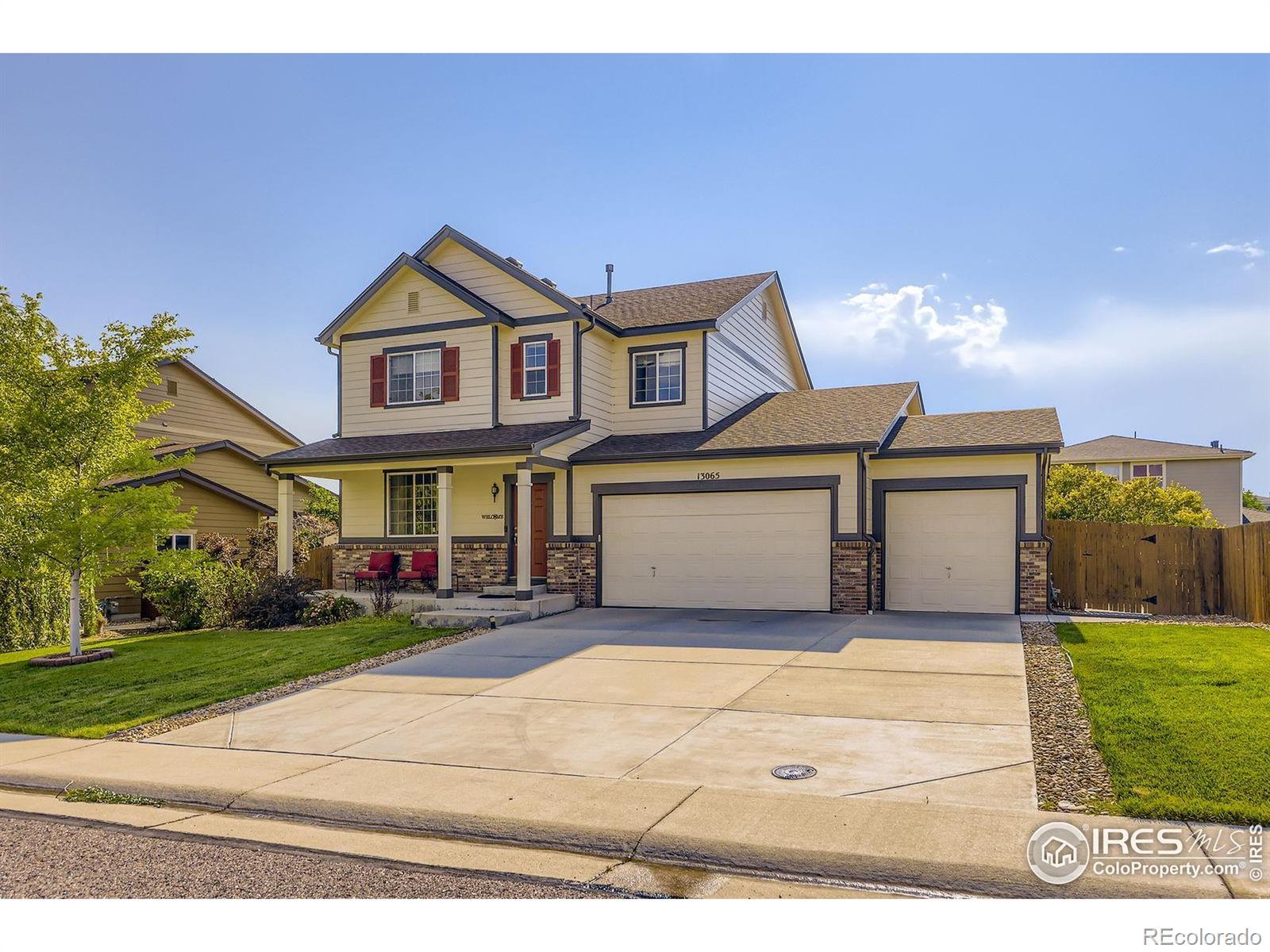 Welcome to 13065 Tamarac Place in The Villages at Riverdale! This 4-bedroom, 3.5-bathroom home offers 3,306 sq ft of living space and has been lovingly maintained by its original owner. The main level features engineered hardwood floors, a bright home office, a large living room, dining area, and a chef's kitchen with double ovens and a walk-in pantry. The open floor plan flows into the backyard, where you'll find a beautiful stamped concrete patio, pergola, and a 12' x 6' Tuff Shed for storage. Upstairs, the spacious primary suite offers plenty of room for relaxation along with two additional bedrooms and a full bathroom. The laundry room is conveniently located upstairs near the bedrooms, and the washer and dryer are included! The basement includes a bedroom, a 3/4 bathroom, a living area, and a large unfinished storage room. Recent updates include fresh exterior paint (2023) with a transferable warranty, a brand-new roof, and a new water heater (Feb 2025). The home also features a covered front porch and a 3-car garage. Located in an established neighborhood with mature trees, nearby trails, parks, shopping, and a new library, this home truly has it all. Since there is no metro-district, the taxes are lower than surrounding neighborhoods! This home also comes with a 1-year First American Home Warranty.