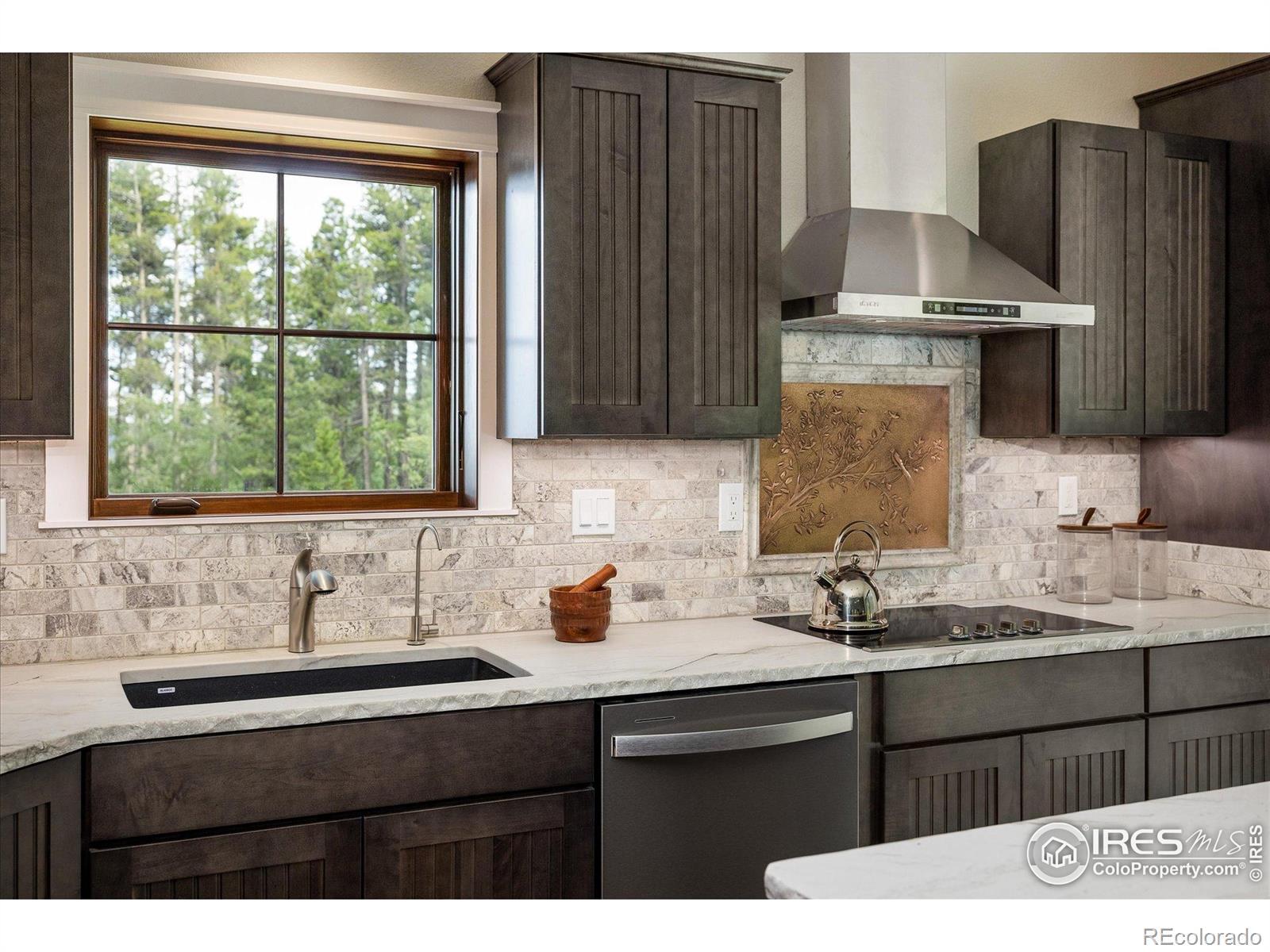 New-build Mountain Home: This luxurious, custom-designed mountain home offers modern systems and thoughtful finishes throughout. The vaulted great room features a fireplace and opens to a high-end kitchen and spacious loft above. Two large bedrooms-one on each level-include soundproofed walls, custom closets, and private luxury en-suite baths with double vanities, handmade Spanish tile, and a steam shower (upper level). A main-level laundry and mudroom add convenience. Set on a private 1.67-acre lot with 135 acres of undeveloped land to the south, wildfire mitigation is complete & ready for Wildfire Partners certification. Durable, fire-resistant exterior features beautiful 24-gauge standing seam roof & siding, Andersen Eagle metal-clad windows, and multiple TimberTech decks, including an east-facing balcony w/ foothill views. (all with fire resistance in mind.) Detached 720 sf garage and 780 sf outbuilding. Interior highlights include solid pine doors, custom railings, luxury vinyl plank flooring & luxury basement carpet (both radiant-friendly), & color-temp adjustable lighting. Gourmet Kitchen: Brazilian quartzite counters, stainless steel appliances, French door fridge, induction cooktop, motion-activated hood, custom copper/stone backsplash, multifunction microwave oven, under-cabinet lighting, soft-close maple cabinets, custom wine racks, and large island. Lower Level: Spacious flex area for media & fitness, & office. Features suspended ceiling for easy utility access. In-floor radiant heat with room-by-room thermostats (with efficient on-demand electric), gas fireplace with remote thermostat, heat recovery ventilation system, R54 ceiling insulation (mid-winter tested) & interior fire suppression system. SepticSmart certified, well with water treatment, fiber internet via Mountain Broadband. Minutes from Gross Reservoir, national forest, Nederland, & Eldora. 30-40 mins to Boulder, Golden, Denver; 1 hr to DIA.