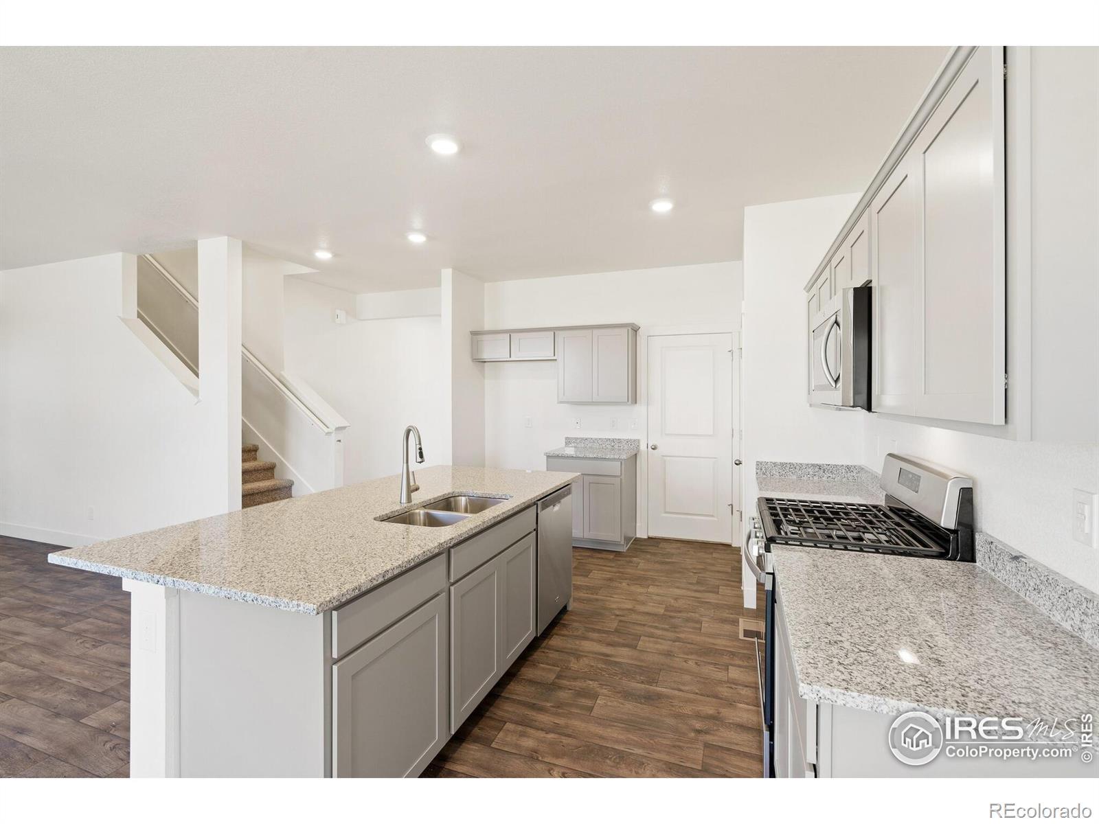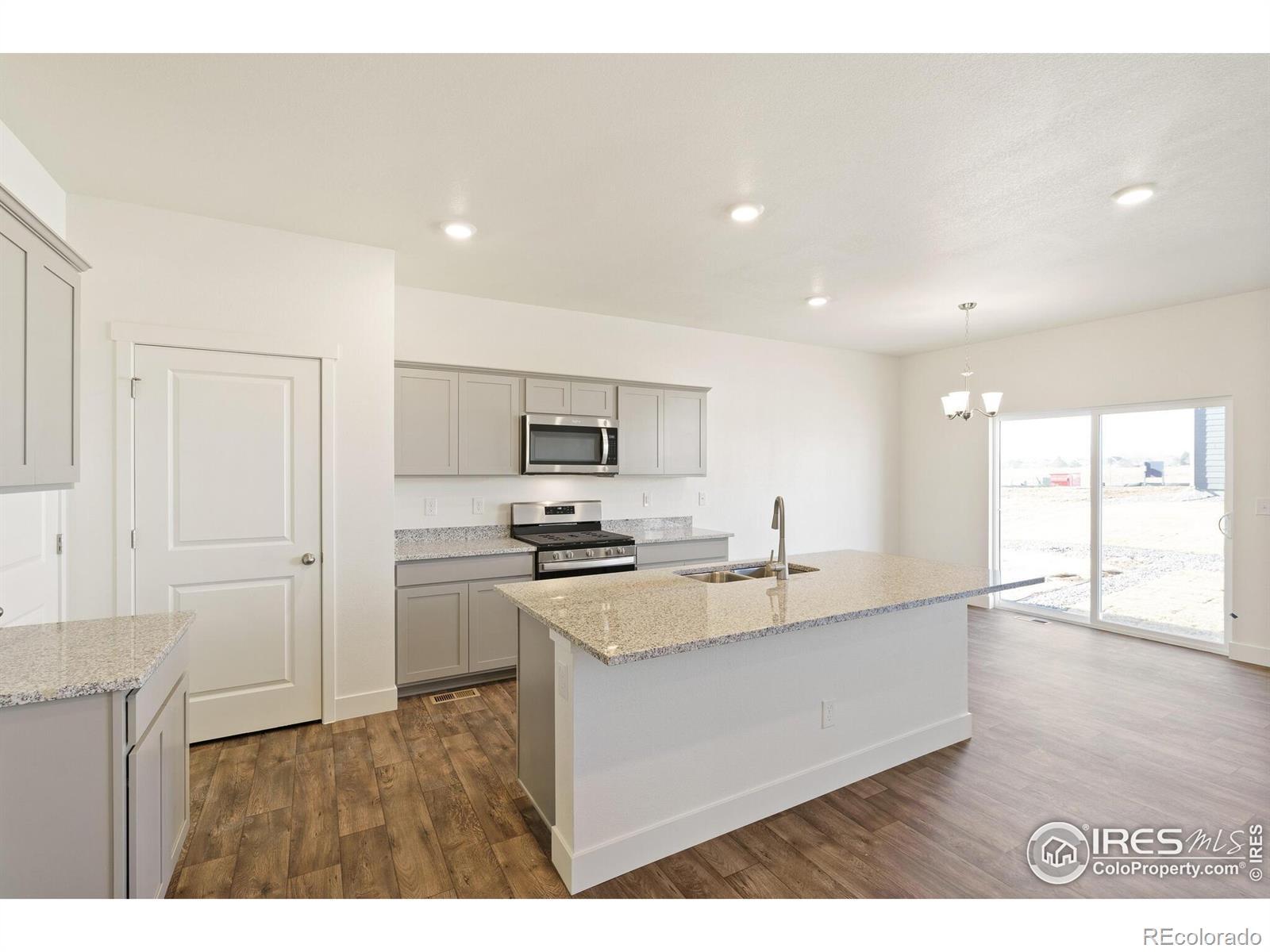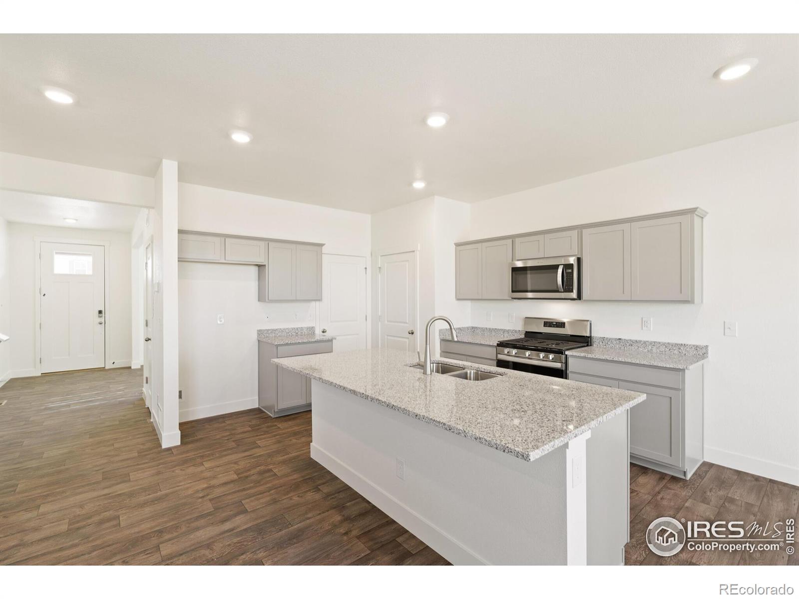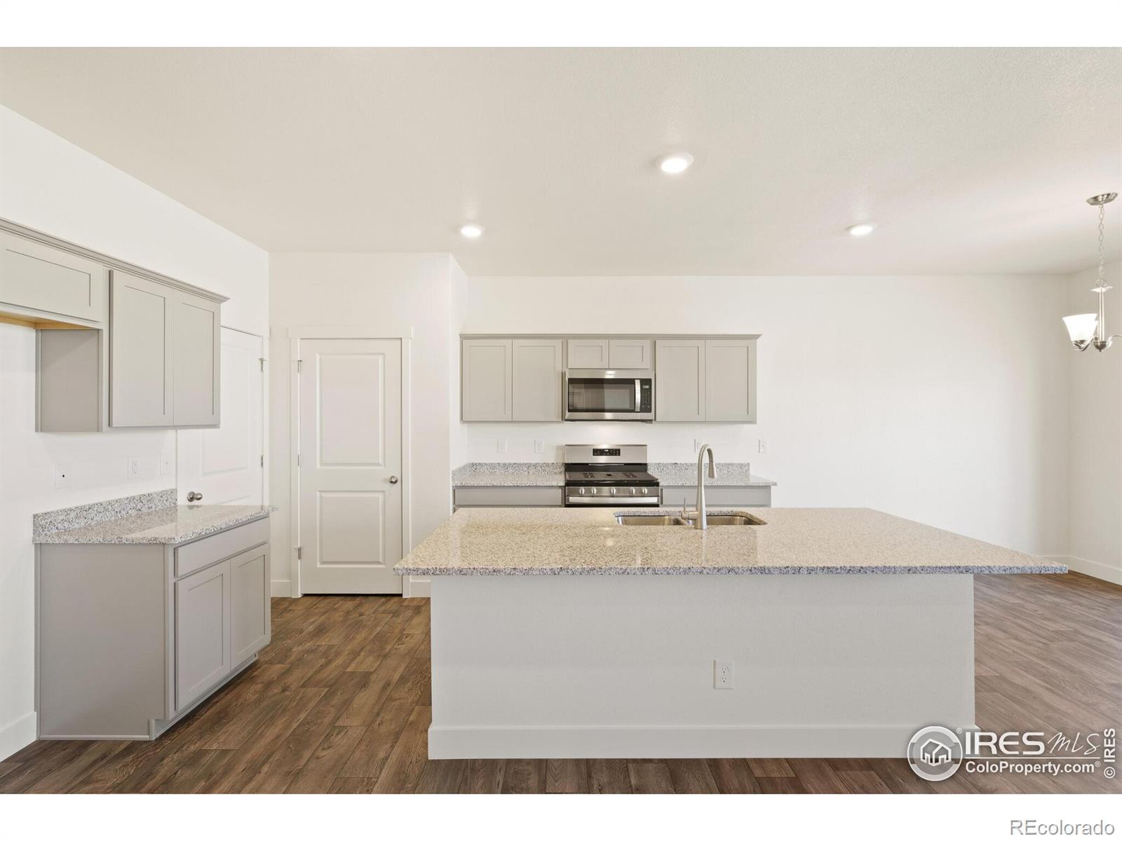 Welcome to the Henley, an impressive 5 bed, 3 bath home offering 2,652 sq ft of comfortable, modern living. All appliances including fridge, washer and dryer, plus window coverings, and backyard landscaping are included. Thoughtfully designed, this home features a full bedroom and bathroom on the main level, perfect for guests or flexible living needs, along with a dedicated main floor study ideal for remote work or quiet focus. Located in Johnstown, CO, you'll enjoy a growing community with access to local parks, schools, and major commuter routes across Northern Colorado. The heart of the home is the open-concept kitchen, showcasing quartz countertops, pendant lighting, upgraded backsplash, and beautiful gray cabinetry with hardware upgrades. A spacious upstairs loft offers a secondary living area, while four additional bedrooms including a private primary suite with a tiled walk-in shower and quartz double vanity provide room for everyone. All three bathrooms are elevated with quartz counters and tiled floors for a clean, upscale finish. This home includes a 9' in-ground basement, offering incredible future potential. ***Estimated Delivery Date: October. Photos are representative and not of actual property***