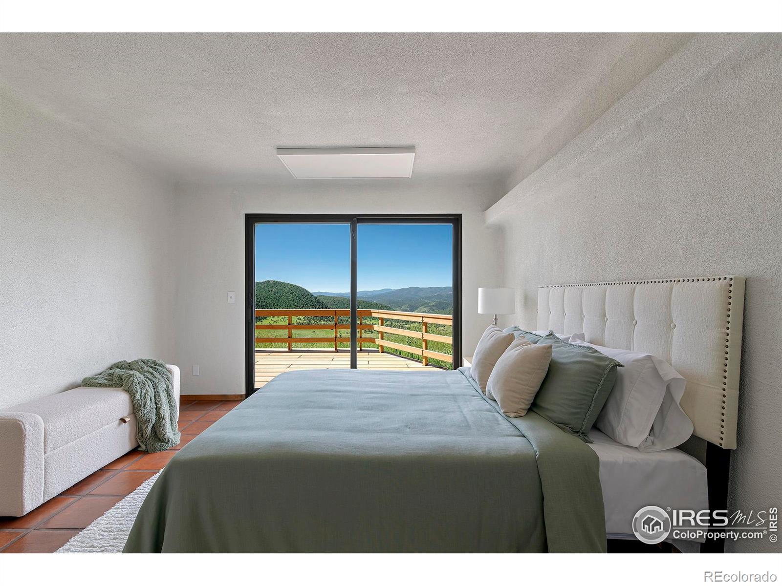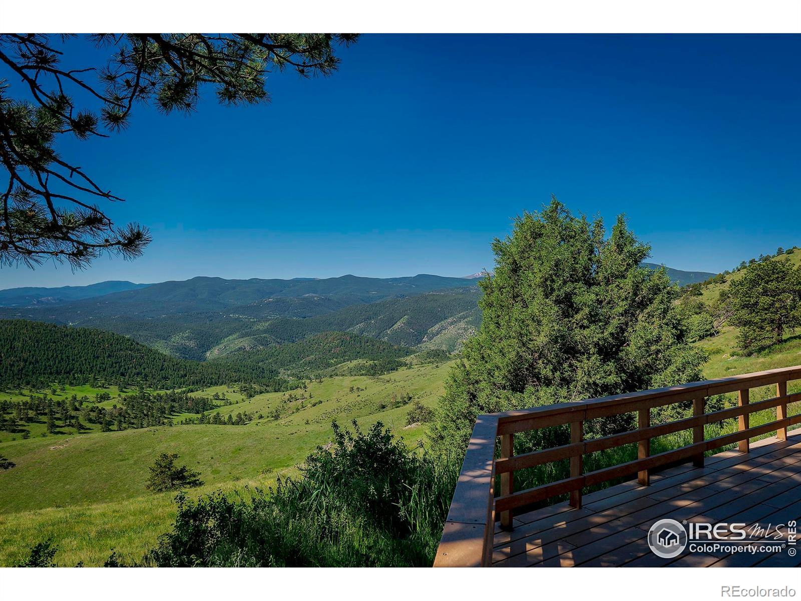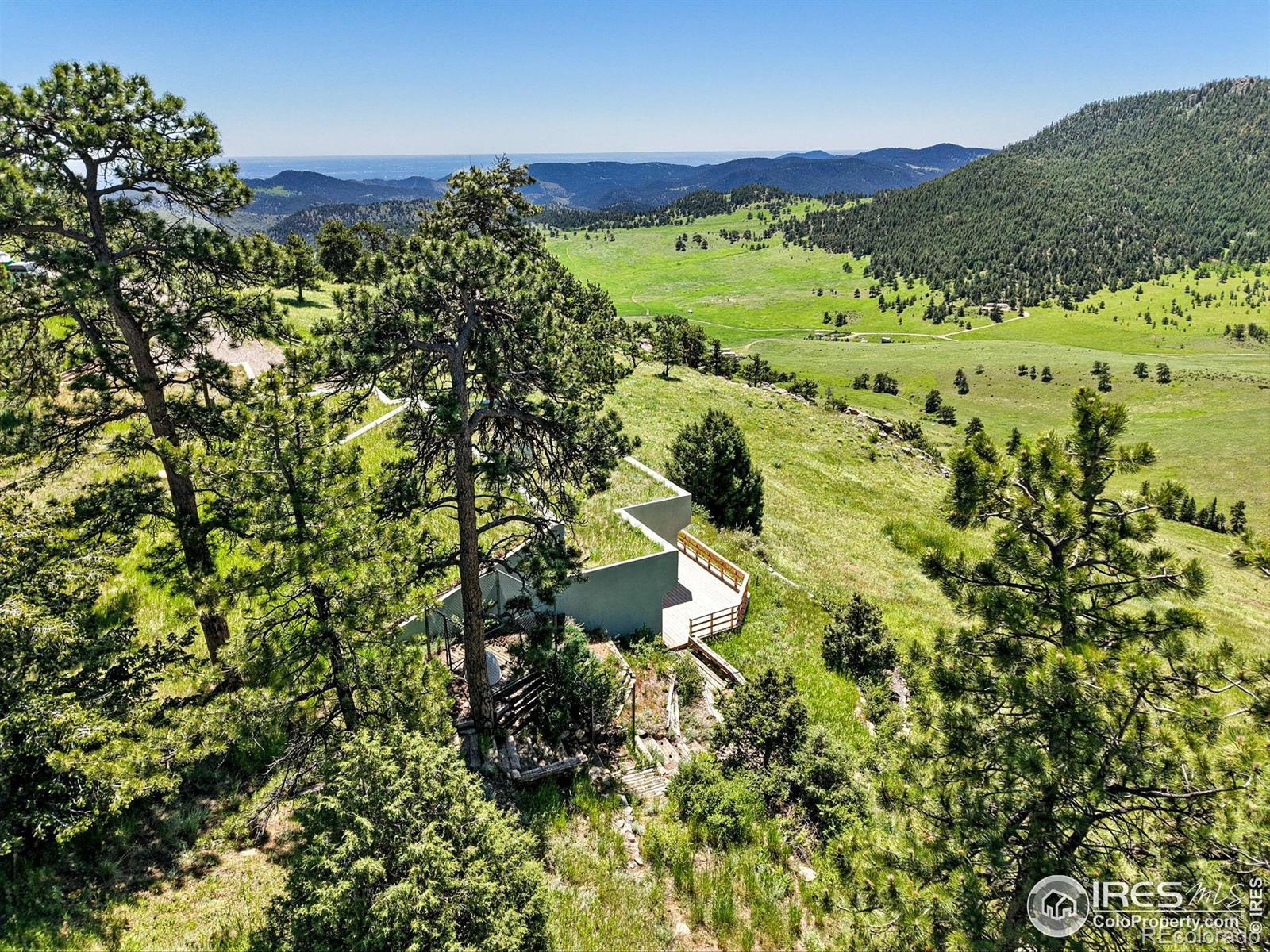 Rare and remarkable 100-acre legacy property in the foothills of Golden, CO-offering privacy, sustainability, and breathtaking views. This one-of-a-kind, earth-sheltered / earth bermed home is built into the mountainside with thick concrete walls, passive solar design, and a living grass roof that blends seamlessly into the natural landscape. Enjoy unobstructed mountain, valley, and city views, along with direct access to Jefferson County Open Space and miles of hiking and biking trails. Set at the end of a one-mile privately maintained road, the 3BD/2BA home features vaulted ceilings, open-concept living, Saltillo tile floors that retain solar warmth, Brazilian engineered hardwood, and clerestory windows that fill the space with light and air. A cast-iron woodstove and thermal mass wall warm the living areas and adjacent primary suite, while electric ceiling panels provide supplemental heat. The kitchen offers custom wood cabinetry, center island, and panoramic views, with direct access to a spacious composite deck-perfect for sunset dining or relaxing in nature. The primary suite includes wall-to-wall windows, a cozy sitting nook, walk-in closet, and deck access. Two additional bedrooms feature outdoor access, generous storage, and a shared Jack-and-Jill bath. A 3-car attached garage is complemented by a second detached 3-car garage. This site features a permitted, income-producing 150-foot guyed communication tower and a 645-square-foot control building, all located on a separate 5.6-acre parcel zoned for special use by Jefferson County (~$16K/year gross revenue). Surrounded by protected land, wildlife, and expansive skies, this sustainable retreat offers peace, purpose, and a deep connection to the landscape-just 30 minutes from Golden.