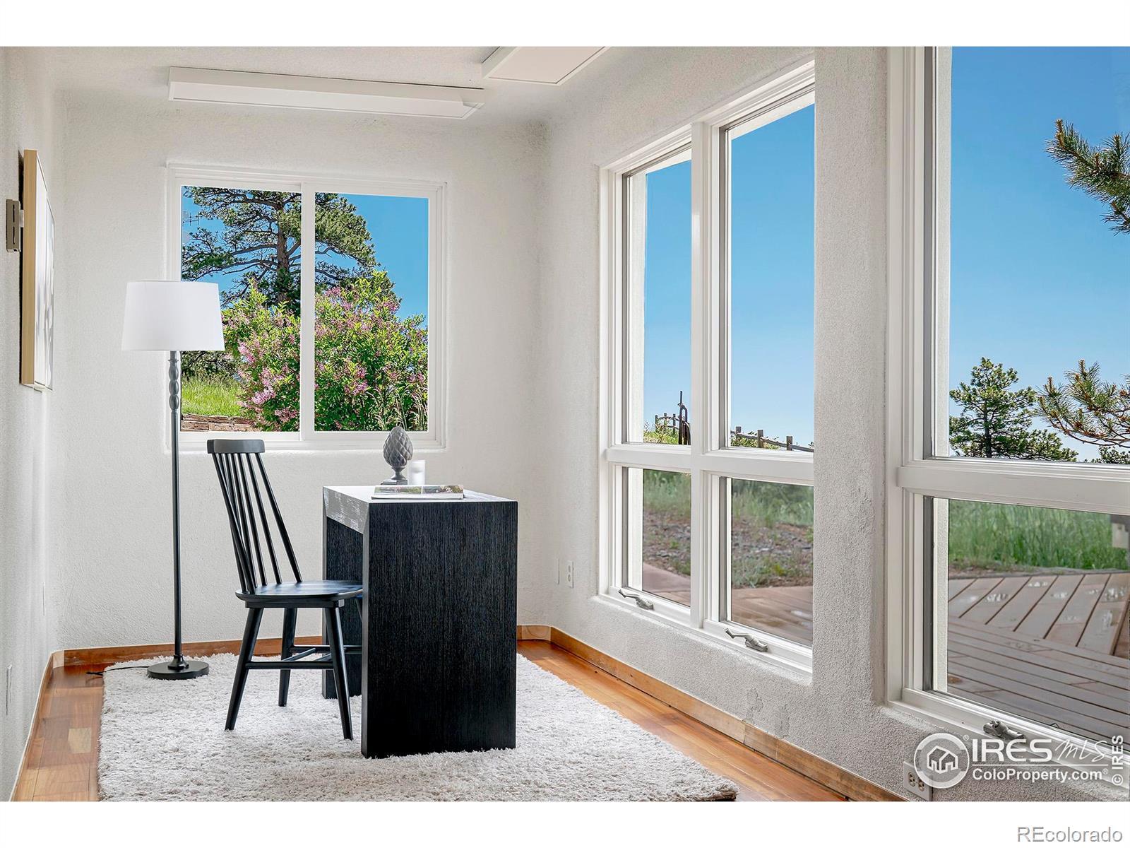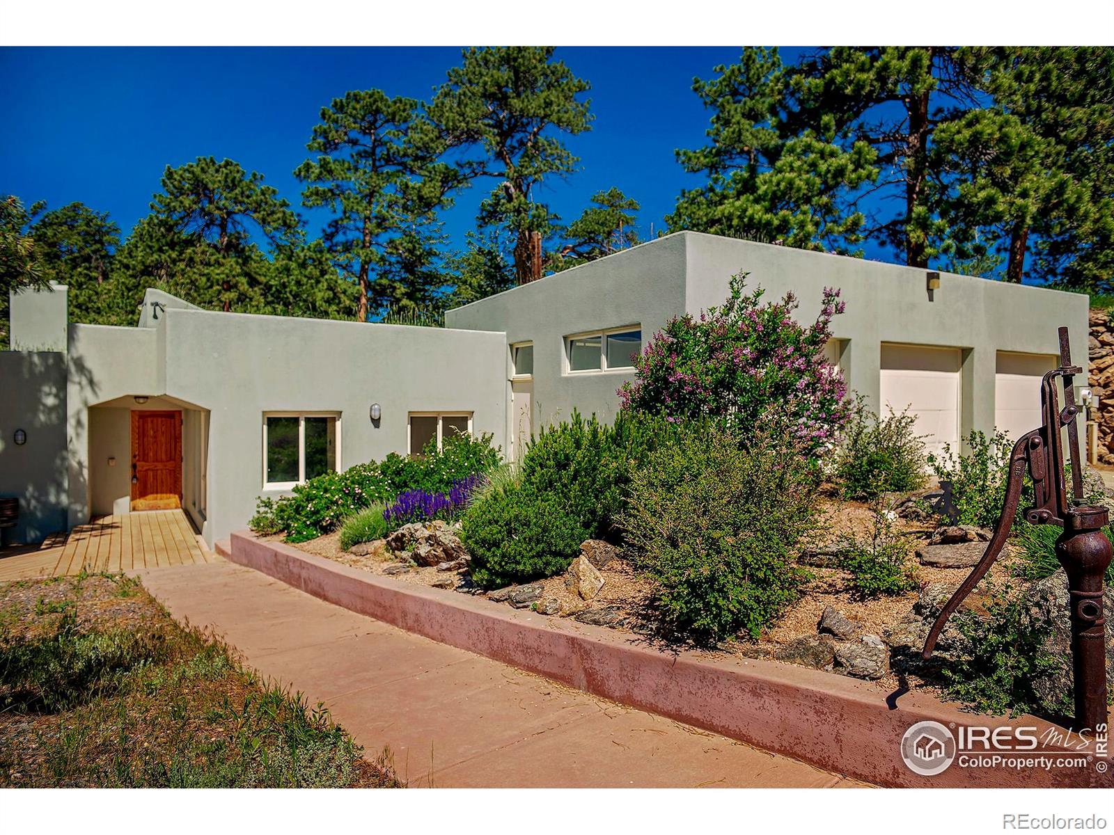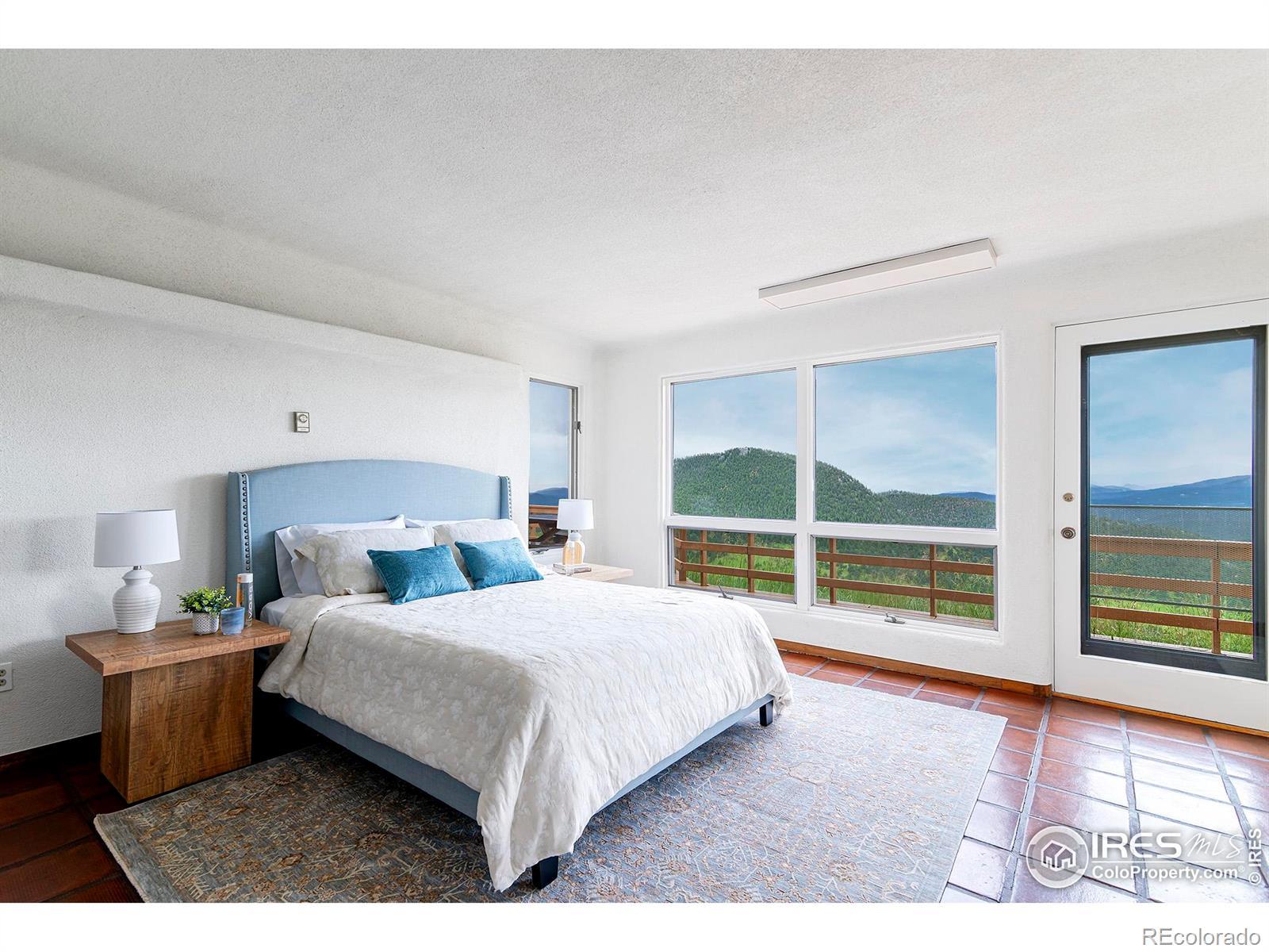 Rare and remarkable 100-acre legacy property in the foothills of Golden, CO-offering privacy, sustainability, and breathtaking views. This one-of-a-kind, earth-sheltered / earth bermed home is built into the mountainside with thick concrete walls, passive solar design, and a living grass roof that blends seamlessly into the natural landscape. Enjoy unobstructed mountain, valley, and city views, along with direct access to Jefferson County Open Space and miles of hiking and biking trails. Set at the end of a one-mile privately maintained road, the 3BD/2BA home features vaulted ceilings, open-concept living, Saltillo tile floors that retain solar warmth, Brazilian engineered hardwood, and clerestory windows that fill the space with light and air. A cast-iron woodstove and thermal mass wall warm the living areas and adjacent primary suite, while electric ceiling panels provide supplemental heat. The kitchen offers custom wood cabinetry, center island, and panoramic views, with direct access to a spacious composite deck-perfect for sunset dining or relaxing in nature. The primary suite includes wall-to-wall windows, a cozy sitting nook, walk-in closet, and deck access. Two additional bedrooms feature outdoor access, generous storage, and a shared Jack-and-Jill bath. A 3-car attached garage is complemented by a second detached 3-car garage. This site features a permitted, income-producing 150-foot guyed communication tower and a 645-square-foot control building, all located on a separate 5.6-acre parcel zoned for special use by Jefferson County (~$16K/year gross revenue). Surrounded by protected land, wildlife, and expansive skies, this sustainable retreat offers peace, purpose, and a deep connection to the landscape-just 30 minutes from Golden.