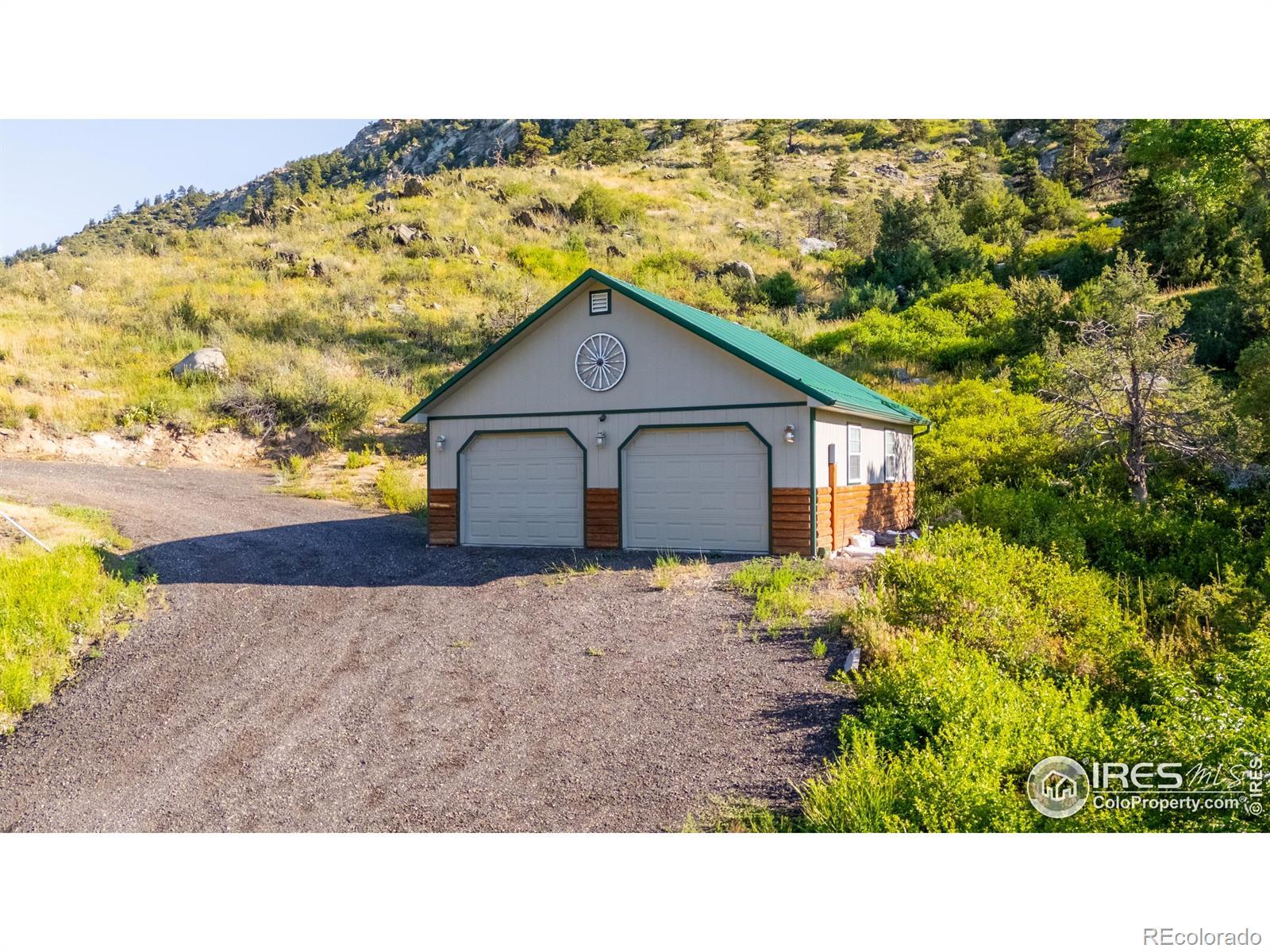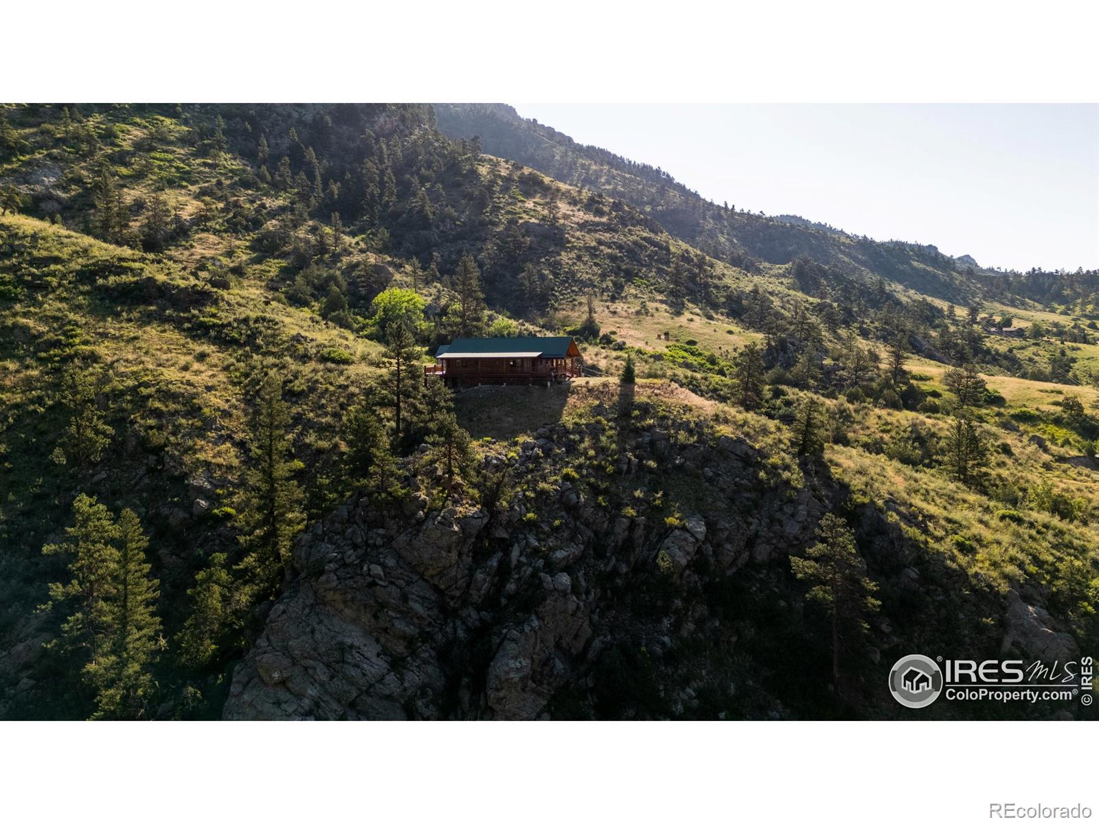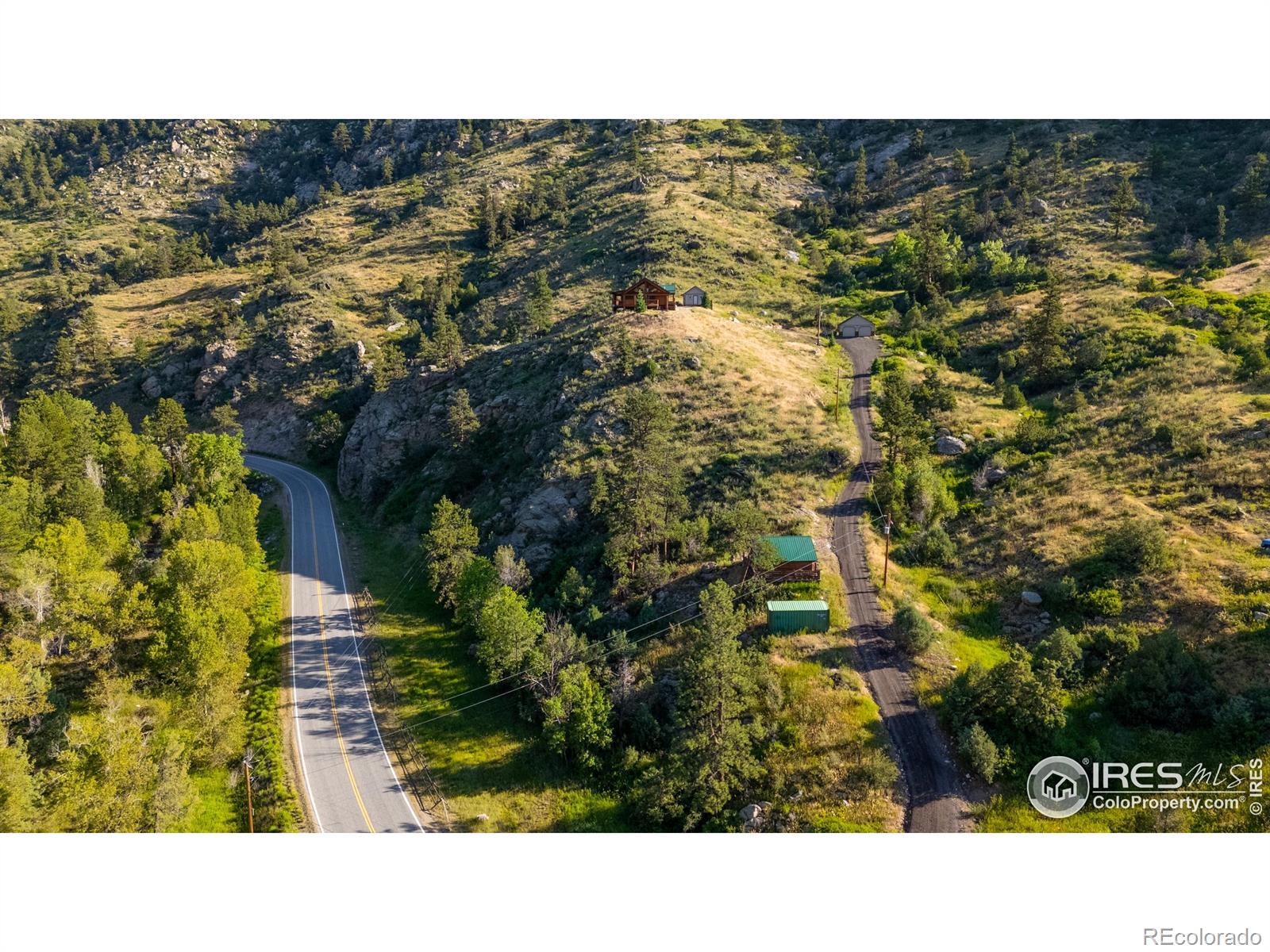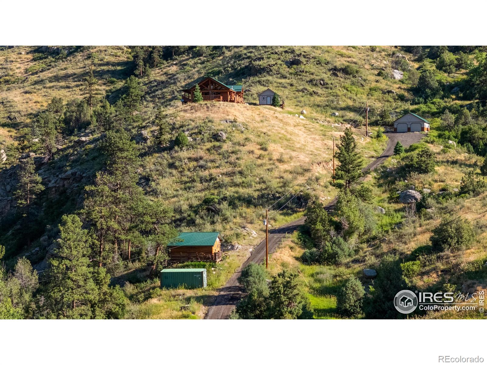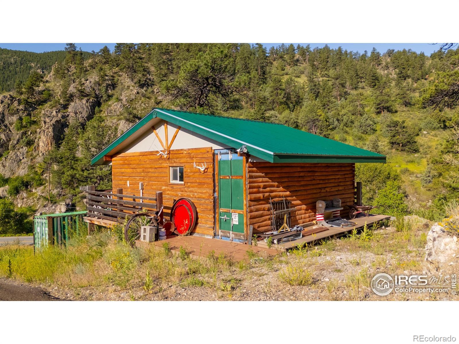 Welcome to your Colorado mountain escape above the North fork of the Big Thompson Canyon - a handcrafted log home on 3.12 acres with panoramic views, unmatched privacy, and year-round access between Loveland and Estes Park. Built in 2001, at 1,440 square feet, this home packs a punch-well-laid-out, comfortable, and ready for whatever you've got planned.", with vaulted ceilings, a free standing stove, and a wraparound deck designed to soak in every sunrise and starry night. Ideal for those seeking solitude, recreation, and the authentic feel of the Rockies. This is a Colorado treasure. The home features 2 bedrooms and 2 baths, an open kitchen and living area, and thoughtful use of space throughout. Natural light pours in through large windows that frame the surrounding cliffs and forested hillsides. The home is served by a permitted domestic well and septic system, with forced air heat and propane stove for winter comfort.Outbuildings include a detached 320 sq ft studio with power (perfect for art, writing, or remote work), a 14x16 detached garage, a 20x23 large wood shop, and a permitted shipping container for secure storage. The 3.12-acre lot blends open, usable ground near the home with rugged timbered terrain, rock outcroppings, and natural privacy. Wildlife is abundant, and the setting supports hiking, exploring, and quiet time outdoors. Located just 25 minutes to Loveland, 20 minutes to Estes Park, and under an hour to Boulder and Fort Collins. Rocky Mountain National Park and the Roosevelt National Forest are within easy reach, and the North Fork of the Big Thompson River - known for its fly fishing - winds just below the property. This is mountain living with soul, simplicity, and a true sense of place.