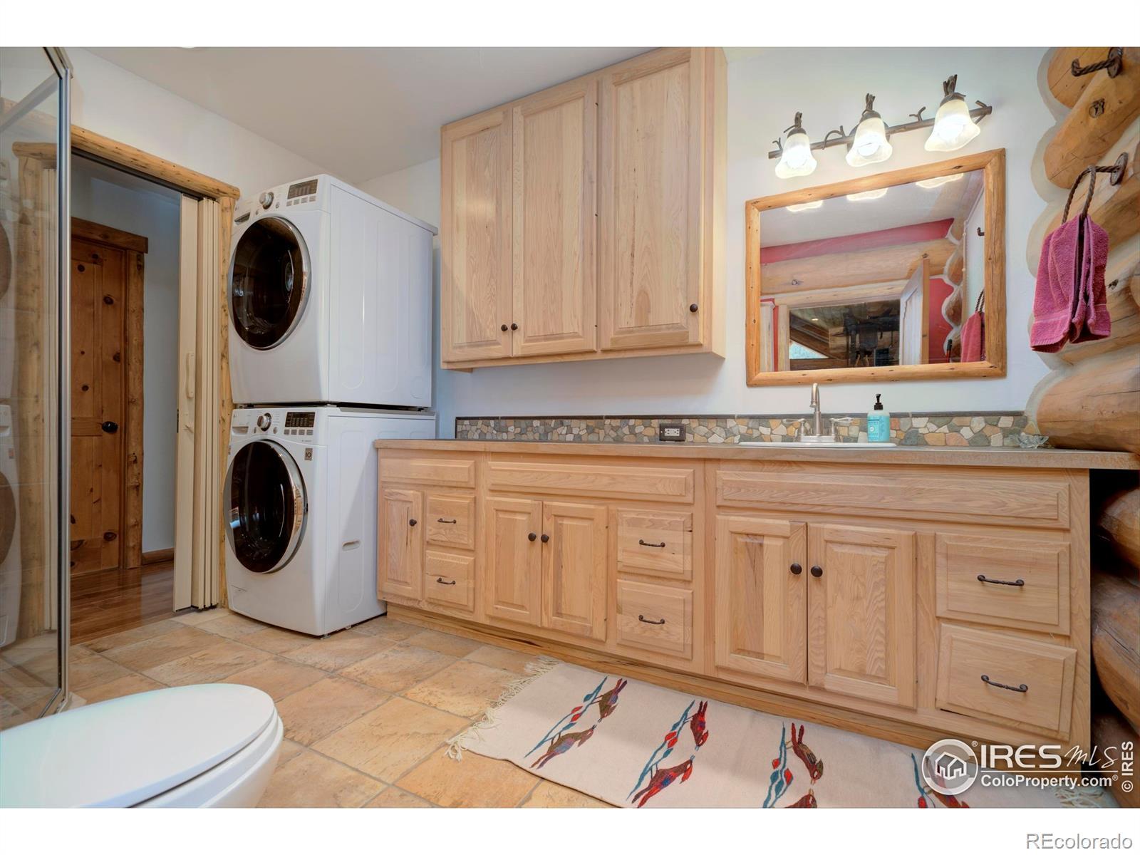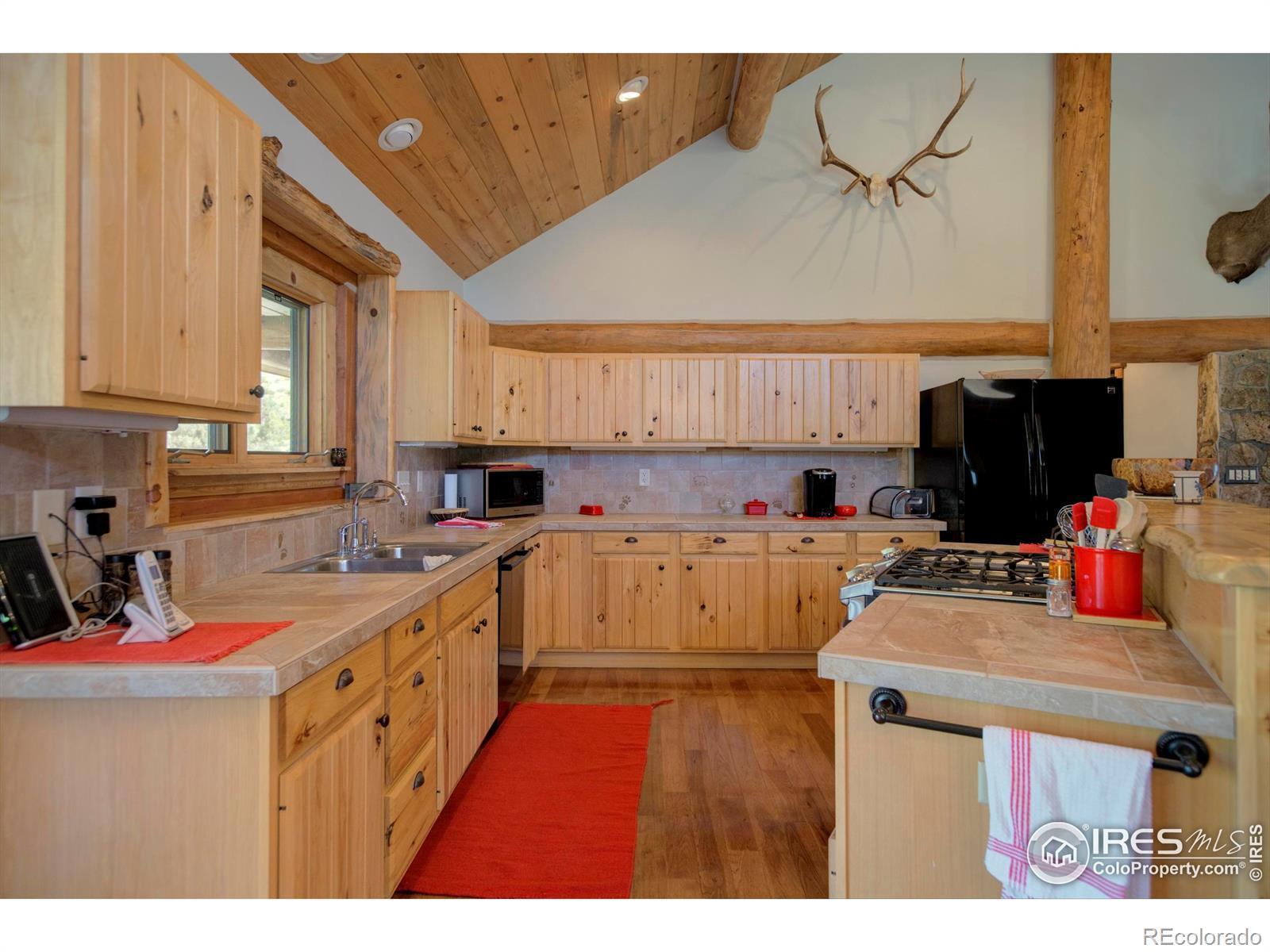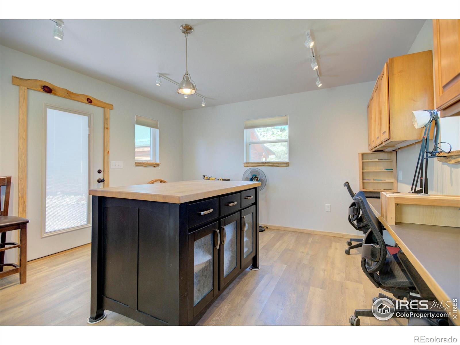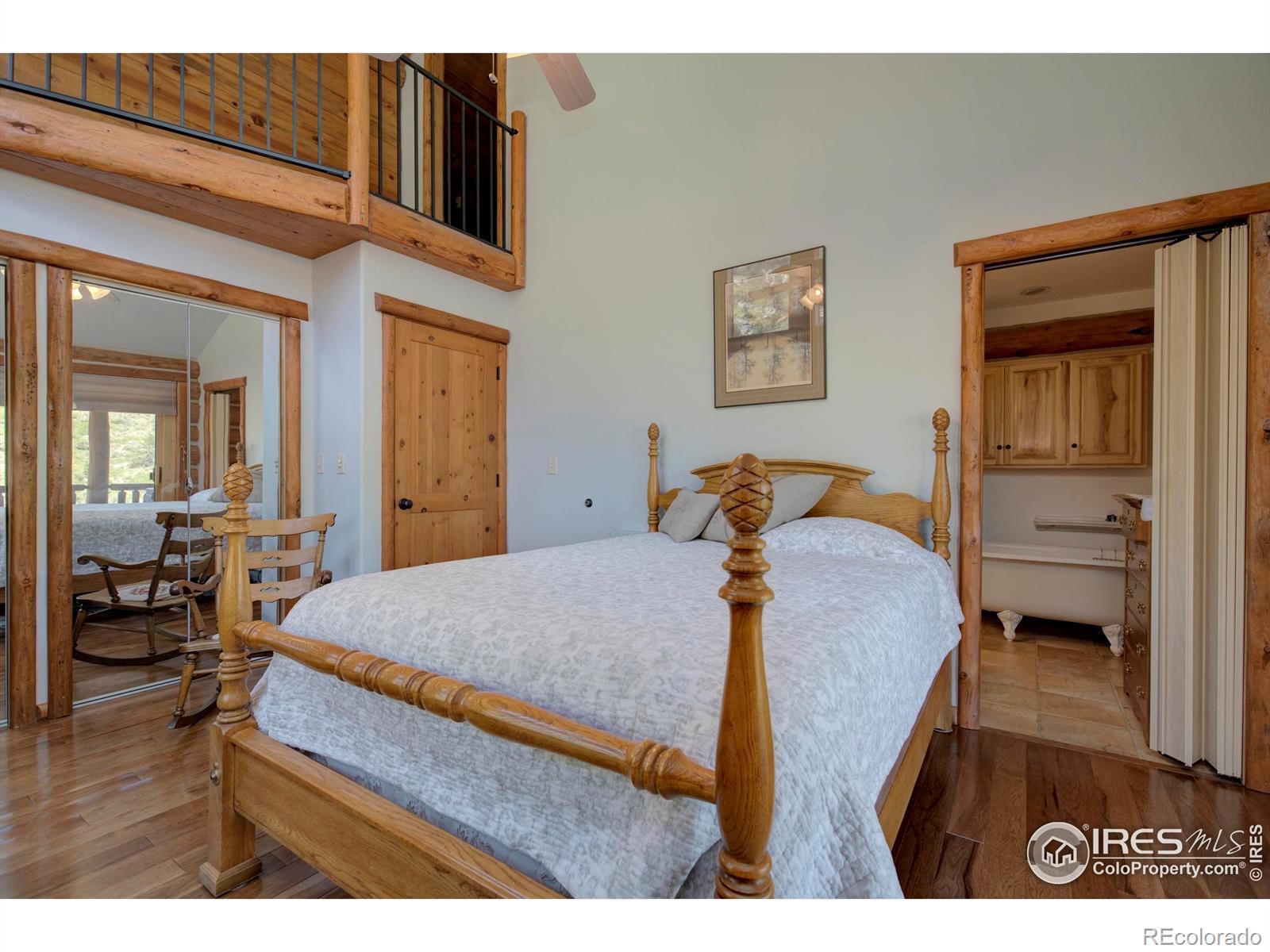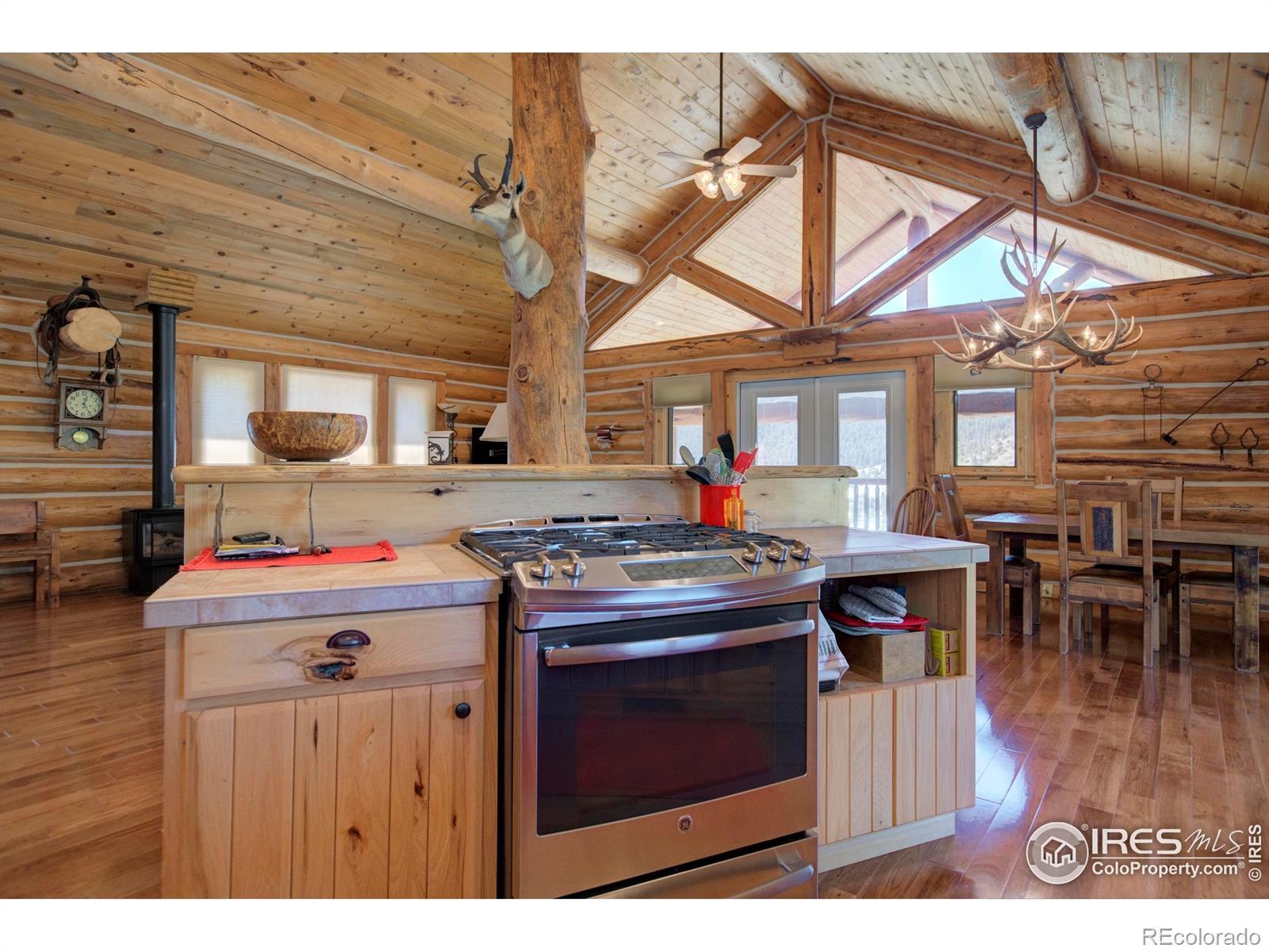 Welcome to your Colorado mountain escape above the North fork of the Big Thompson Canyon - a handcrafted log home on 3.12 acres with panoramic views, unmatched privacy, and year-round access between Loveland and Estes Park. Built in 2001, at 1,440 square feet, this home packs a punch-well-laid-out, comfortable, and ready for whatever you've got planned.", with vaulted ceilings, a free standing stove, and a wraparound deck designed to soak in every sunrise and starry night. Ideal for those seeking solitude, recreation, and the authentic feel of the Rockies. This is a Colorado treasure. The home features 2 bedrooms and 2 baths, an open kitchen and living area, and thoughtful use of space throughout. Natural light pours in through large windows that frame the surrounding cliffs and forested hillsides. The home is served by a permitted domestic well and septic system, with forced air heat and propane stove for winter comfort.Outbuildings include a detached 320 sq ft studio with power (perfect for art, writing, or remote work), a 14x16 detached garage, a 20x23 large wood shop, and a permitted shipping container for secure storage. The 3.12-acre lot blends open, usable ground near the home with rugged timbered terrain, rock outcroppings, and natural privacy. Wildlife is abundant, and the setting supports hiking, exploring, and quiet time outdoors. Located just 25 minutes to Loveland, 20 minutes to Estes Park, and under an hour to Boulder and Fort Collins. Rocky Mountain National Park and the Roosevelt National Forest are within easy reach, and the North Fork of the Big Thompson River - known for its fly fishing - winds just below the property. This is mountain living with soul, simplicity, and a true sense of place.