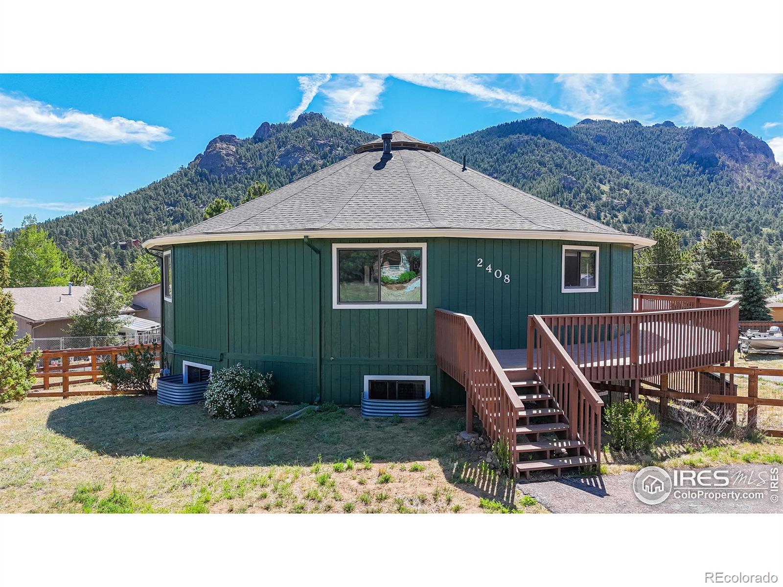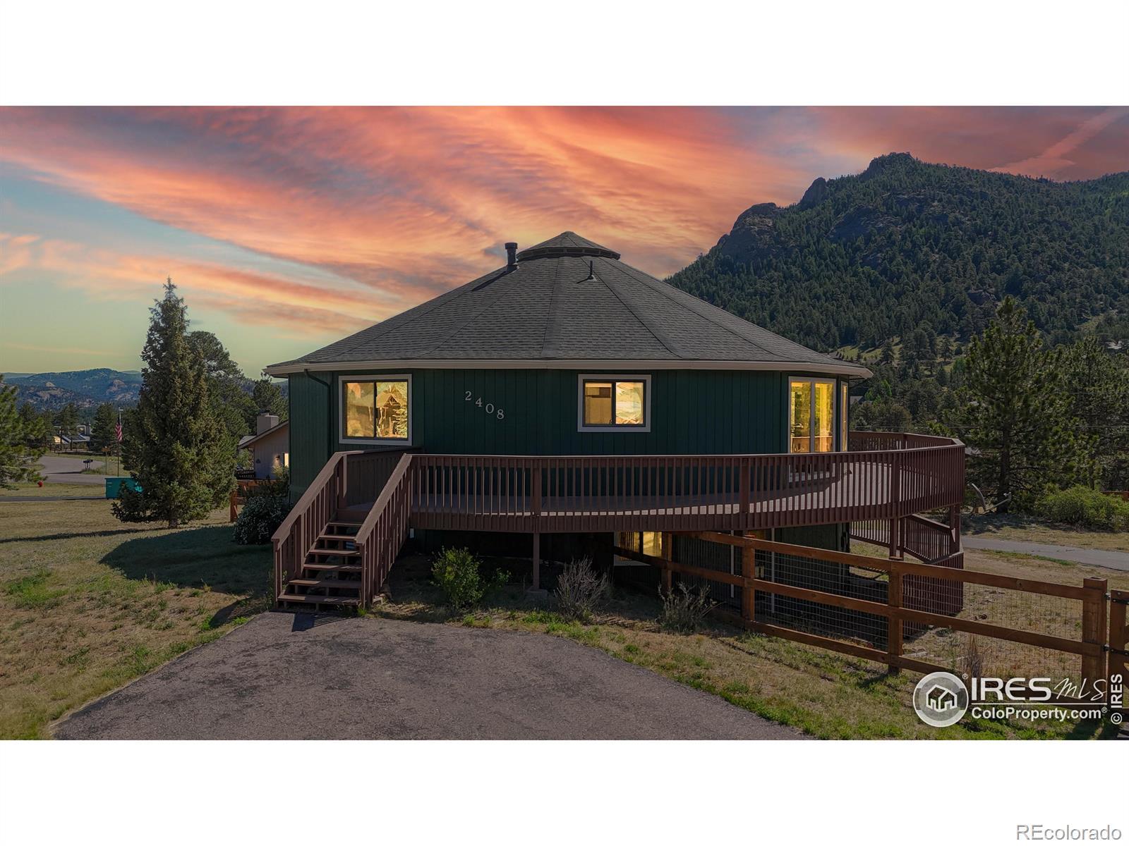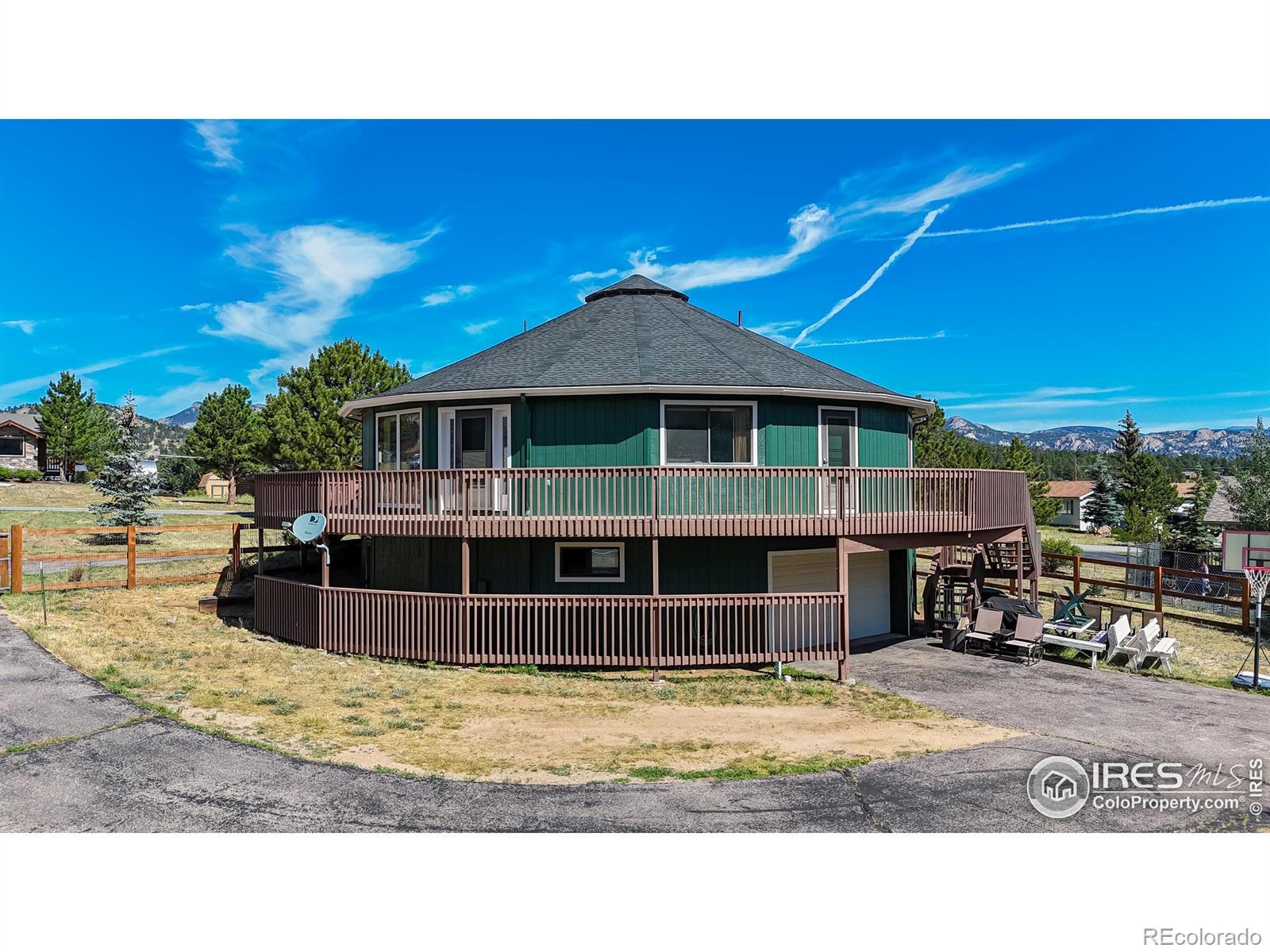 One-of-a-Kind Home with Mountain Views in Estes Park! Discover endless potential in this truly unique 18-sided (Deltec) home conveniently located near park, community ponds and walking/biking trails in beautiful Estes Park. Brimming with character, this spacious 4-bedroom, 3-bathroom property offers a distinctive light-filled layout and plenty of room to make it your own. Main Floor Primary Suite allows for one-floor living and is a true retreat, featuring a generous layout, a relaxing Jacuzzi tub, and a separate shower. This home offers a versatile flex room that can make for a home office, gym, or game room - whatever suits your lifestyle. While the interior is ready for your personal updates and touches, big-ticket items have already been taken care of with a newer roof (2020) and brand-new siding and trim. Enjoy year-round mountain views from the wraparound deck and make the most of Colorado's stunning scenery. The oversized heated garage - over 1,000 sq ft - provides abundant storage for all your gear and hobbies. In addition, there is a large, fully fenced yard that is ideal for pets or play, or gardening and allows for plenty of space to park your RV/or toys. This one-of-a-kind property is priced with its need for some updating in mind, presenting an incredible opportunity to build equity and create your dream mountain getaway. Don't miss your chance to own a truly special home in Estes Park - schedule your showing today!