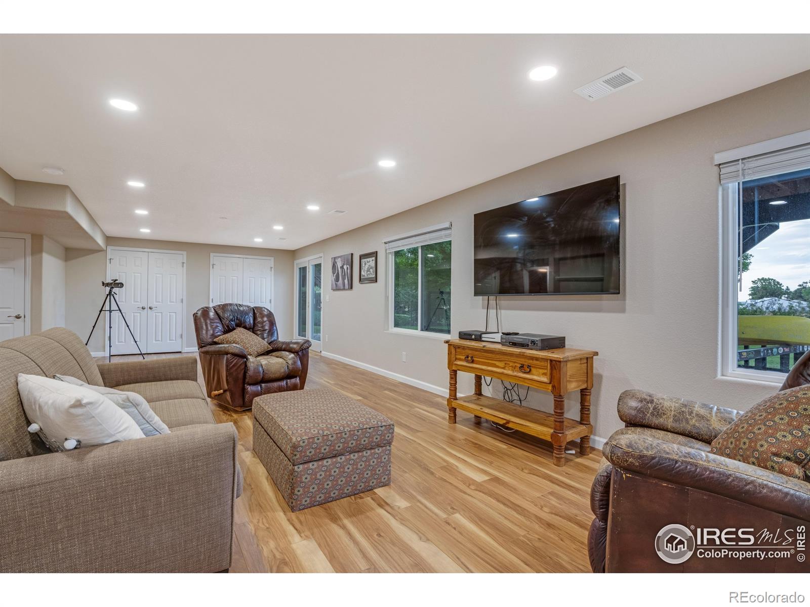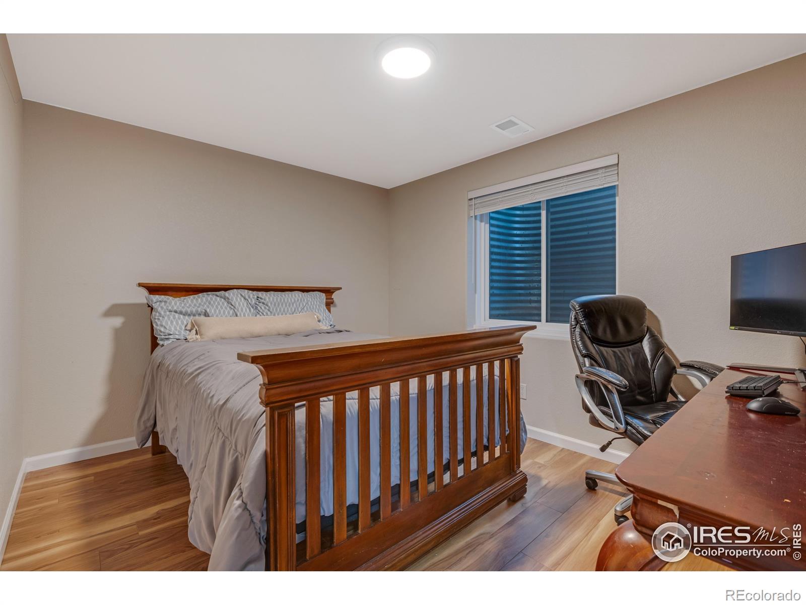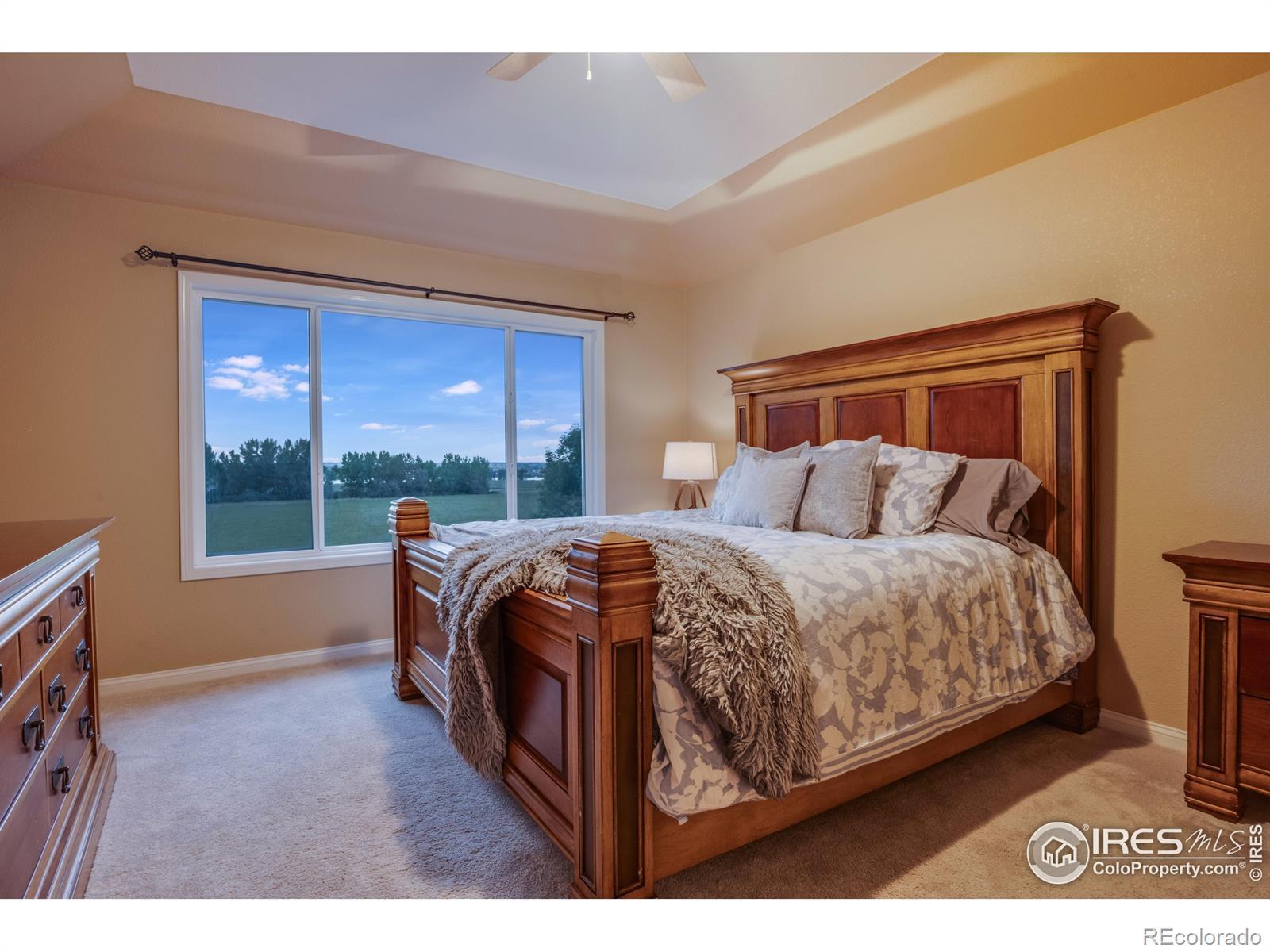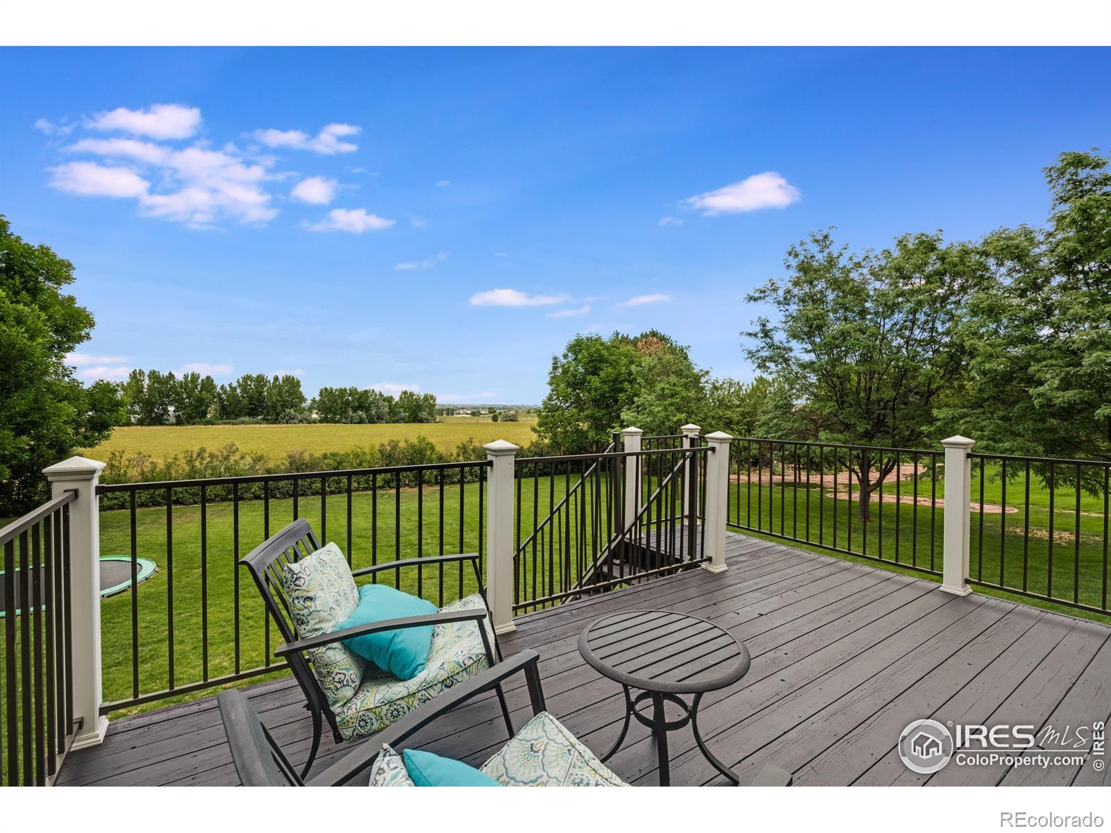 Incredible 2 story backing to open space in the prestigious Eagle Ranch Estates. Resting on a massive lot, this home offers multiple inviting living spaces, tons of natural light, a main floor study and fully finished, walkout basement! Hardwood floors on the main level, granite countertops in the kitchen, stainless appliances and a formal dining room make this a great entertainer's home. The primary suite boasts a large soaking tub, walk-in closet and large bonus office/rec room. 4 bedrooms on the upper level with one featuring it's own private bath. The finished basement boasts a bedroom, family room with bar and low maintenance flooring and tons of storage. Outdoors you'll find a refinished deck, patio and absolutely massive back yard. Sprinkler, AC, Roof new in 2020, in ground trampoline included. Super clean 3 car garage with an oversized door and 220V service. This is a clean home backing to HOA open space and presents a tremendous value in one of NoCO's premier neighborhoods. Just minutes to I-25 and Fossil Lake Reservoir. Put this on your list today!