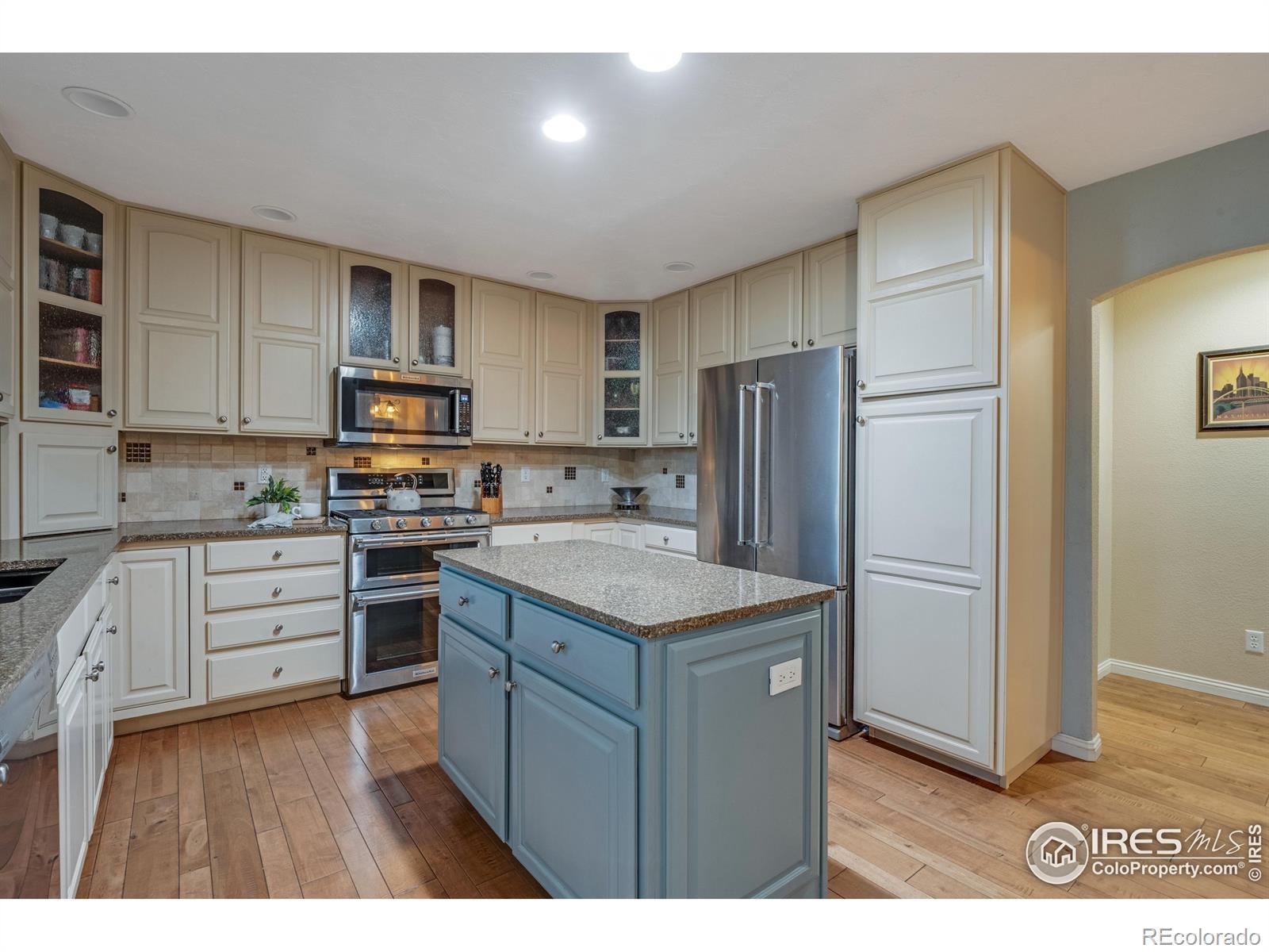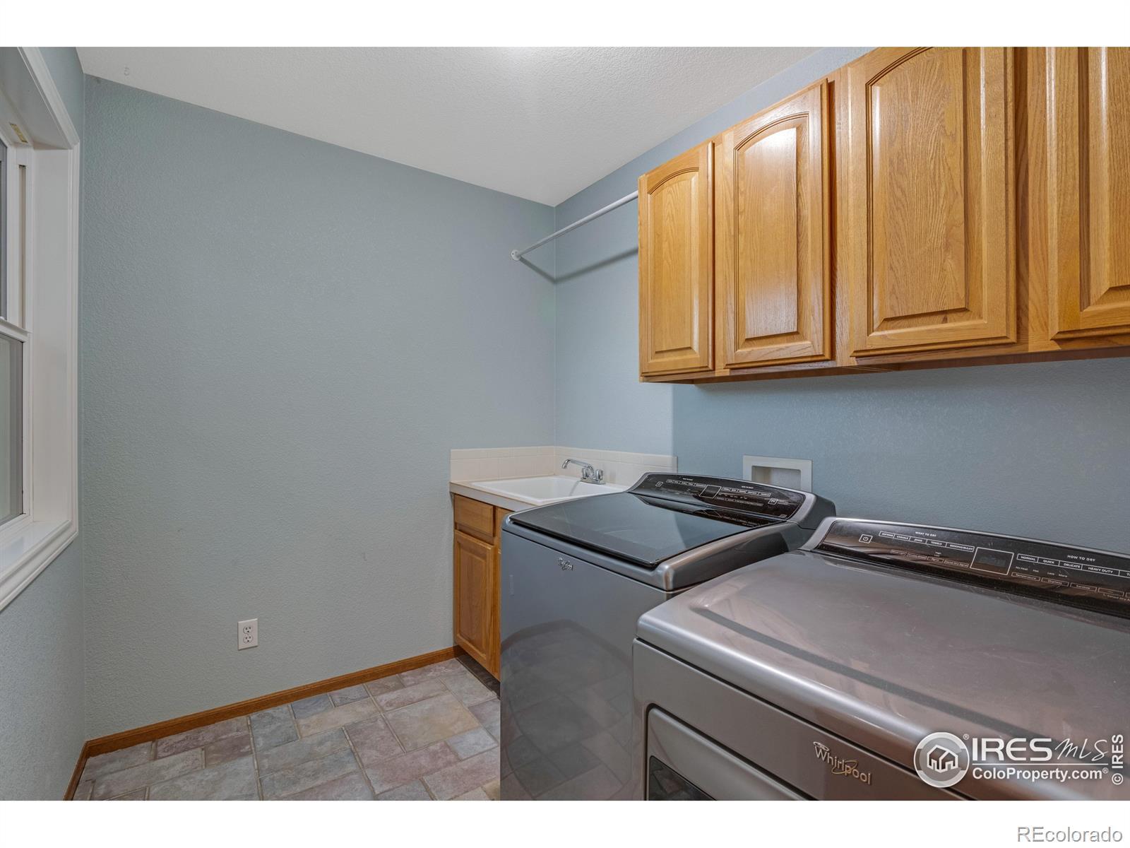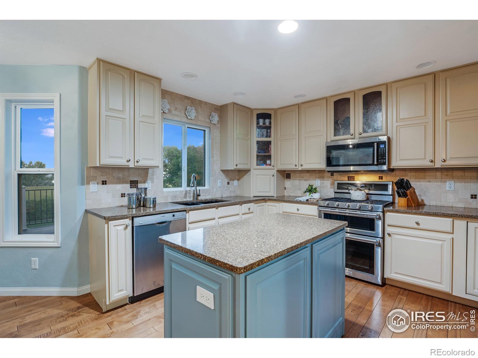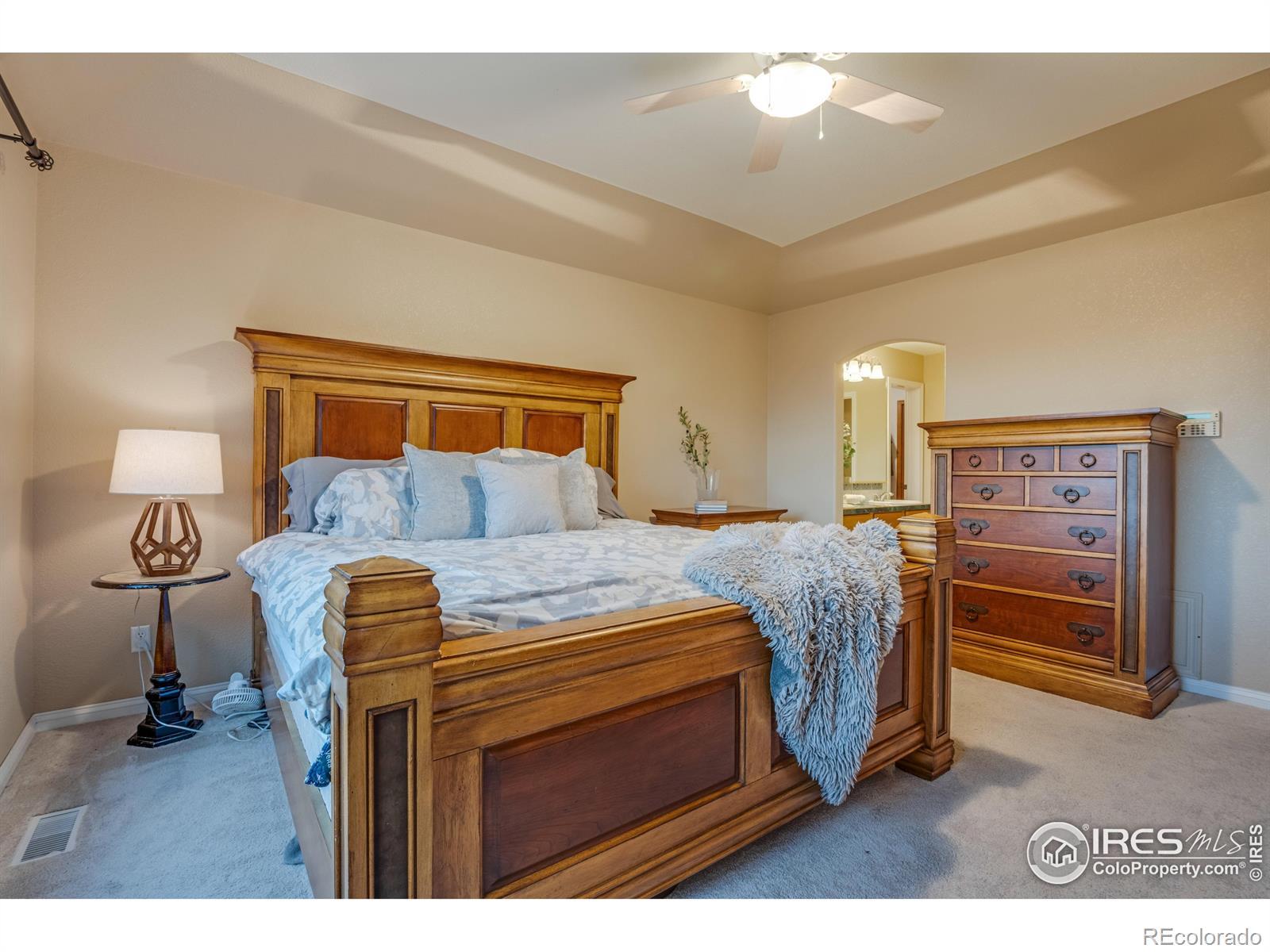 Incredible 2 story backing to open space in the prestigious Eagle Ranch Estates. Resting on a massive lot, this home offers multiple inviting living spaces, tons of natural light, a main floor study and fully finished, walkout basement! Hardwood floors on the main level, granite countertops in the kitchen, stainless appliances and a formal dining room make this a great entertainer's home. The primary suite boasts a large soaking tub, walk-in closet and large bonus office/rec room. 4 bedrooms on the upper level with one featuring it's own private bath. The finished basement boasts a bedroom, family room with bar and low maintenance flooring and tons of storage. Outdoors you'll find a refinished deck, patio and absolutely massive back yard. Sprinkler, AC, Roof new in 2020, in ground trampoline included. Super clean 3 car garage with an oversized door and 220V service. This is a clean home backing to HOA open space and presents a tremendous value in one of NoCO's premier neighborhoods. Just minutes to I-25 and Fossil Lake Reservoir. Put this on your list today!