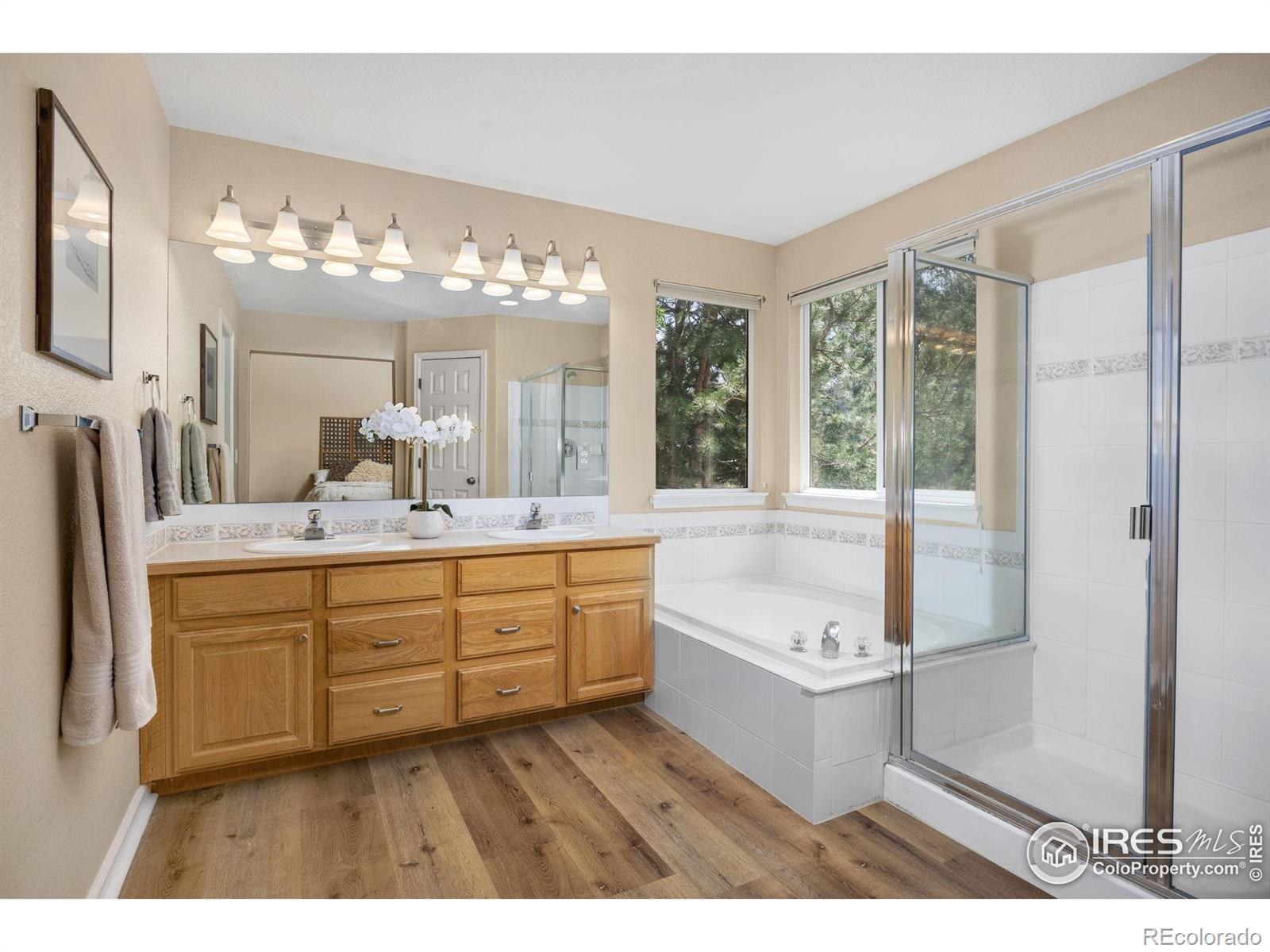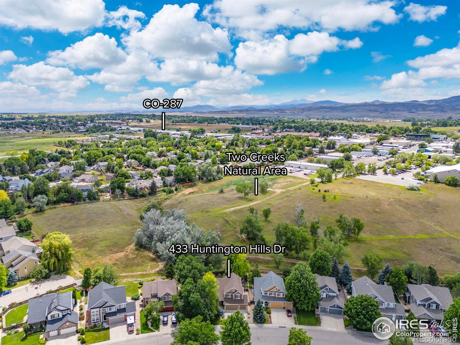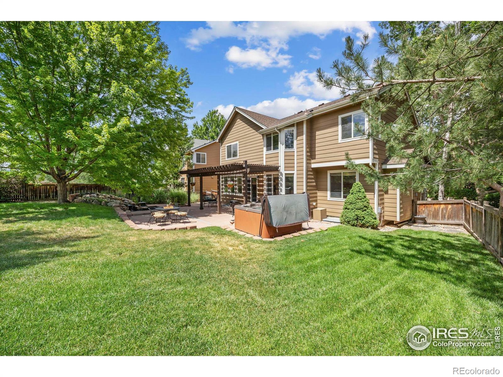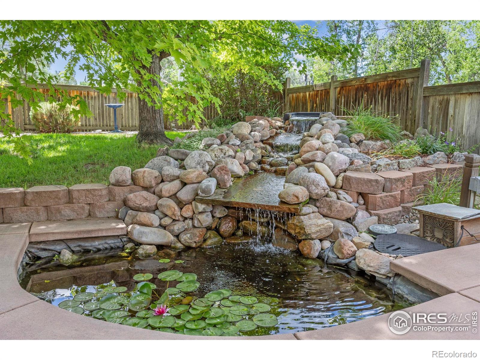 Pool Community in Huntington Hills!! This home offers a rare sense of privacy, situated on a low-traffic street that ends in a cul-de-sac and backing to the protected Two Creeks Natural Area. Additional HOA managed green space borders the property to the east, enhancing the feeling of openness and seclusion. Picture yourself unwinding in the beautifully landscaped backyard, on a custom poured patio shaded by a refinished pergola and lush foliage, listening to the tranquil sounds of a koi pond and waterfall as the sun sets behind the trees and open space stretches beyond the fence. A 7'x7' hot tub invites stargazing under the Colorado skies. Inside, the home is just as inviting-spacious, bright, and thoughtfully updated. The kitchen was recently renovated with quartz countertops, a tiled backsplash, large stainless sink, brushed nickel faucet, and newer appliances, and it opens to a cozy family room with a gas fireplace and built-in Bose surround sound system. Formal living and dining rooms offer flexible space for entertaining or everyday living. Upstairs are four bedrooms, including a generously sized primary suite featuring luxe new flooring in the five-piece bath, a bay window, and ample closet space. The fully finished basement provides even more space to spread out, with a wet bar, a second fireplace, family room, an additional bedroom and bathroom, plus great storage. Additional features include an updated powder room, new laundry room flooring, and a 3-car garage with built-in work surface and cabinet storage. Just a short walk to Fossil Creek Park, Werner Elementary, and the Huntington Hills pool, tennis courts, and playground, this home is part of the Poudre School District and follows the established pathway through Werner Elementary, Preston Middle School, and Fossil Ridge High School. It offers both tranquility and connection - ready for you to make it yours.