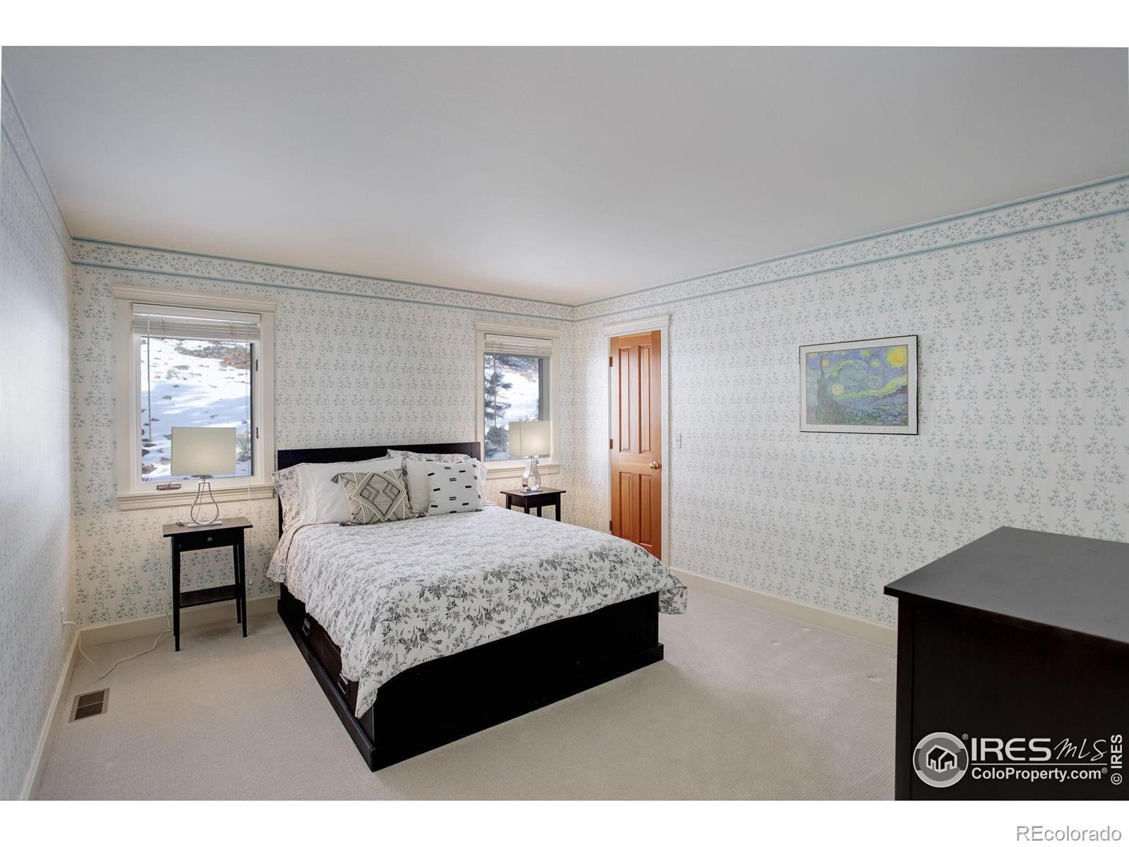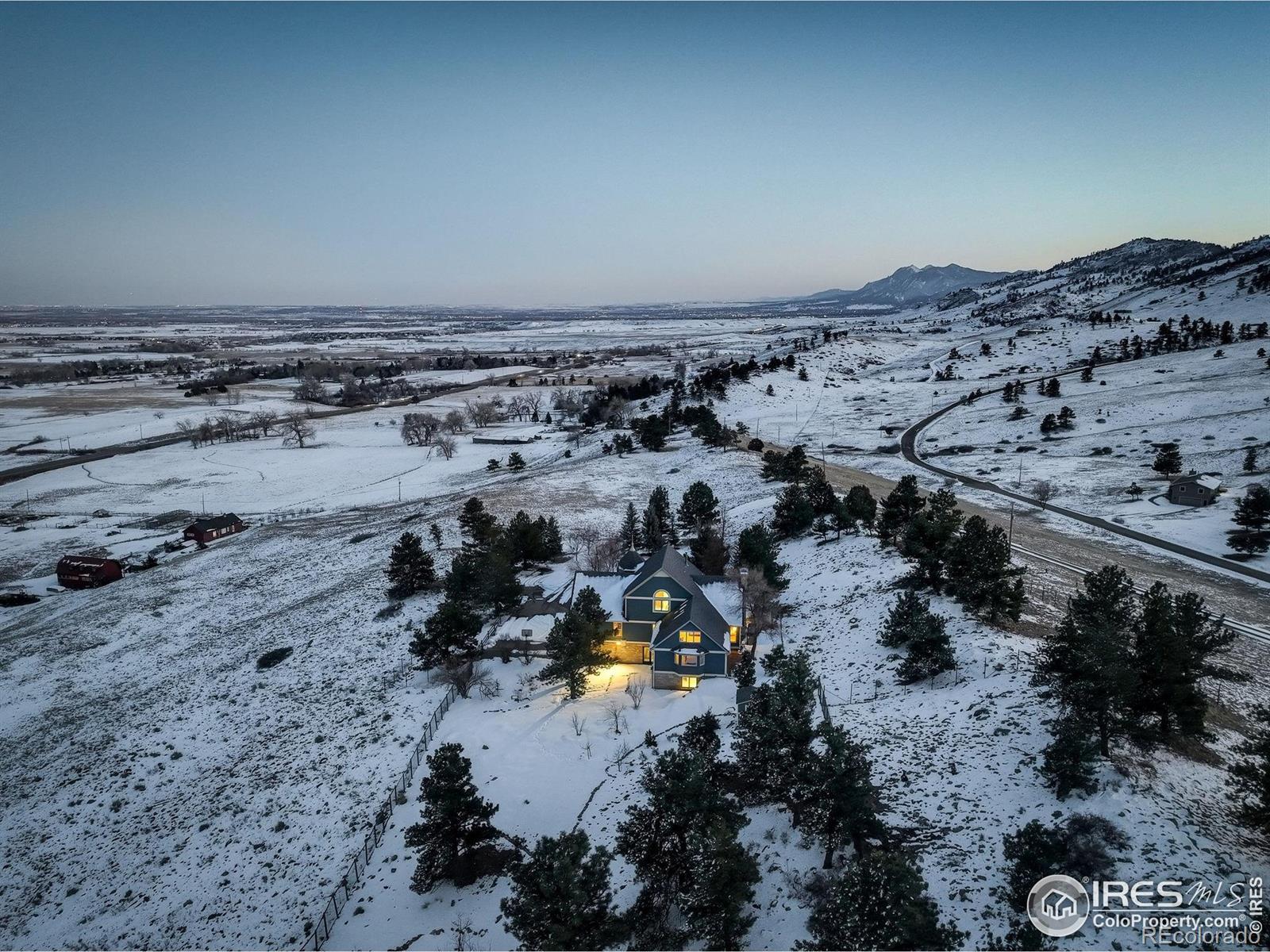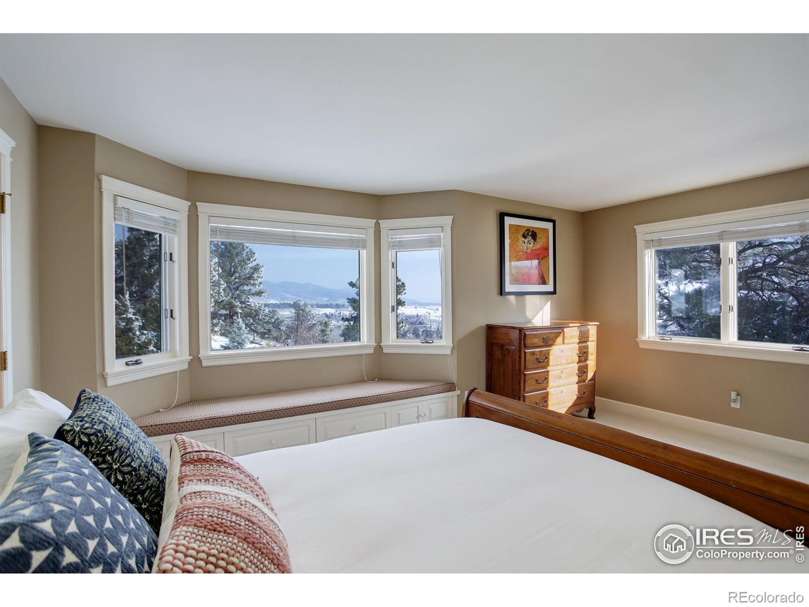 Just moments from Downtown Boulder, this property offers a serene escape that captures a Victorian essence. Situated on 32 acres, this one-of-a-kind home boasts ultimate privacy and breathtaking views out every window. Behind the gates, a large, tree-lined motor court and professionally landscaped grounds welcome guests to this stunning home. The stone entryway and front patio showcase exceptional craftsmanship and seamless indoor-outdoor living. Enjoy Flatiron views from the in-ground hot tub. The formal living and dining rooms are inviting spaces with high ceilings and wood flooring. Upstairs, french doors lead to the secluded primary suite, highlighted by a sitting area with picturesque views. The spa-like bathroom features a steam shower, soaking tub, and dual walk-in closets. An additional upstairs room would make an excellent home office or guest quarters with enviable views. Back on the main level, two secondary bedrooms are spacious and bright each with walk-in closets. The eat-in kitchen is a chef's dream with new Kitchen Aid appliances, a center island, and a generously sized walk-in pantry. You will love the vistas from the sunny breakfast nook. The adjacent family room has a cozy wood-burning stove and vaulted ceiling. The walk-out lower level includes a rec room and a large bedroom that could easily be made into two. This extraordinary property is a sanctuary and the perfect marriage of luxury and natural beauty for those seeking elegance and tranquility.