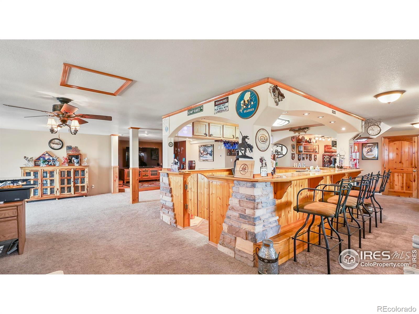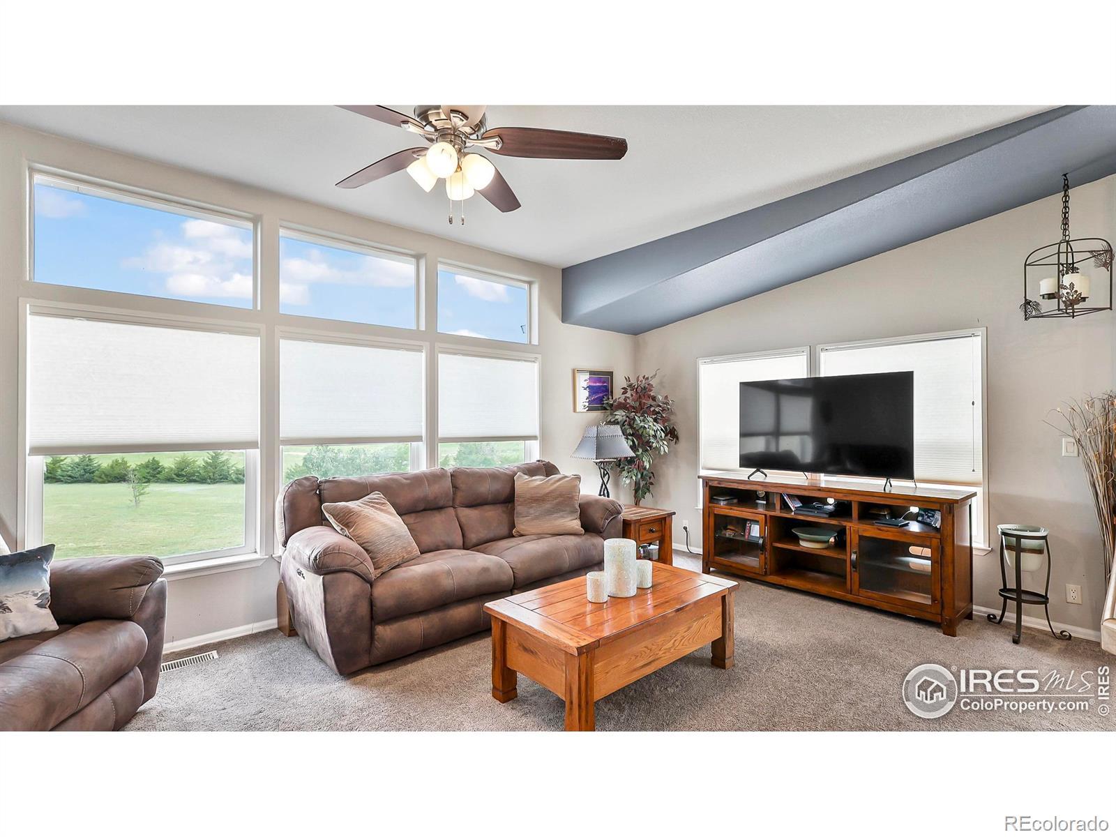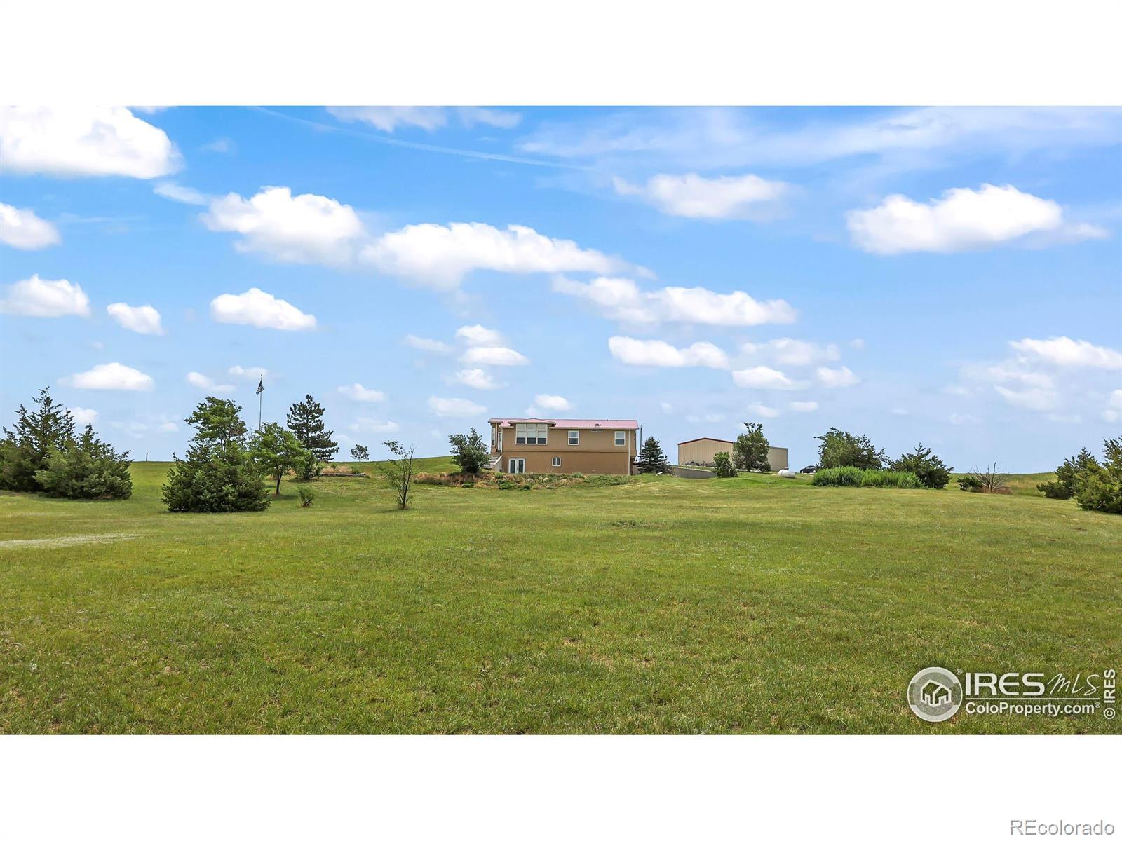 SETTLE UP IN YOUR HOME ON THE RANGE! This beautiful 3,890 SqFt home sits on top of the hill of an 80 acre parcel, complete with a 30'x60' steel frame shop, fenced pasture, 5 working hydrants and mature windbreak. The 3 bed 4 bath features a full finished basement built to entertain around a custom wet bar, pool table, theater area, 2 walkout patio areas, huge 1/2 bath with shower rough-in and room for a refrigerator/freezer PLUS an office/4th non-confirming bedroom, new roof, newer flooring and appliances. Upstairs you'll find spacious main level amenities with a family room, living room, kitchen bar top & island, pantry, breakfast nook, formal dining room, built-in buffet, double door entry to the primary bedroom, newly updated luxury primary bathroom (soaking tub, tiled shower, double sinks, lighted mirrors), 1/2 bath off laundry, + two more bedrooms and full bath. The detached shop includes a 12' tall auto overhead door, 220v, shelving, concrete floors and air compressor. No HOA, only 33 minutes to Sterling & 17 minutes to Akron.