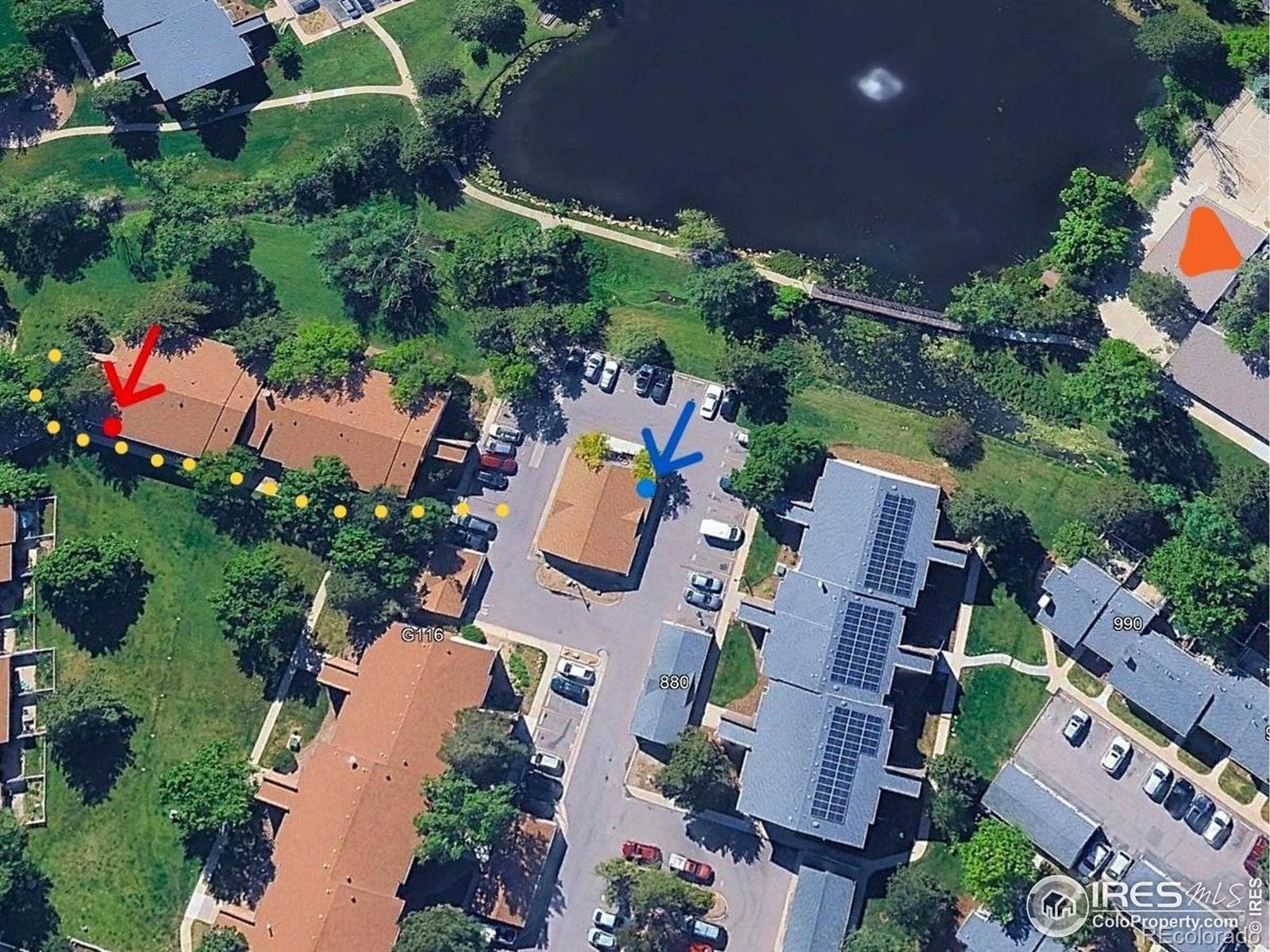 FOR SALE OR FOR RENT...whichever occurs first! This is one of the least expensive 2-bedroom condominiums in south Bouder..and it has a garage! It is nicely situated on the top floor with views of the grassy lawn; just steps to the lake's beautiful foot path as well as the community center with fitness, pool, and tennis courts. Features: window A/C unit, new paint, primary Br with ensuite bath, detached garage and assigned parking space, #116 !! Tantra Lake is located just off Table Mesa Drive...four miles from Pearl Street, thirty minutes to Denver, and forty minutes to DIA.