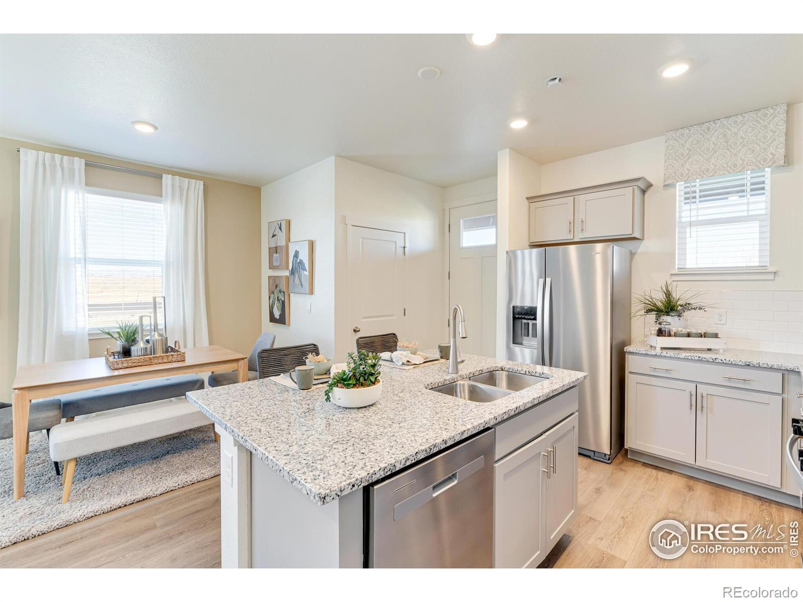 Welcome home to 4667 Combine Ln. in the desirable Revere at Johnstown Paired community! This stunning Muirfield floor plan is a 3 bed 3 bath paired home with a loft upstairs and an attached 2-car garage. Step inside and be greeted by the open-concept main floor, featuring a modern kitchen, dining area, and living room. The kitchen is equipped with a granite island and a gas range. A convenient half bath for guests adds to the functionality to the main floor. Upstairs, you'll find the generously sized bedrooms with ample closet space. The primary suite is a peaceful retreat, complete with an en suite bathroom featuring double sinks and an impressive walk-in closet. Laundry chores are made easy with the conveniently located laundry room upstairs. Enjoy the outdoors with an oversized front porch. Additional features of this home include A/C, a tankless water heater, and a smart home package. Nestled in the Front Range of the Rocky Mountains, Revere at Johnstown Paired offers a desirable location with easy access to I-25, shopping, dining, and abundant outdoor recreation at nearby parks, golf courses, and reservoirs. Don't miss out on this opportunity to own a beautiful home in a noteworthy neighborhood. ***Estimated Delivery Date: October. Photos are representative and not of actual property***