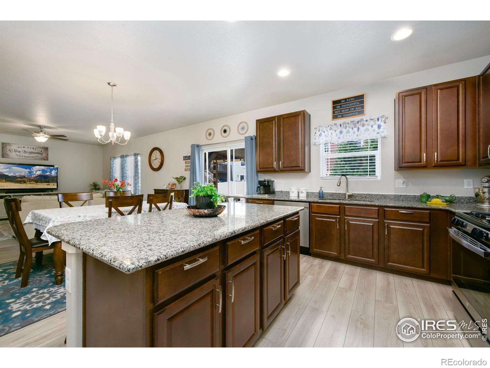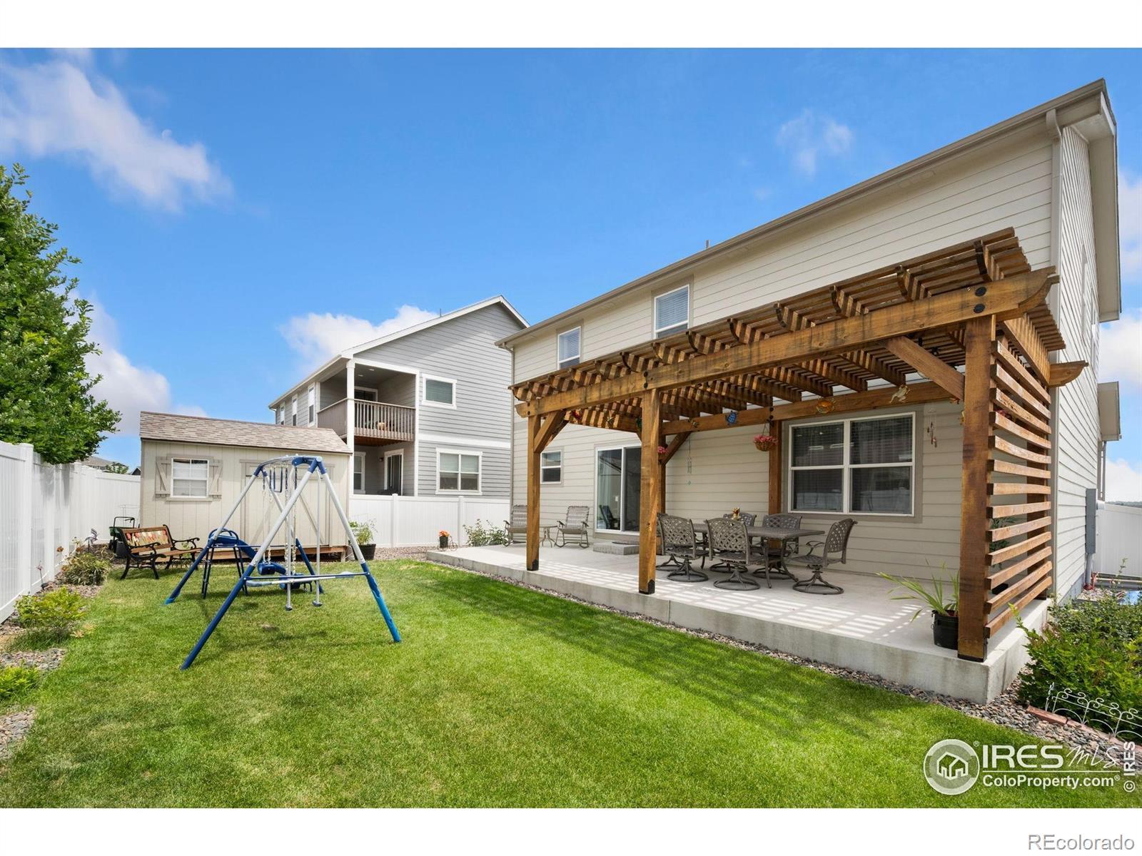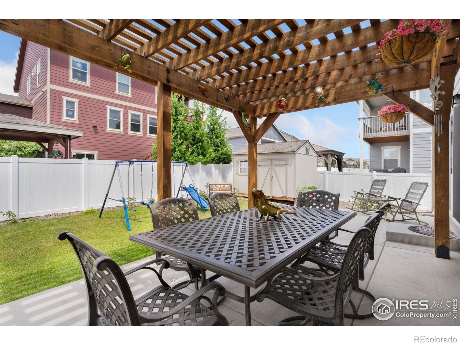 Fabulous floor plan w/so much natural light from LOTS of big windows & high ceilings! Enter into Formal Living Room w/big front window perfect for Christmas Tree! Great Room: from S wall to N wall in kitchen is 36+ft=so Nice for entertaining Family/Friends&being connected to everyone! The kitchen is truly the heart of this home w/big island w/sitting side, Granite Countertop, window over the sink, corner/walk-in pantry, 42" cabinets, stainless & black gas range, dishwasher, microwave above the range. Eating Area between FR & Kit is perfect to bring everyone together. Drop-zone w/sit-down bench & half bath coming in from garage. Oversized patio has a custom 19X11 Pergola & an uncovered area for sunning or just relaxing! Perfect size backyard & a nice size shed for storage. Upstairs is an open, could-be office/pool table area/kids play area & 3 bedrooms, 4-piece hall bath, & the large Primary Suite has another big, front window for natural light & a luxury 5-piece bath w/soaking tub, big shower, dual sinks & a walk-in closet. All baths have Granite Countertops & tile floors. Basement finished by Builder offers large Rec Room w/2 big window wells that bring in lots of sunlight, 11X15 5th Bdrm & a full bath; + storage under the stairs & utility room. This home is simply beautiful & in excellent condition! Nothing to do buy move-in & unpack!