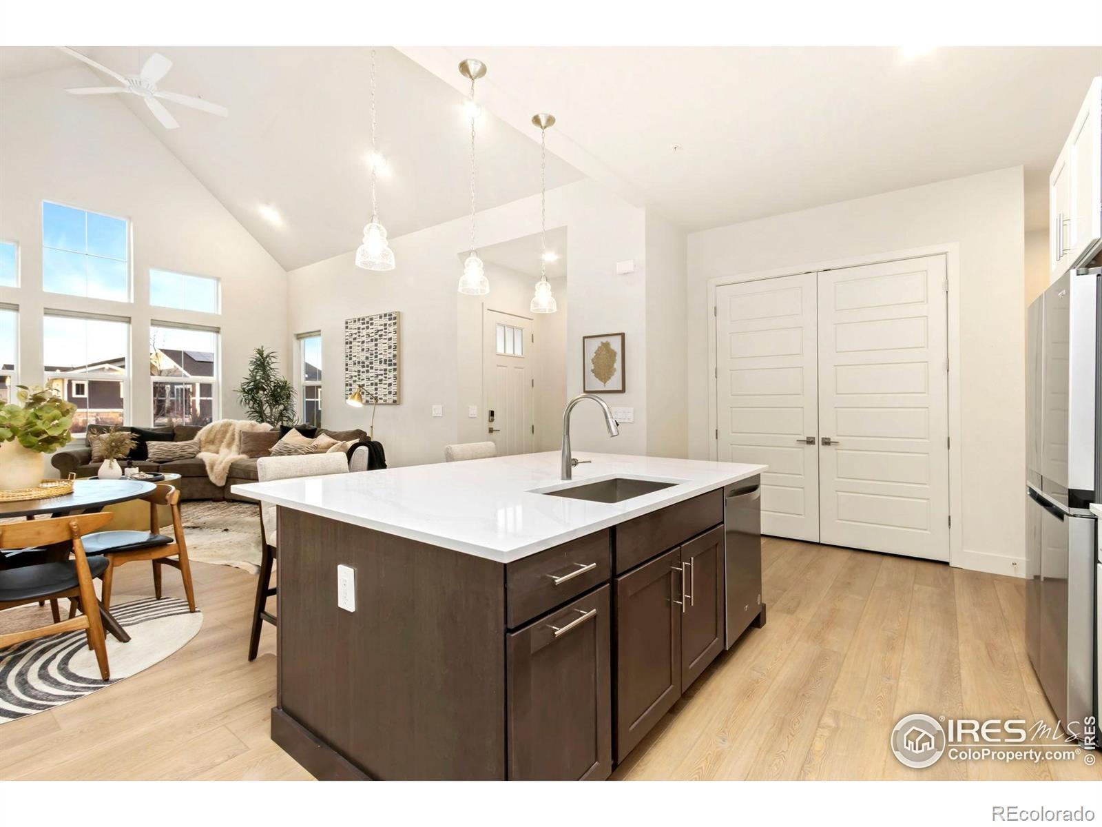 Motivated Seller is ready to hand over the keys to this beautiful home - just in time for the Holidays. This luxury Thrive townhome combines easy elegance, light-filled design, and main-floor living with a finished basement you won't find in Thrive's newer builds. Enjoy quiet north Fort Collins living with private access to Richards Lake, easy commute to I-25 and just minutes to the Fort Collins Country Club and Old Town. Gorgeous kitchen with quartz countertops, large island, Whirlpool stainless appliances, a pantry that will be the envy of all your guests, and abundant cabinetry. Spacious living area features floor-to-ceiling windows, programmable electric fireplace, and luxury vinyl flooring. Main-floor primary suite with spa-inspired bath, walk-in shower, double vanity, custom bidet, and large closet. Second bedroom suite, laundry, mud room area, and half bath complete the main level. The full basement offers a large rec/media room, bonus area, 3rd bedroom, and full bath. Energy-efficient systems include Navien tankless water heater, Mitsubishi HVAC with humidifier, AprilAire filtration, and solar. Thrive homes offer unparalleled quality, comfort, efficiency, and convenience. Enjoy lock-and-leave freedom, walking trails, lake access and future community amenities including pool, learning center, putting green, parks and community gardens. Don't miss your chance to own this stunning home at an incredible price!