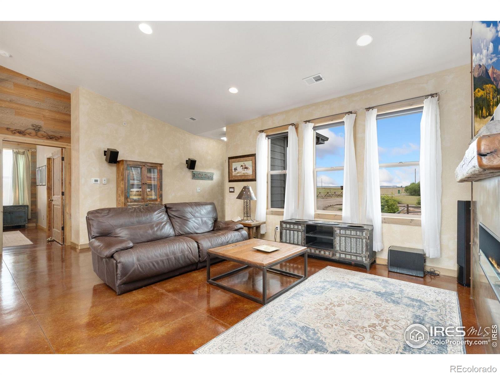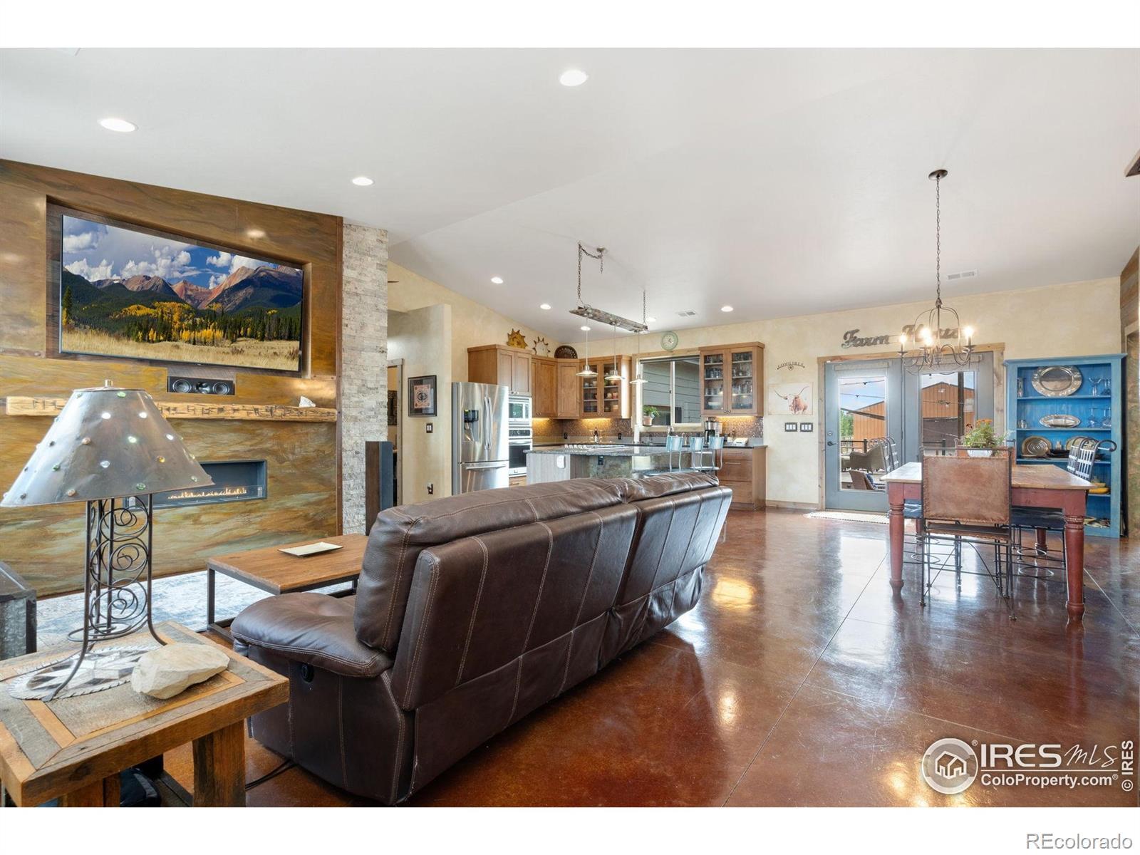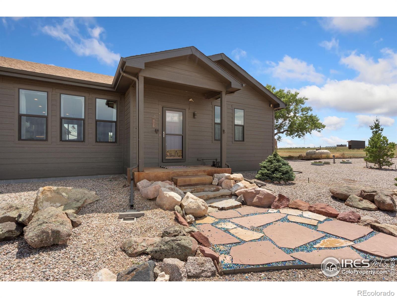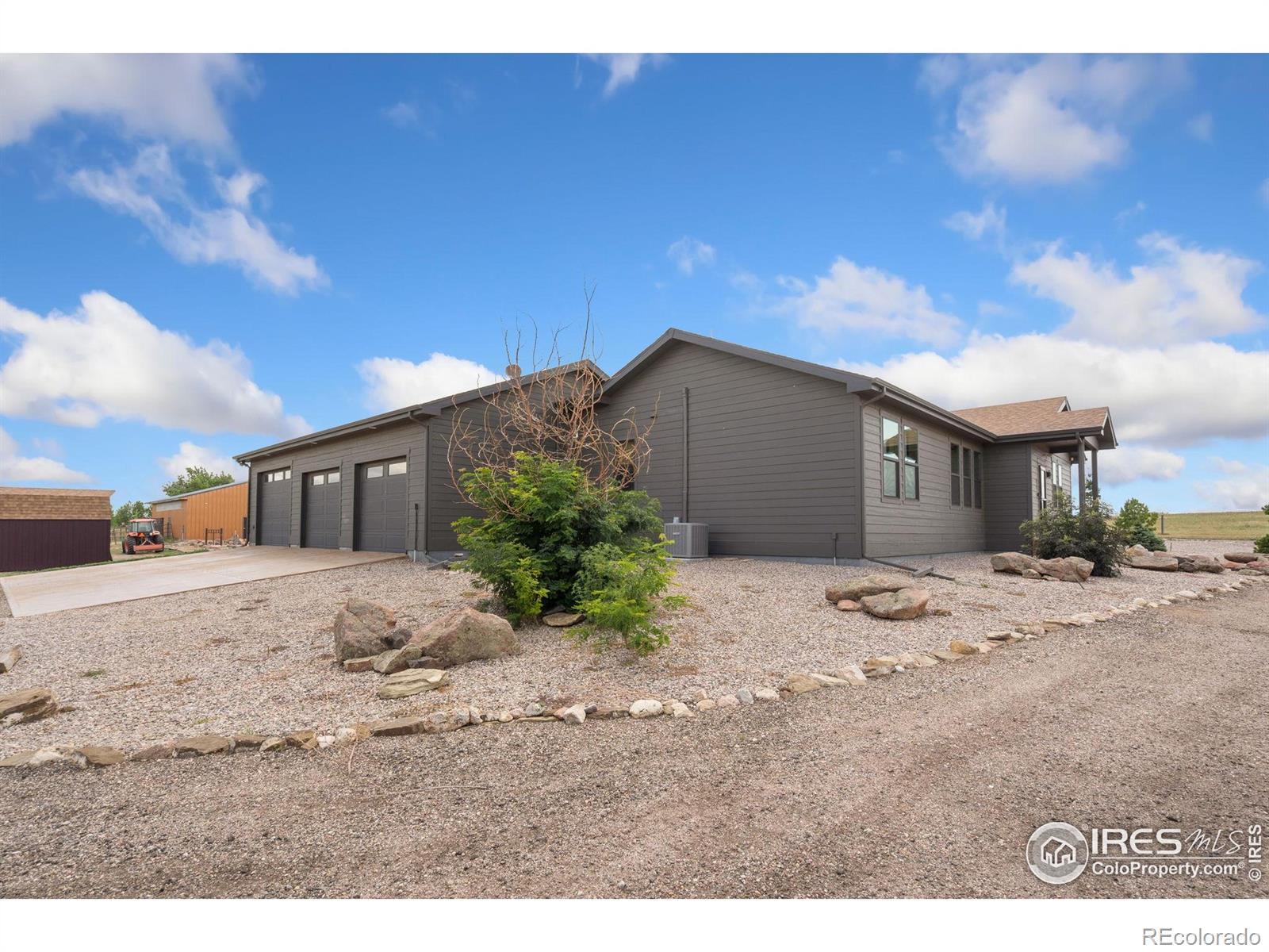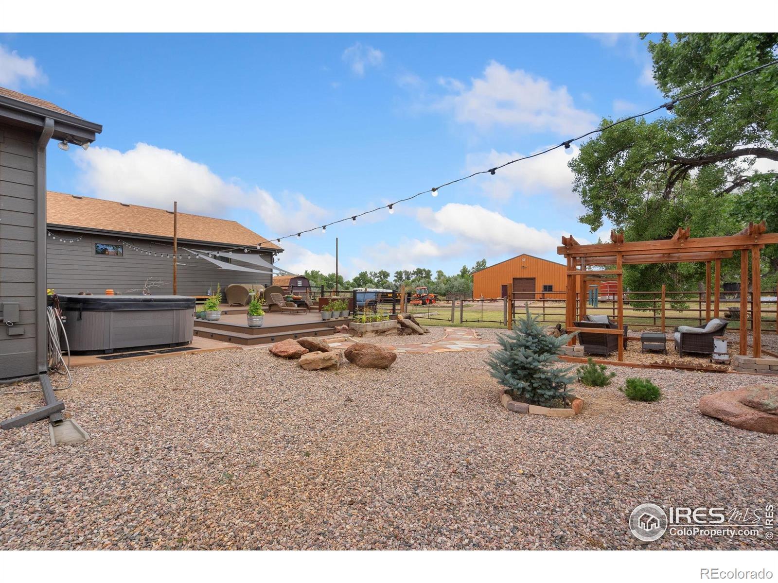 Dream equestrian estate on 38 acres! This sprawling property is fully loaded with thoughtfully designed features and horse-ready amenities. Pull in through the circular drive and be greeted by a low-maintenance xeriscape yard that blends effortlessly into the natural beauty of the surroundings. The single-level, custom-built home strikes a beautiful balance between rustic design and modern comforts, featuring an open layout with vaulted ceilings, stained concrete radiant heated floors and new A/C! Craftsmanship shines through with wood, stone, and industrial details that deliver a sleek warm aesthetic. The living room is centered around a stained steel ethanol fireplace that adds bold style and cozy ambiance. Enjoy cooking your favorite meals in the kitchen, equipped with stainless steel appliances, granite counters, tiled backsplash, and a large island with bar seating. Two bedrooms are positioned on opposite ends of the home, for added privacy, each with an elegant chandelier and space to relax. The primary includes a walk-in closet, a private ensuite bath. The sunroom is flexible enough to become a home office, guest room, nursery, studio, or reading nook. Outdoor living is elevated with a fenced backyard oasis, complete with a concrete patio that's already equipped with a hot tub, a pergola for lazy afternoons, plus a two-tier raised deck with sun shades and warm lighting. The attached 3-car insulated garage includes built-in cabinets and a workbench, perfect for hobbies or additional storage. The fully insulated 2,688 sqft barn is the heart of the property's equestrian setup. Inside, you'll find a tack room, hay storage, utility area, three rubber-matted stalls, and tall doors big enough for tractors or trailers. A fully fenced riding arena, four pastures with horse-safe fencing, and multiple loafing sheds round out the property's horse-friendly amenities. Quick access to I-25 keeps everything within reach. 3rd BR is non-conforming.
